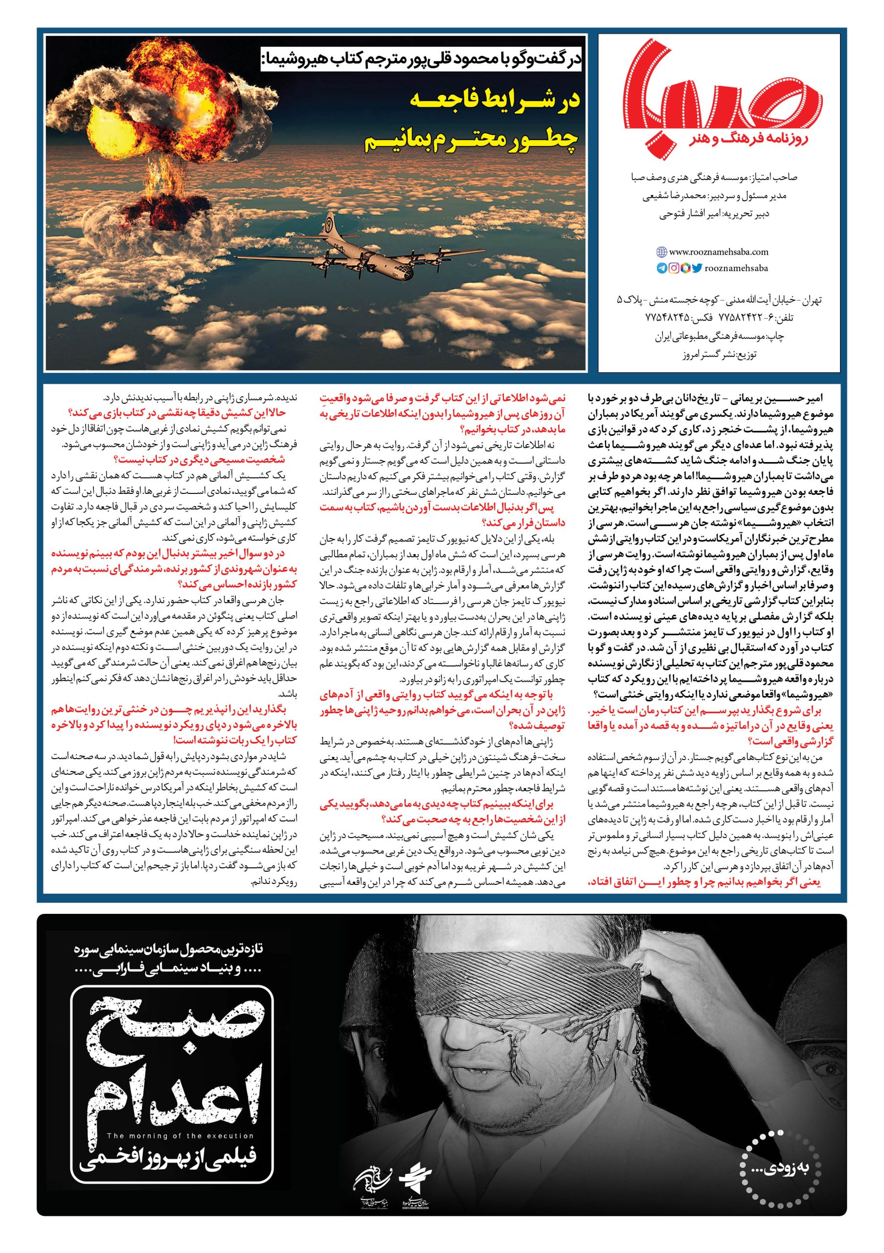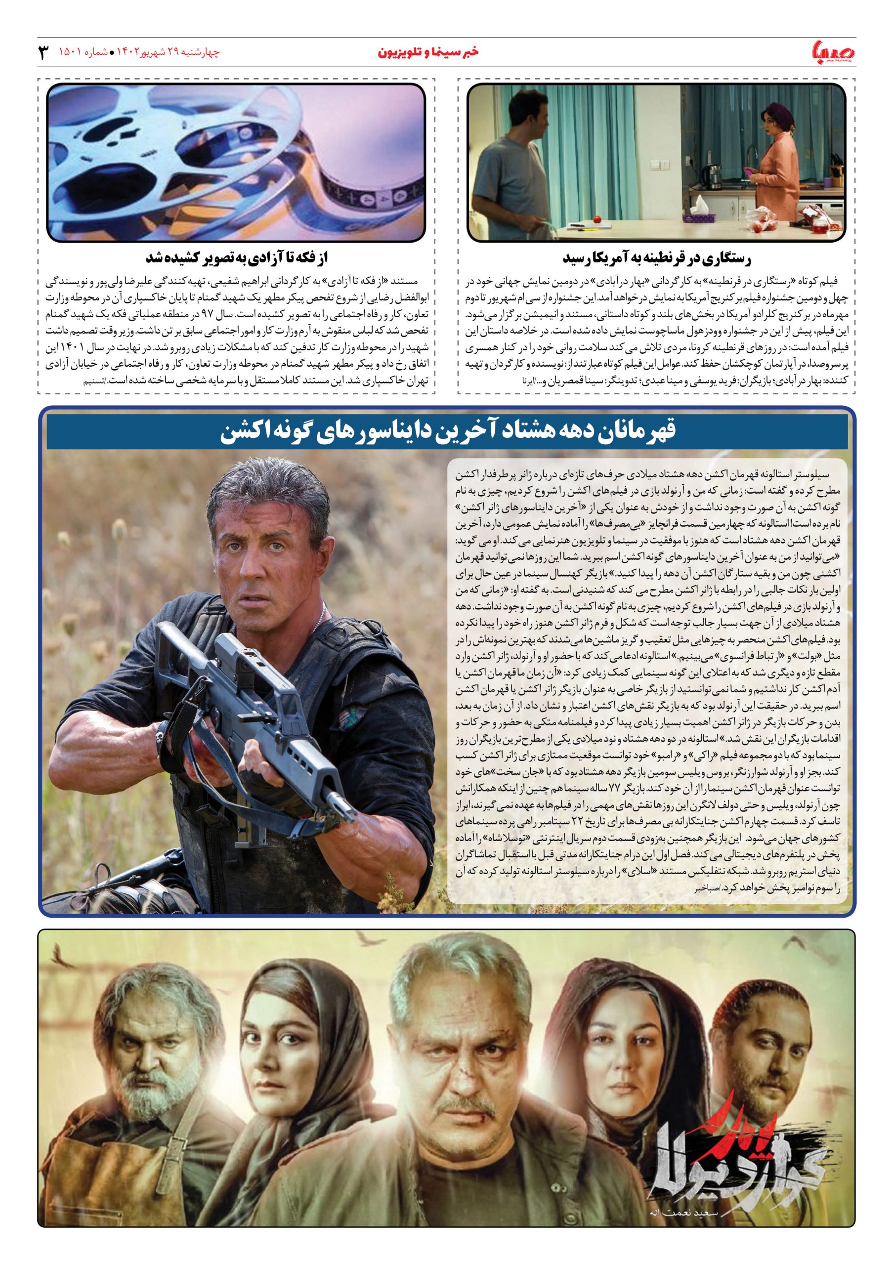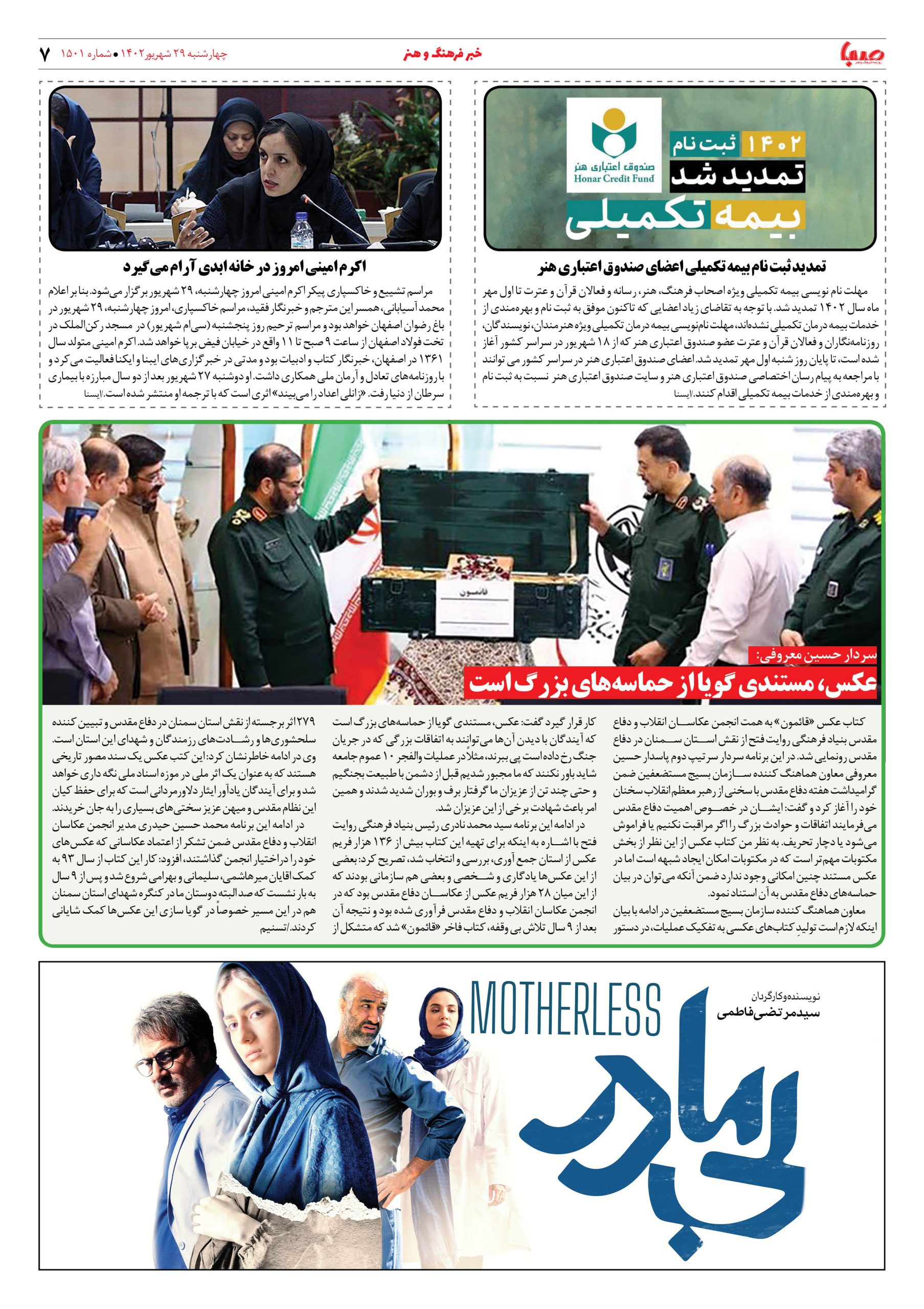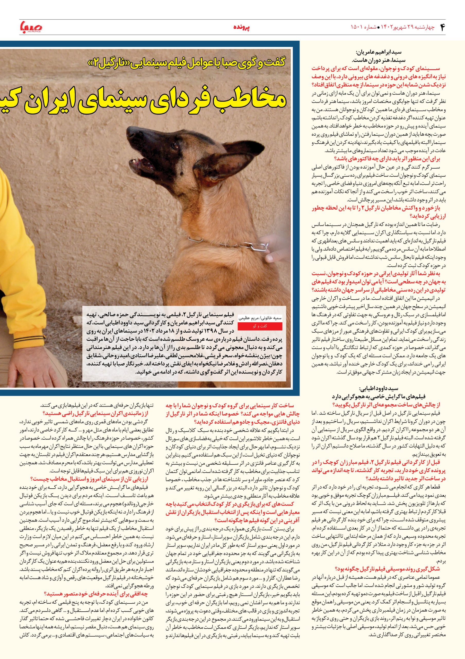 شماره۱۵۰۱| روزنامه صبا چهارشنبه ۲۹ شهریور