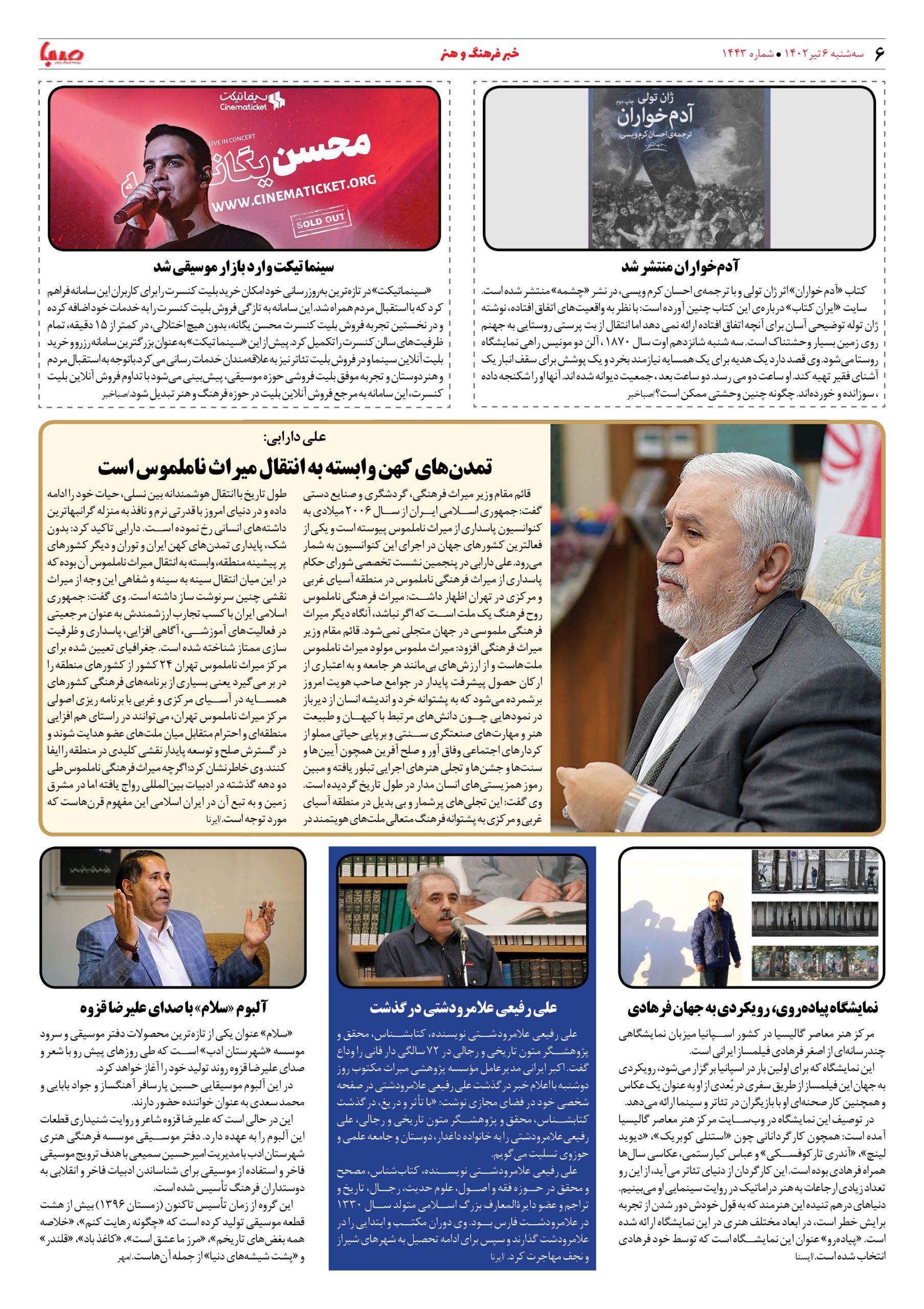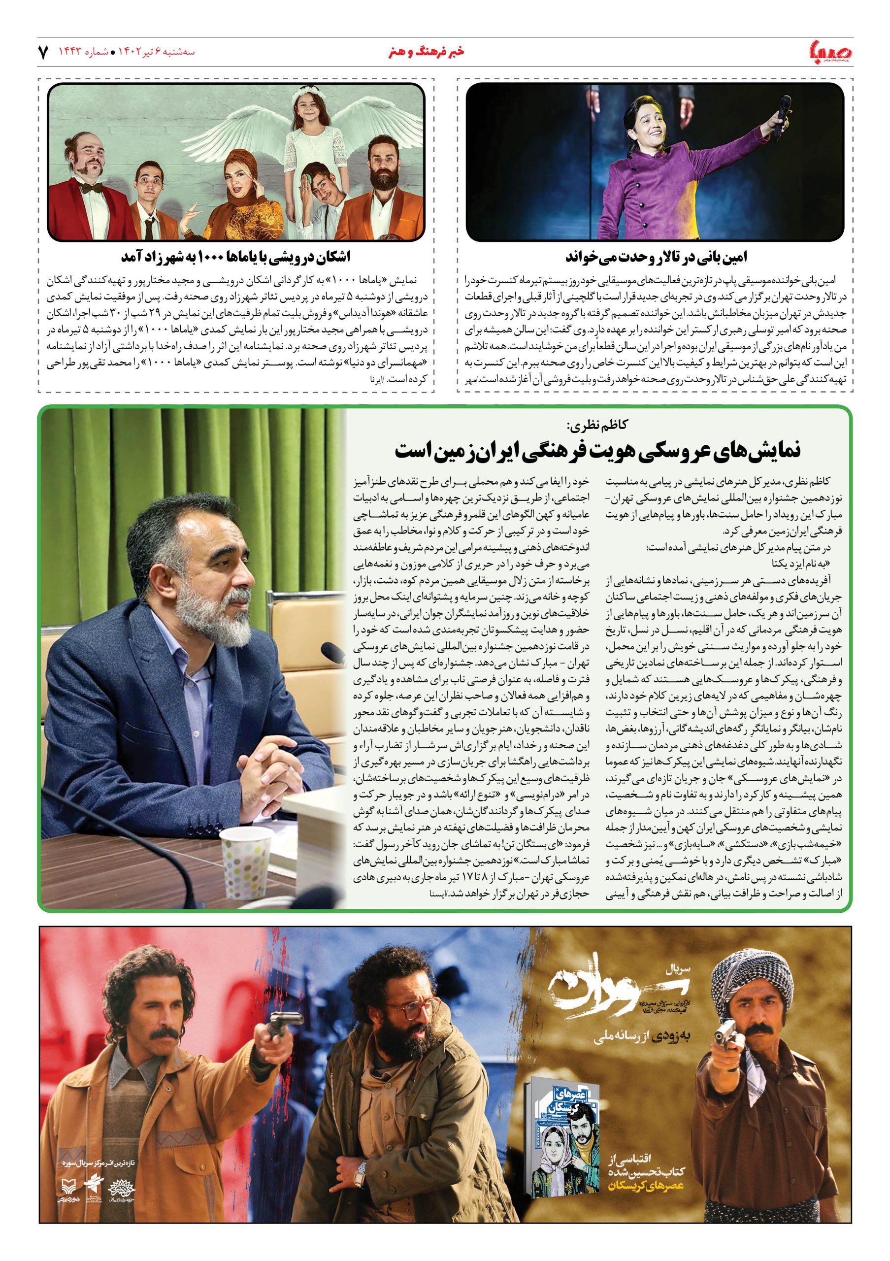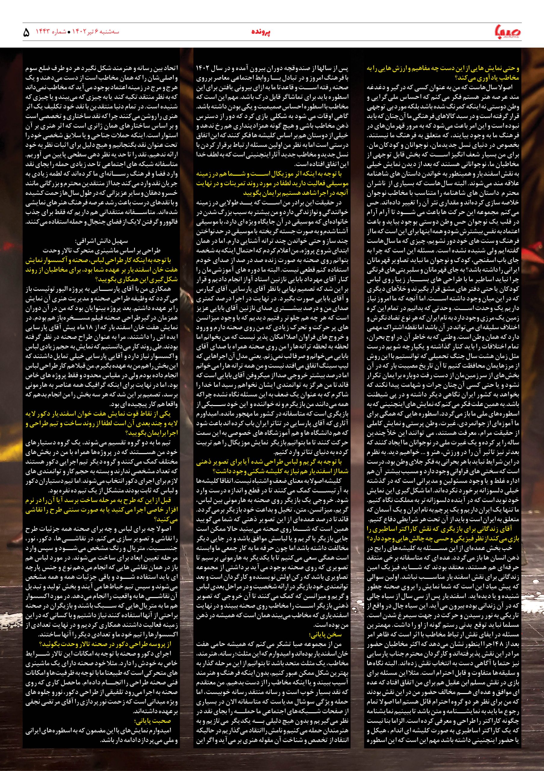 شماره ۱۴۴۳| روزنامه صبا سه شنبه ۶ تیر
