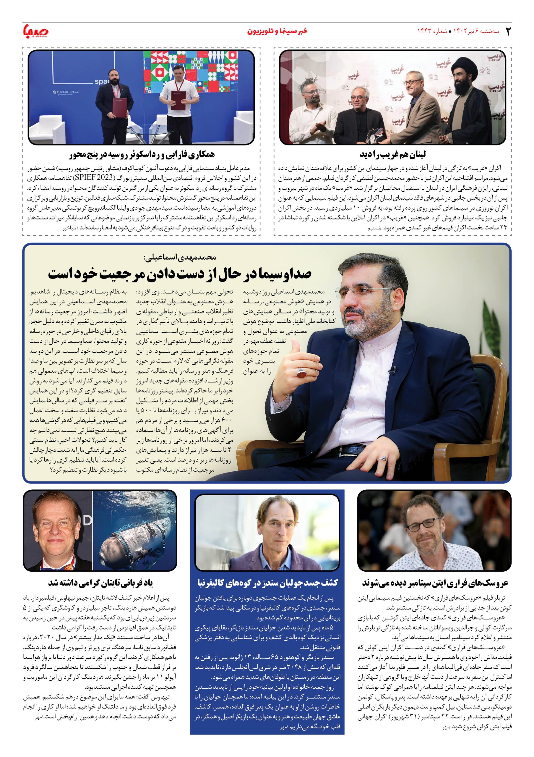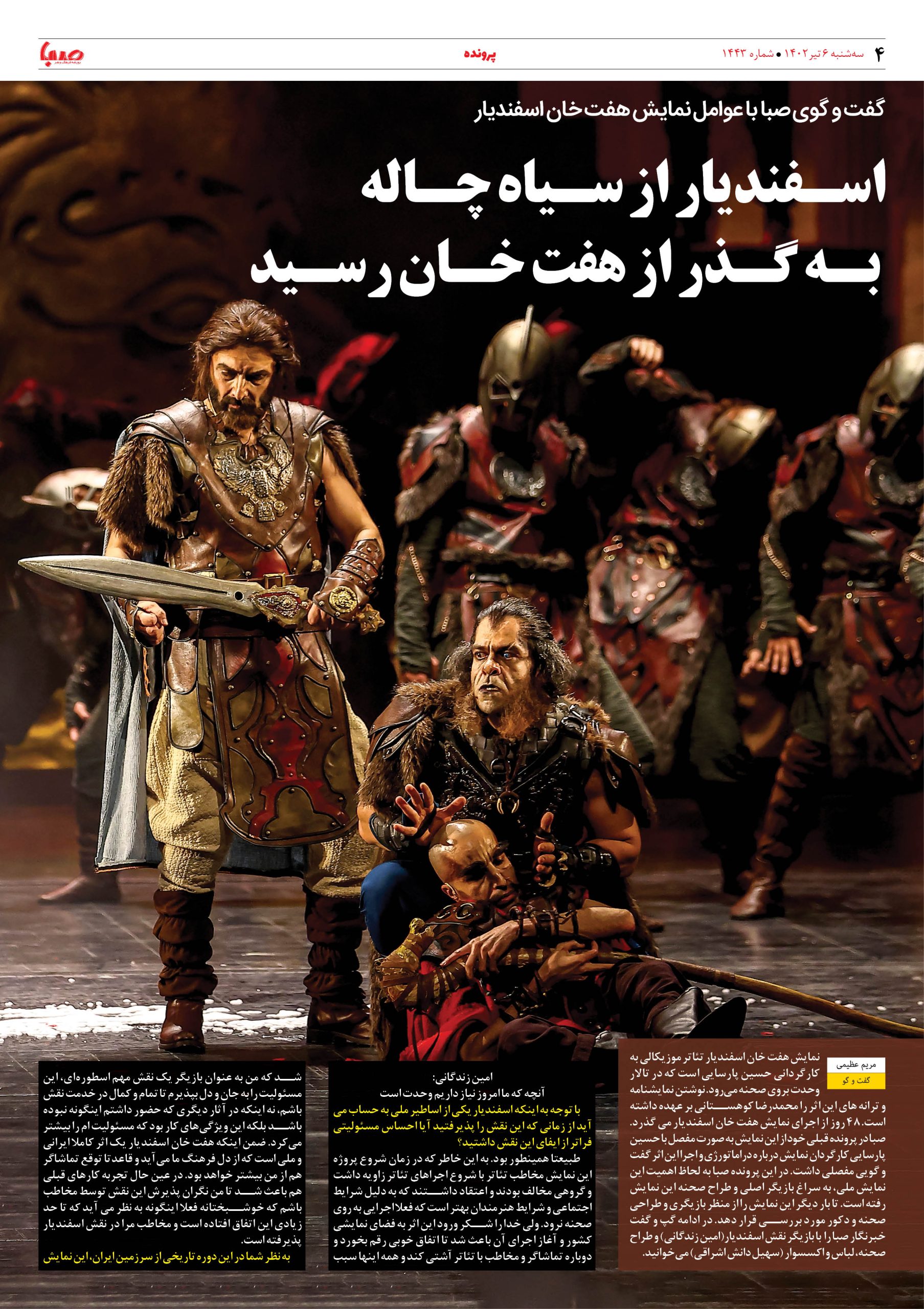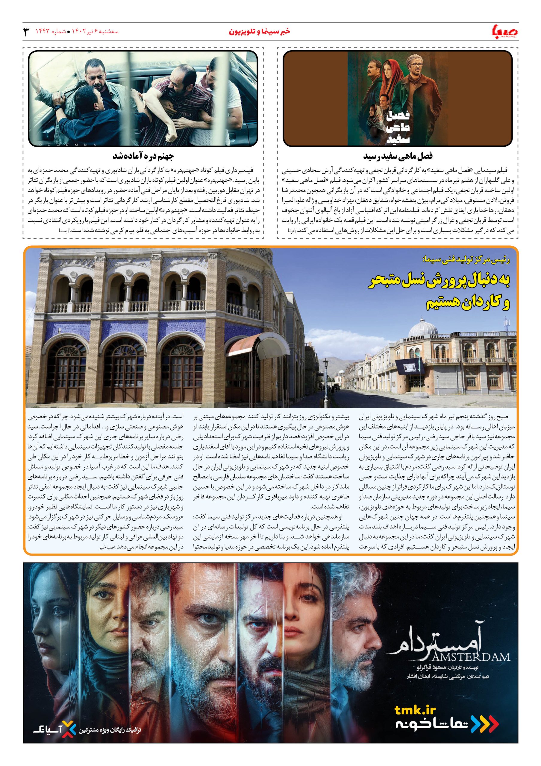 شماره ۱۴۴۳| روزنامه صبا سه شنبه ۶ تیر