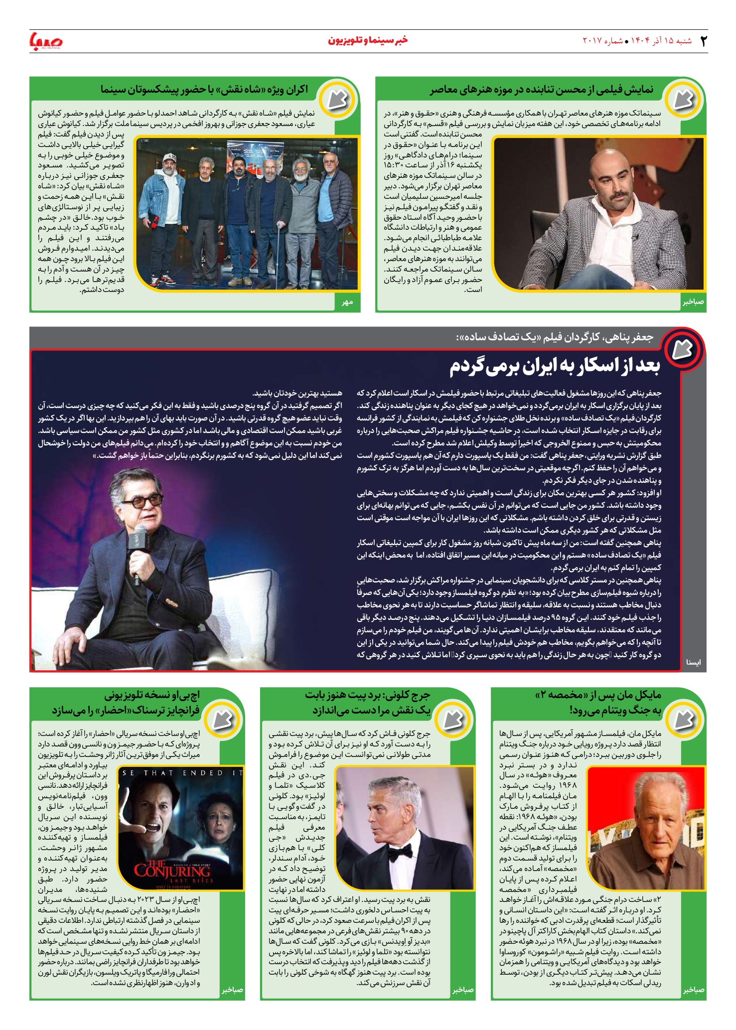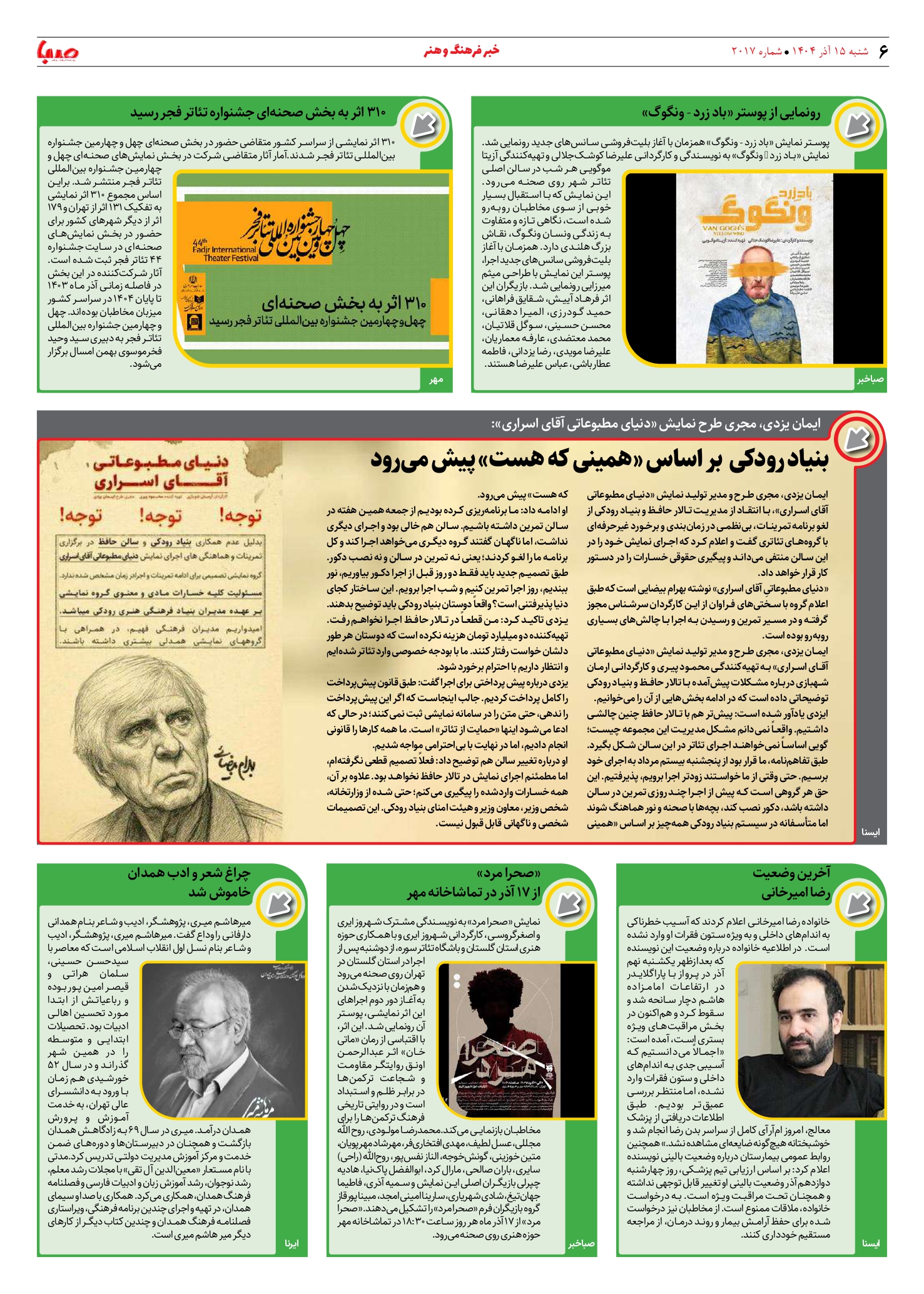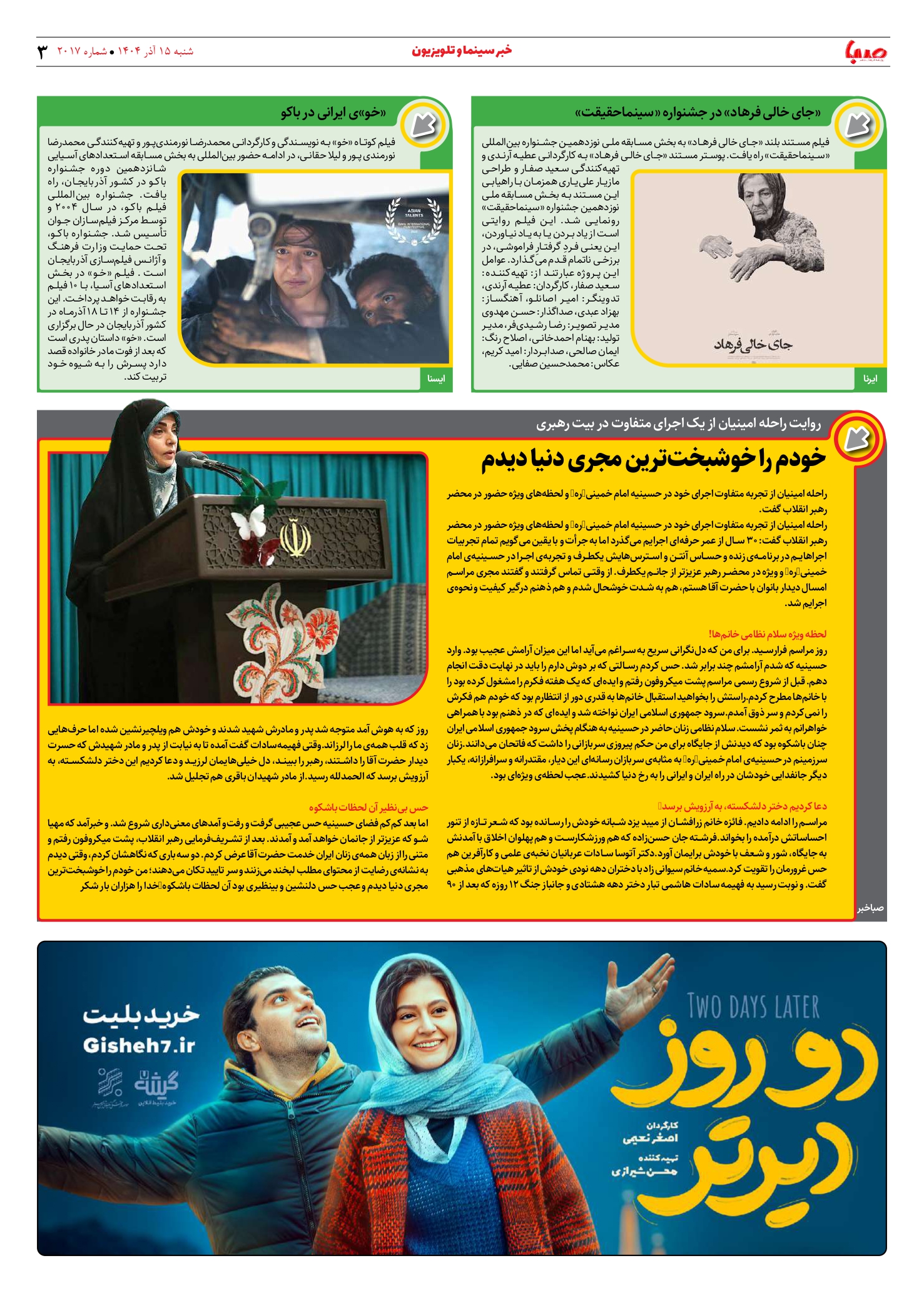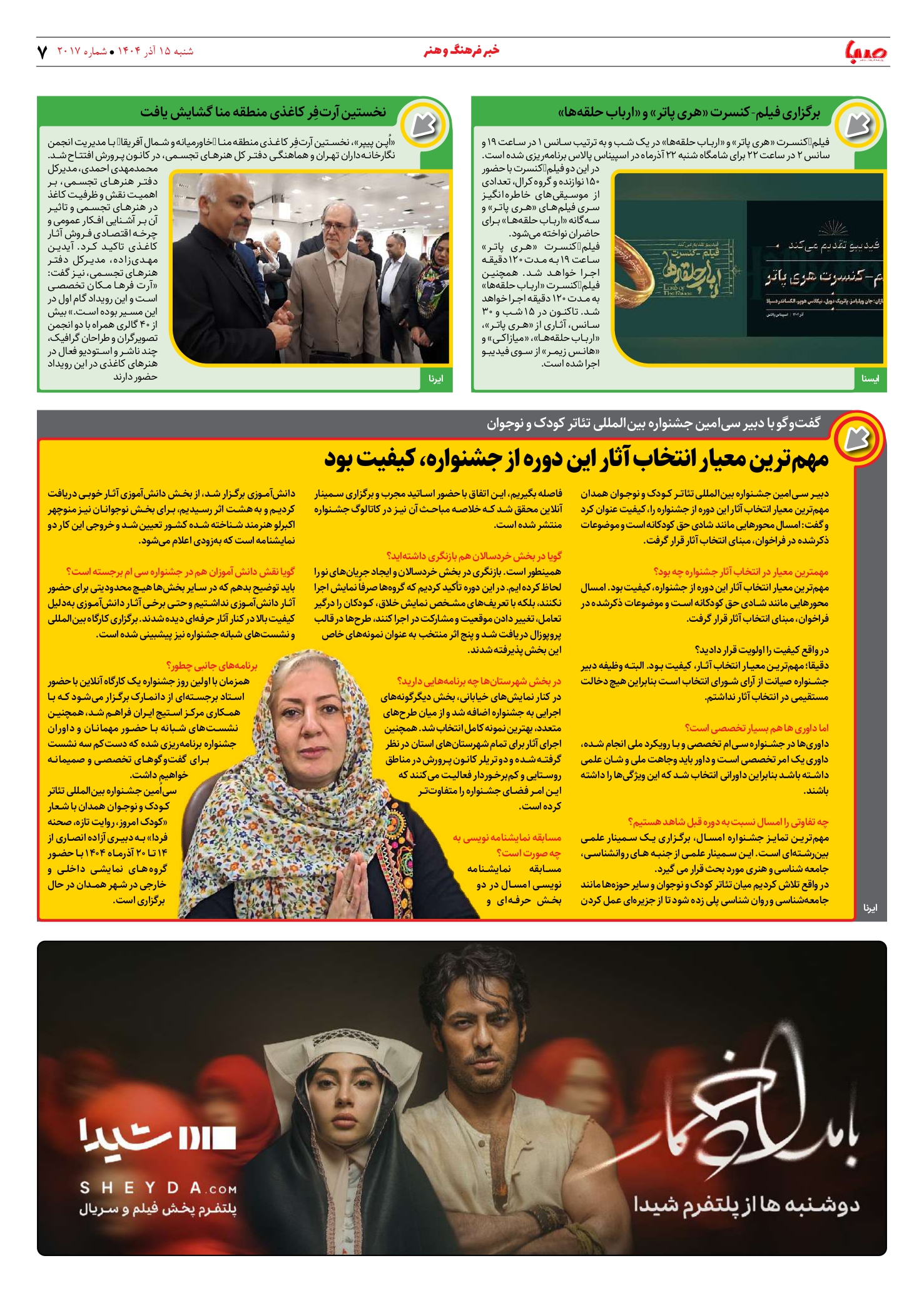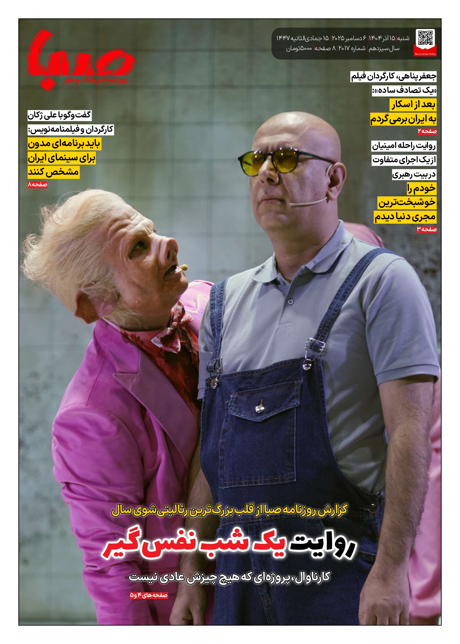 شماره 2017| روزنامه صبا شنبه 15 آذر ۱۴۰۴