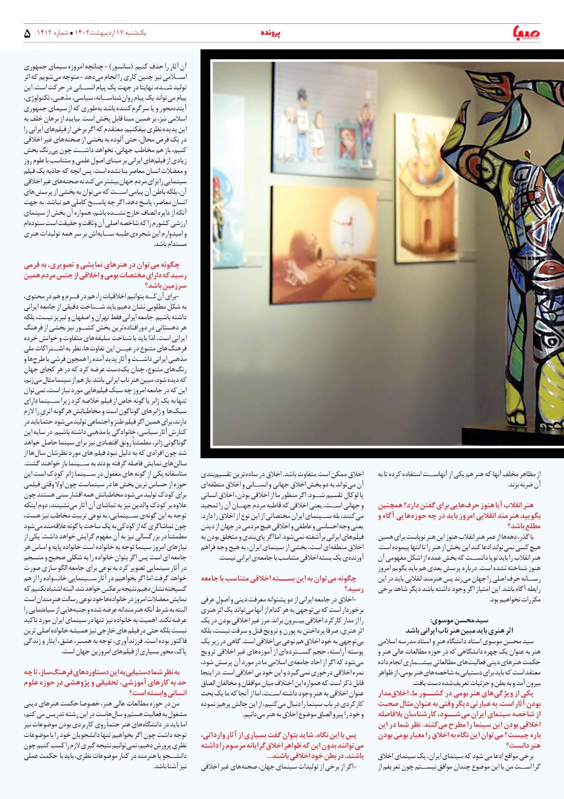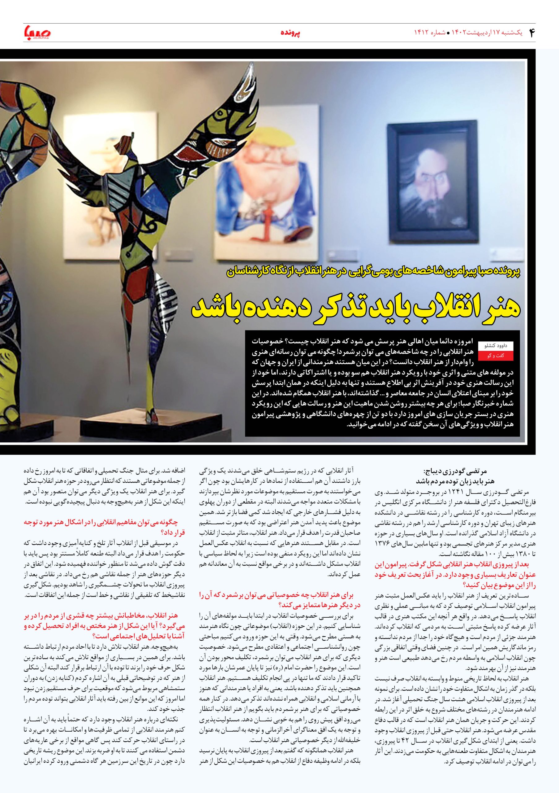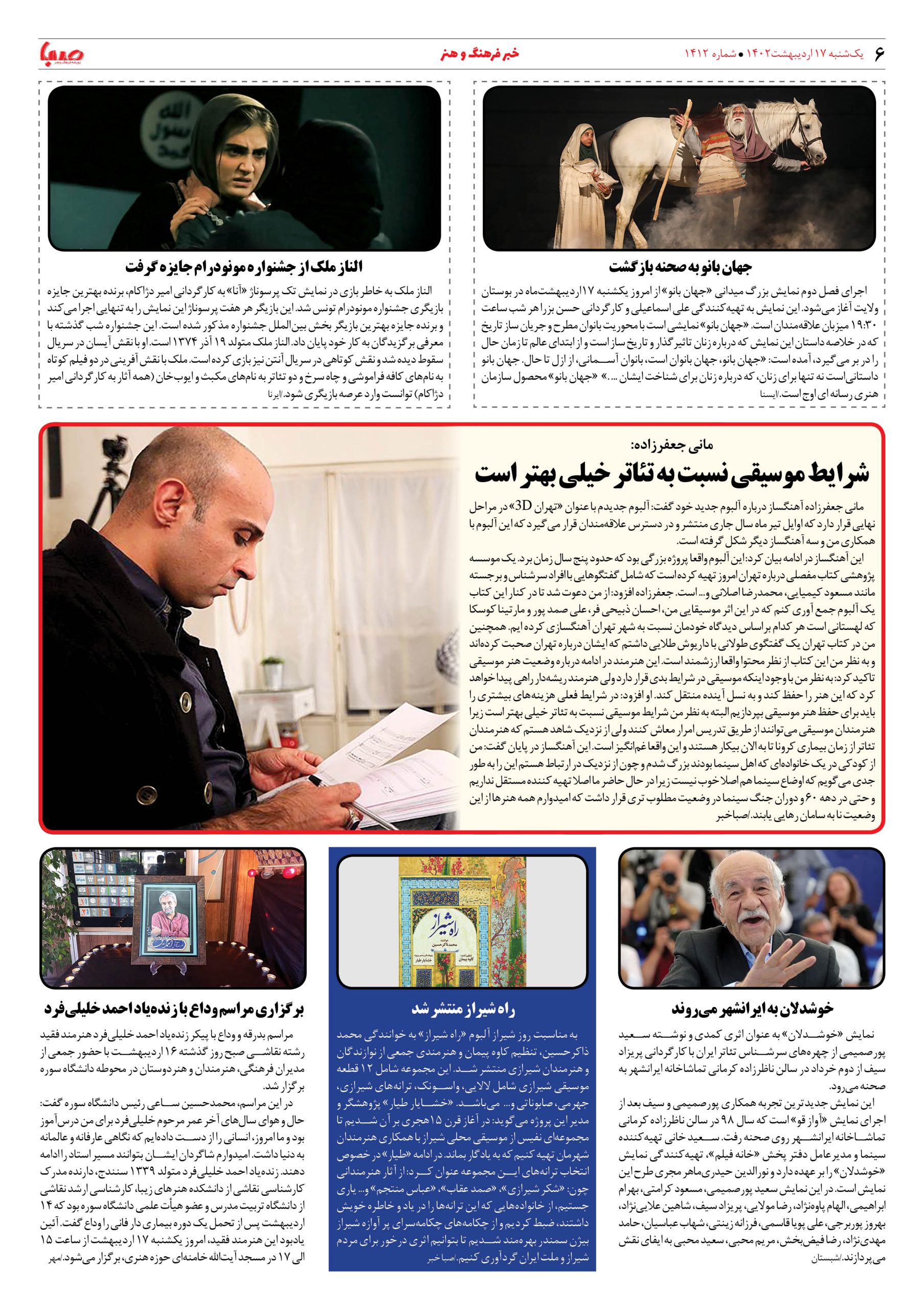 شماره ۱۴۱۲| روزنامه صبا یکشنبه ۱۷ اردیبهشت