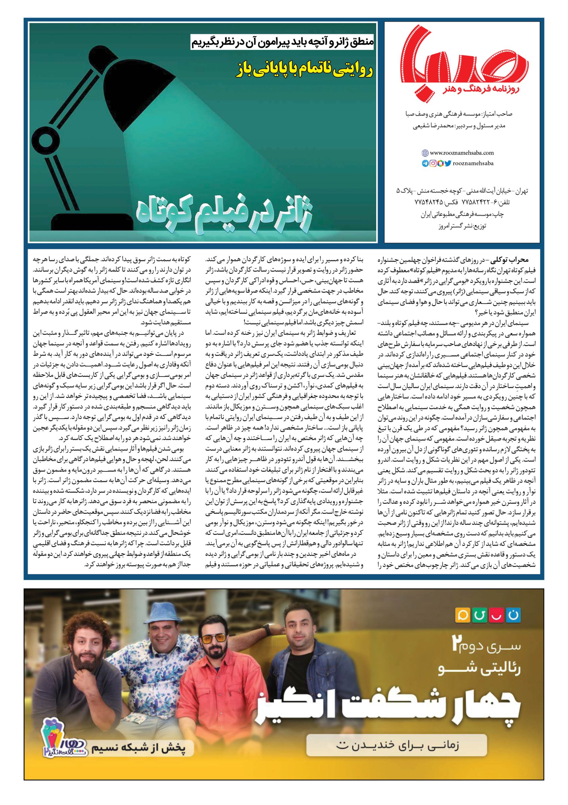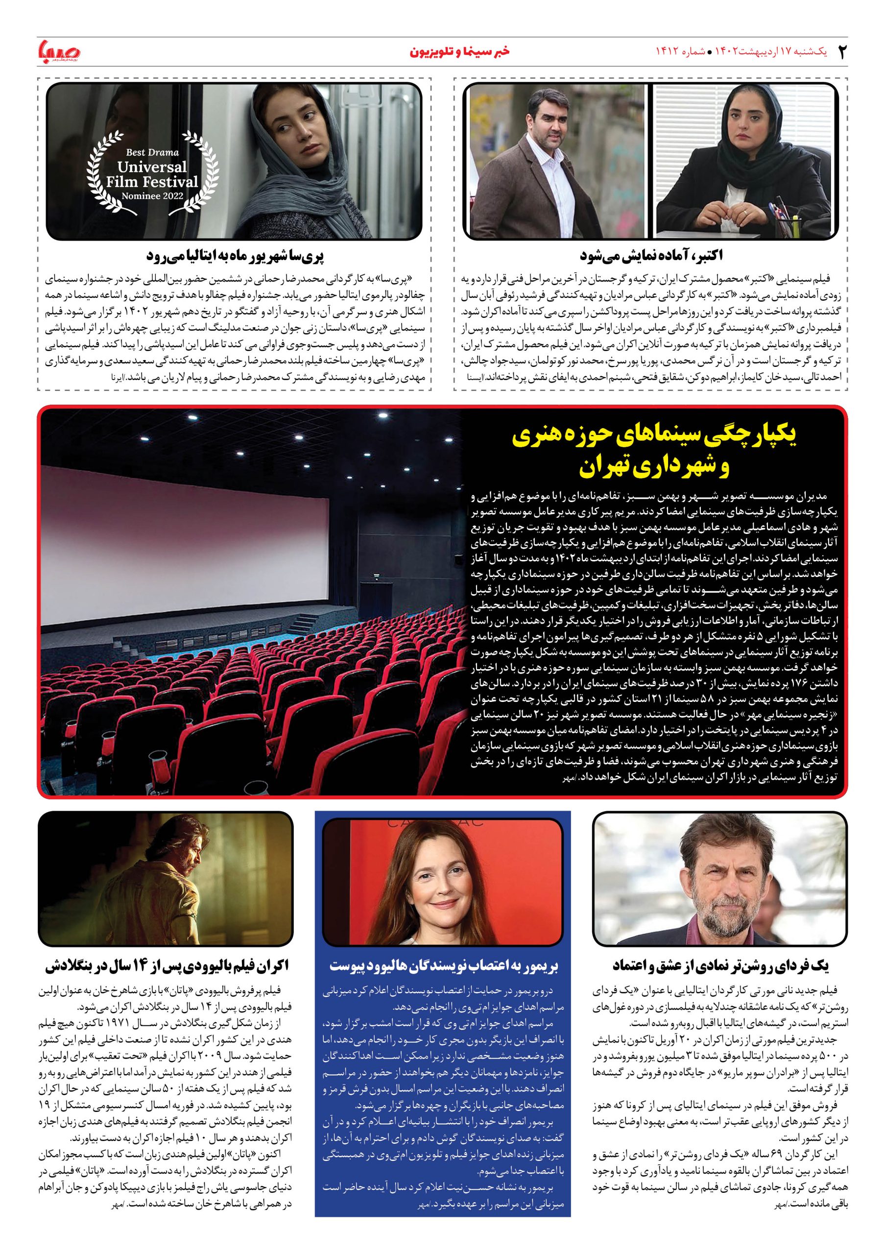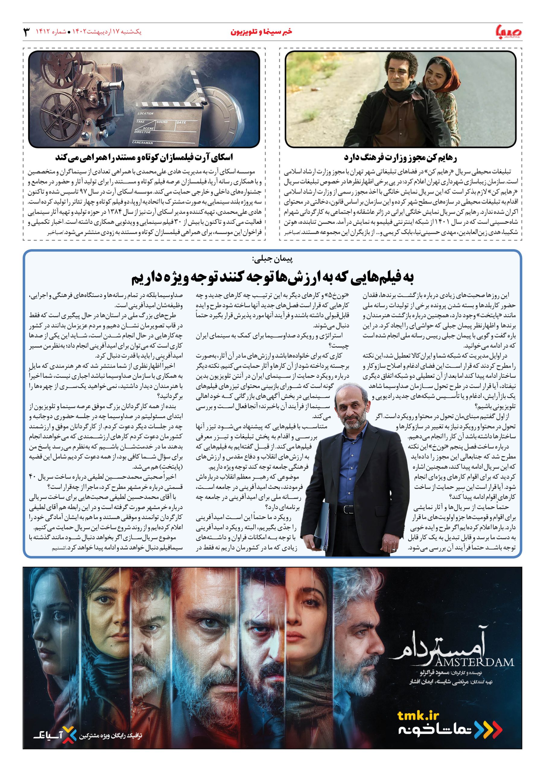 شماره ۱۴۱۲| روزنامه صبا یکشنبه ۱۷ اردیبهشت