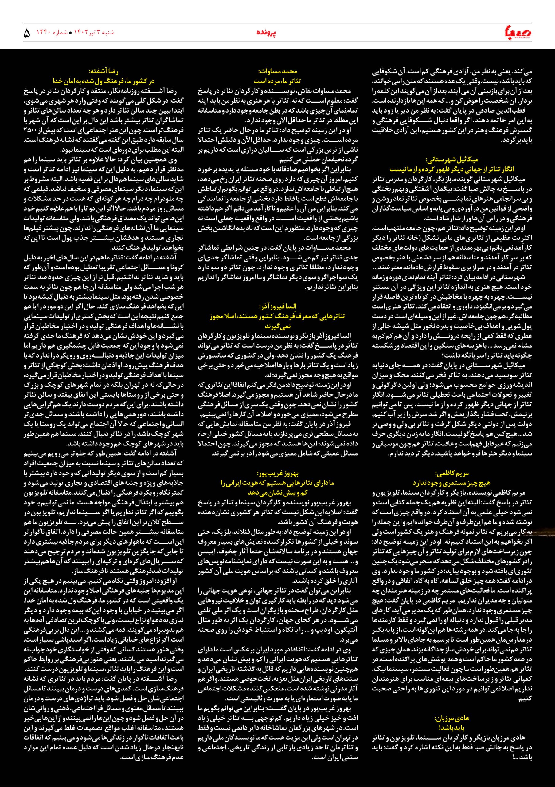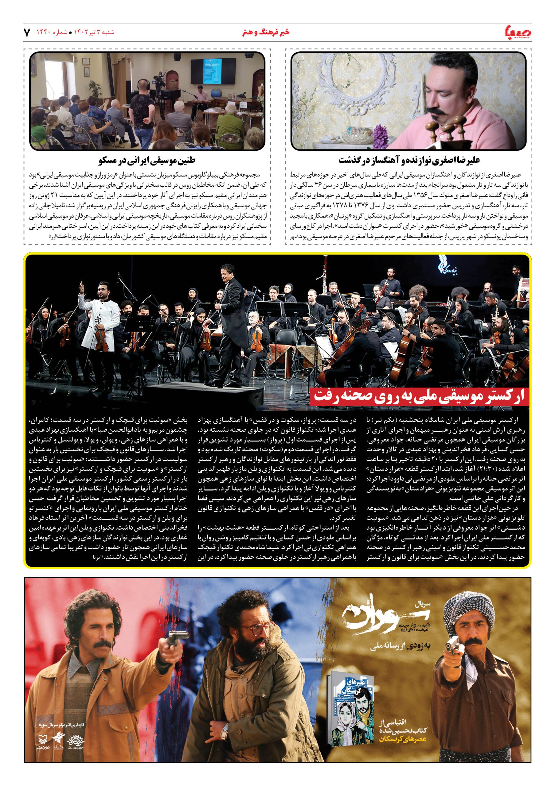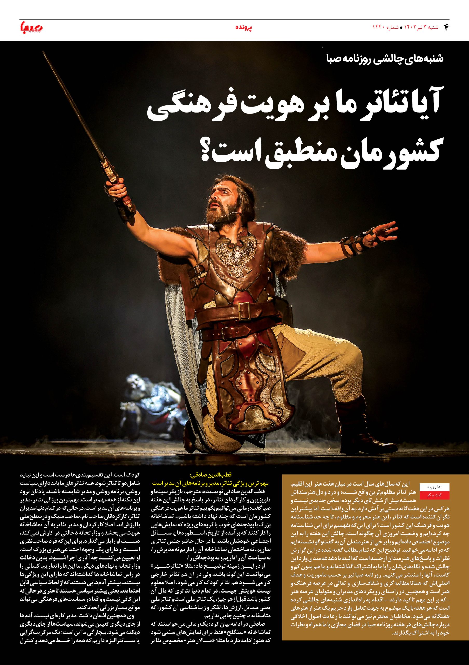 شماره ۱۴۴۰| روزنامه صبا شنبه ۳ تیر
