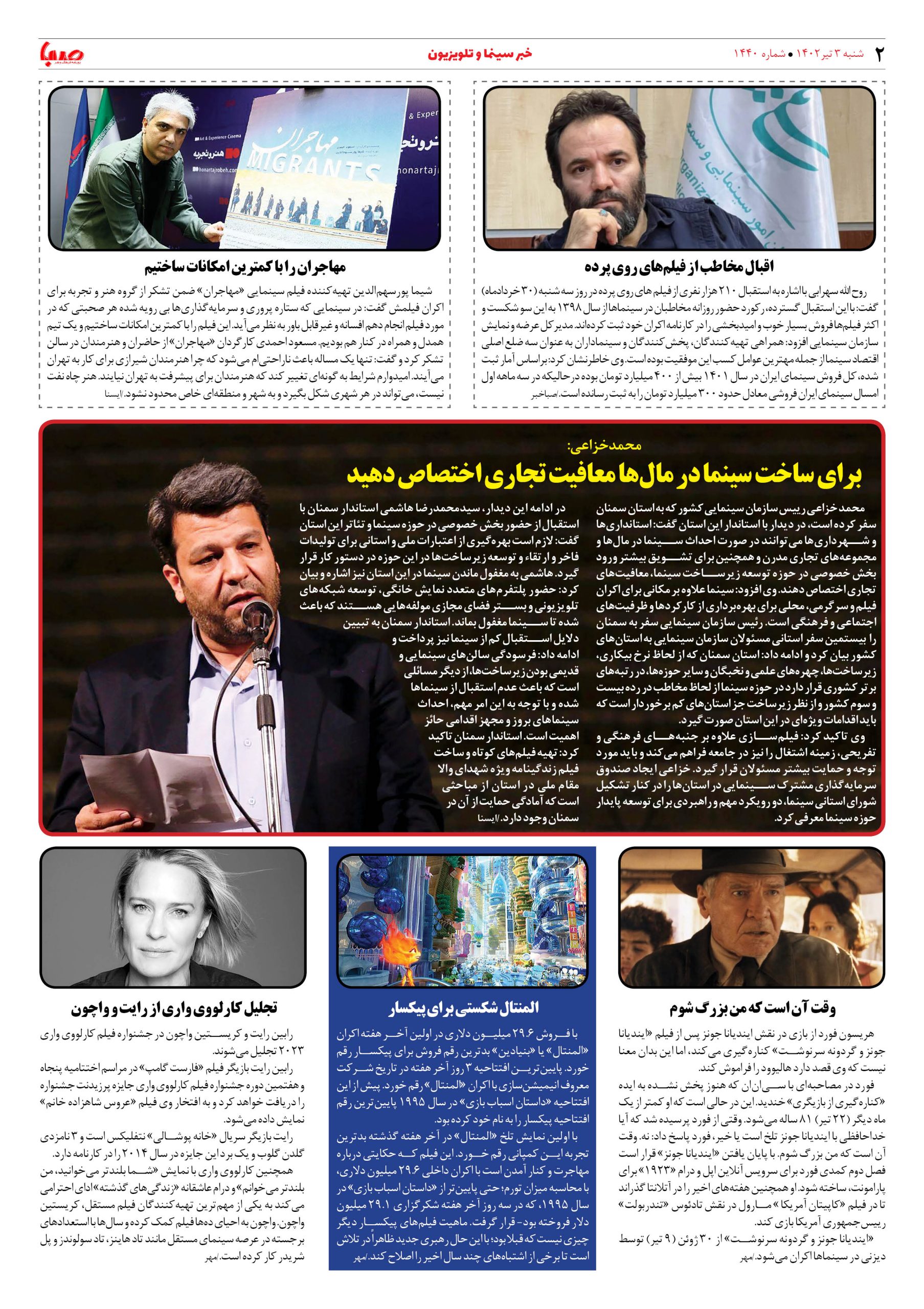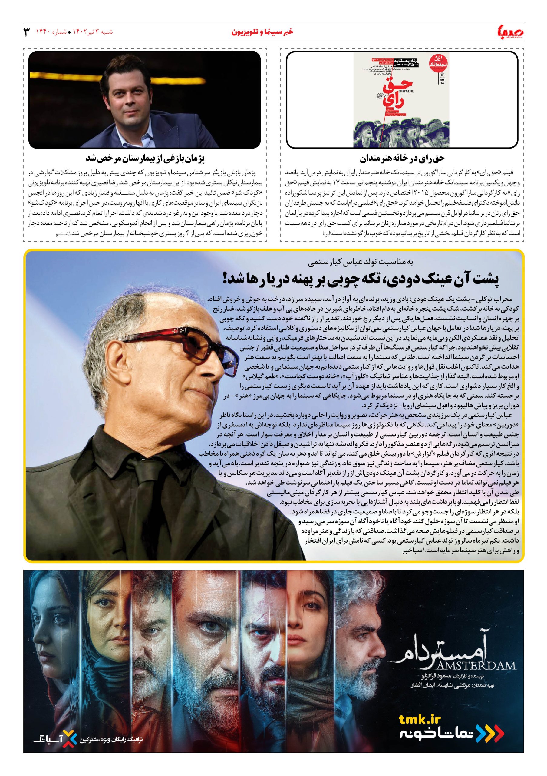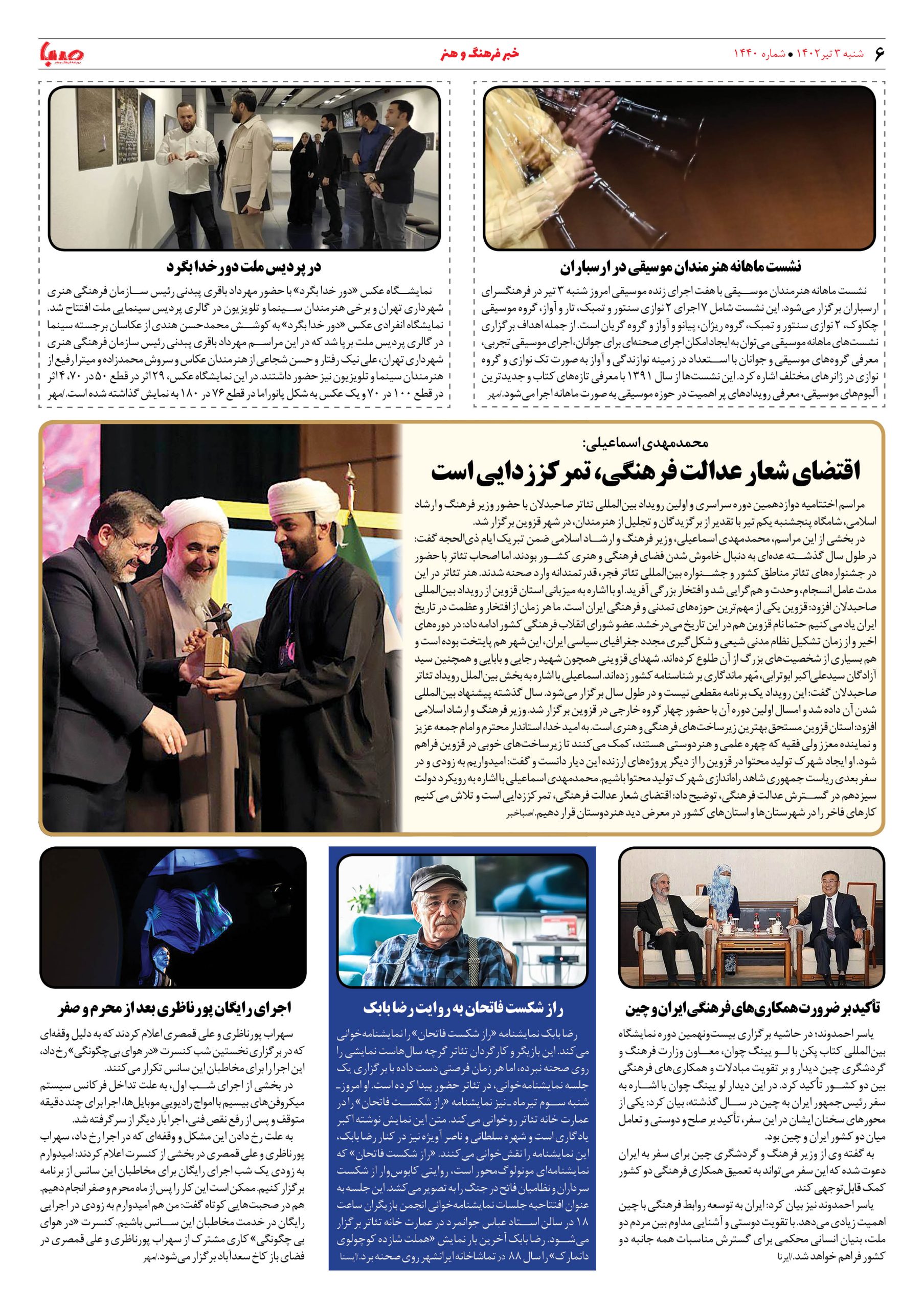 شماره ۱۴۴۰| روزنامه صبا شنبه ۳ تیر