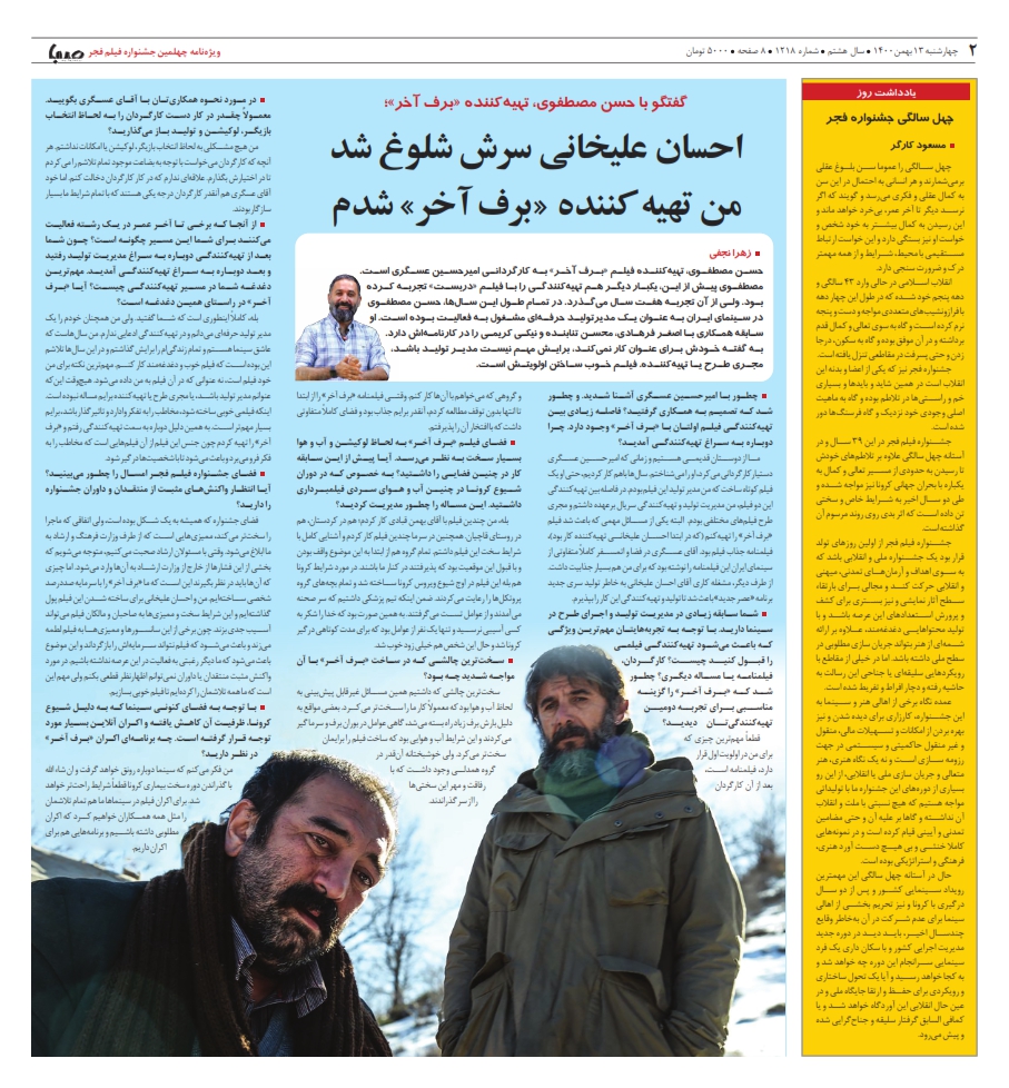 شماره ۱۲۱۸| روزنامه صبا چهارشنبه ۱۳ بهمن ۱۴۰۰