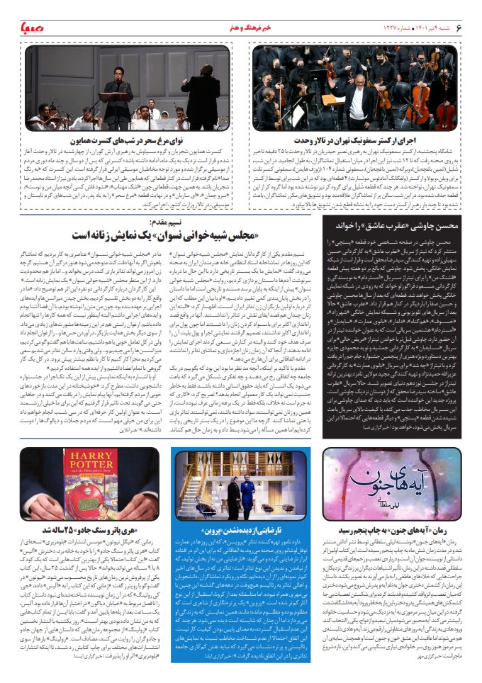 شماره ۱۲۲۷| روزنامه صبا شنبه ۴ تیر ۱۴۰۱