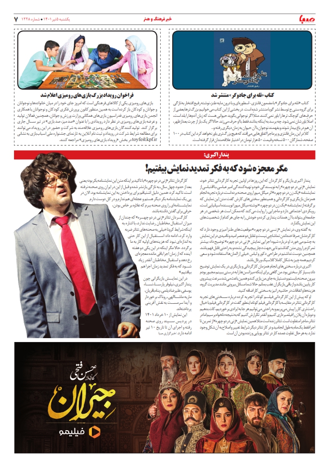 شماره ۱۲۲۸| روزنامه صبا یکشنبه ۵ تیر ۱۴۰۱