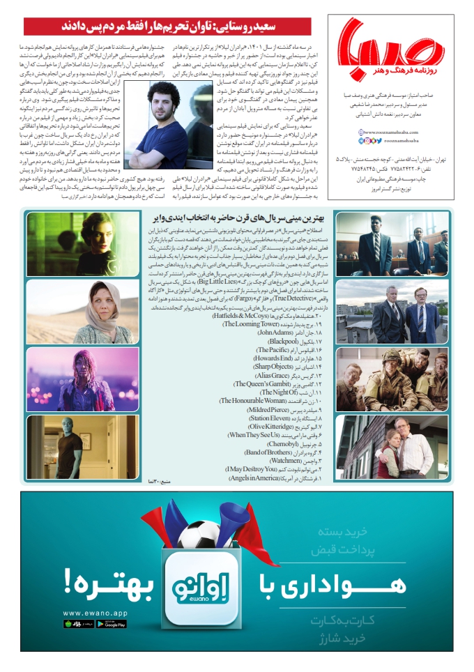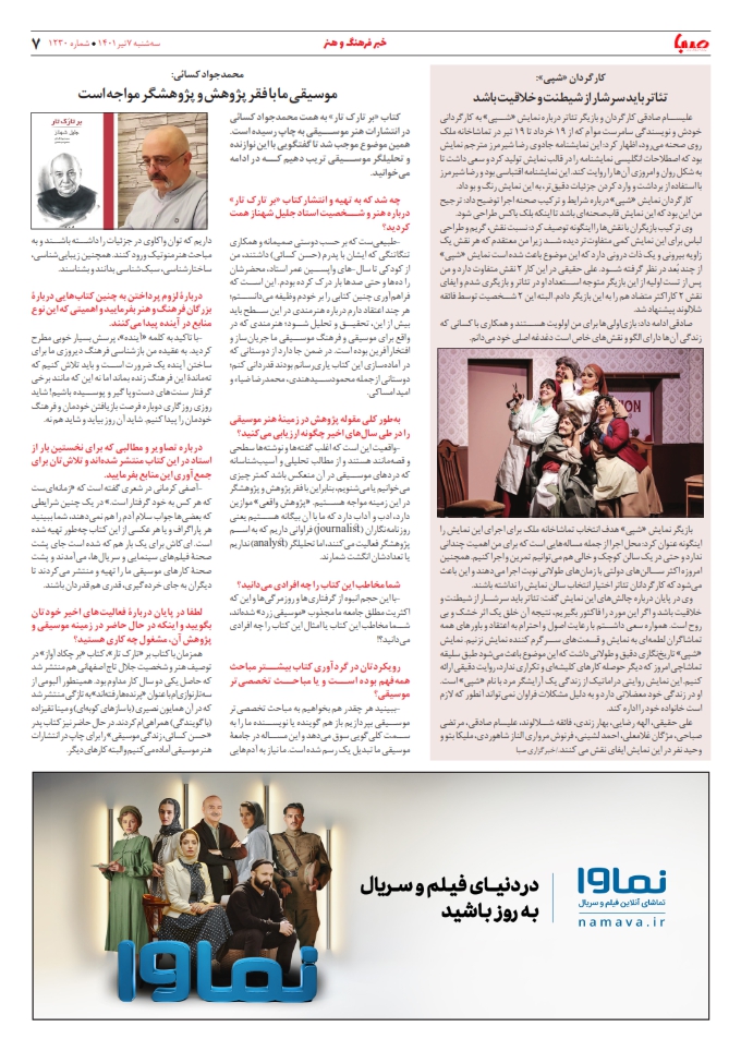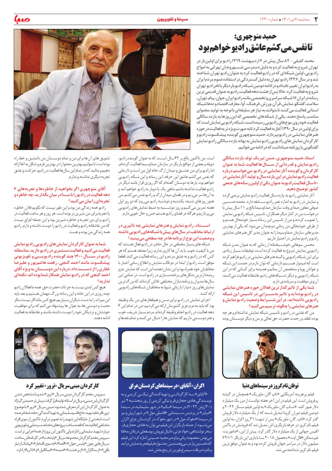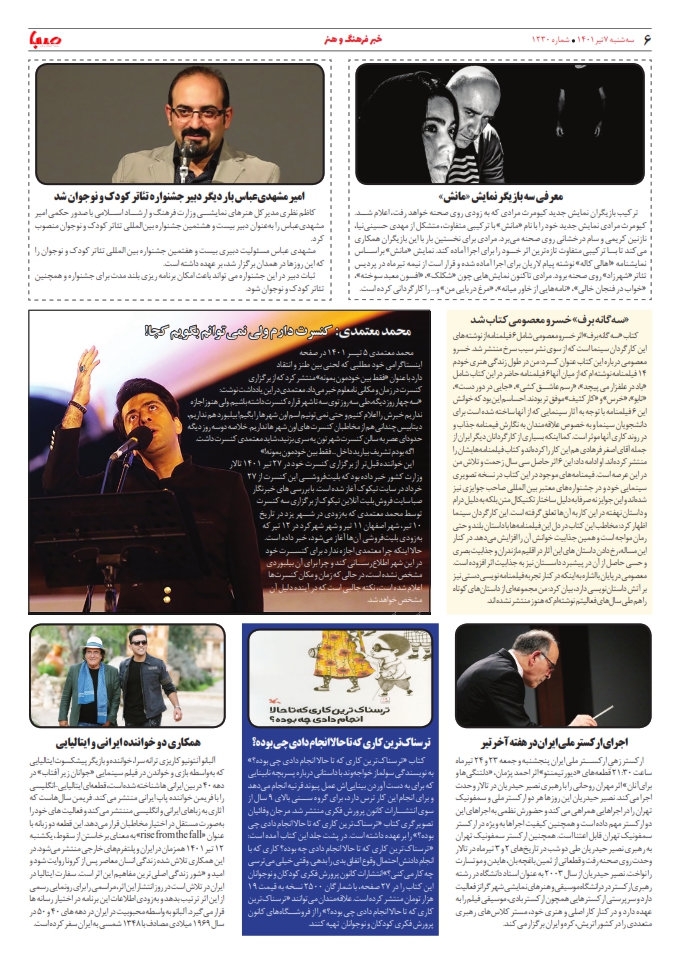 شماره ۱۲۳۰| روزنامه صبا سهشنبه ۷ تیر ۱۴۰۱