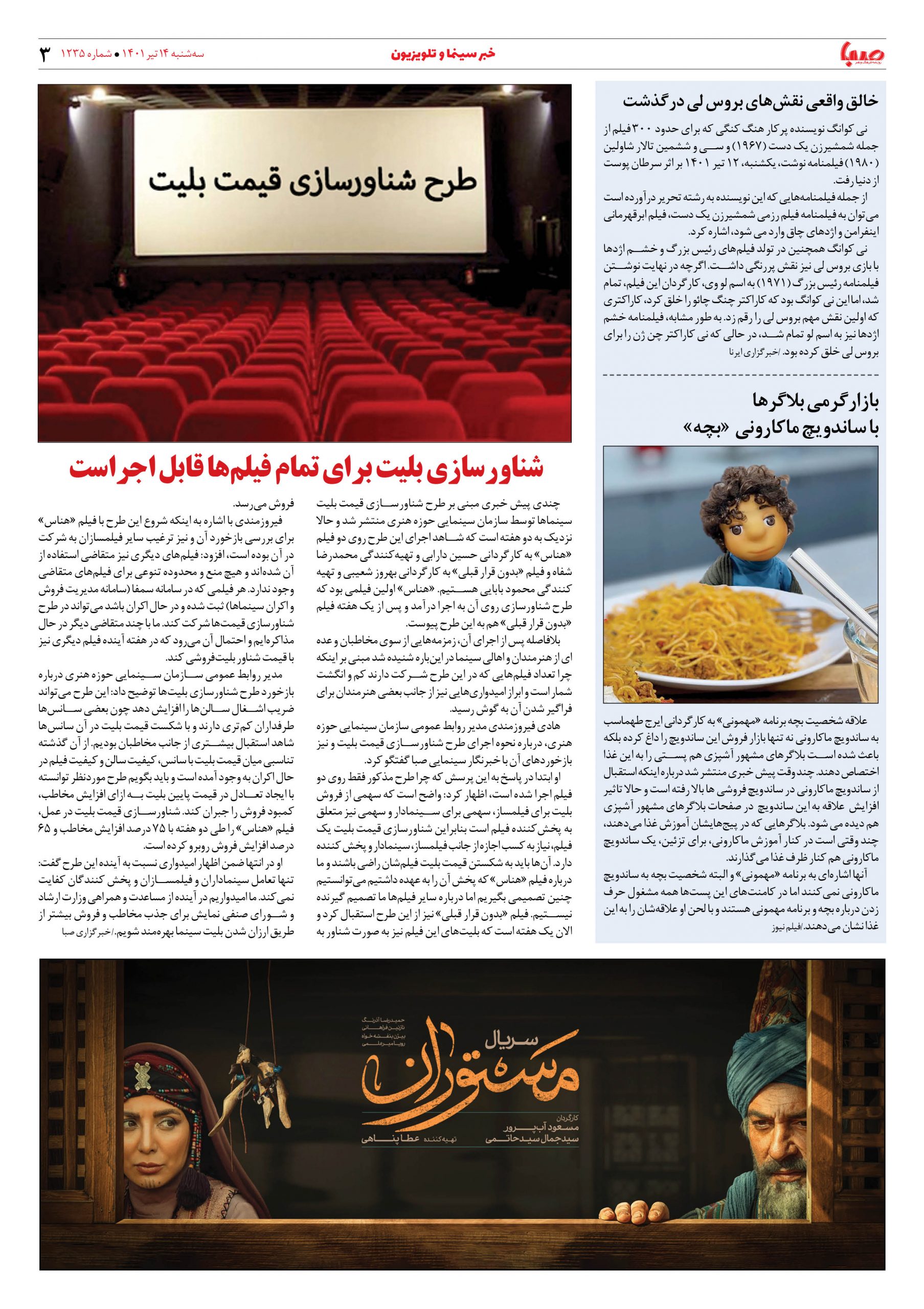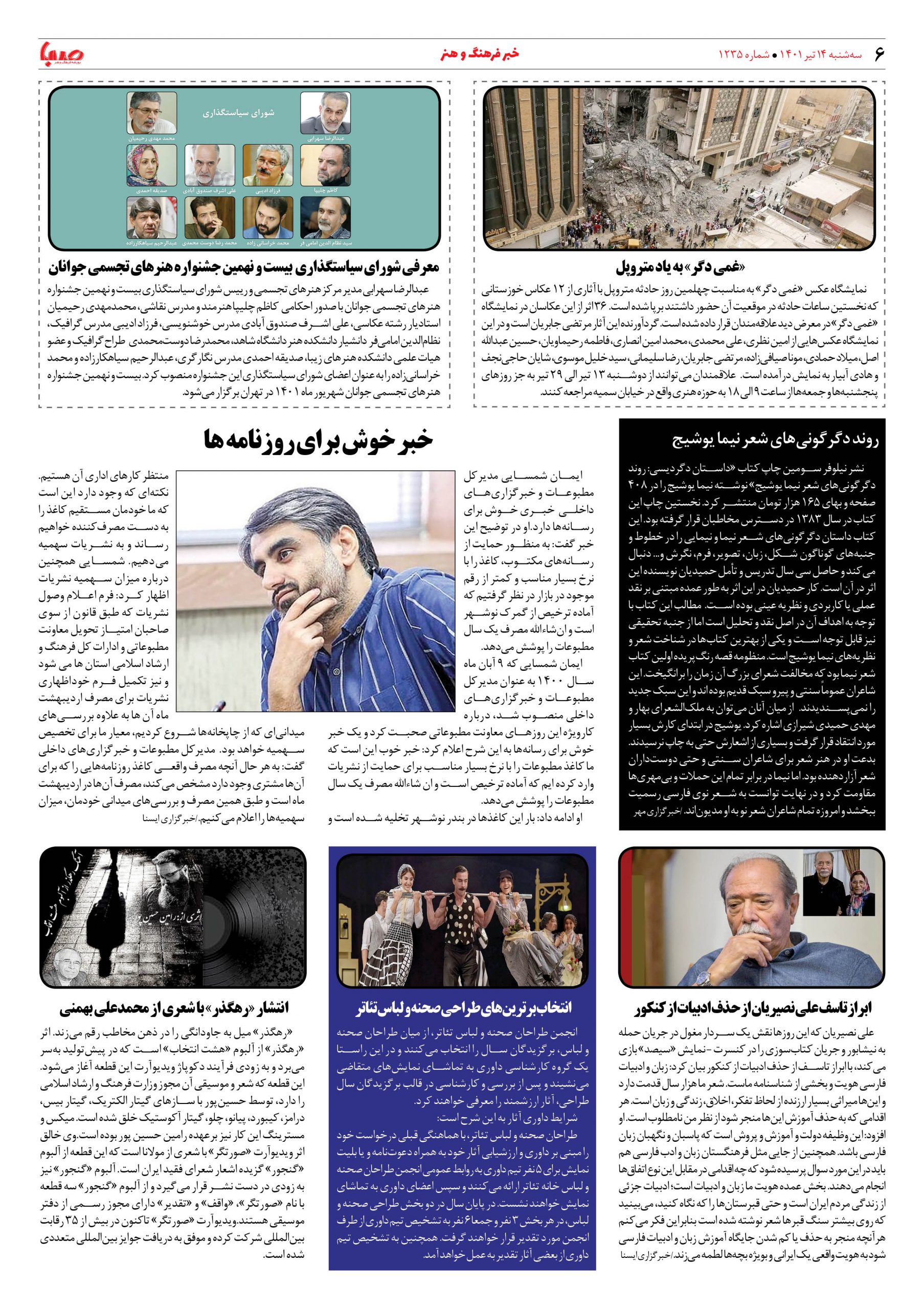 شماره ۱۲۳۵| روزنامه صبا سهشنبه ۱۴ تیر ۱۴۰۱