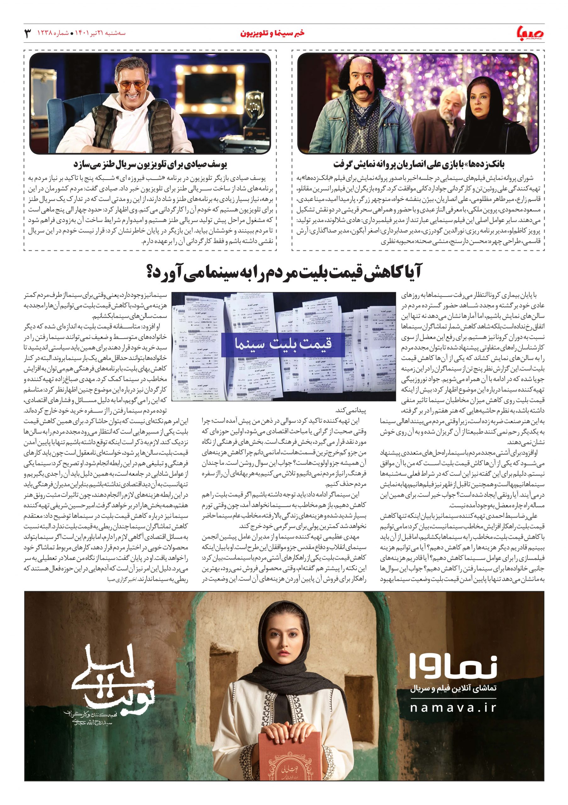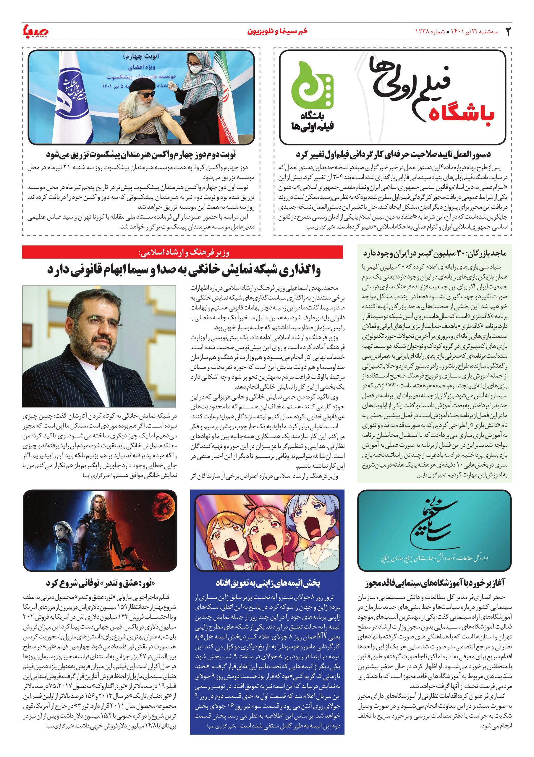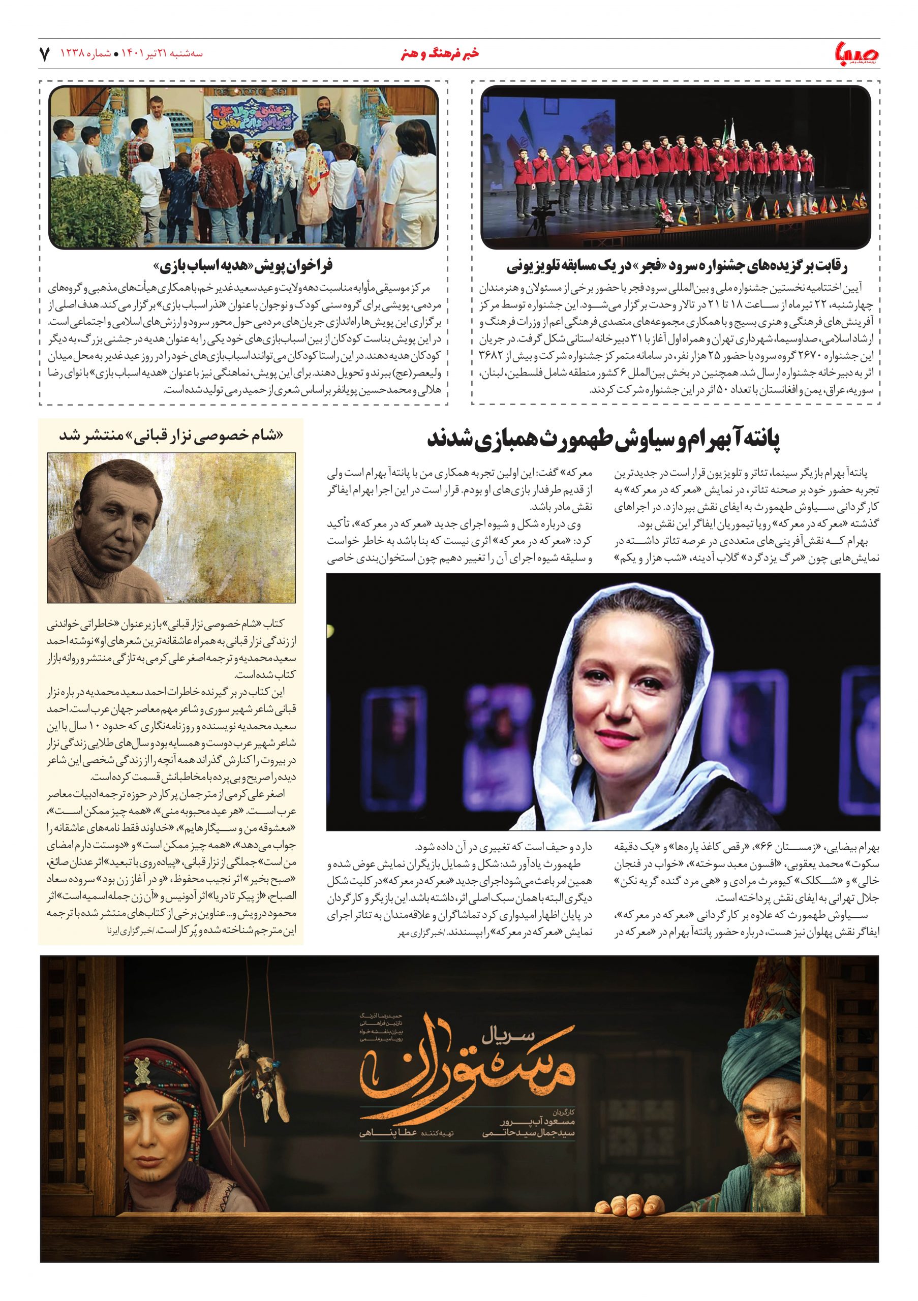 شماره ۱۲۳۸| روزنامه صبا سهشنبه ۲۱ تیر ۱۴۰۱