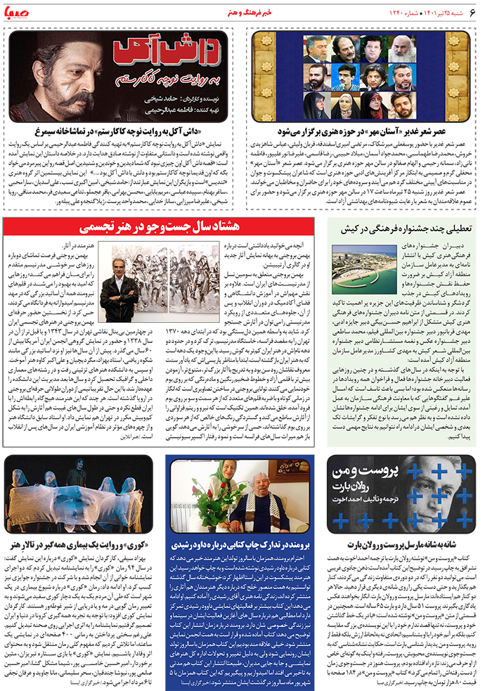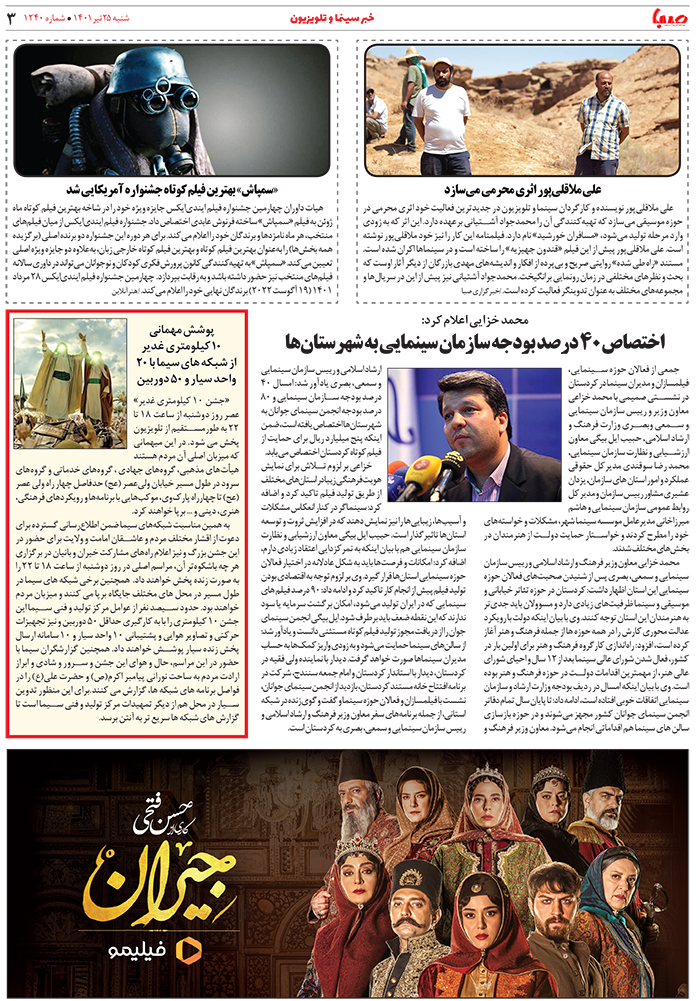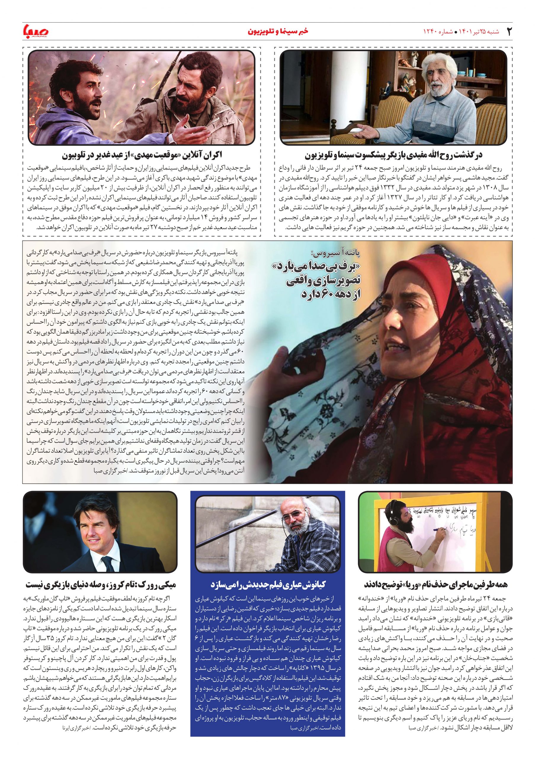 شماره ۱۲۴۰| روزنامه صبا شنبه ۲۵ تیر ۱۴۰۱