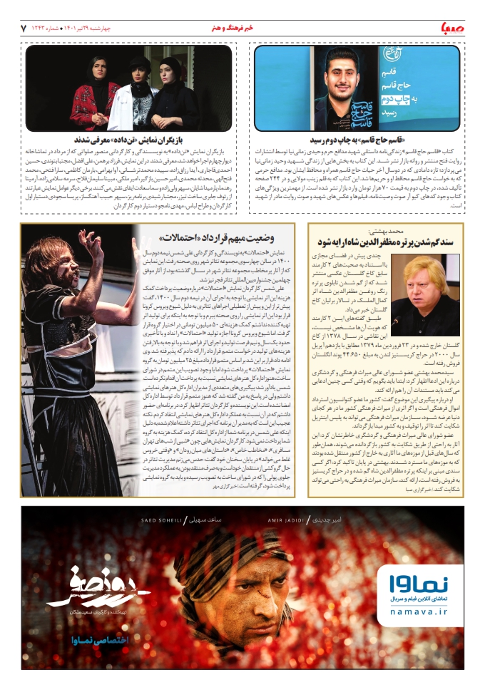 شماره ۱۲۴۳| روزنامه صبا چهارشنبه ۲۹ تیر ۱۴۰۱
