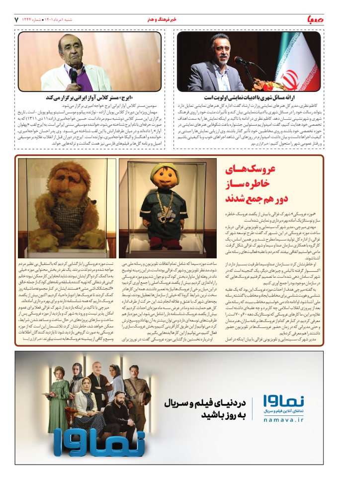 شماره ۱۲۴۴| روزنامه صبا شنبه ۱ مرداد ۱۴۰۱