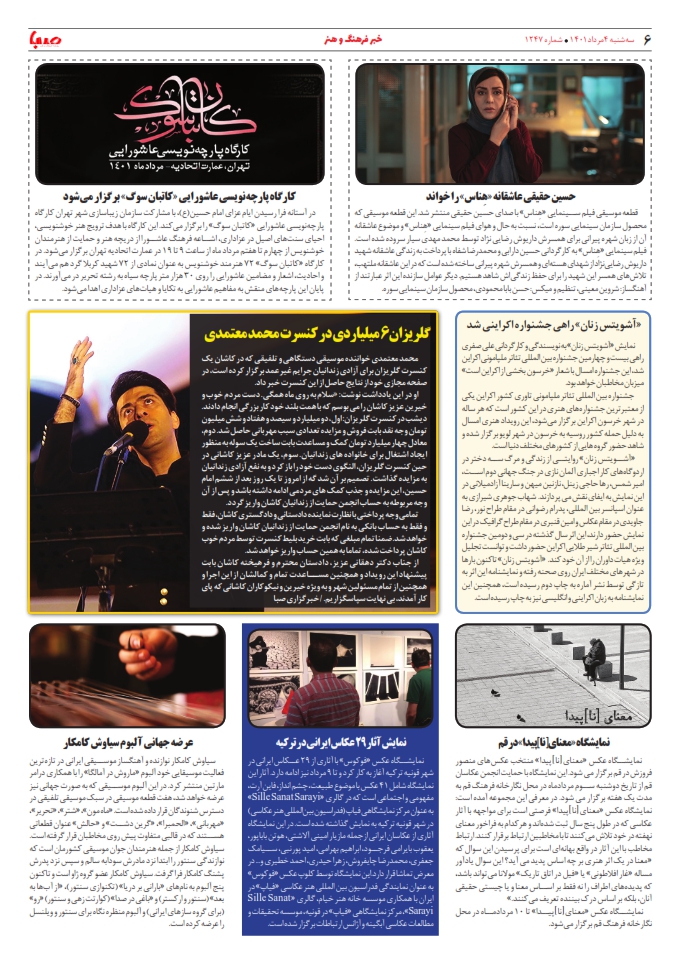 شماره ۱۲۴۷| روزنامه صبا سهشنبه ۴ مرداد ۱۴۰۱