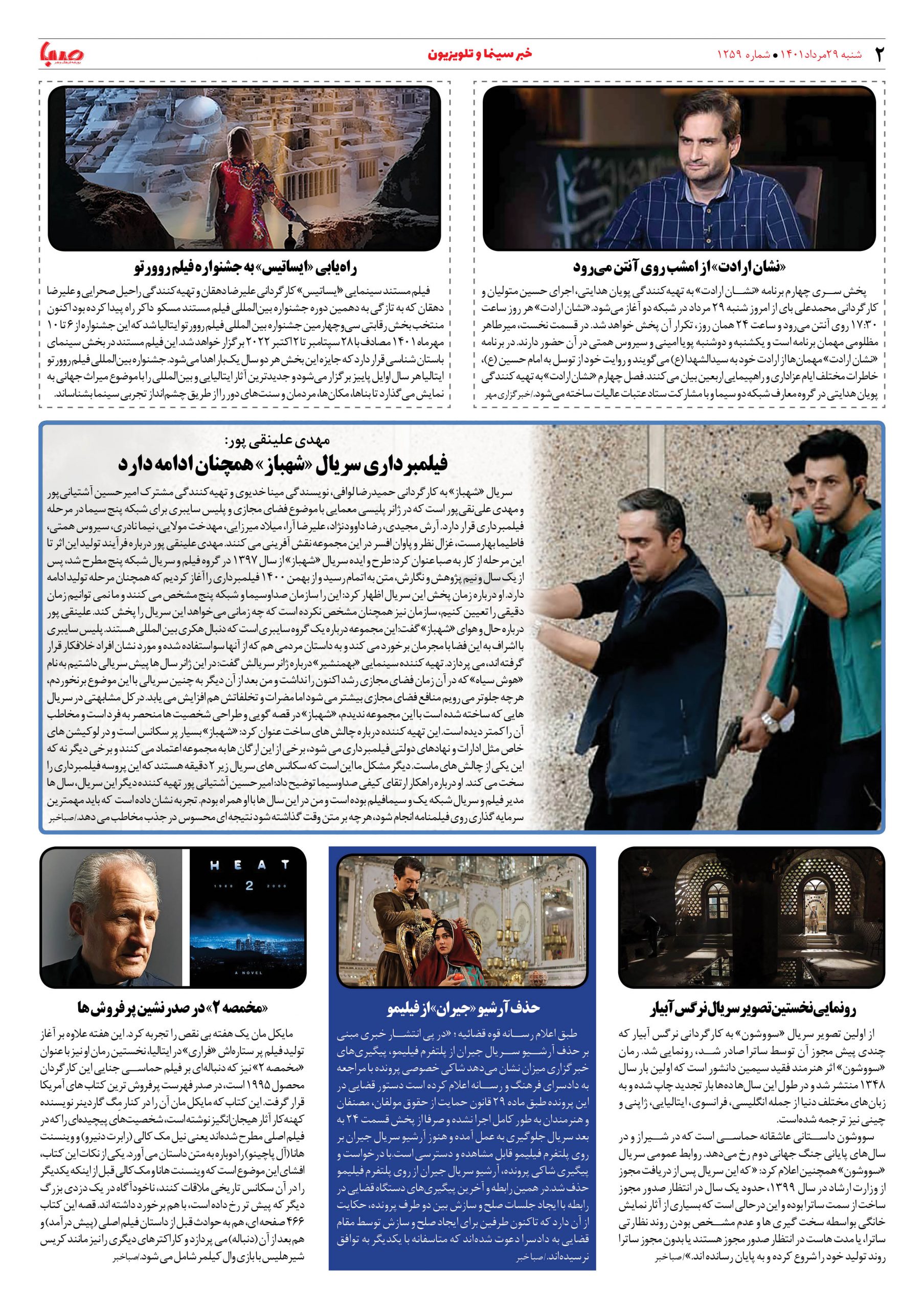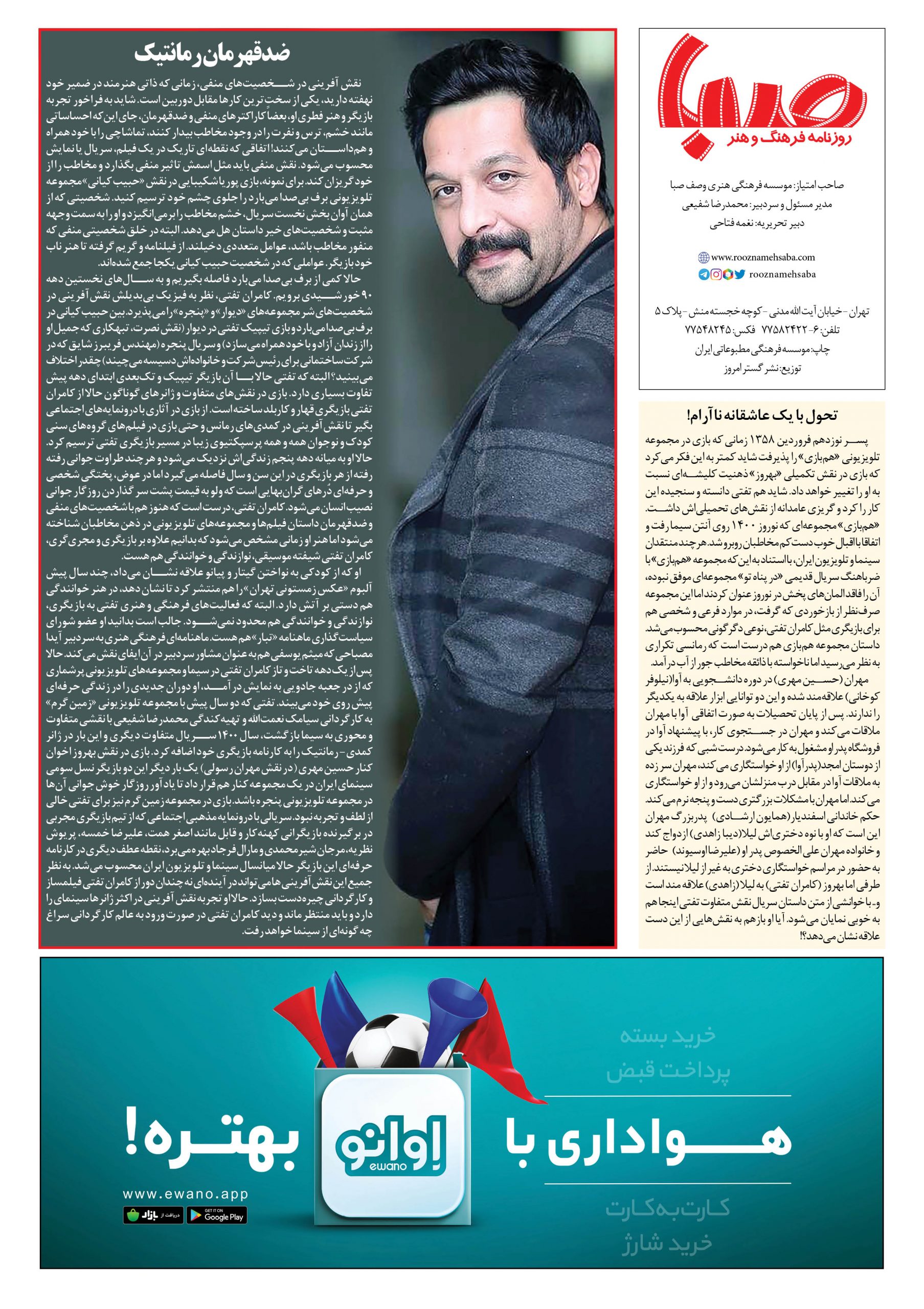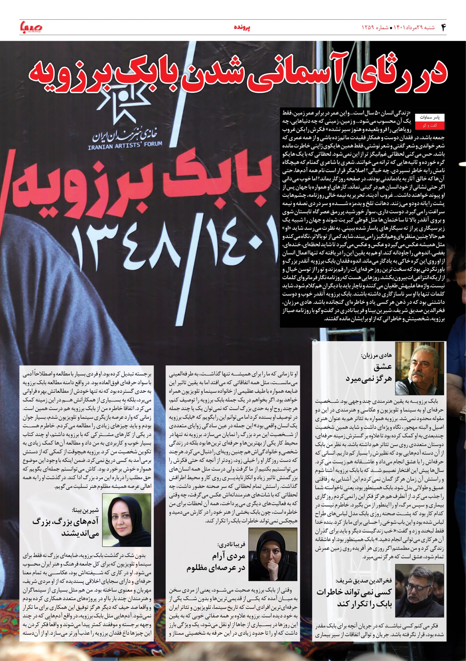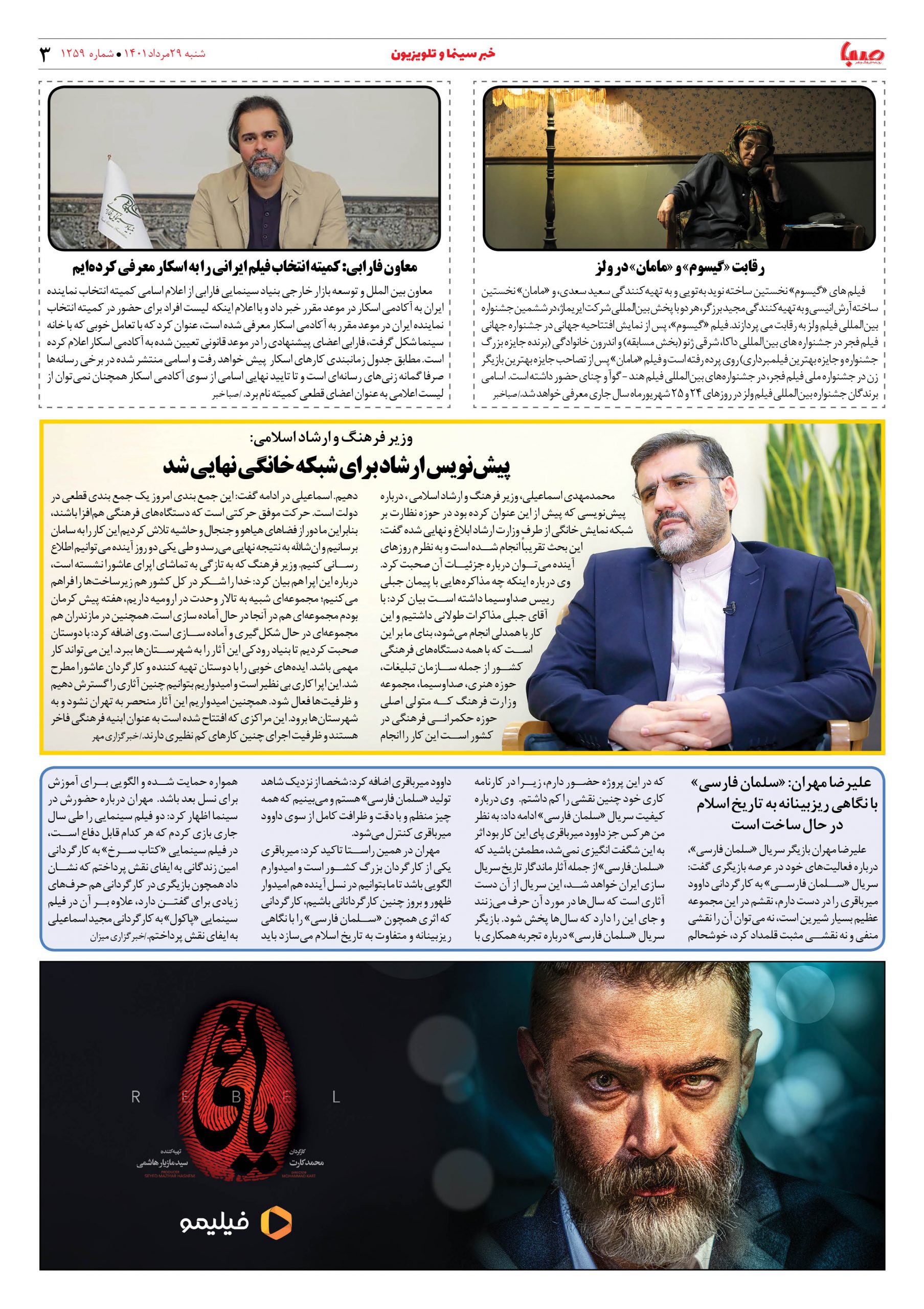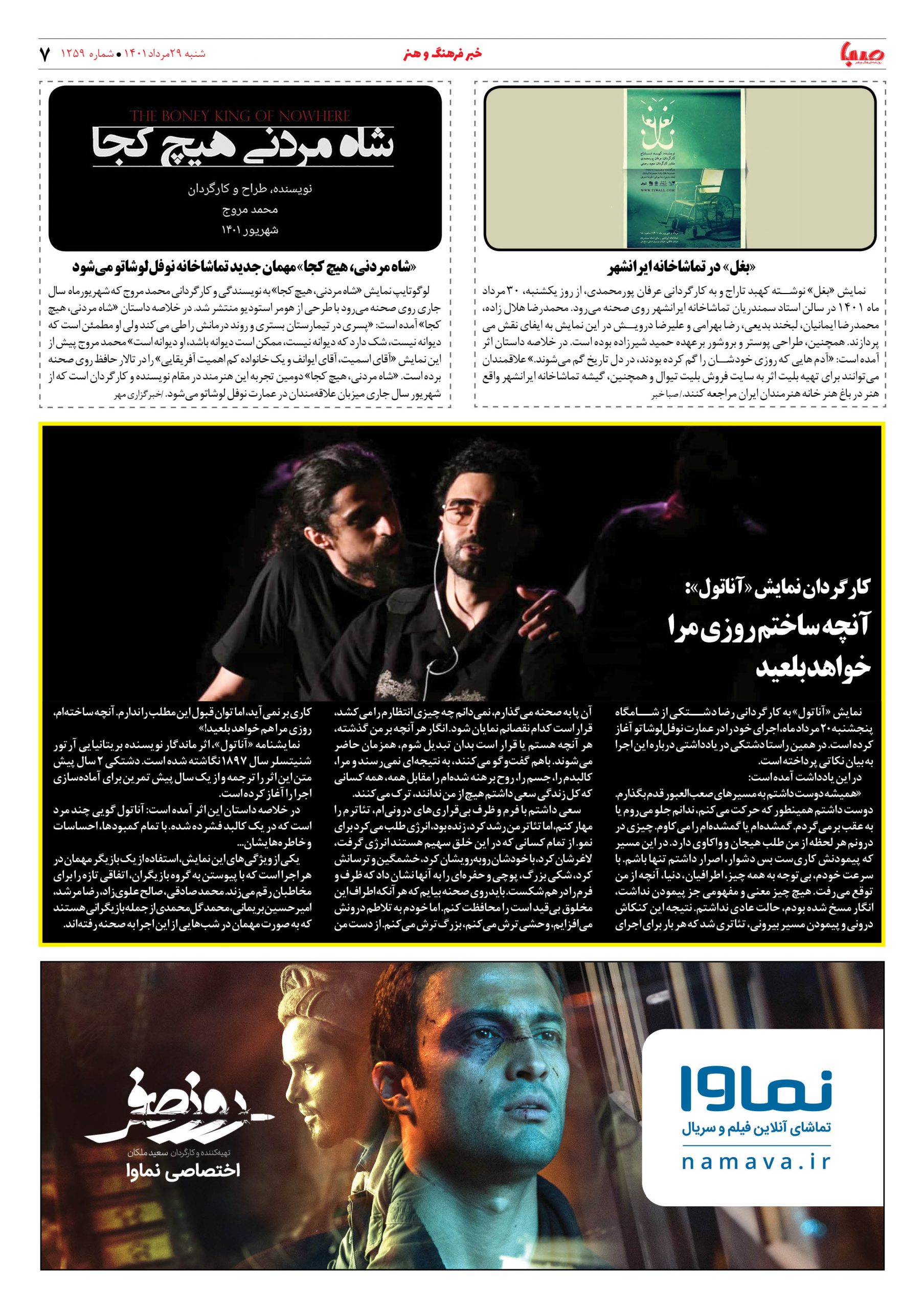 شماره ۱۲۵۹| روزنامه صبا شنبه ۲۹ مرداد ۱۴۰۱