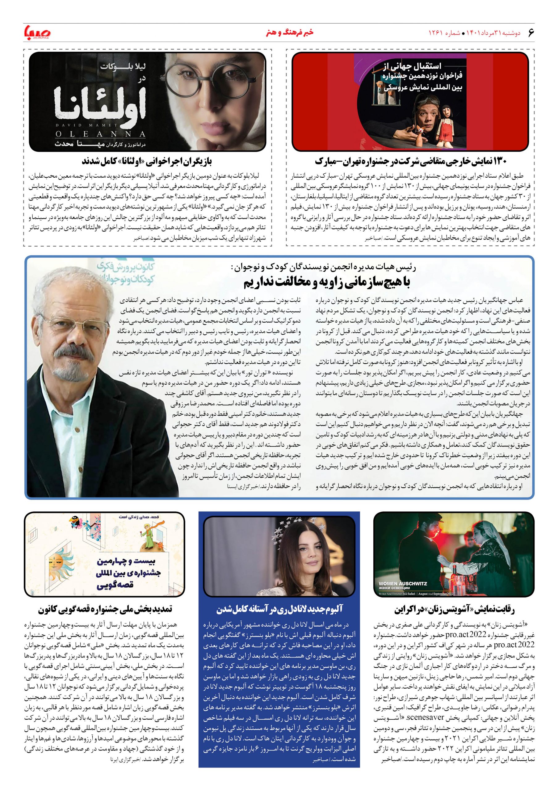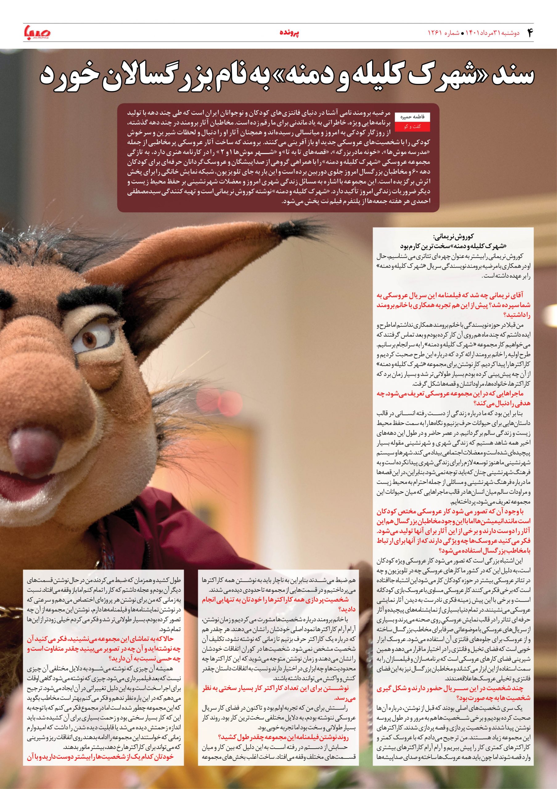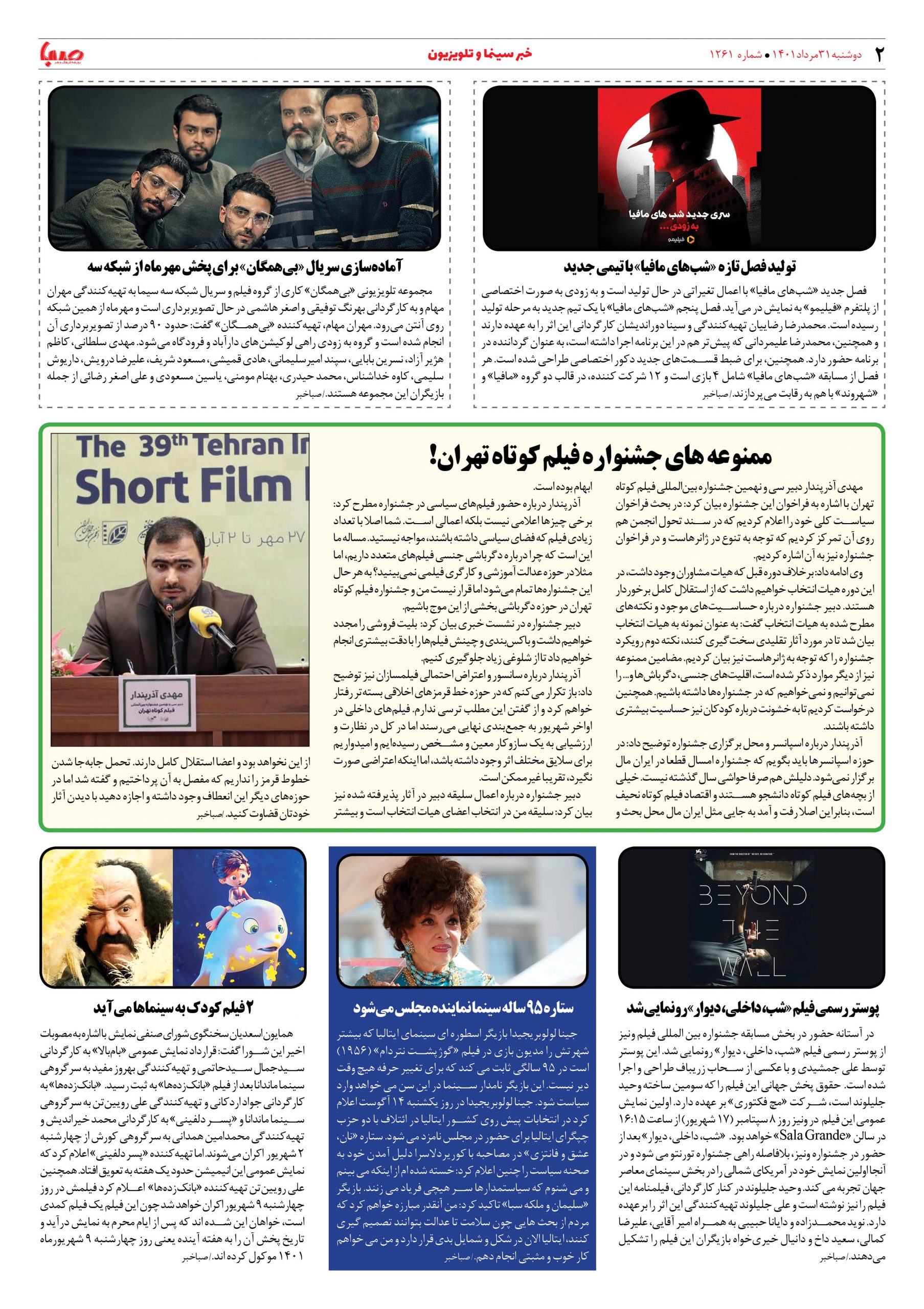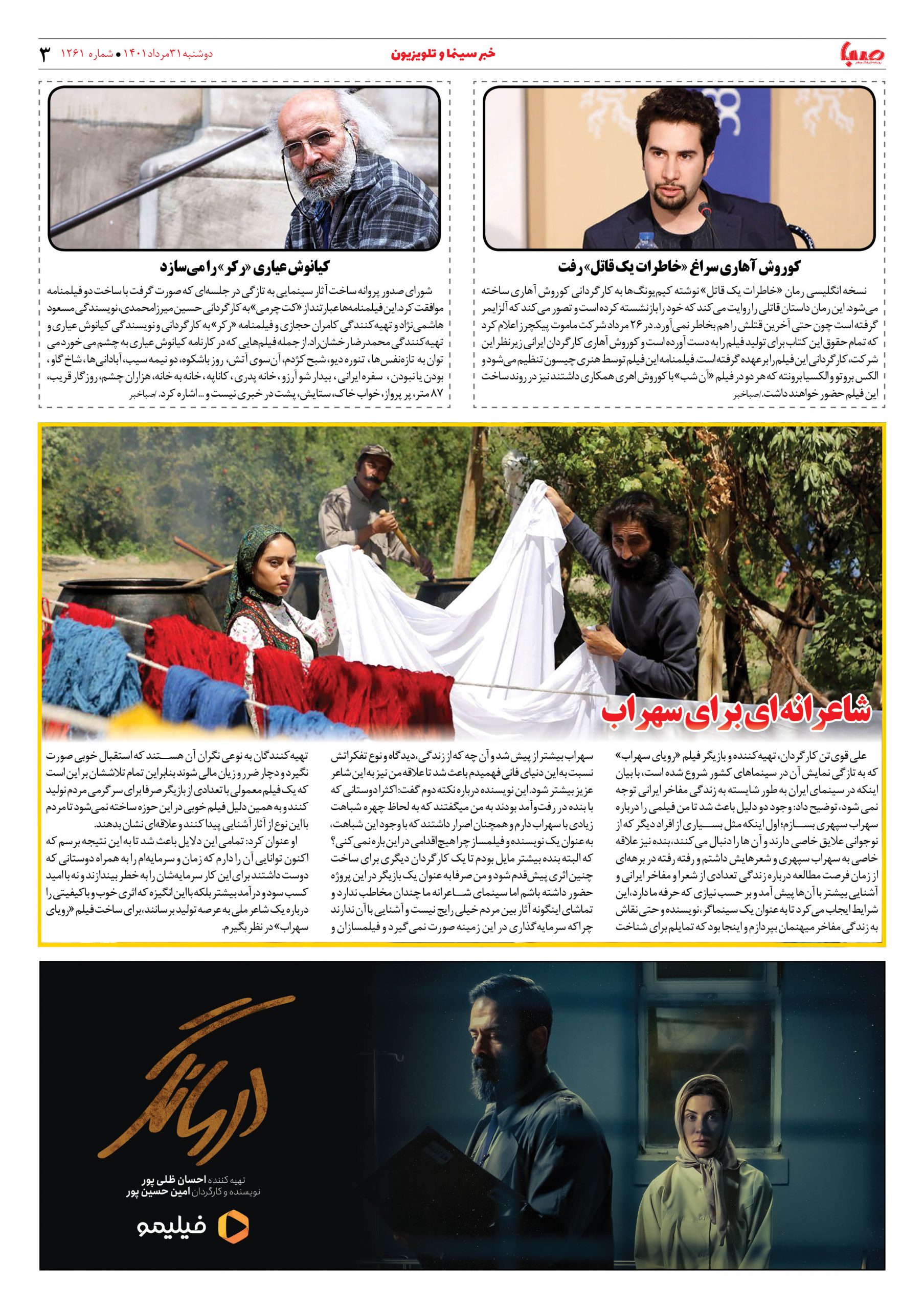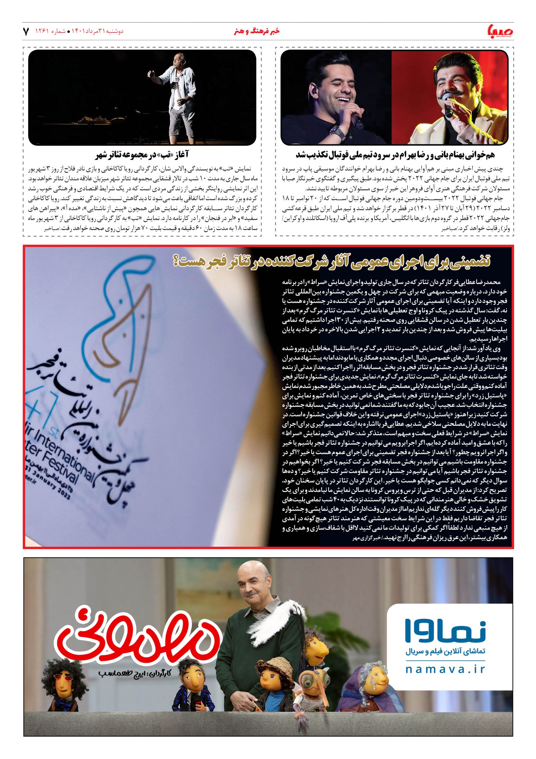 شماره ۱۲۶۱| روزنامه صبا دوشنبه ۳۱ مرداد ۱۴۰۱