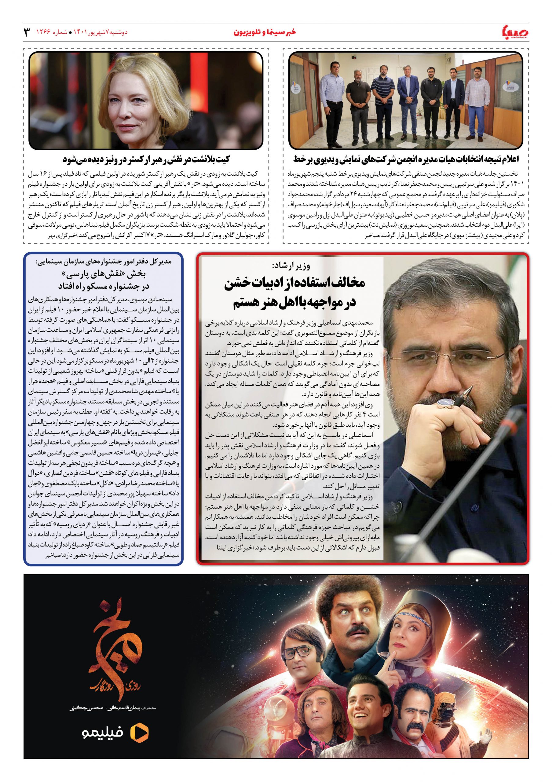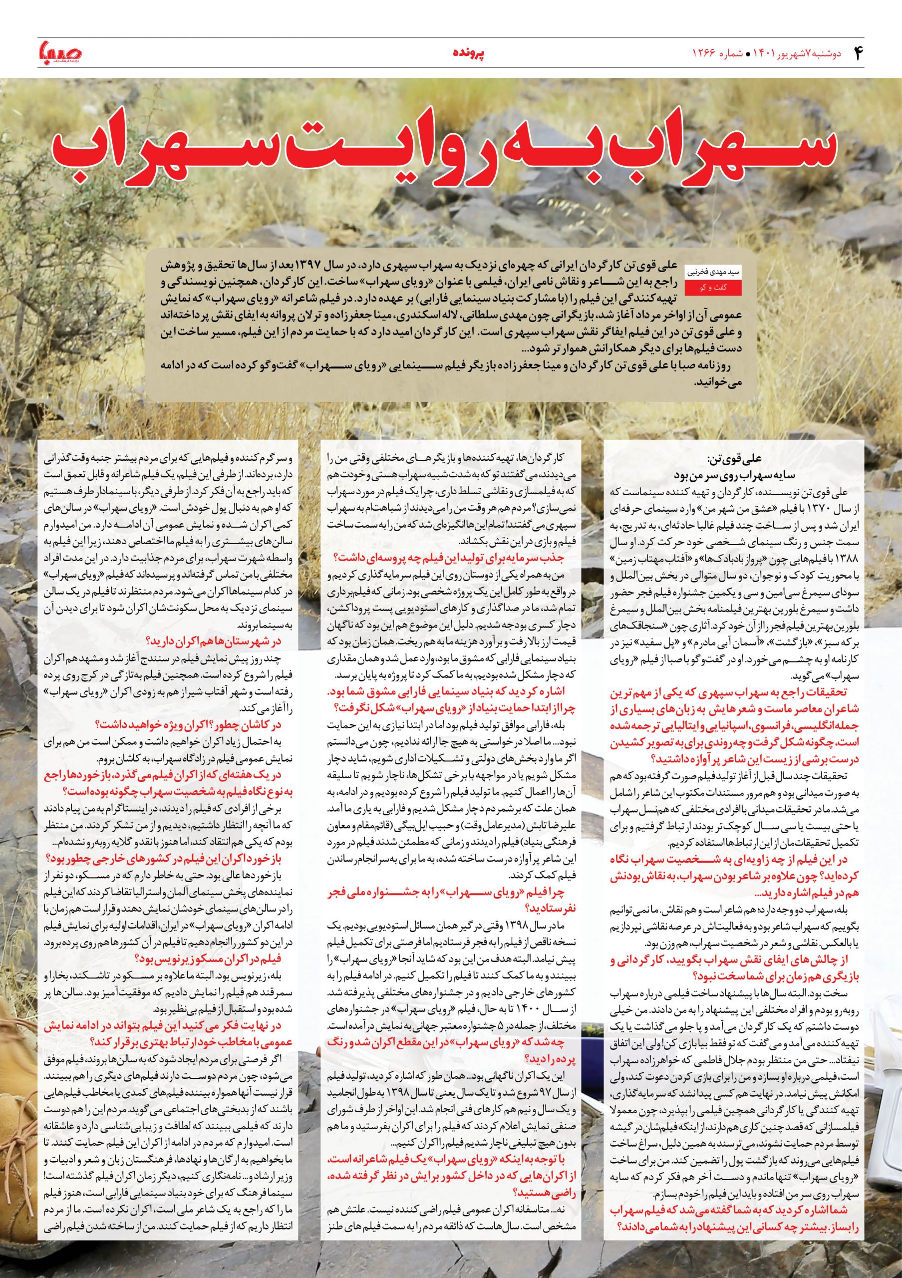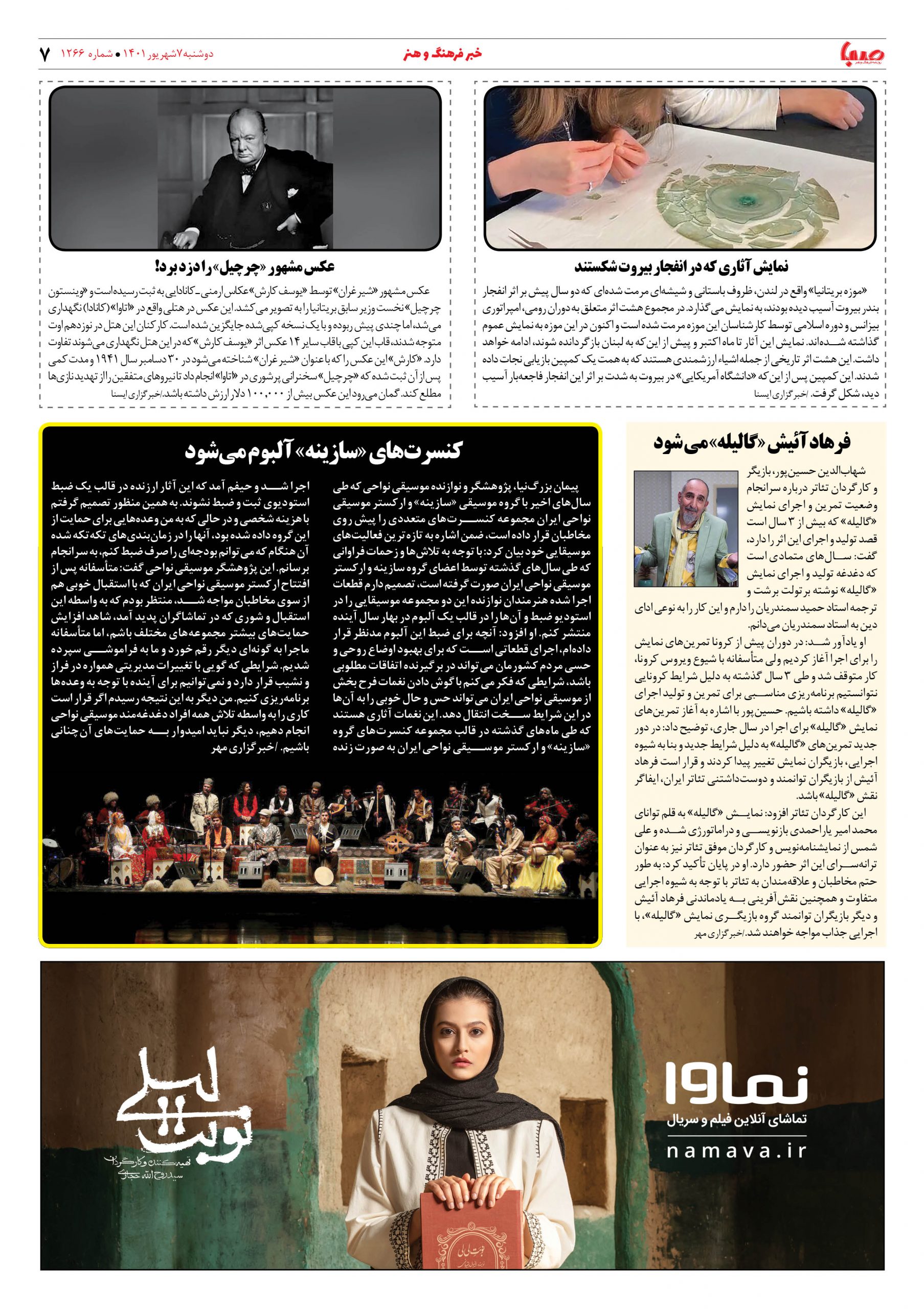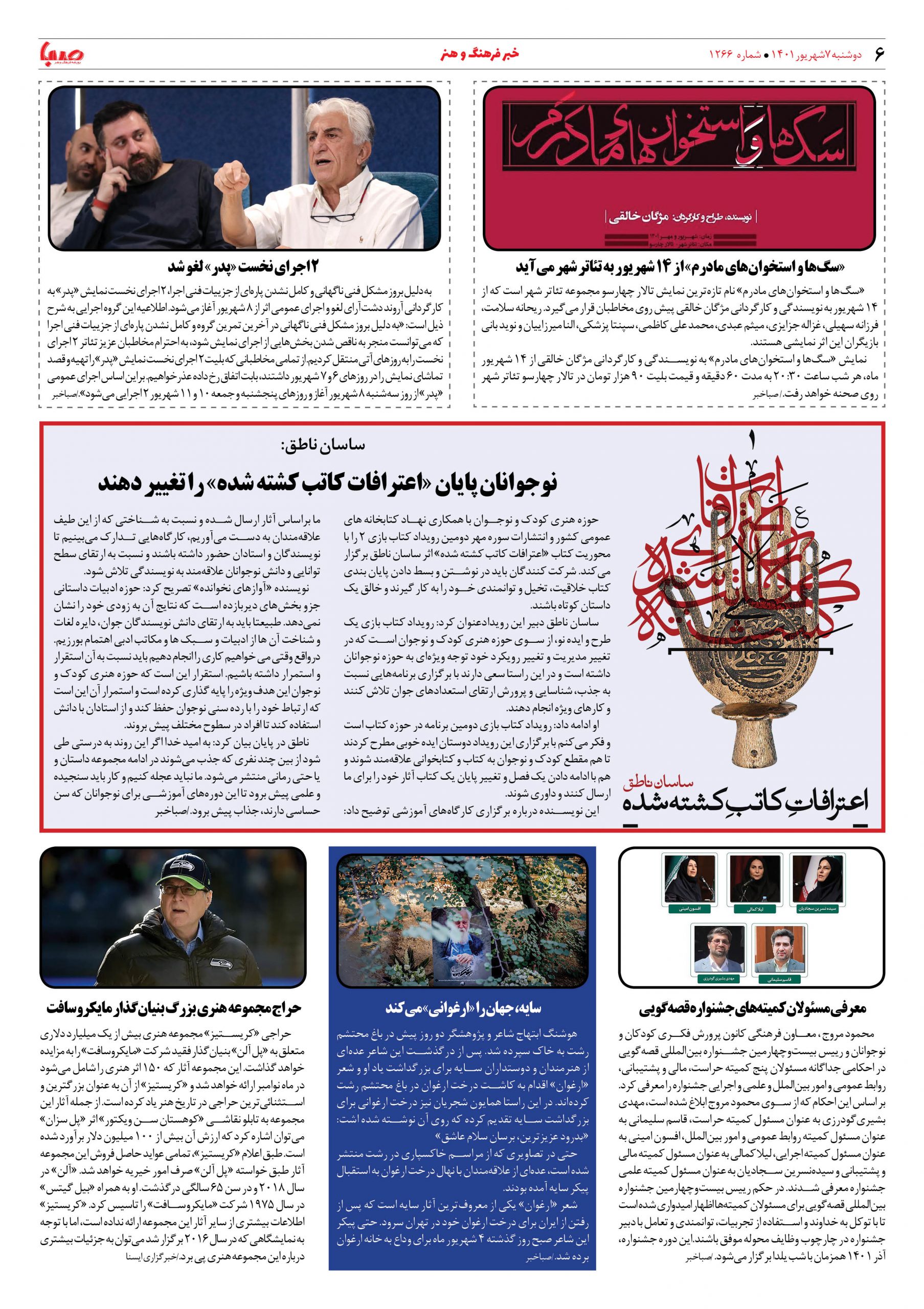 شماره ۱۲۶۶| روزنامه صبا دوشنبه ۷ شهریور ۱۴۰۱