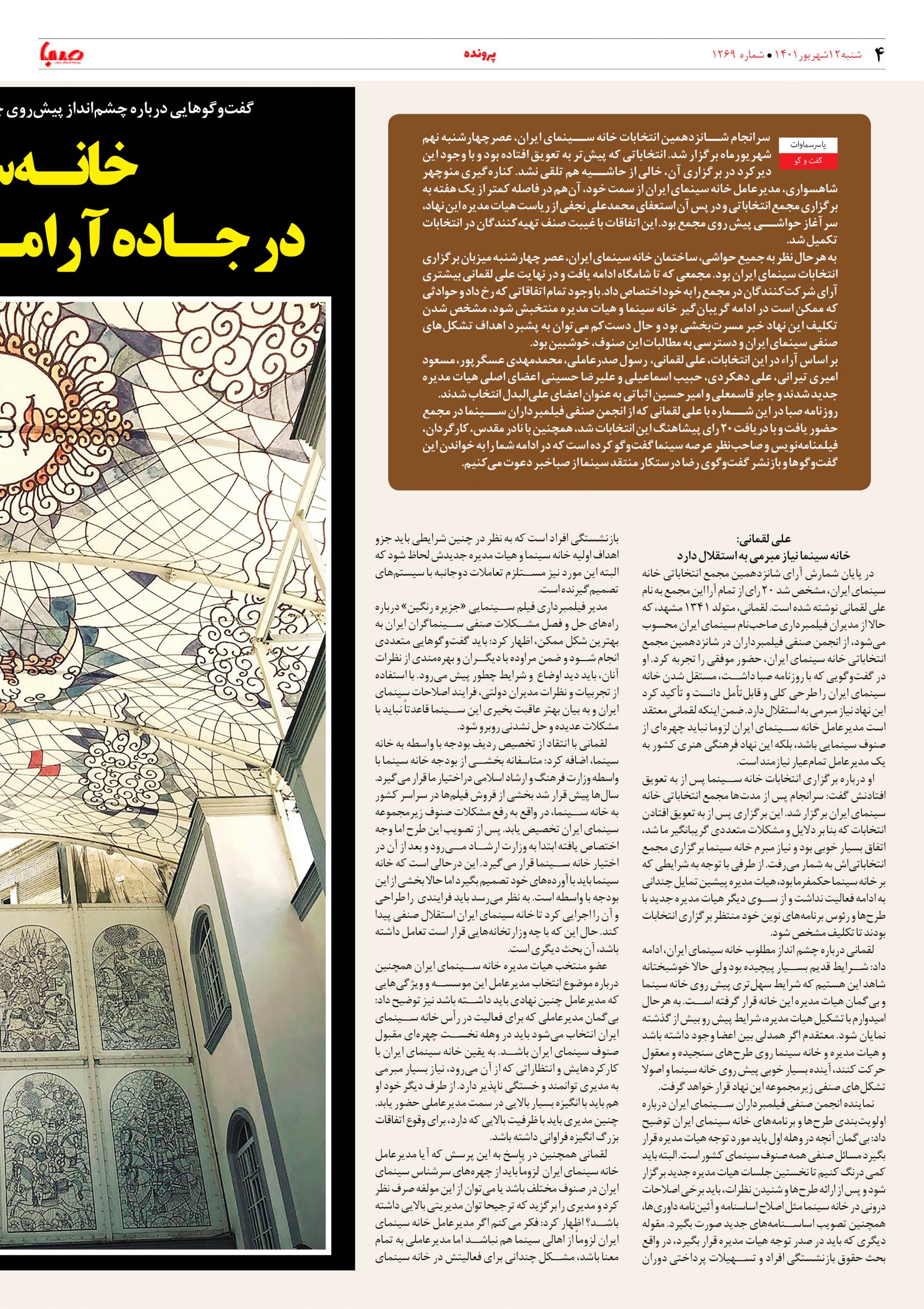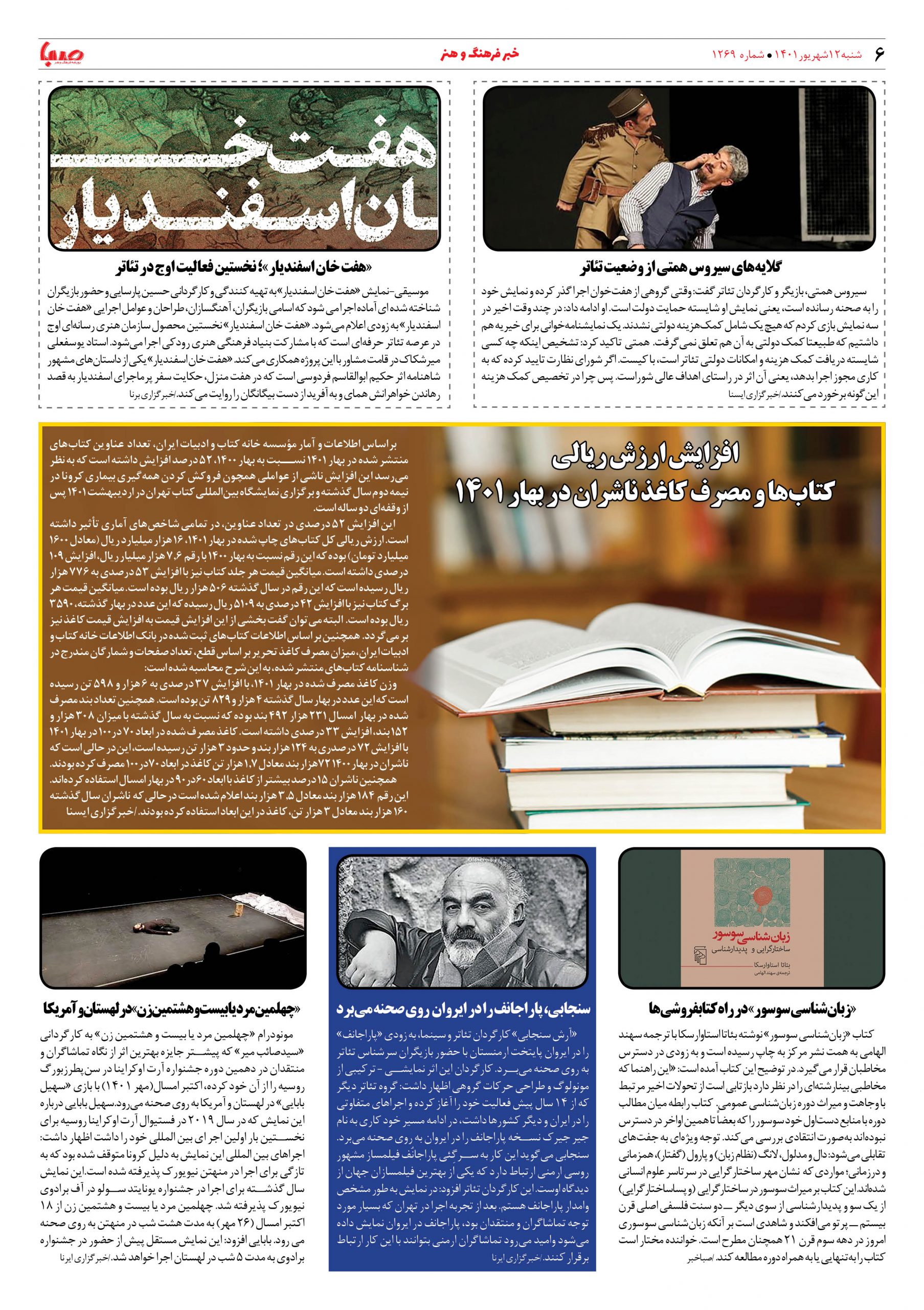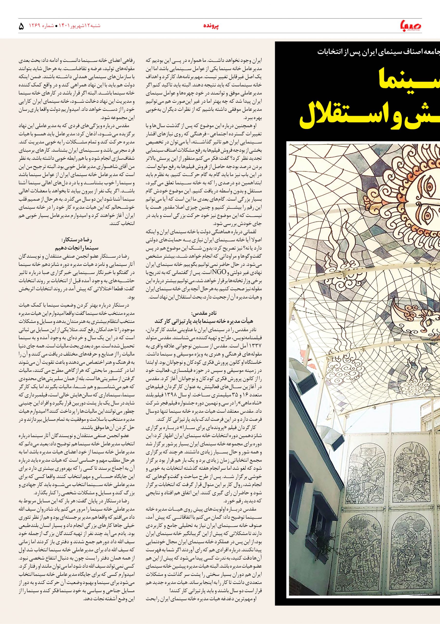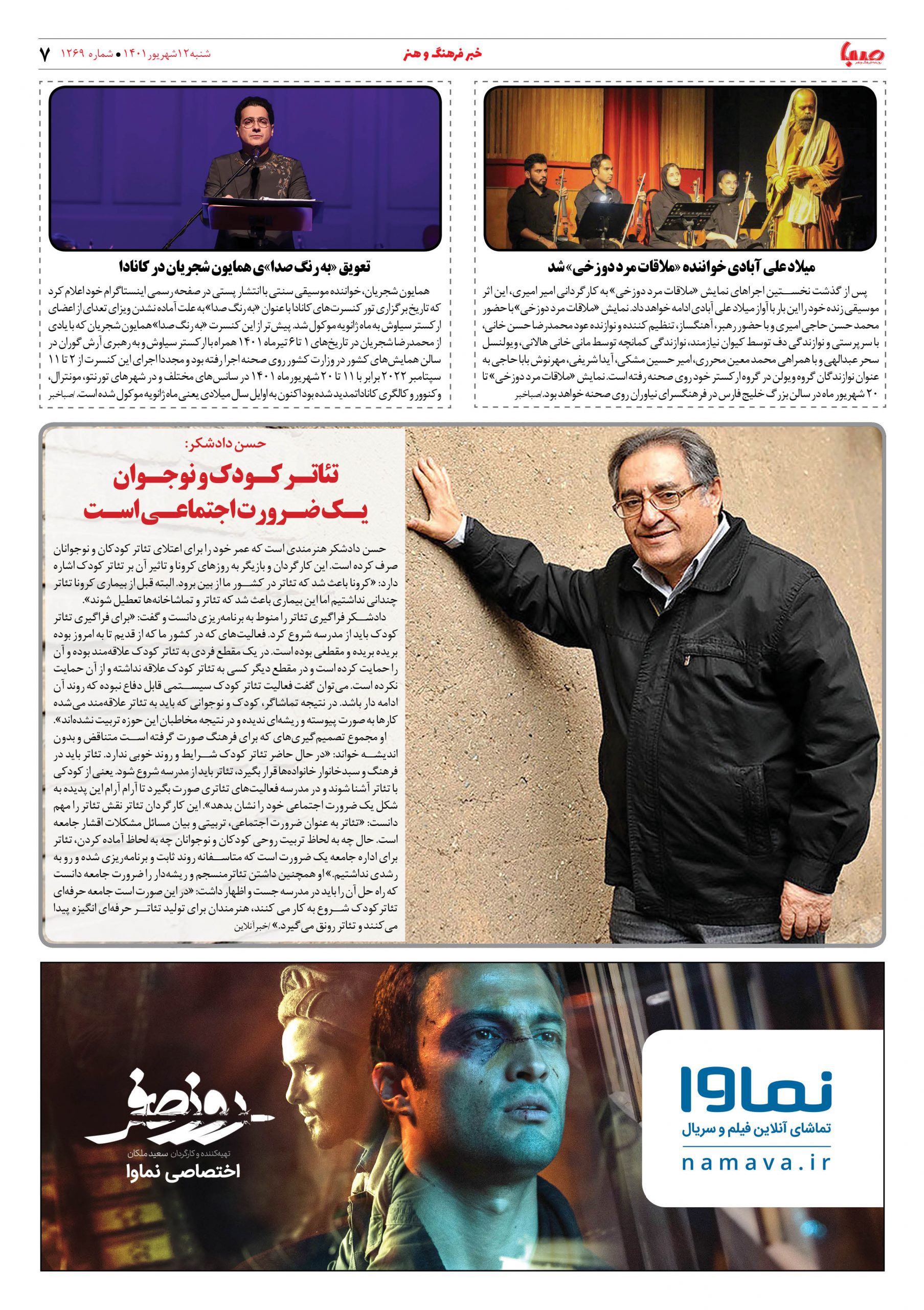 شماره ۱۲۶۹| روزنامه صبا شنبه ۱۲ شهریور ۱۴۰۱