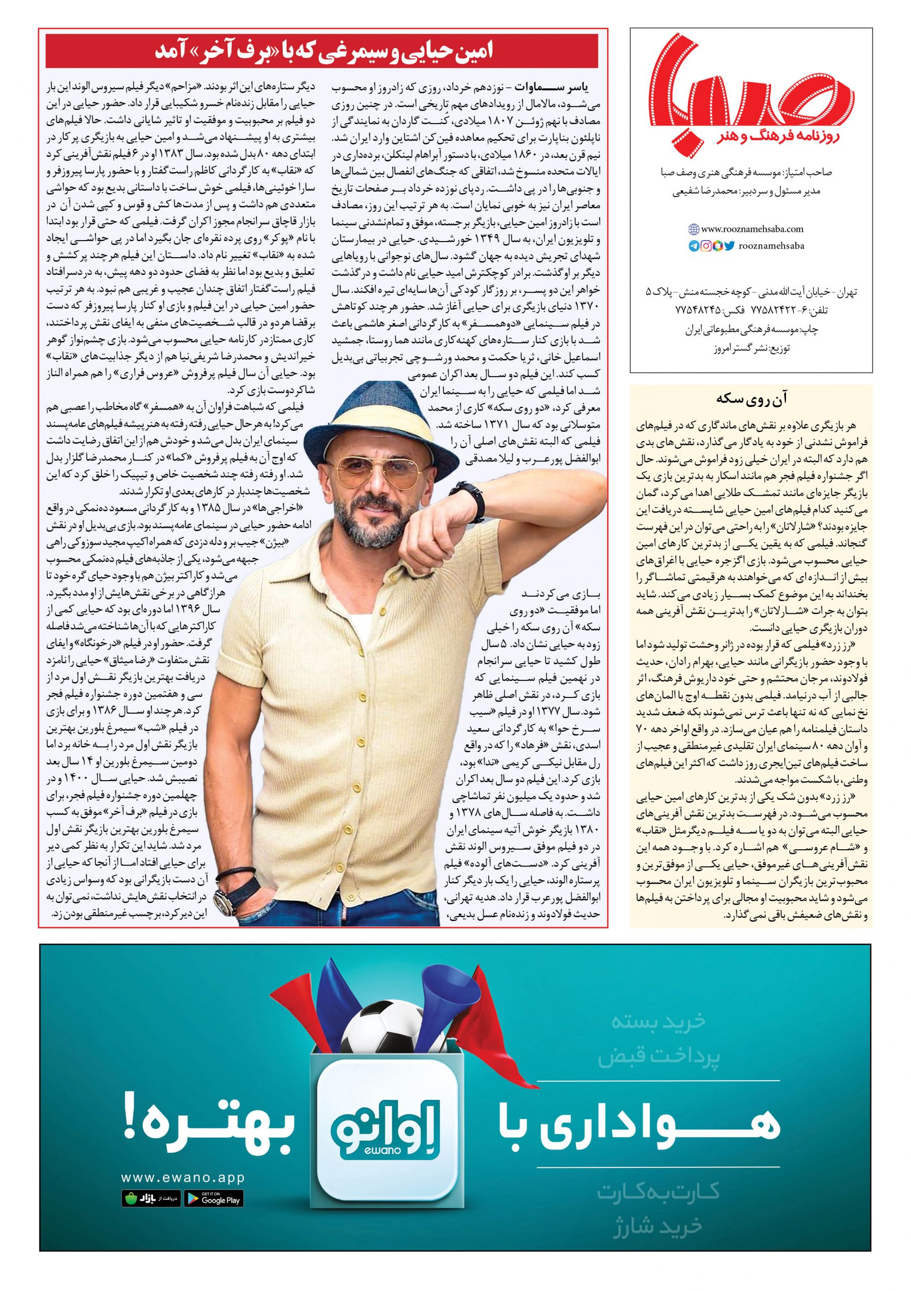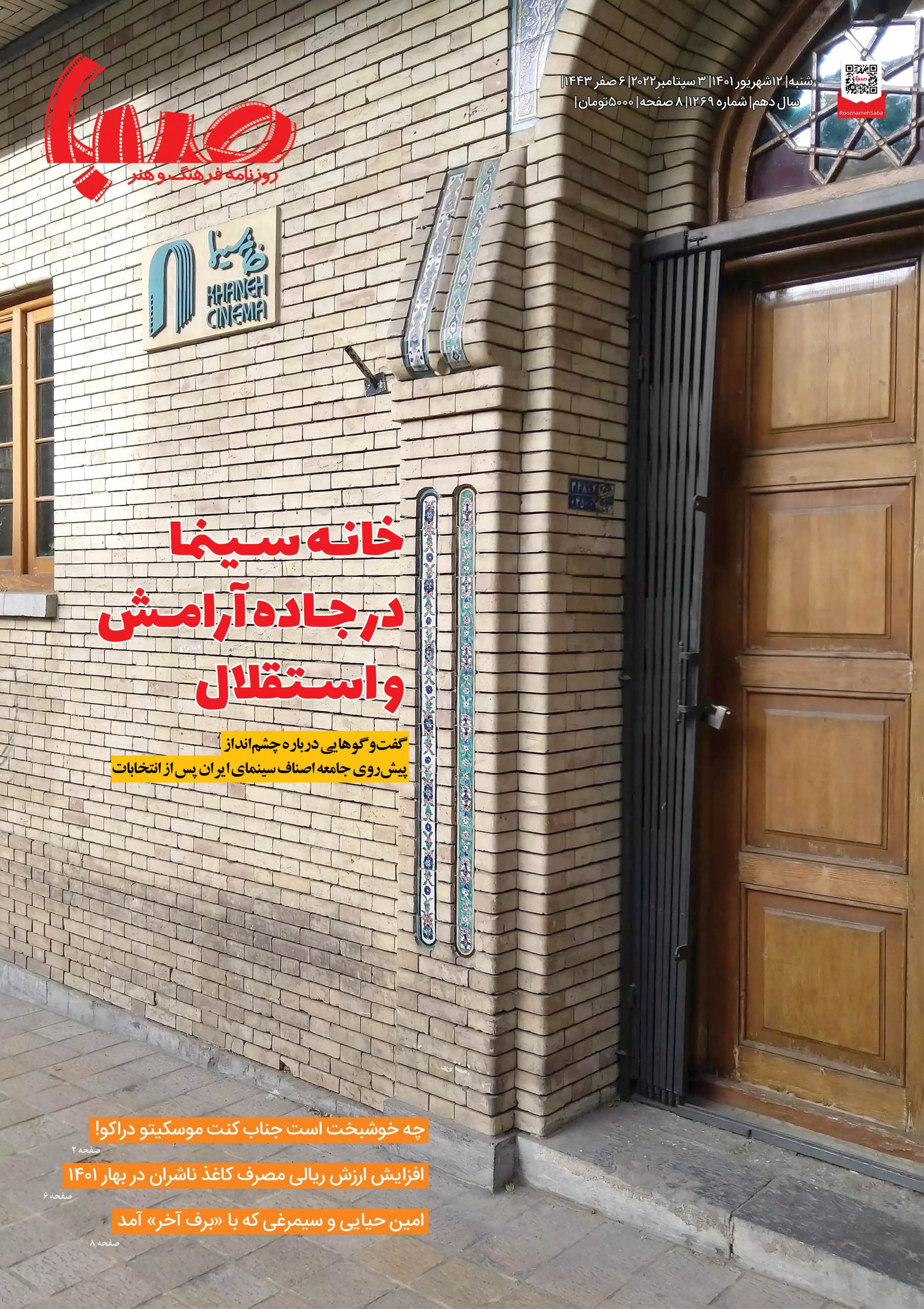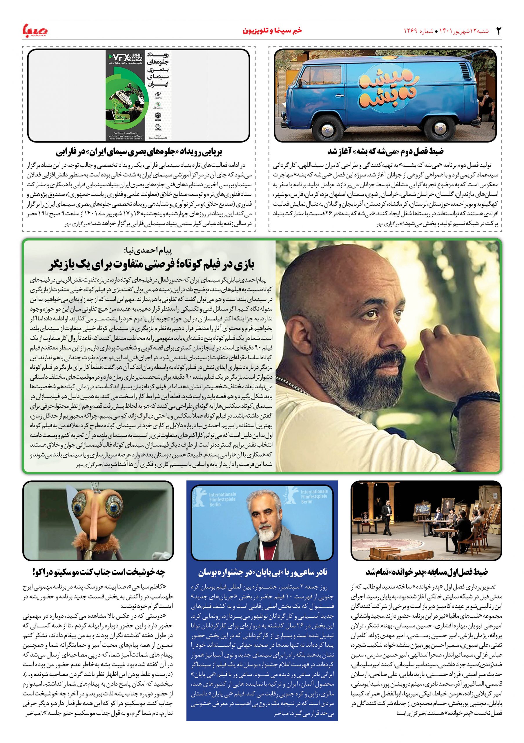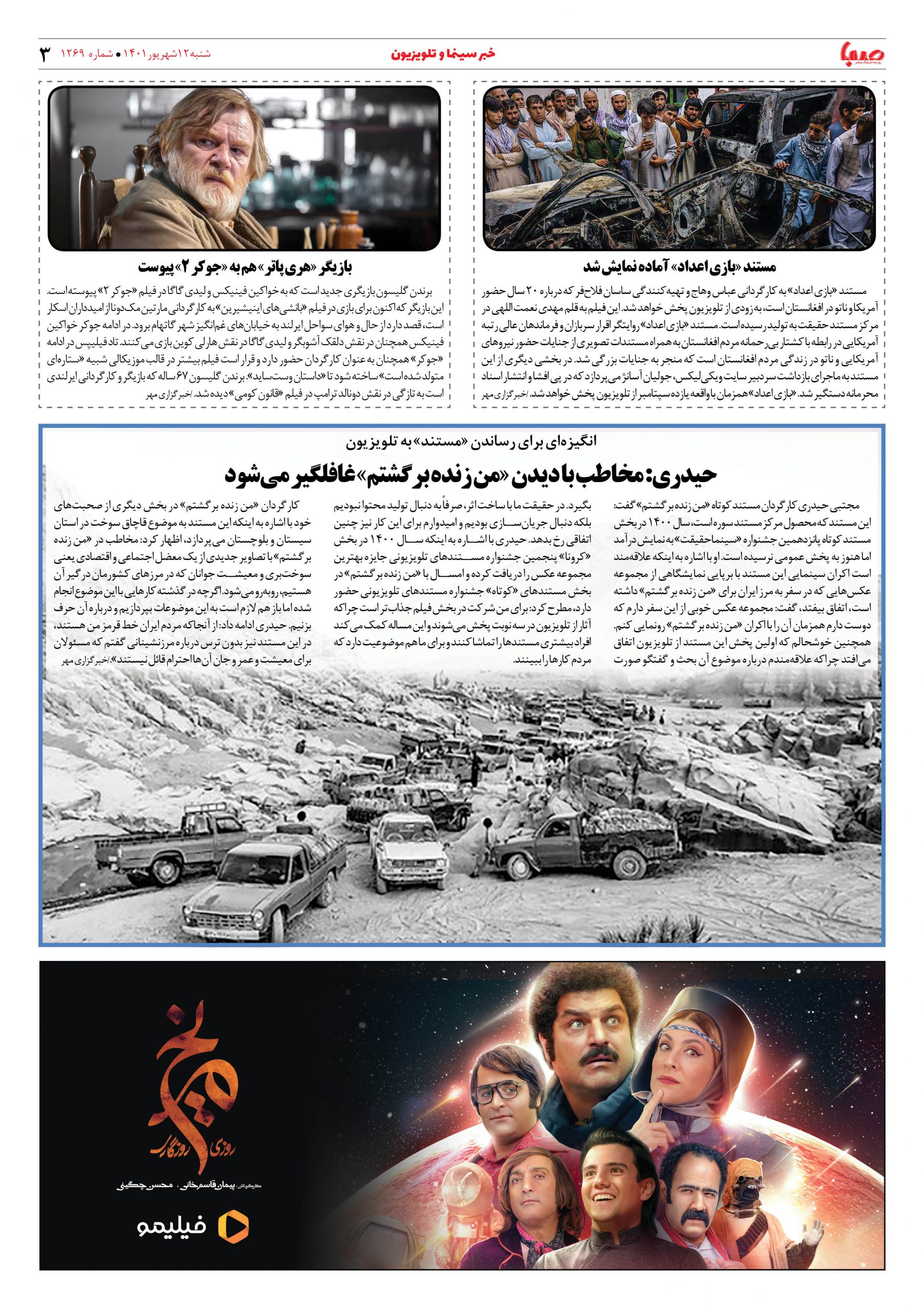 شماره ۱۲۶۹| روزنامه صبا شنبه ۱۲ شهریور ۱۴۰۱