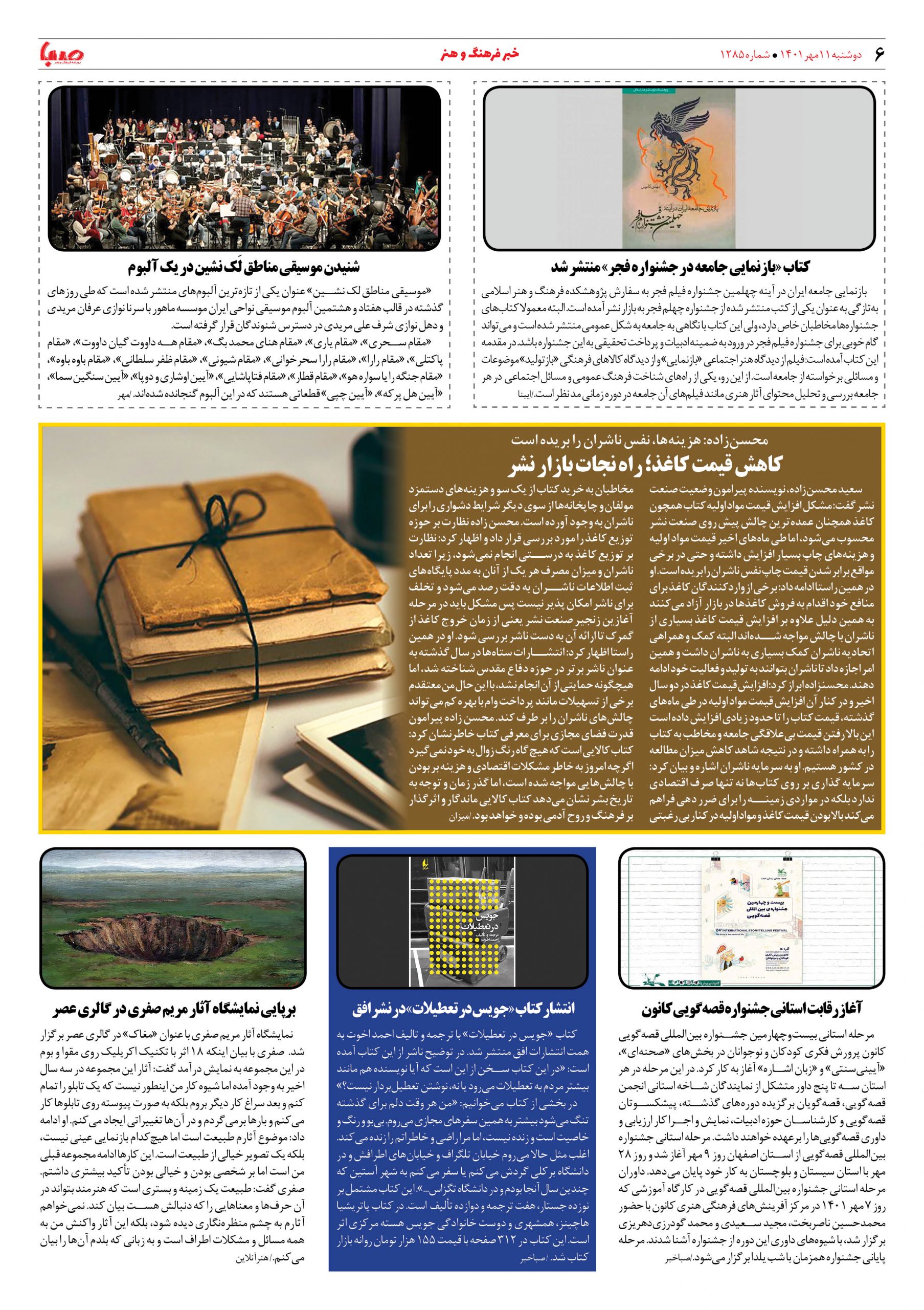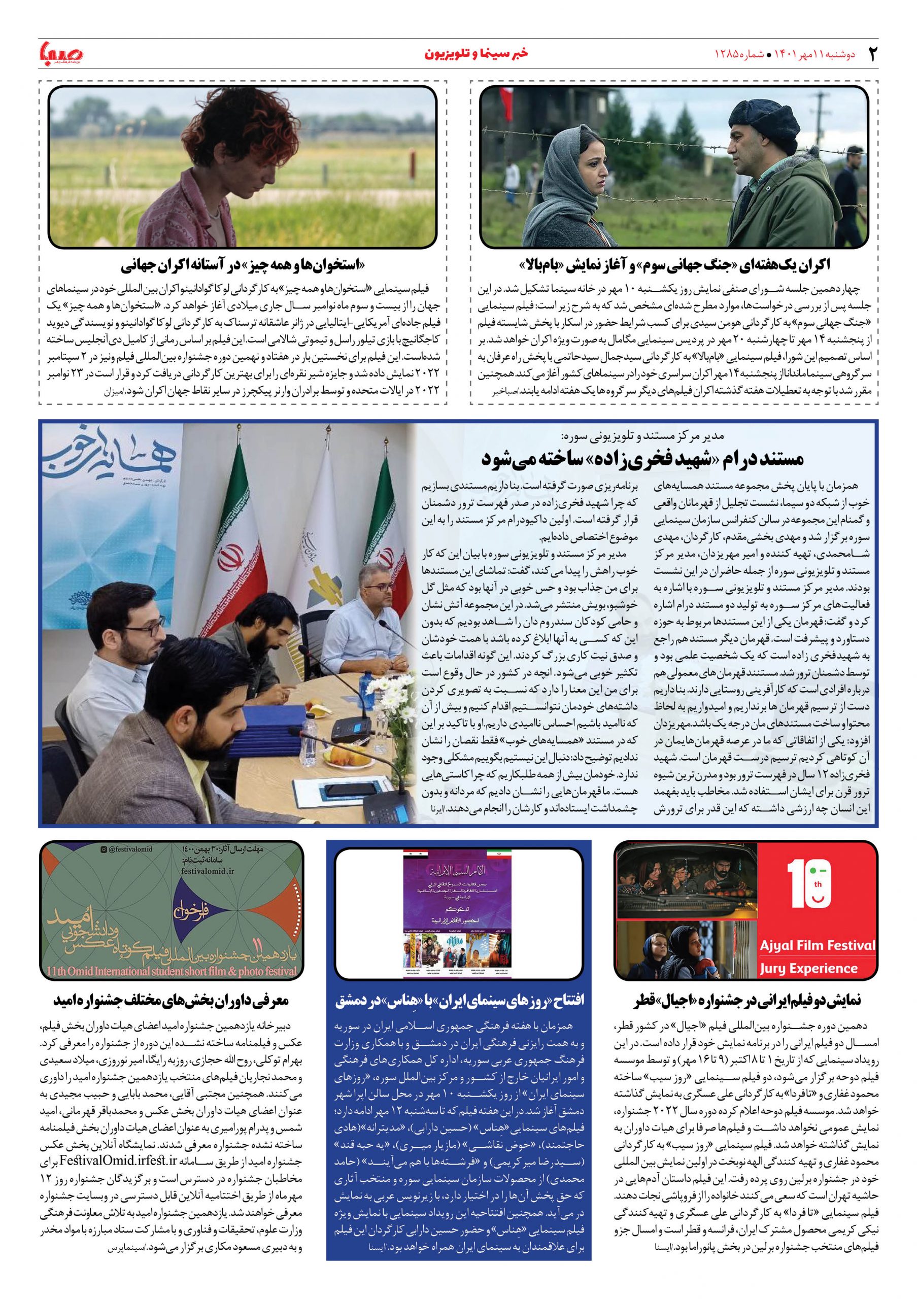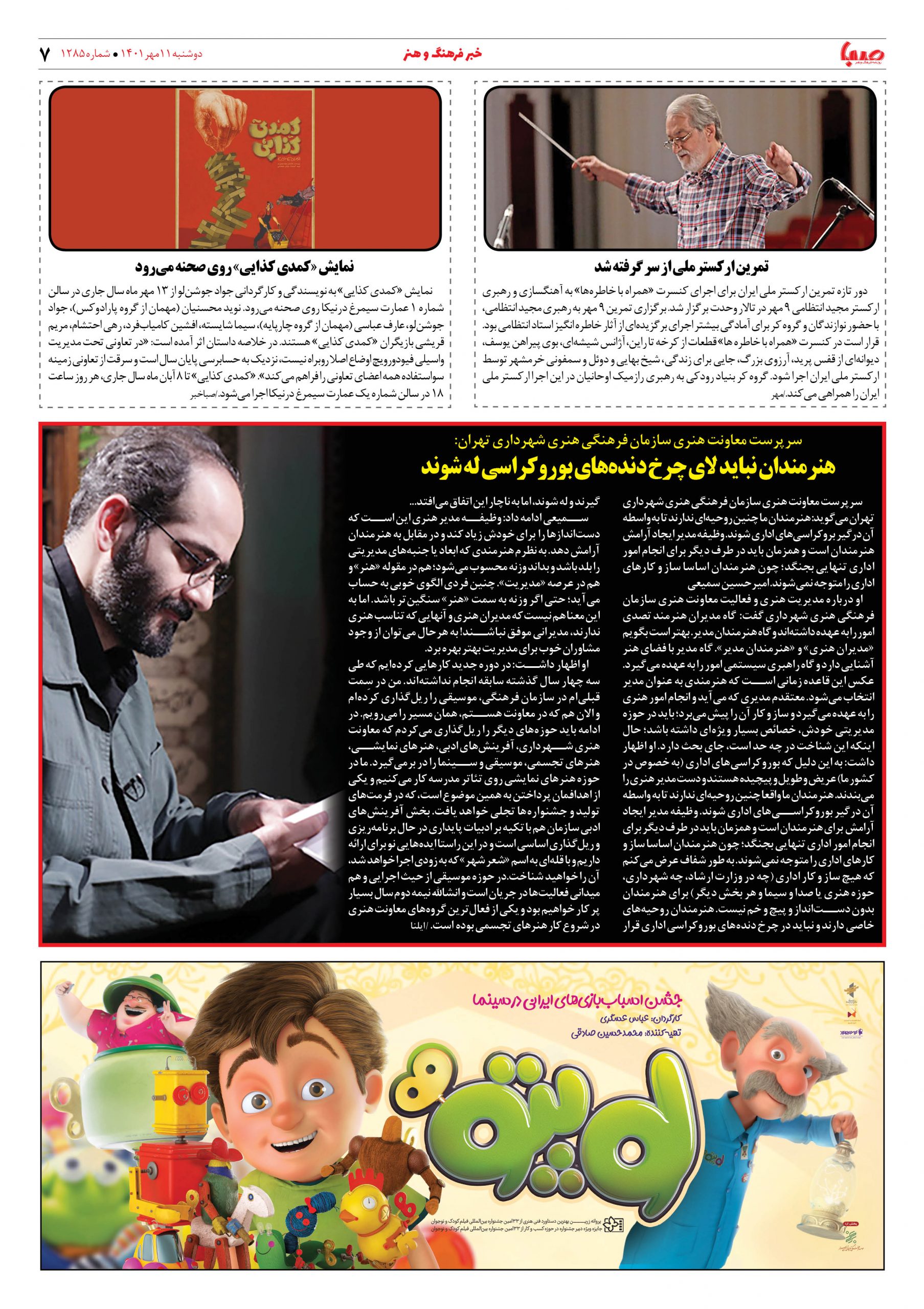 شماره ۱۲۸۵| روزنامه صبا دوشنبه ۱۱ مهر ۱۴۰۱