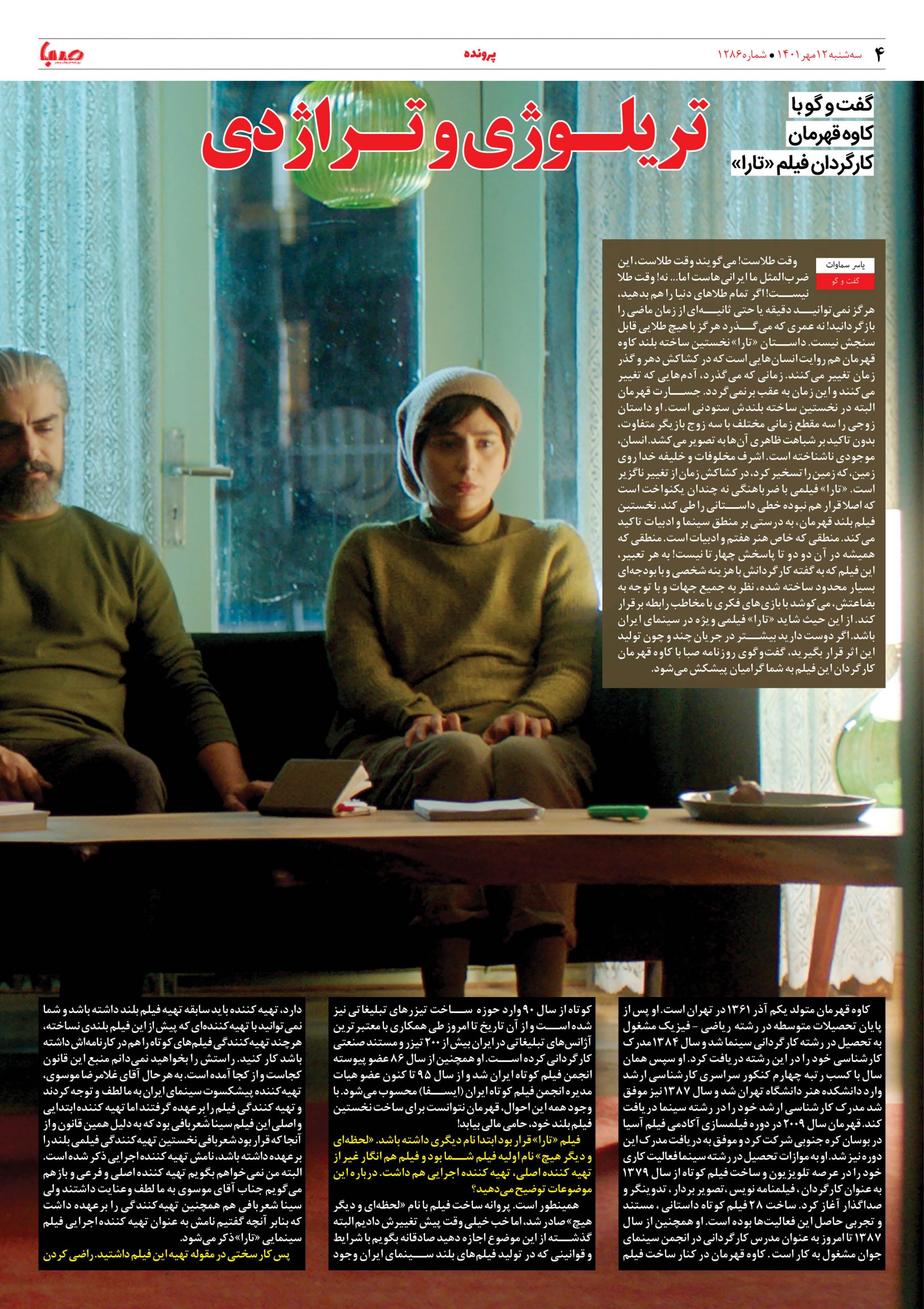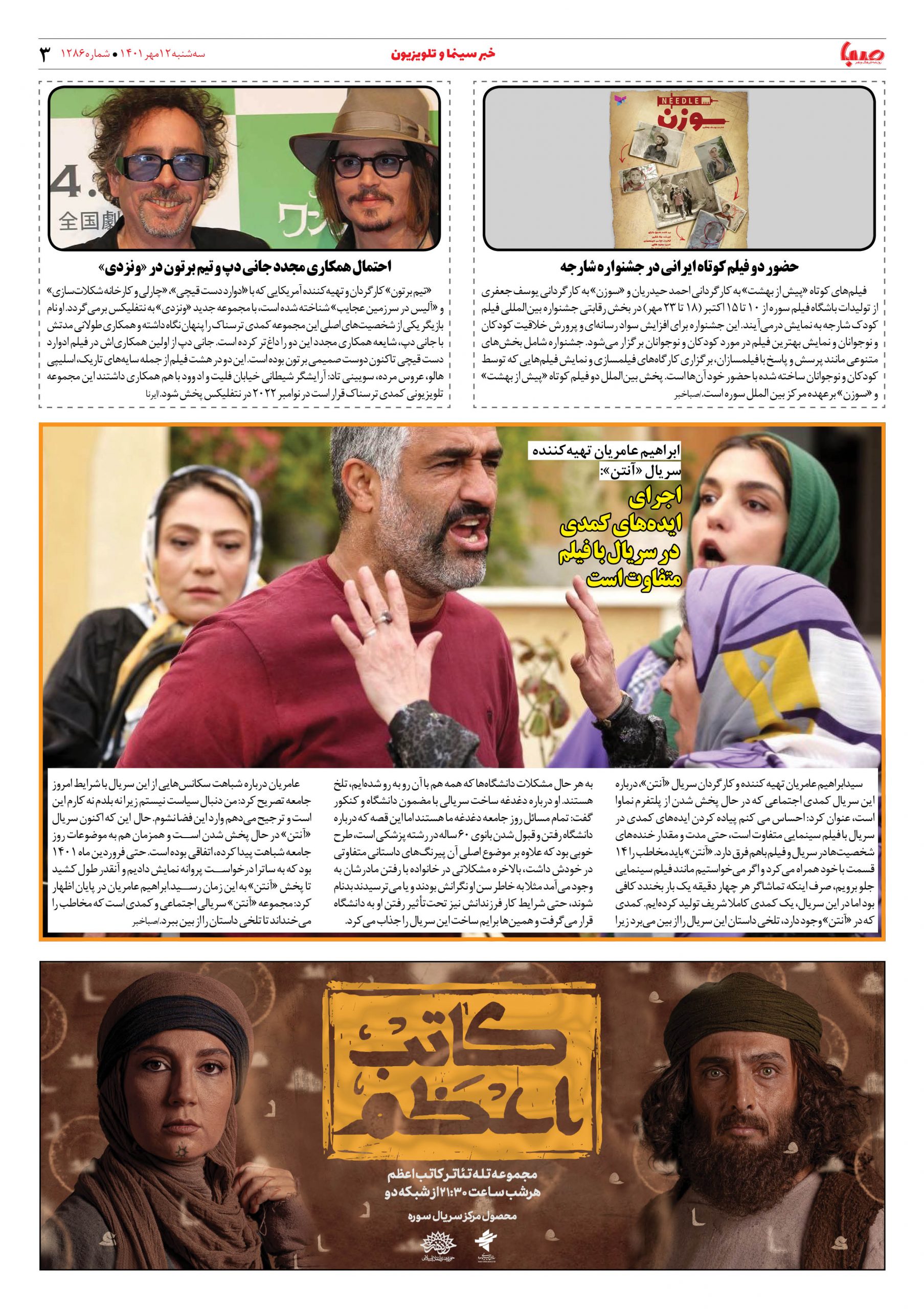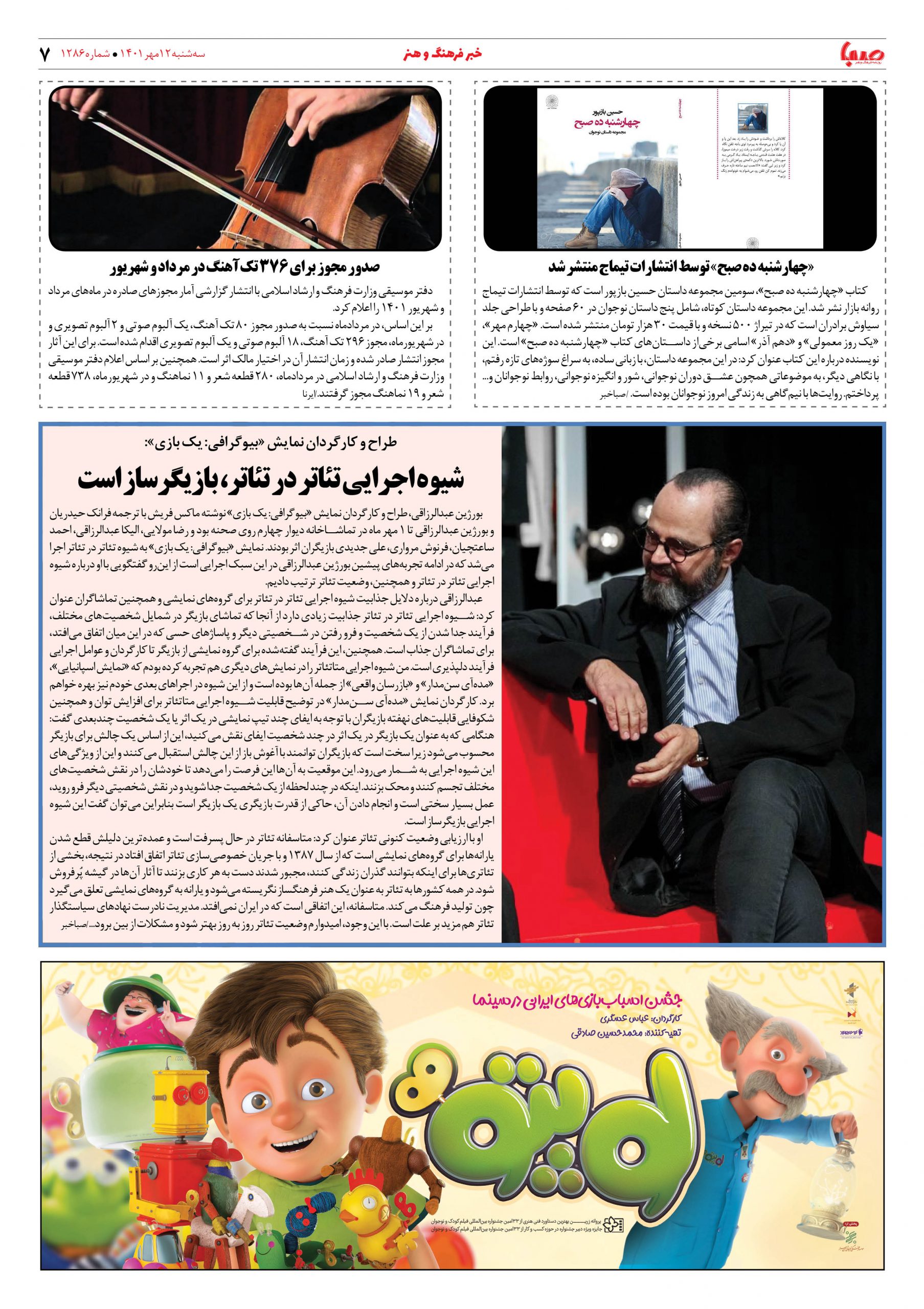شماره ۱۲۸۶| روزنامه صبا سهشنبه ۱۲ مهر ۱۴۰۱