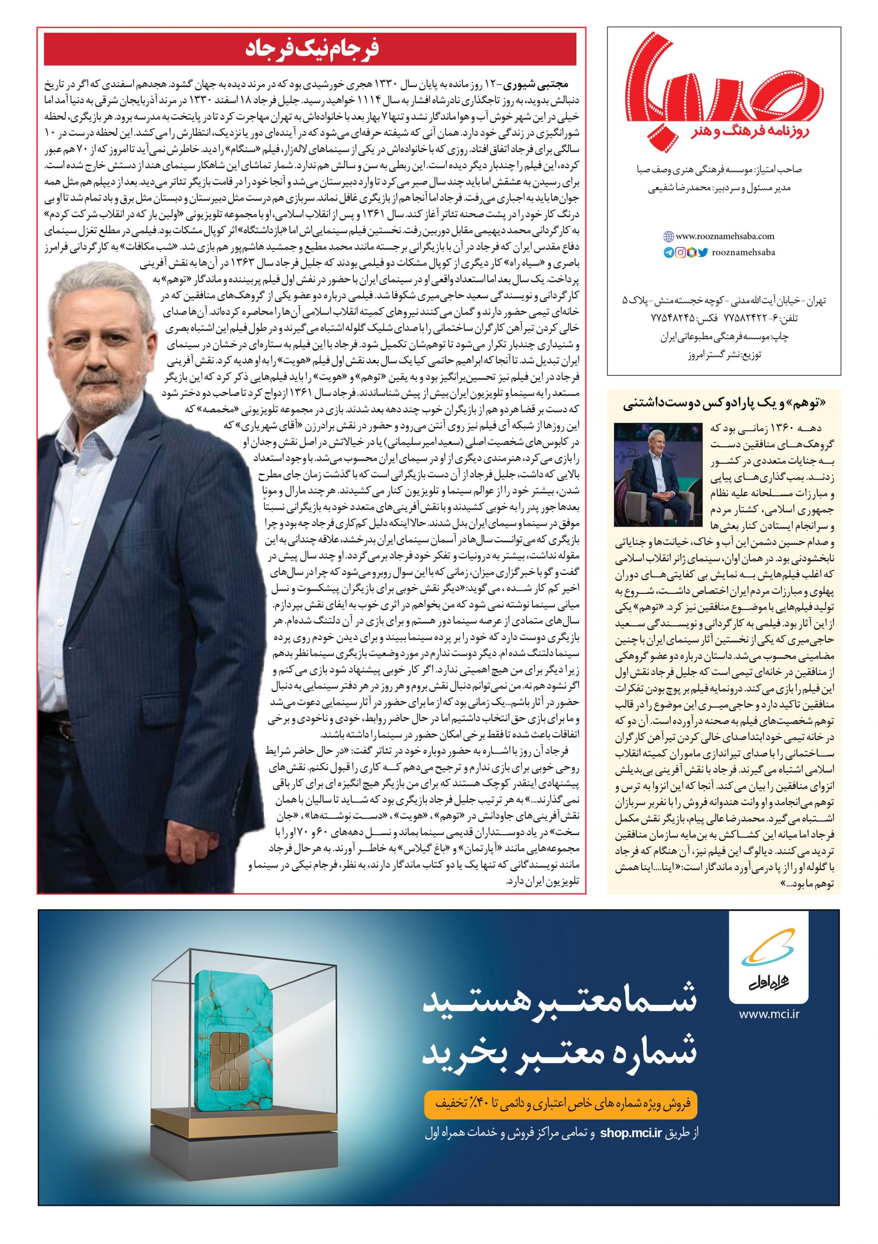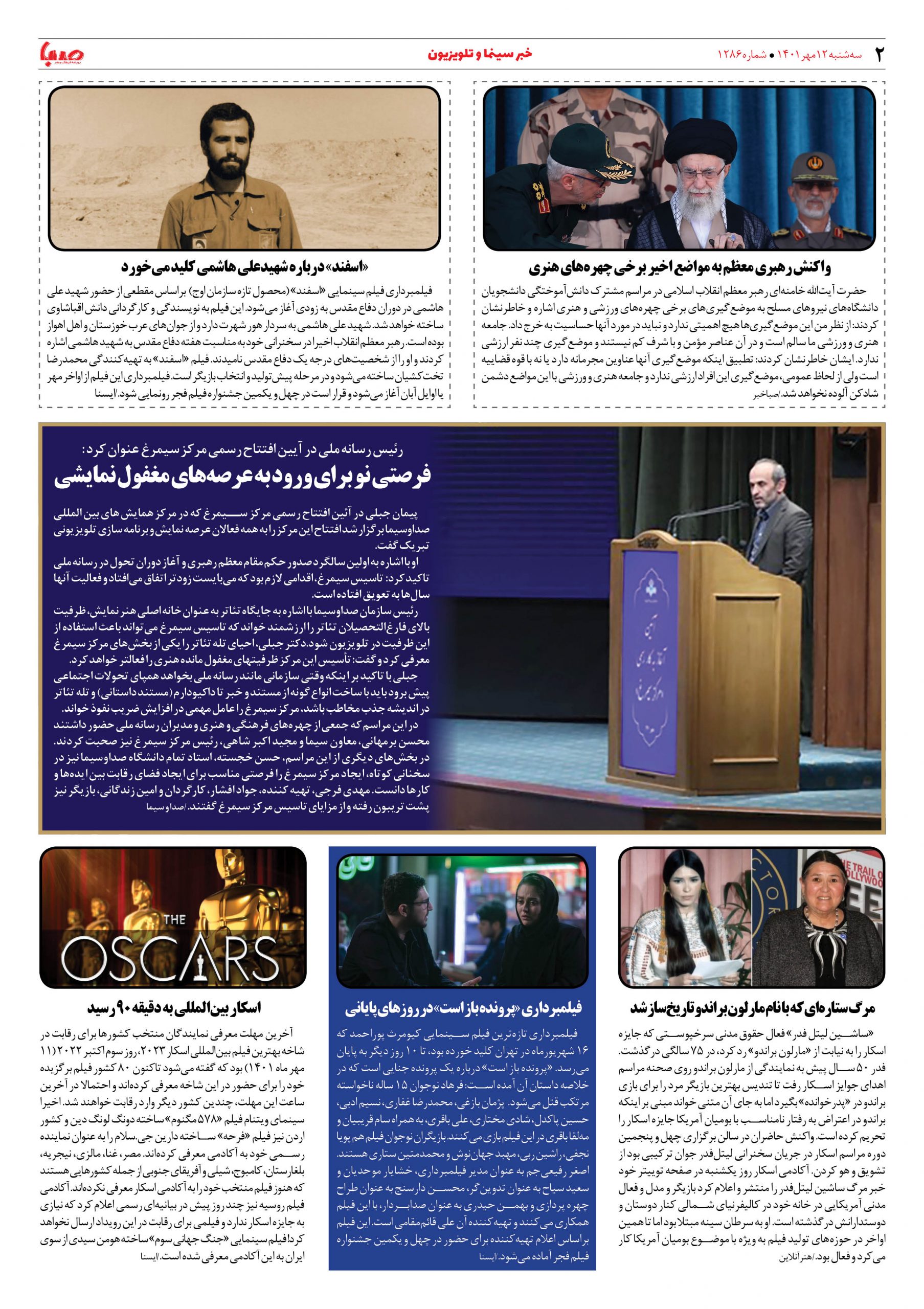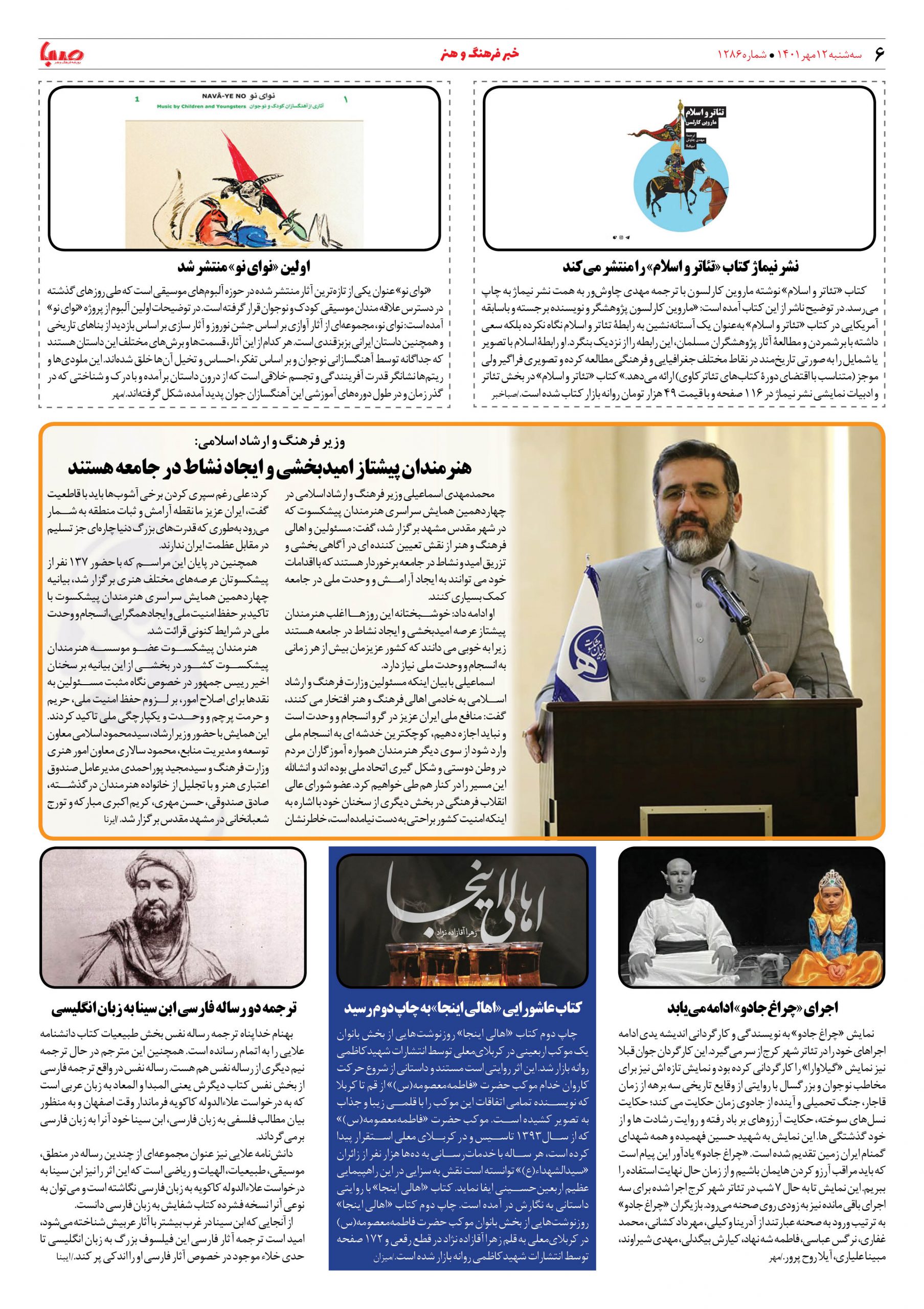 شماره ۱۲۸۶| روزنامه صبا سهشنبه ۱۲ مهر ۱۴۰۱