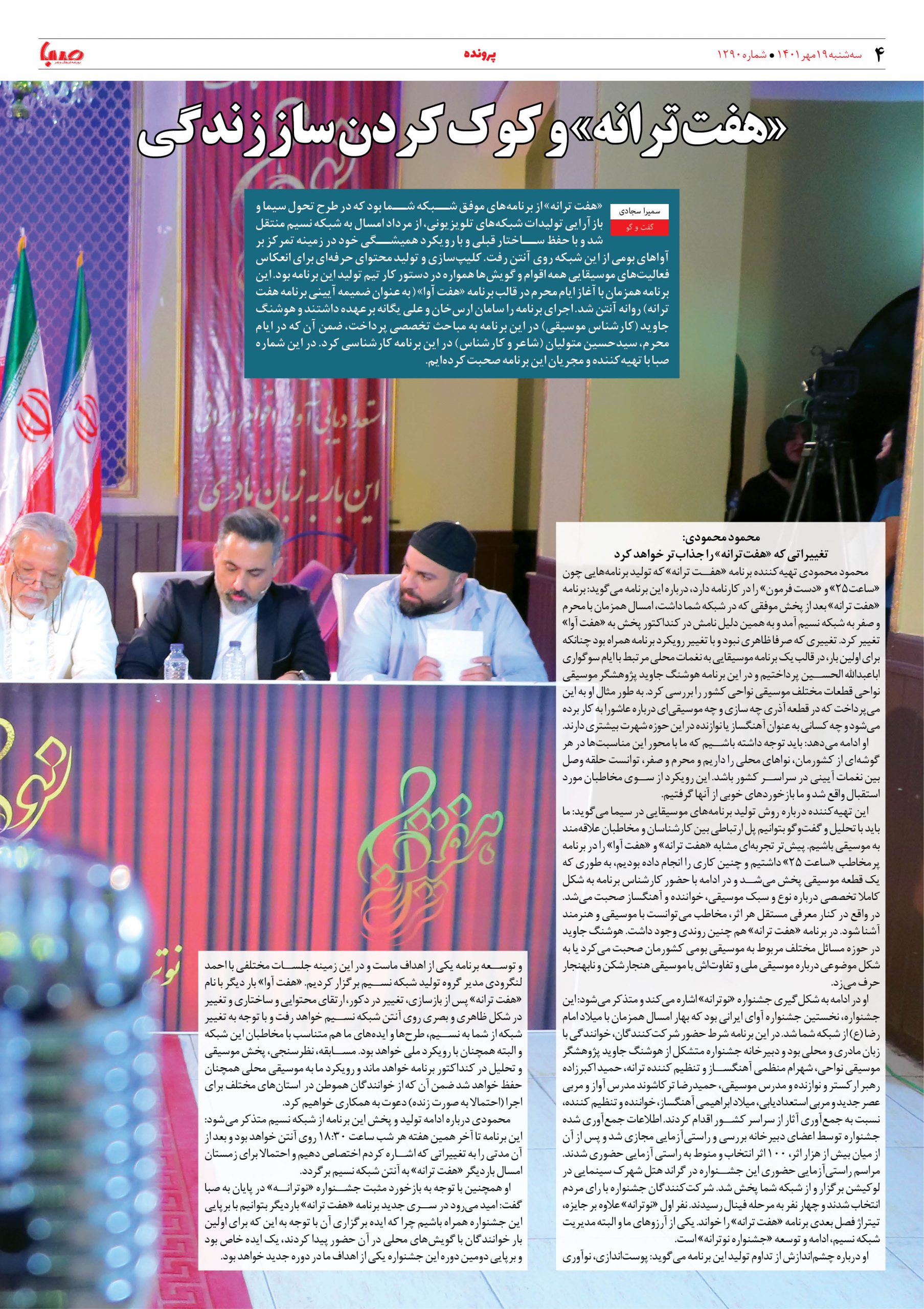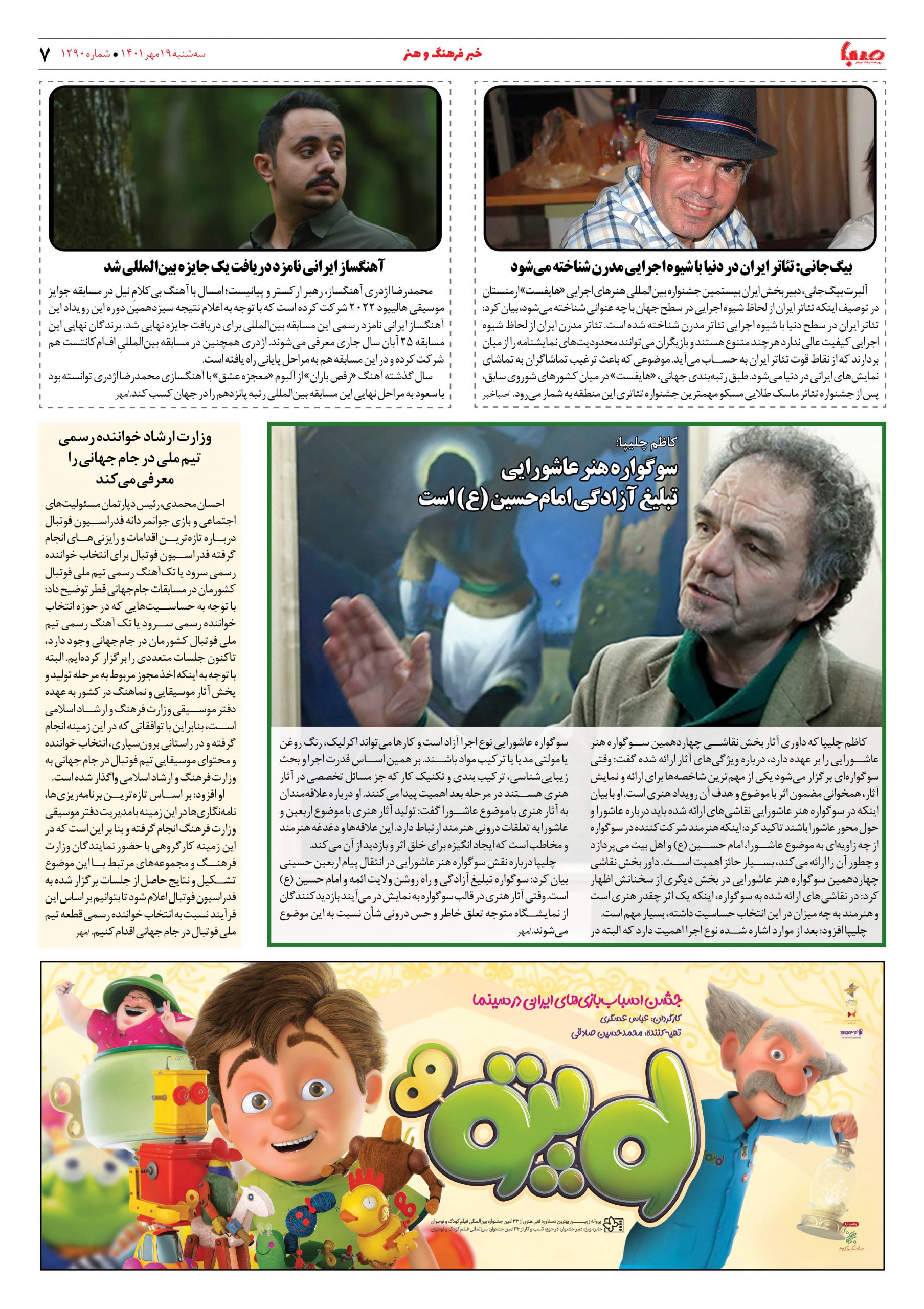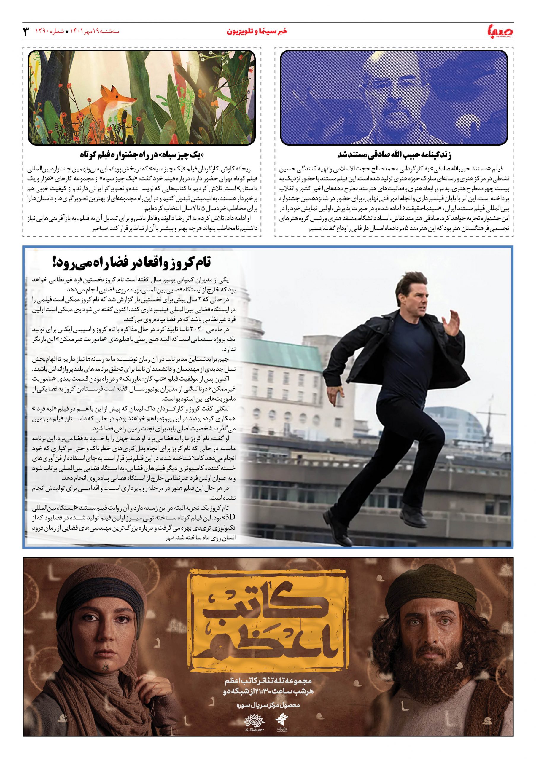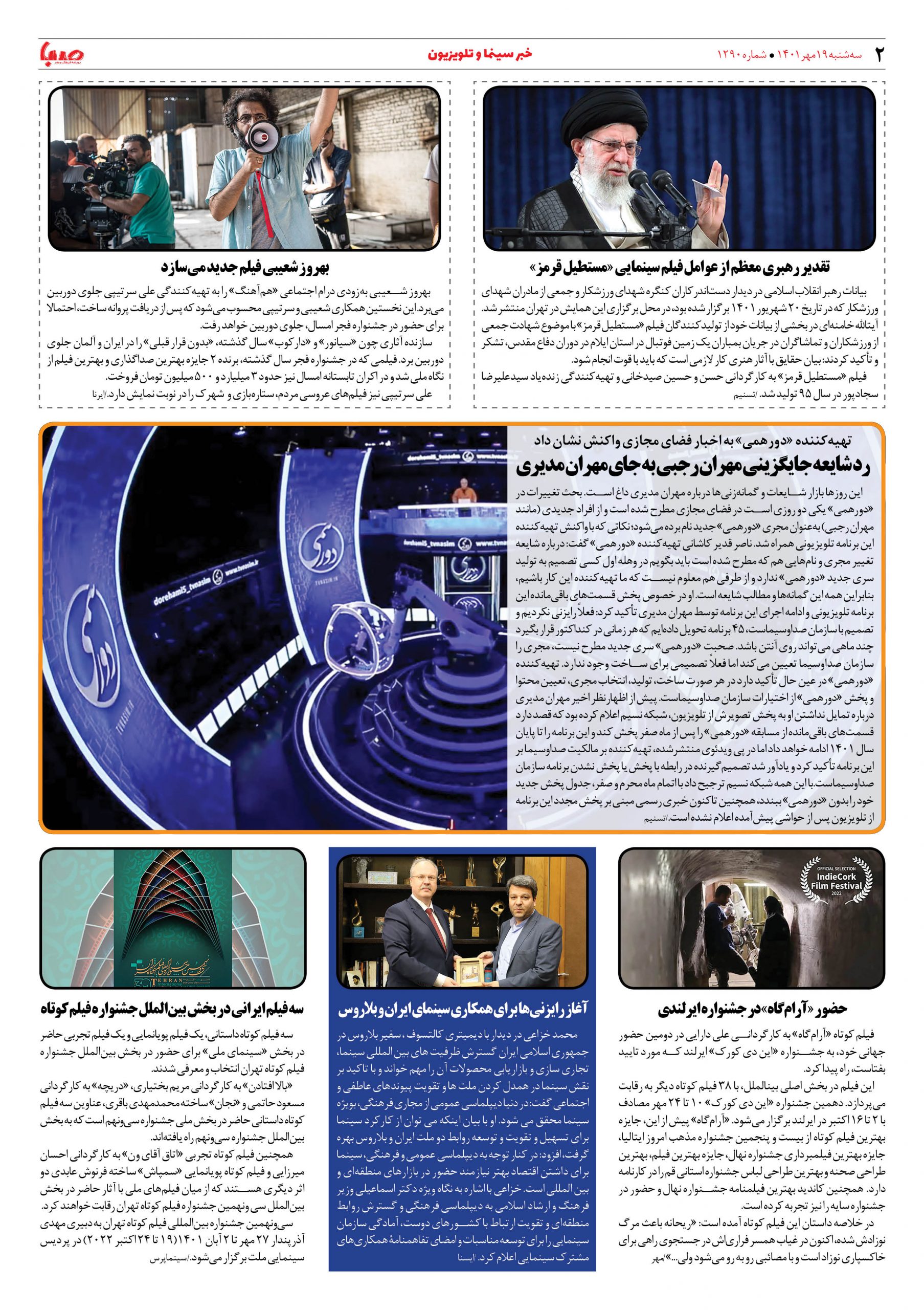 شماره ۱۲۹۰| روزنامه صبا سهشنبه ۱۹ مهر ۱۴۰۱