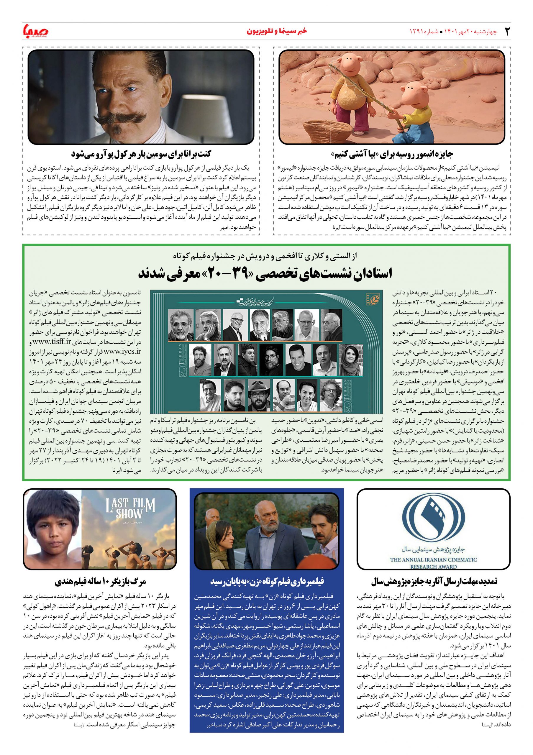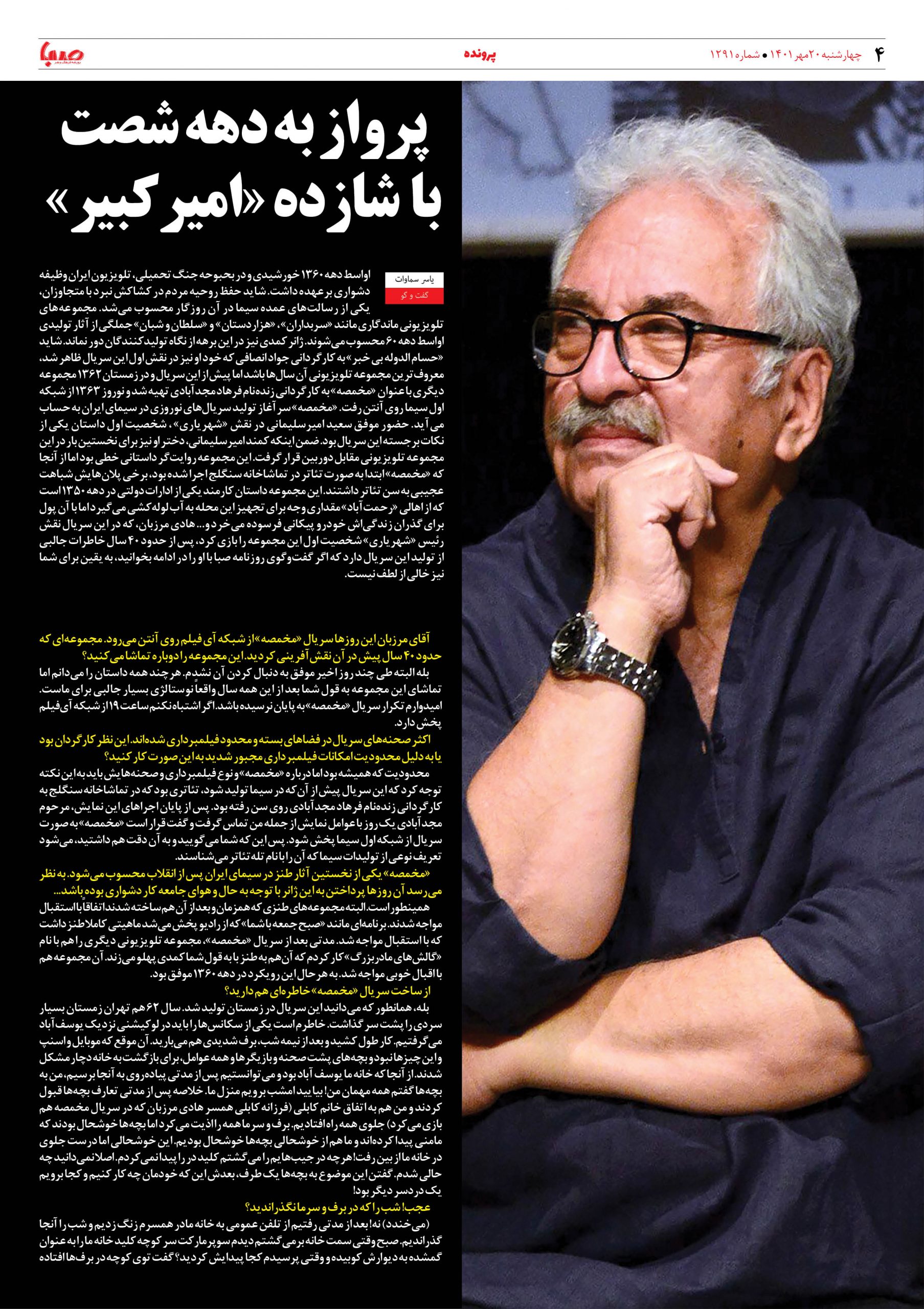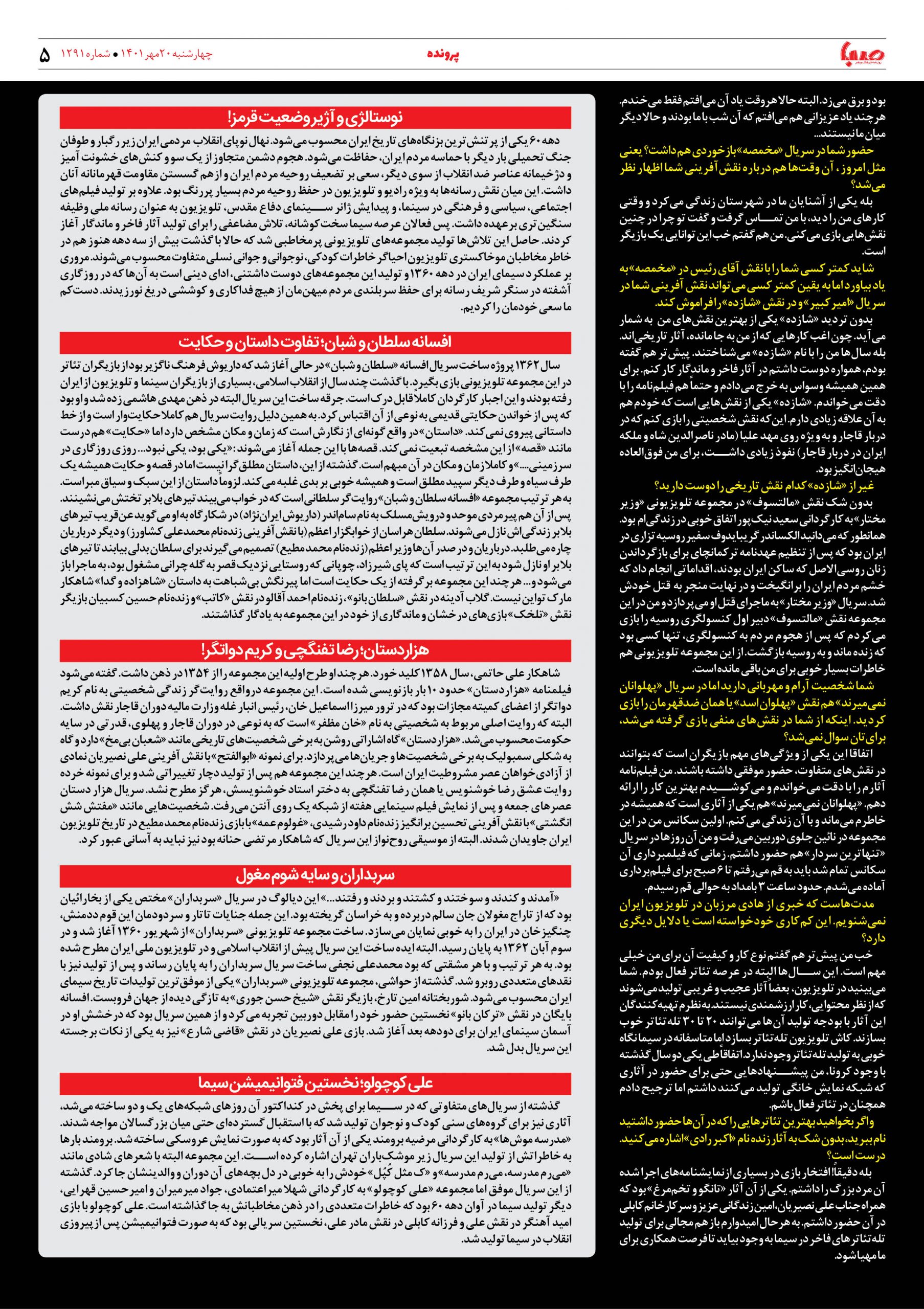 شماره ۱۲۹۱| روزنامه صبا چهارشنبه ۲۰ مهر ۱۴۰۱