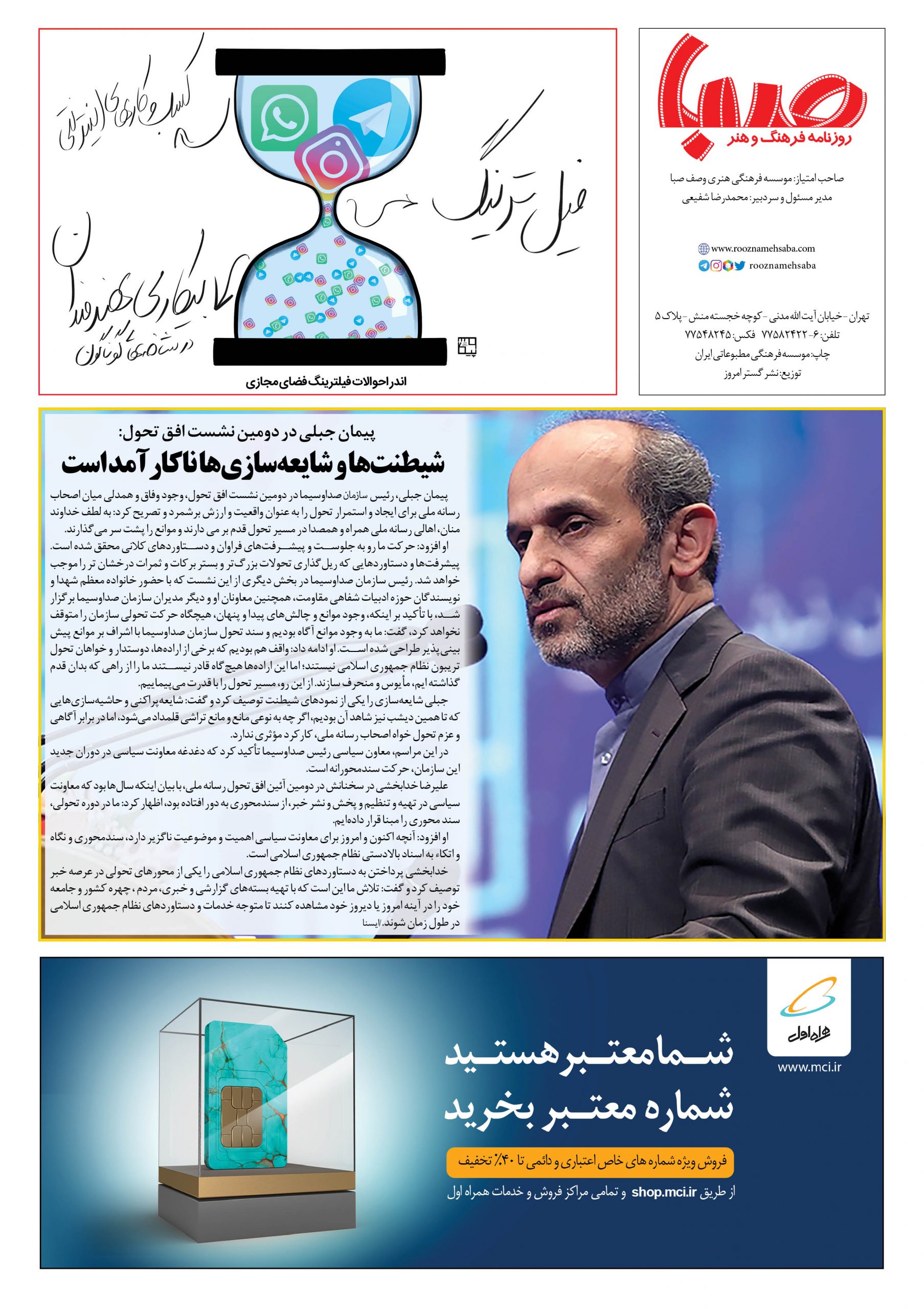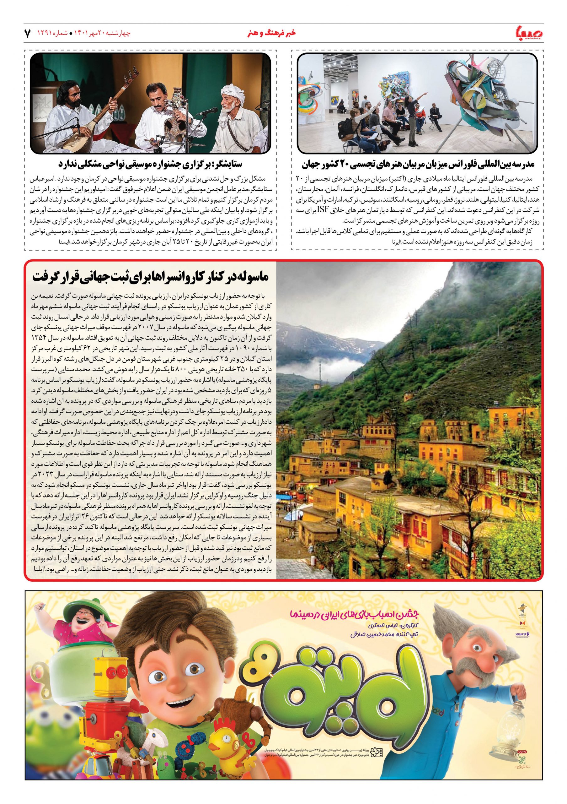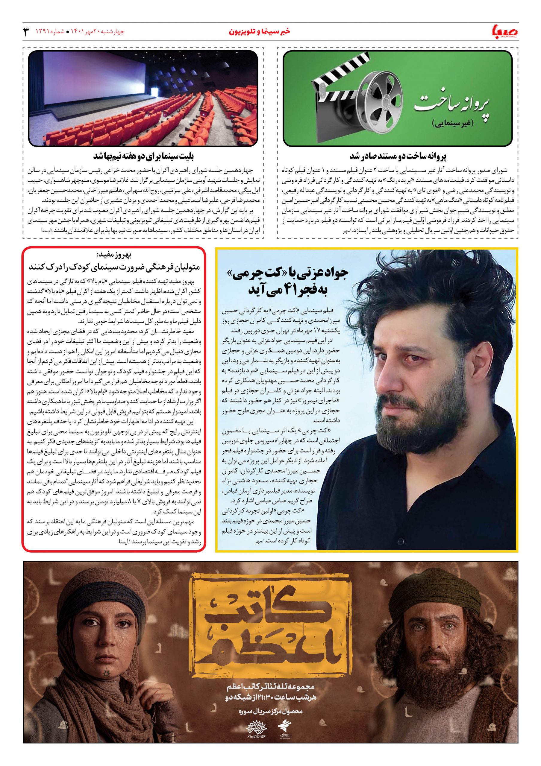 شماره ۱۲۹۱| روزنامه صبا چهارشنبه ۲۰ مهر ۱۴۰۱