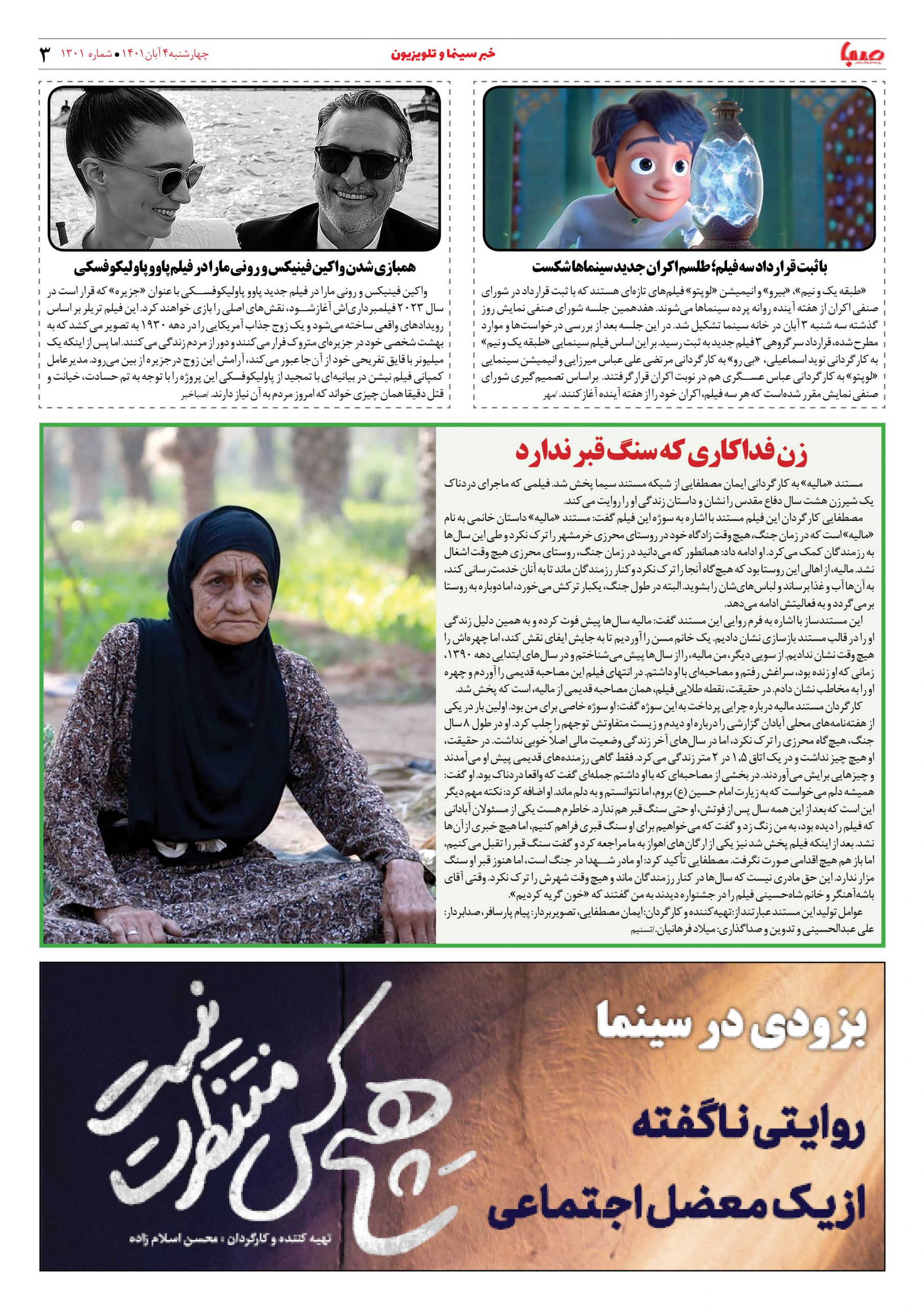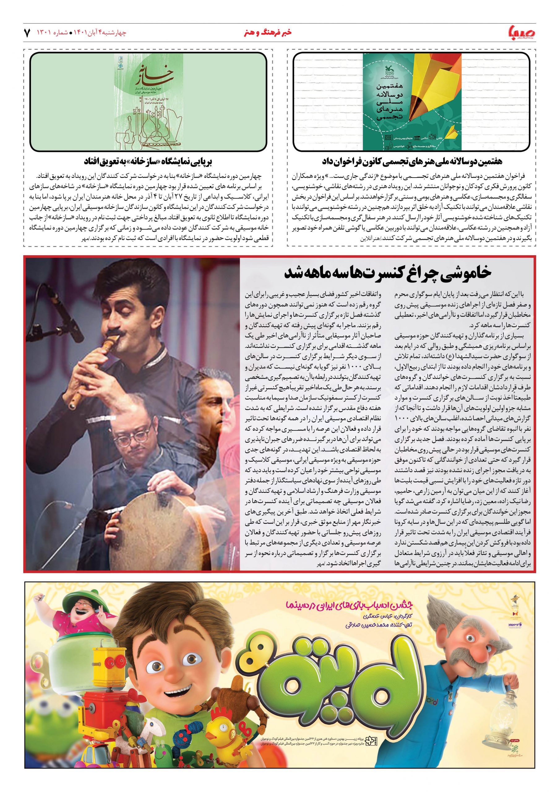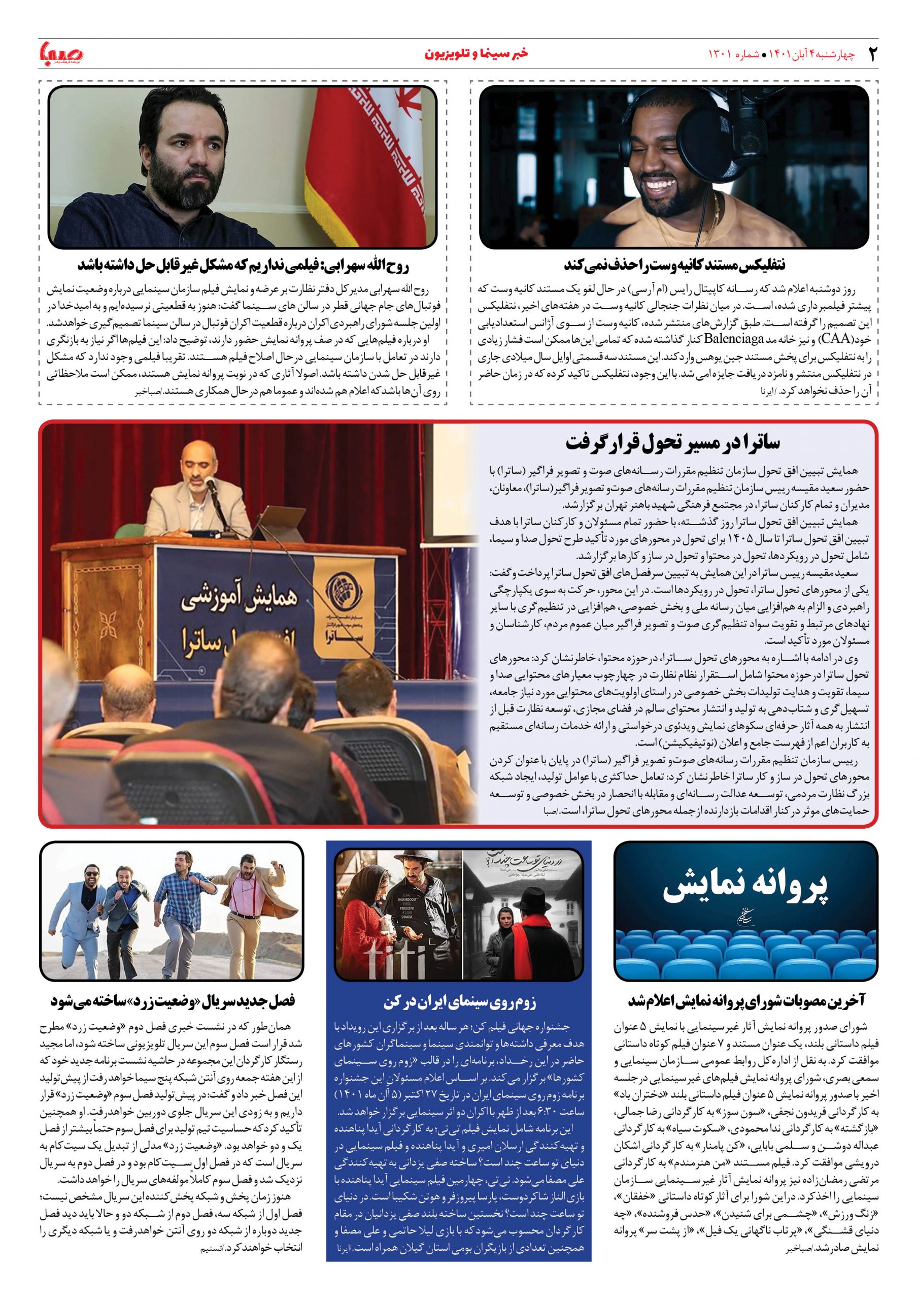 شماره ۱۳۰۱| روزنامه صبا چهارشنبه ۴ آبان ۱۴۰۱