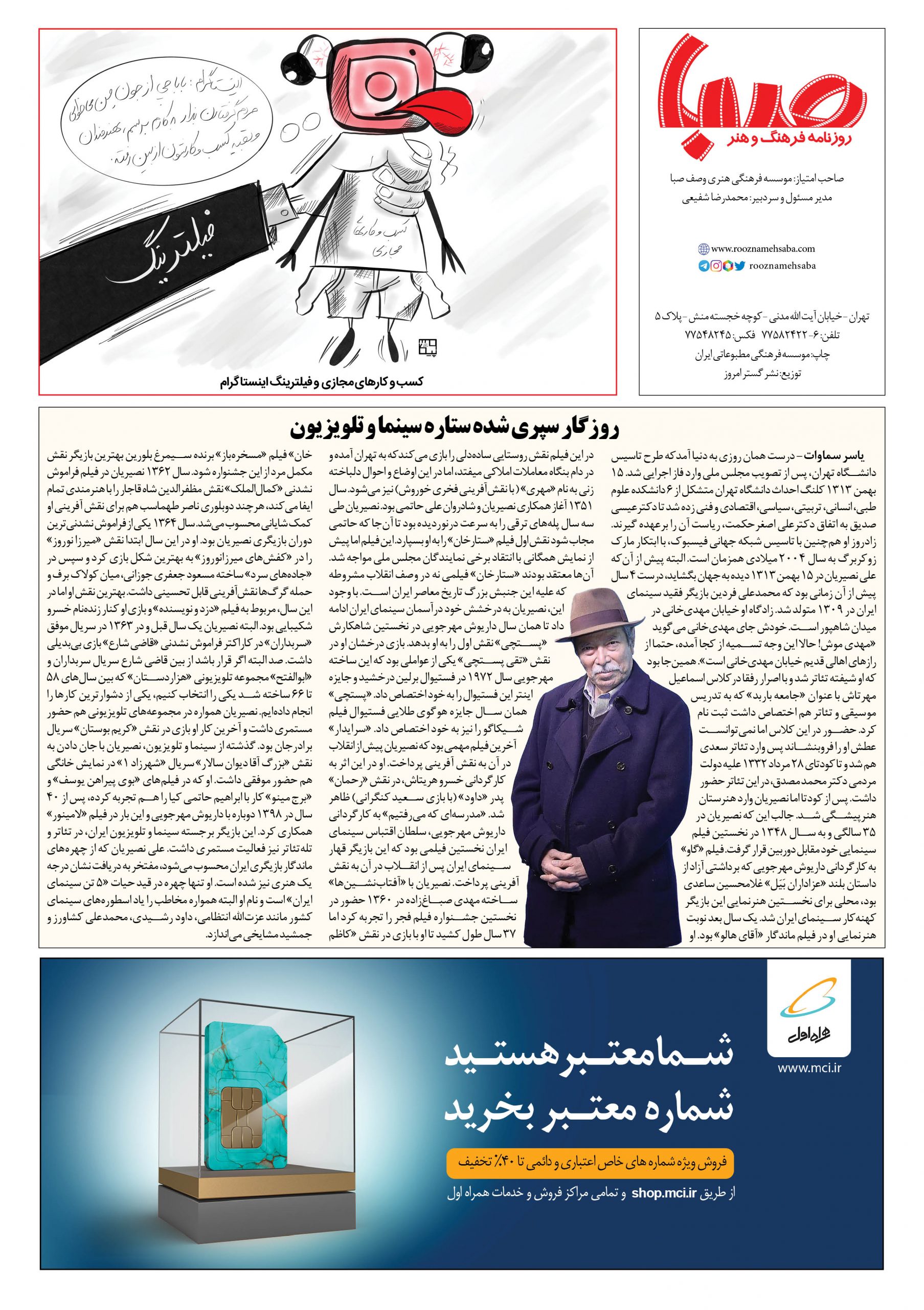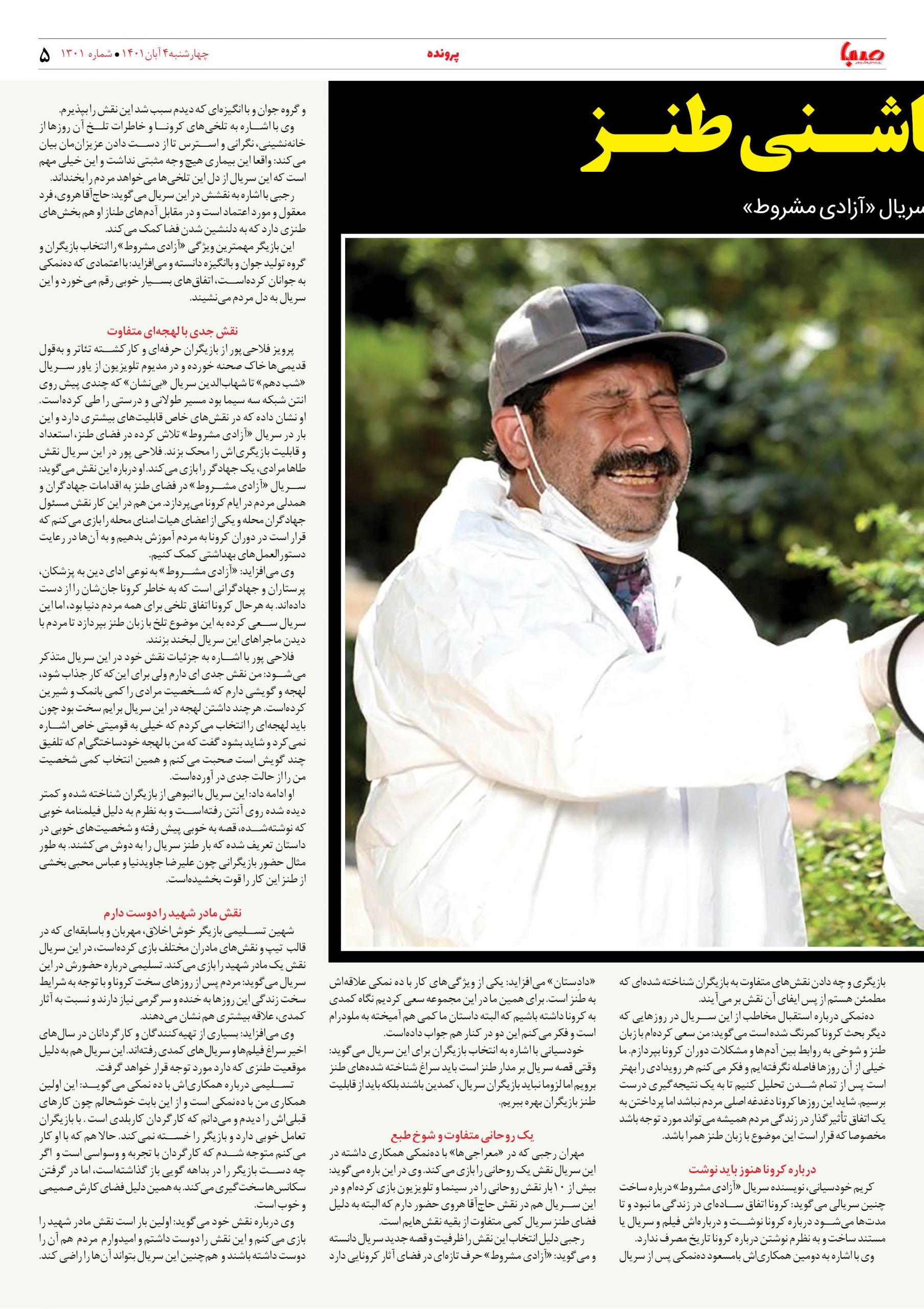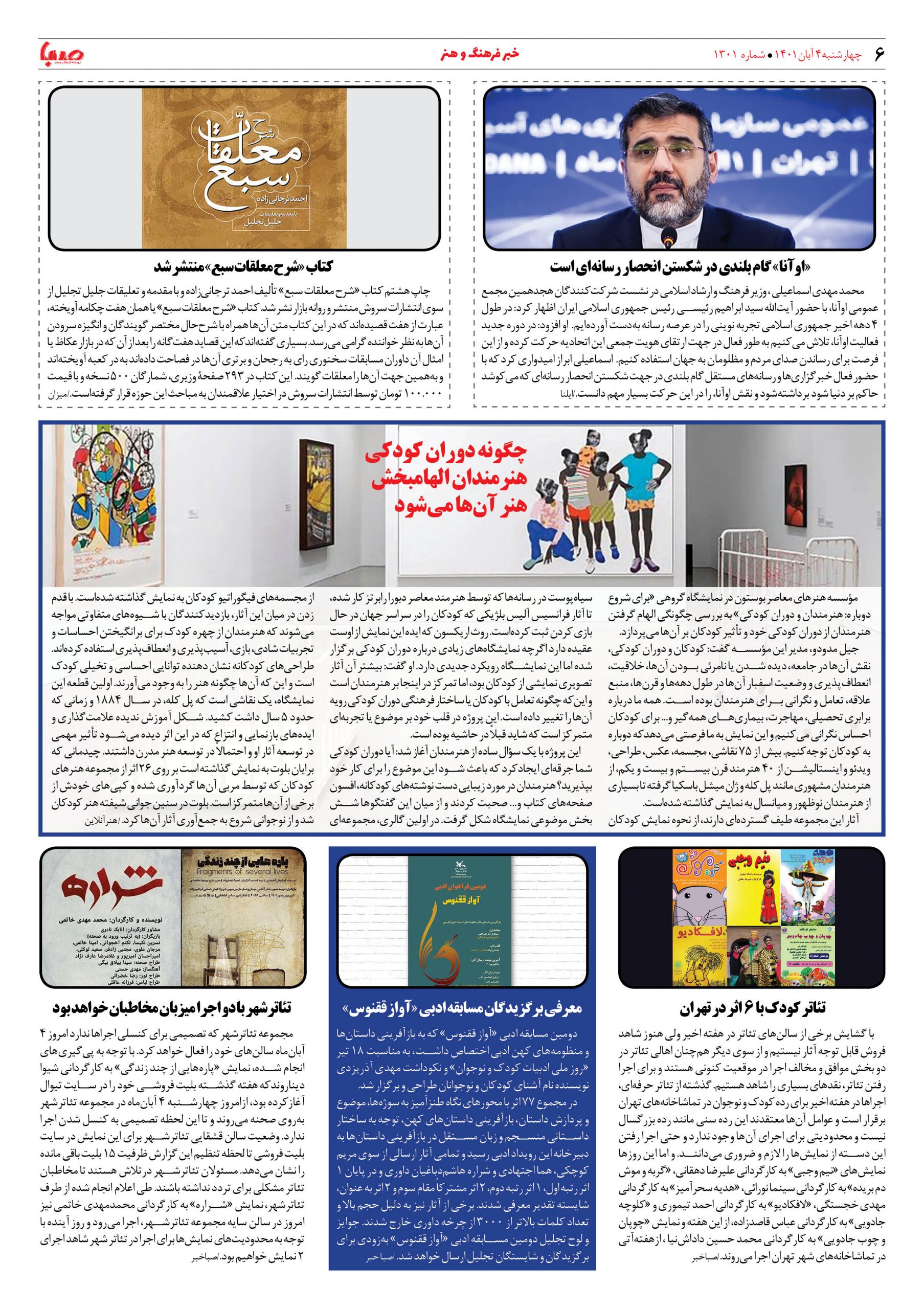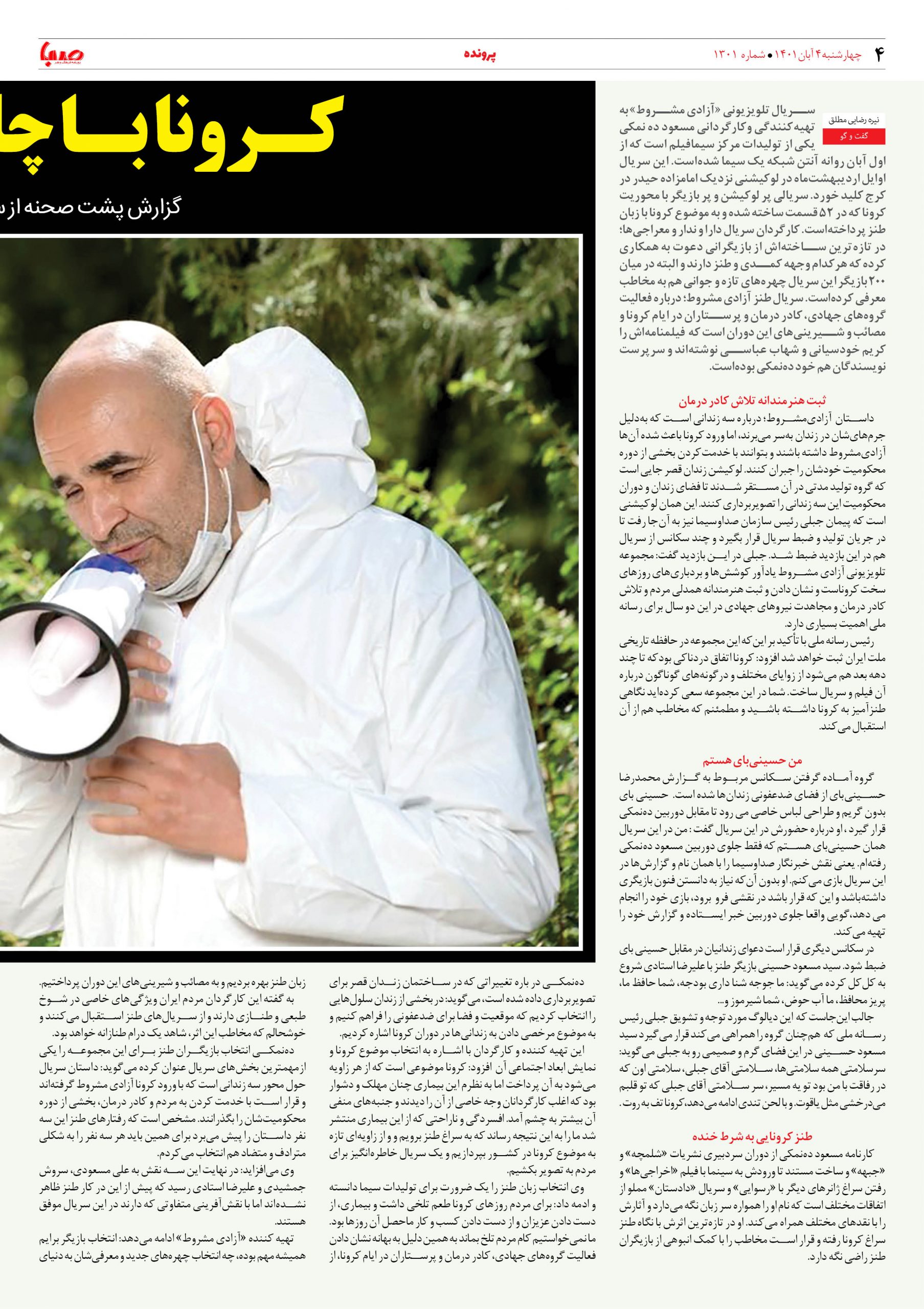 شماره ۱۳۰۱| روزنامه صبا چهارشنبه ۴ آبان ۱۴۰۱