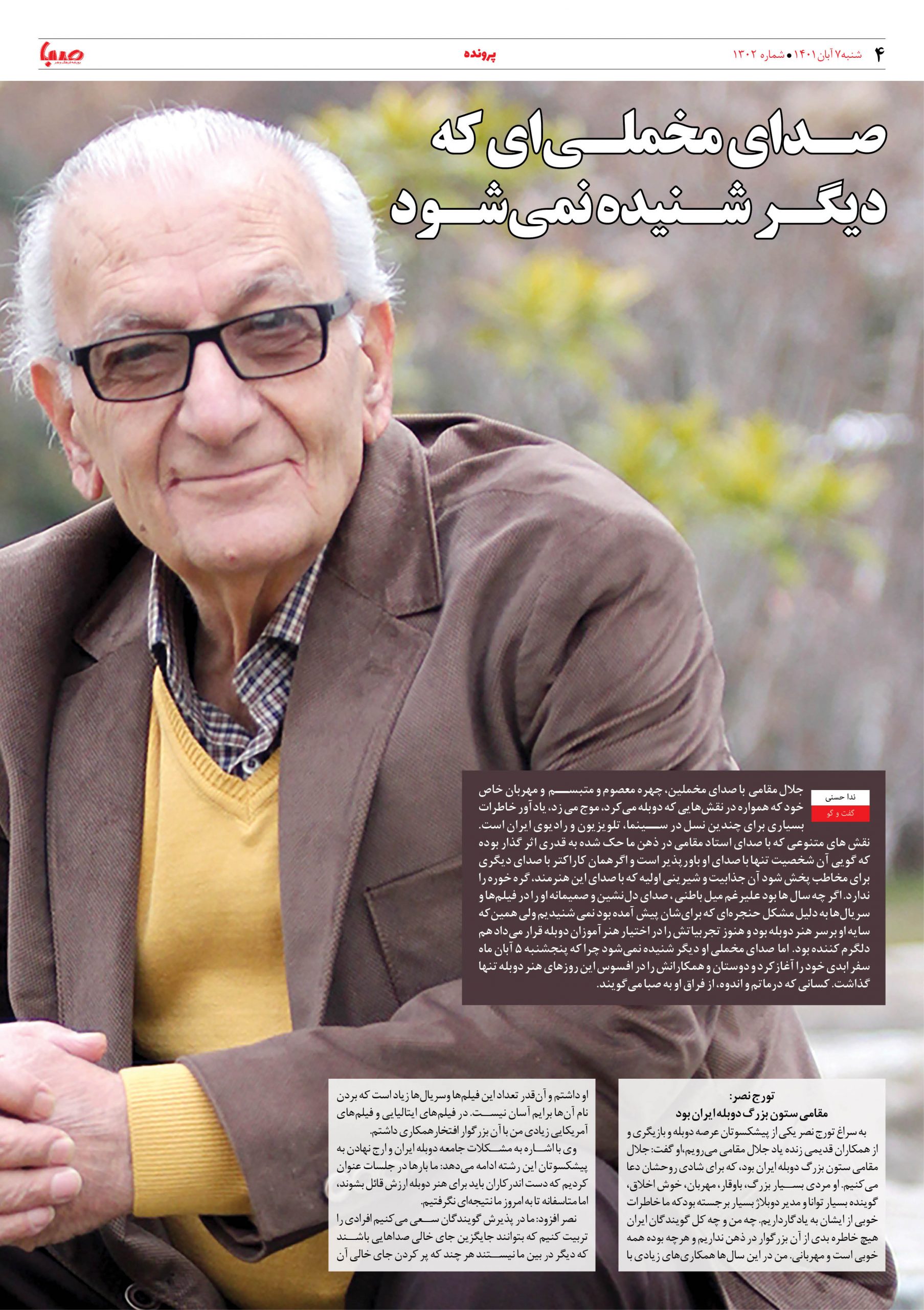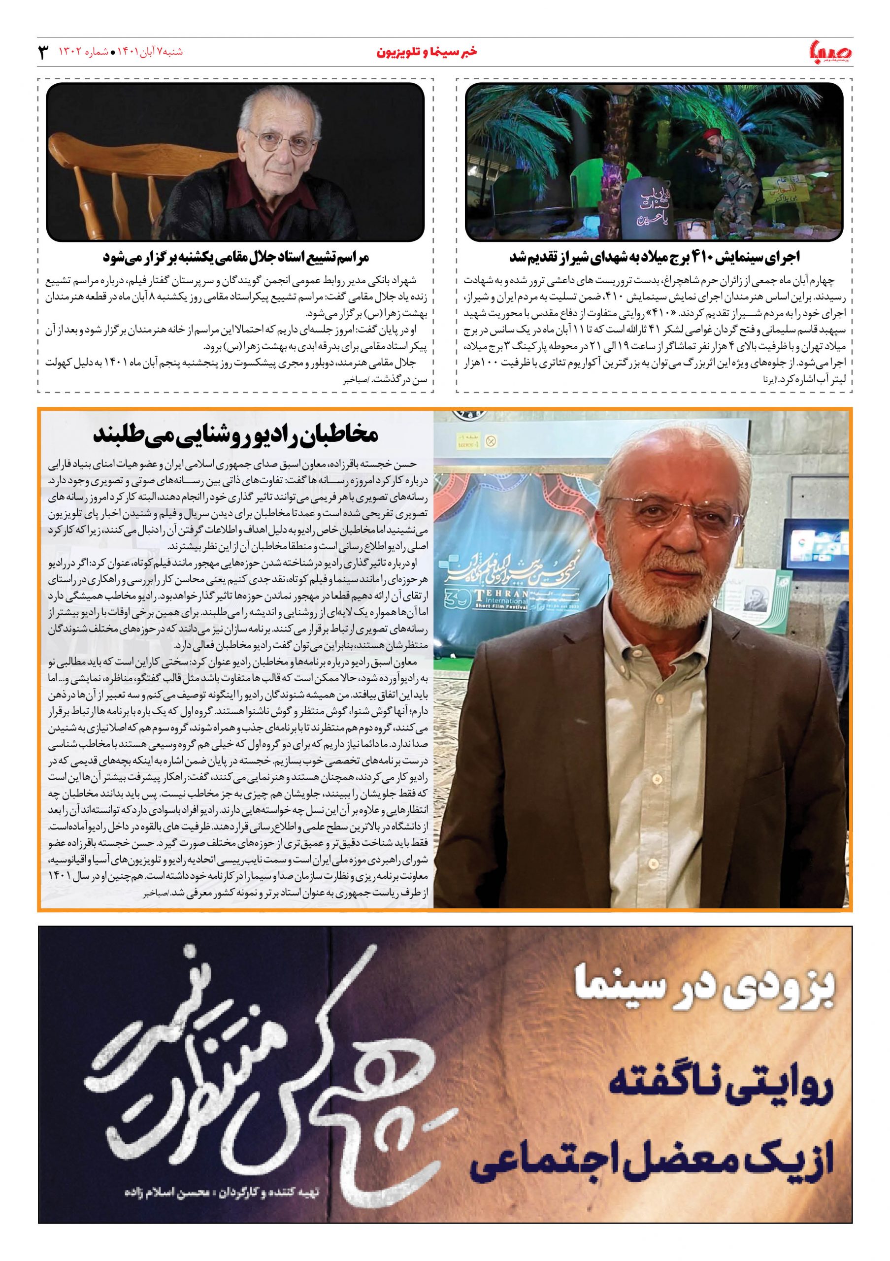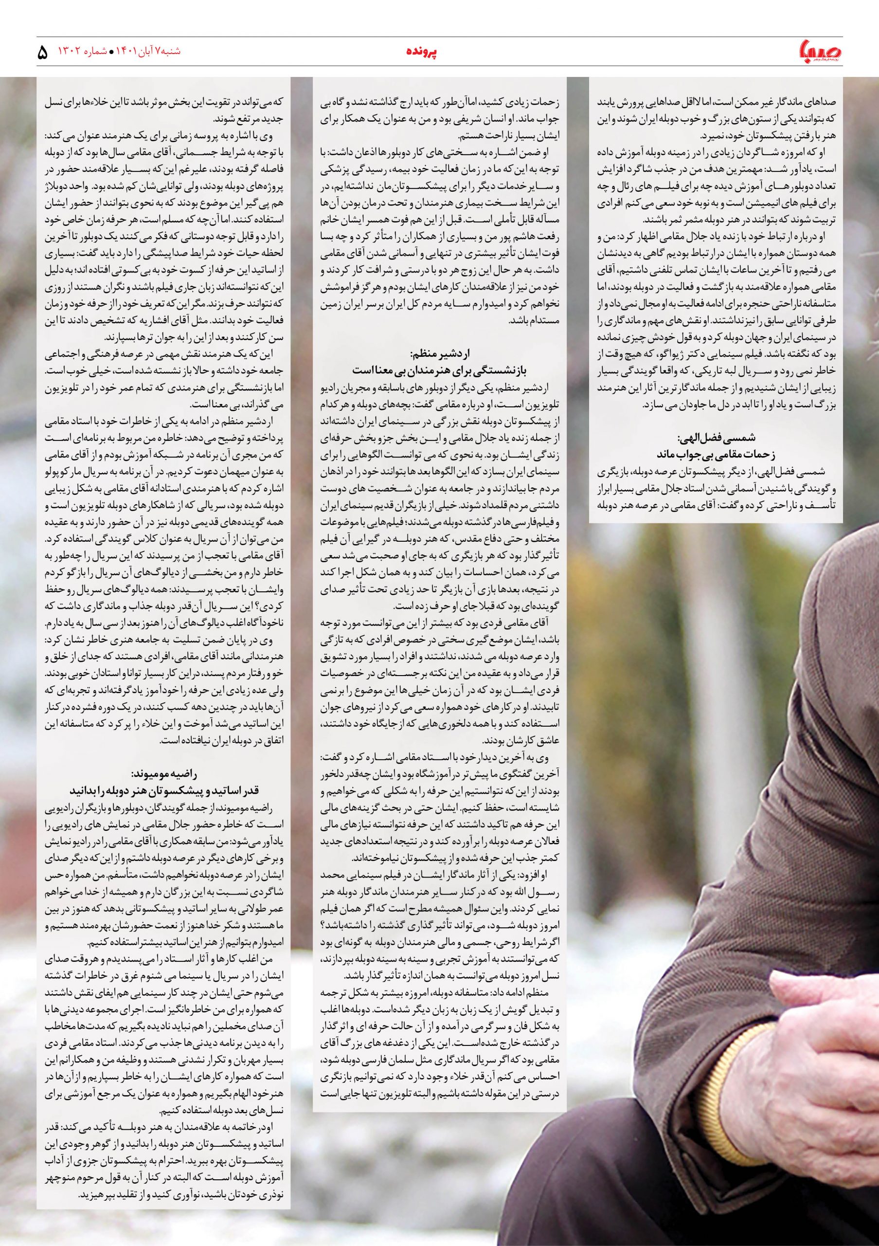 شماره ۱۳۰۲| روزنامه صبا شنبه ۷ آبان ۱۴۰۱
