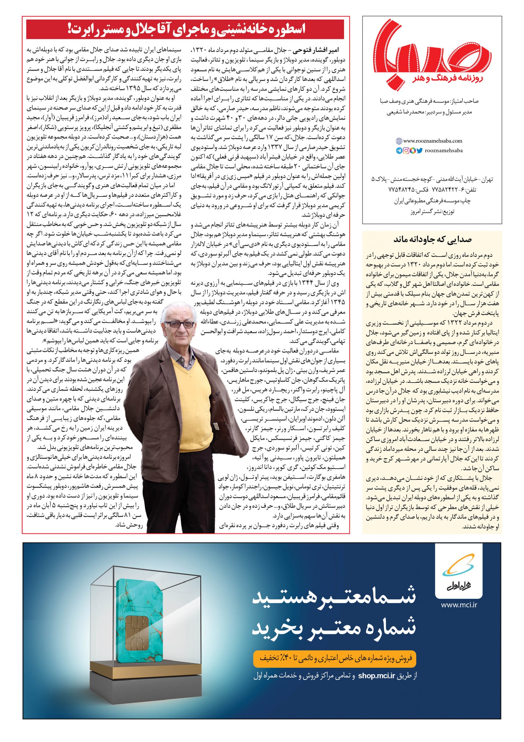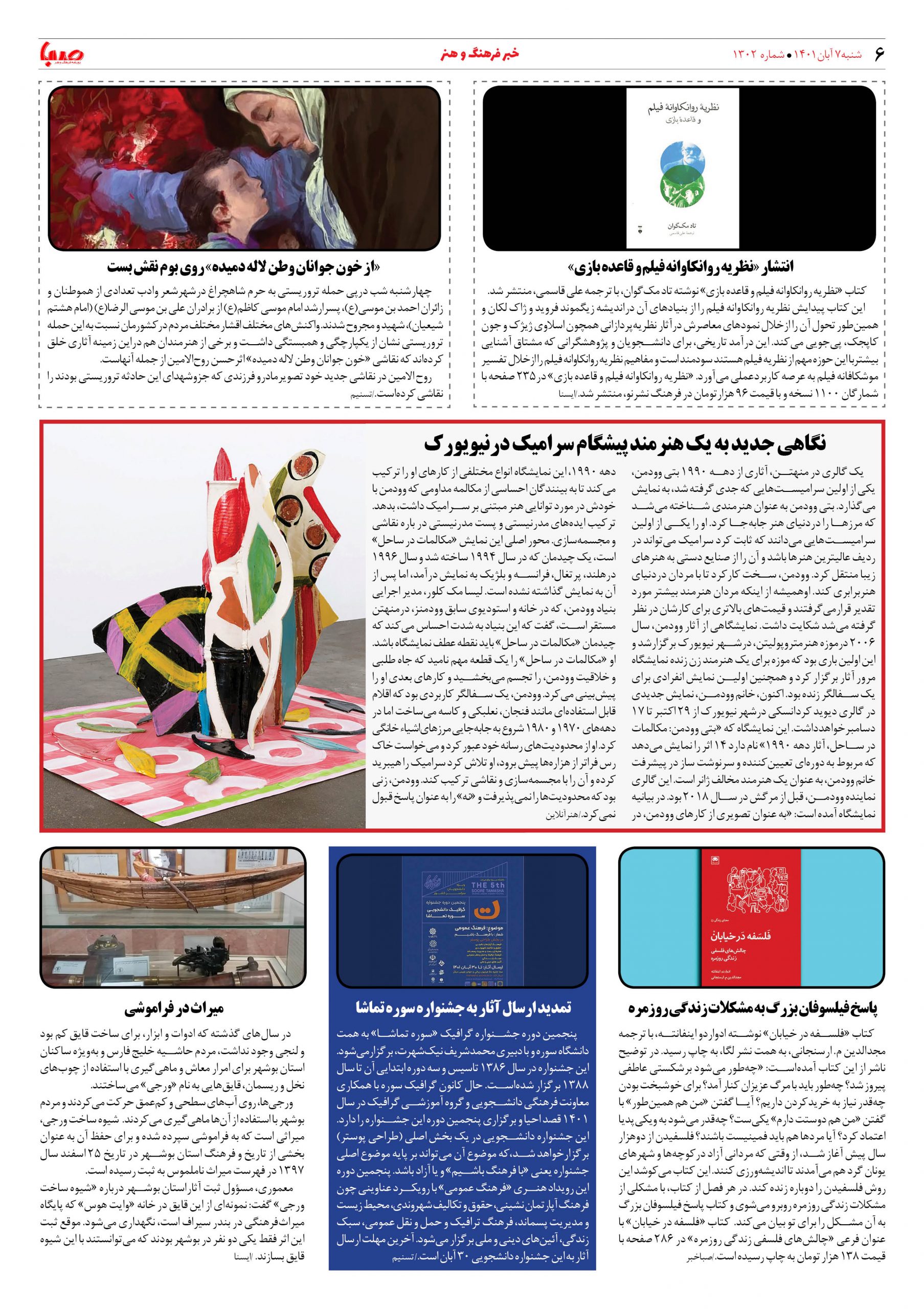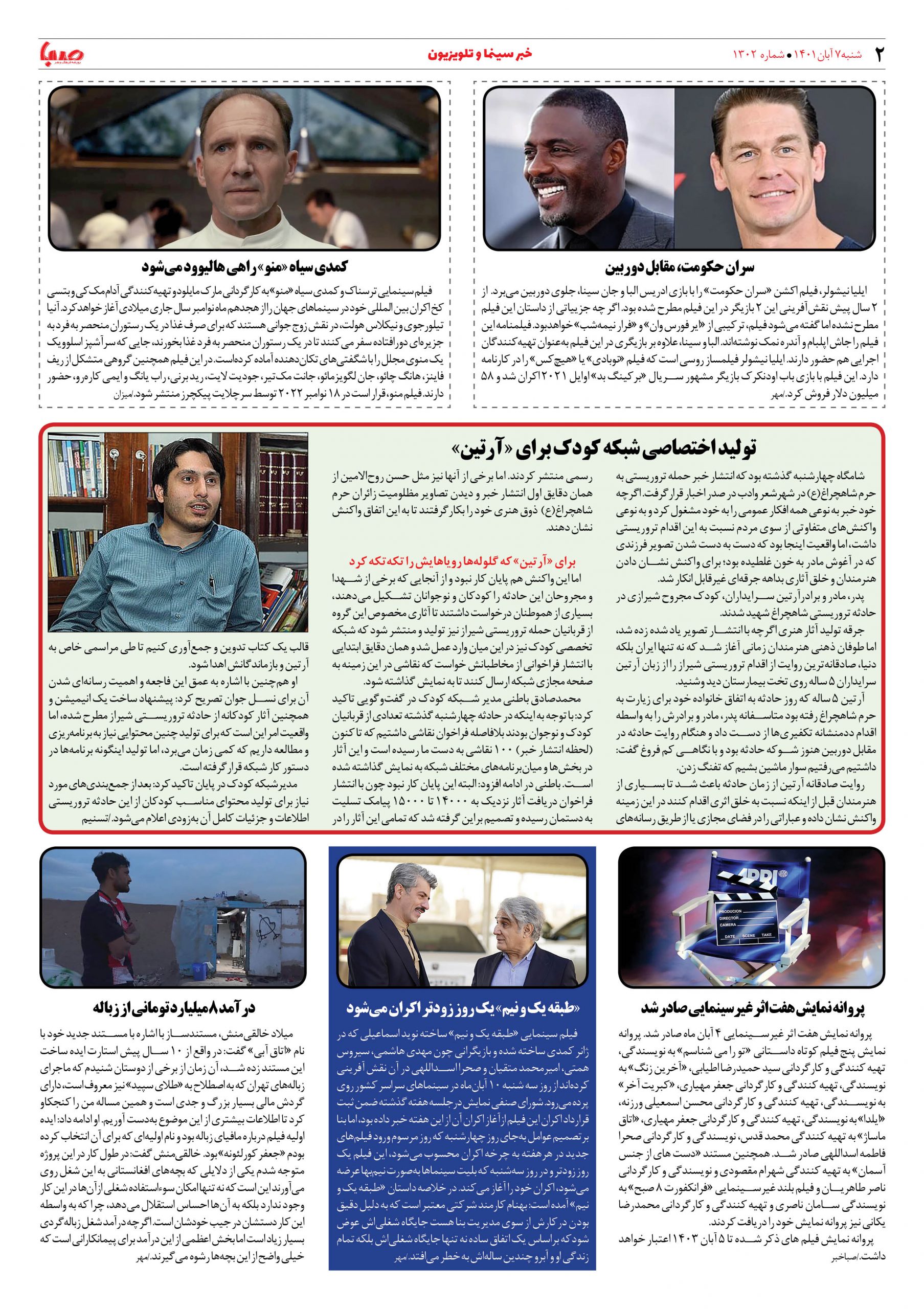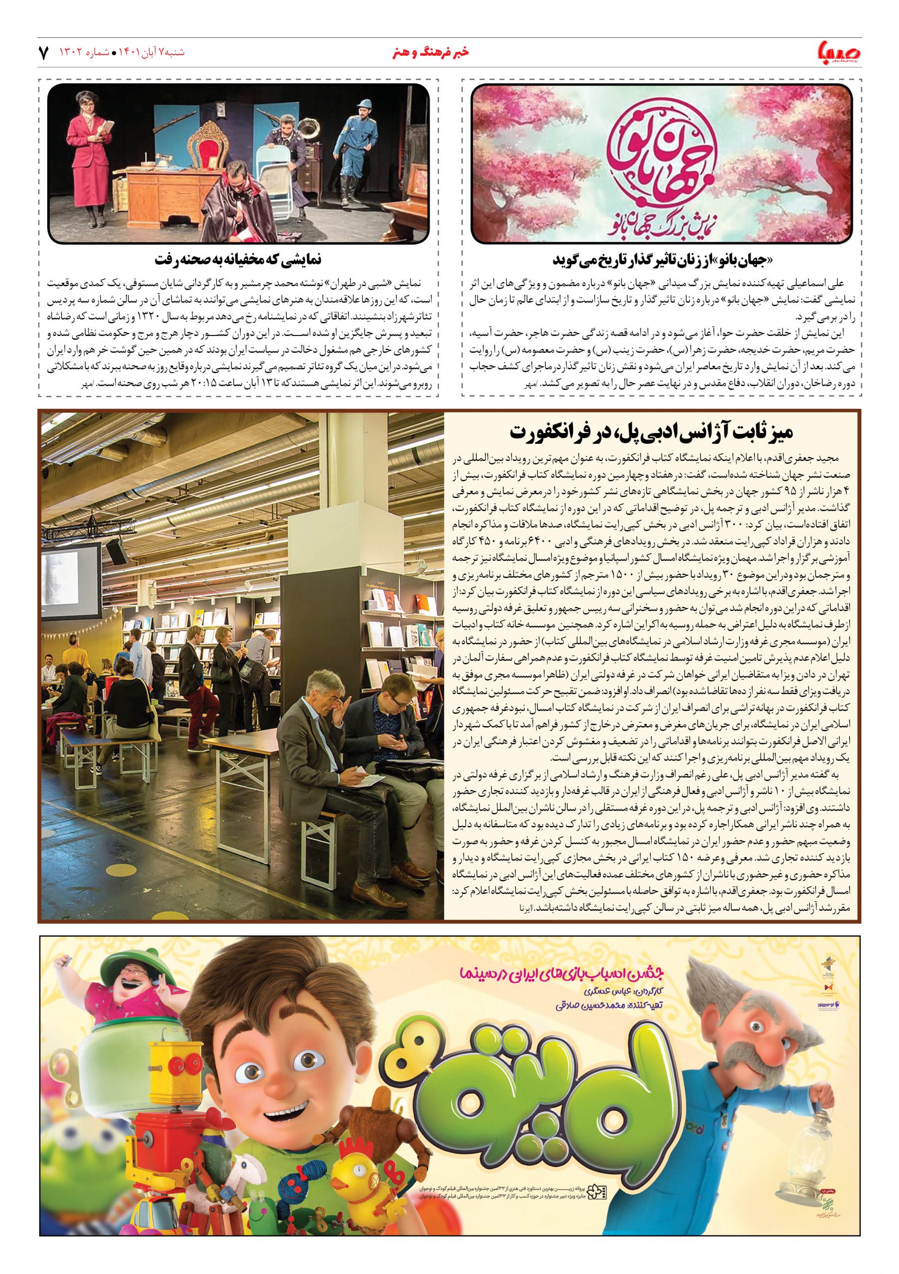 شماره ۱۳۰۲| روزنامه صبا شنبه ۷ آبان ۱۴۰۱
