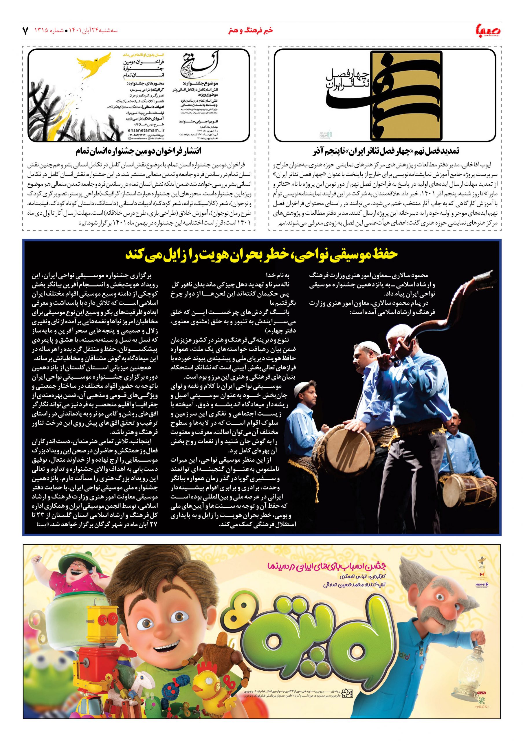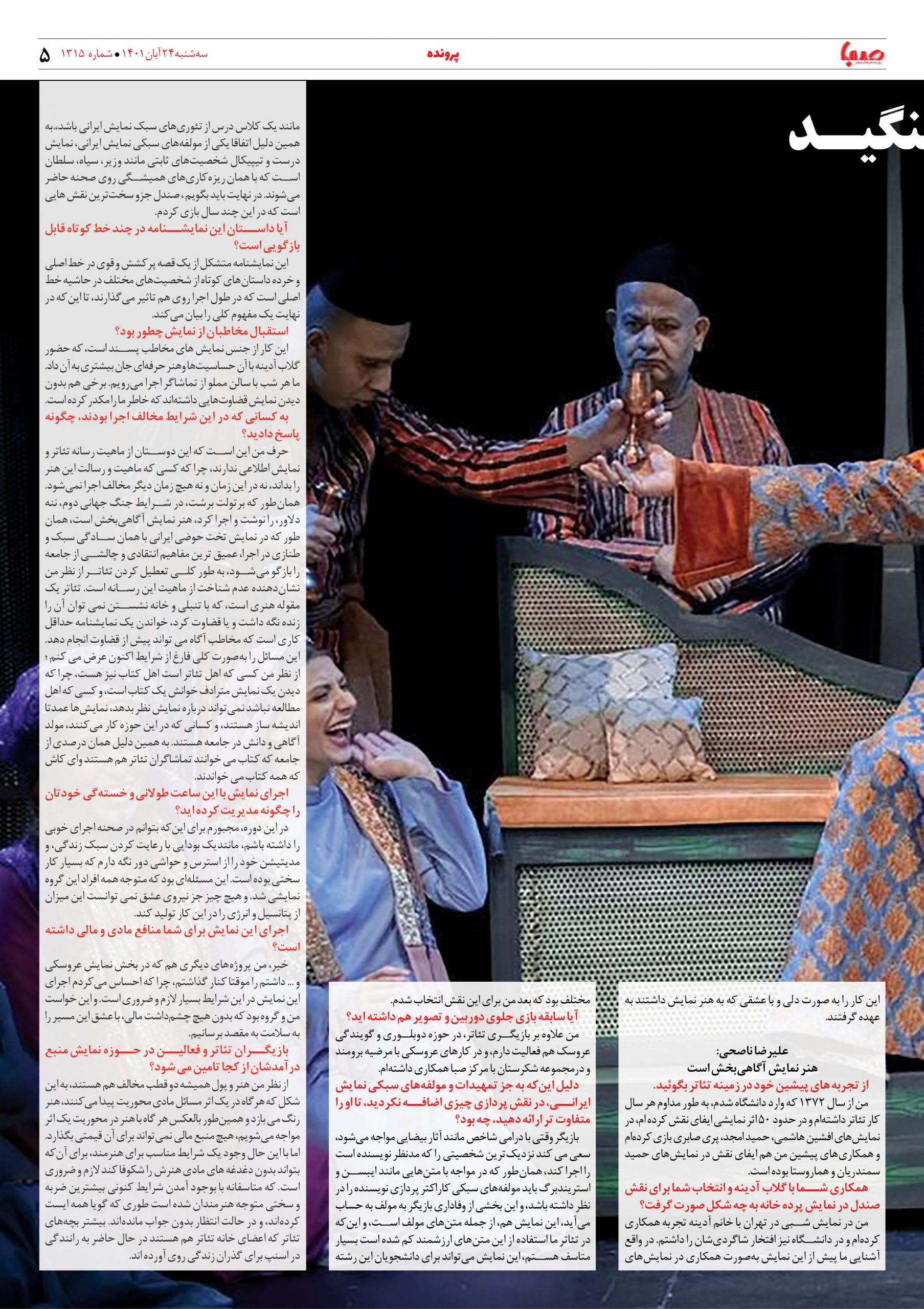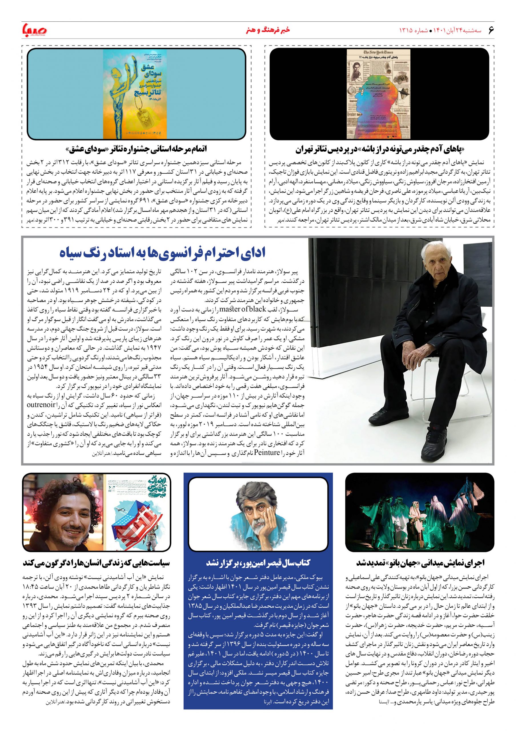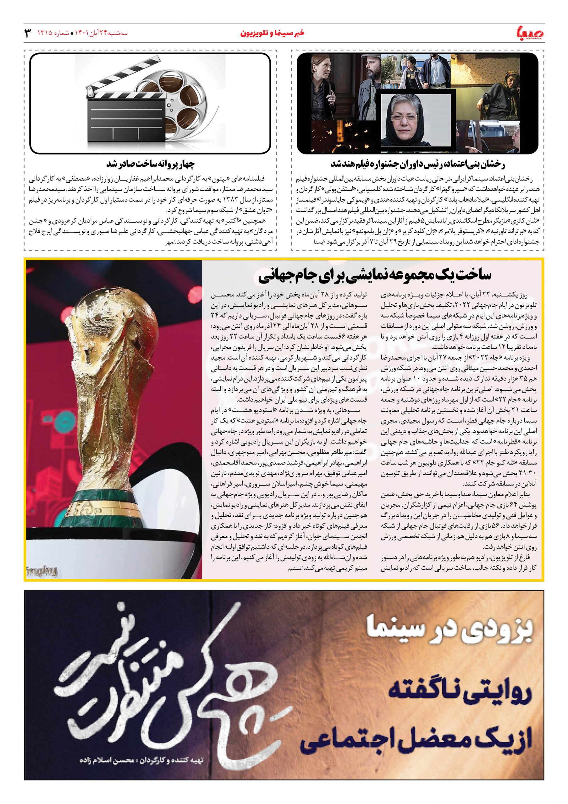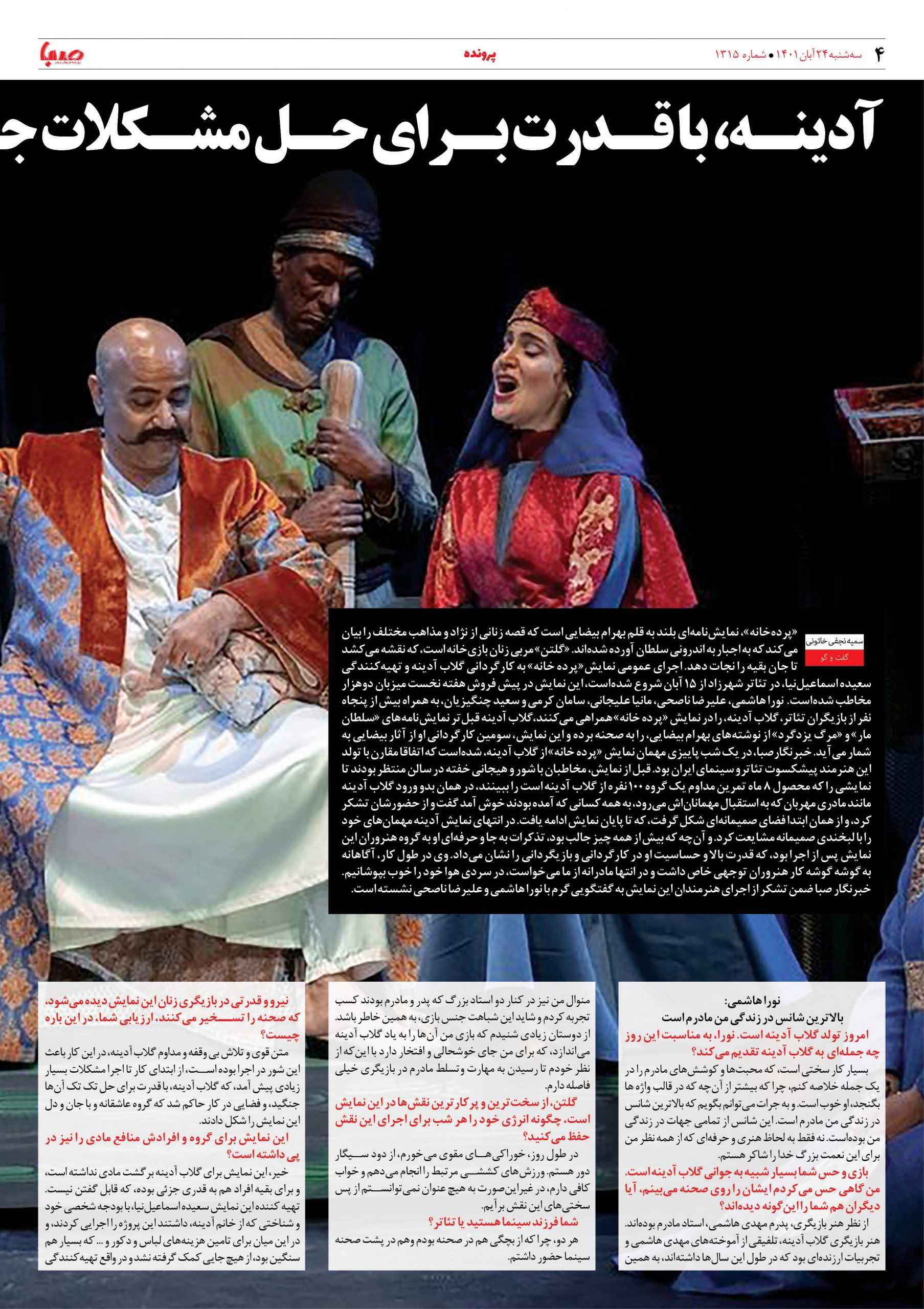 شماره ۱۳۱۵| روزنامه صبا سهشنبه ۲۴ آبان ۱۴۰۱
