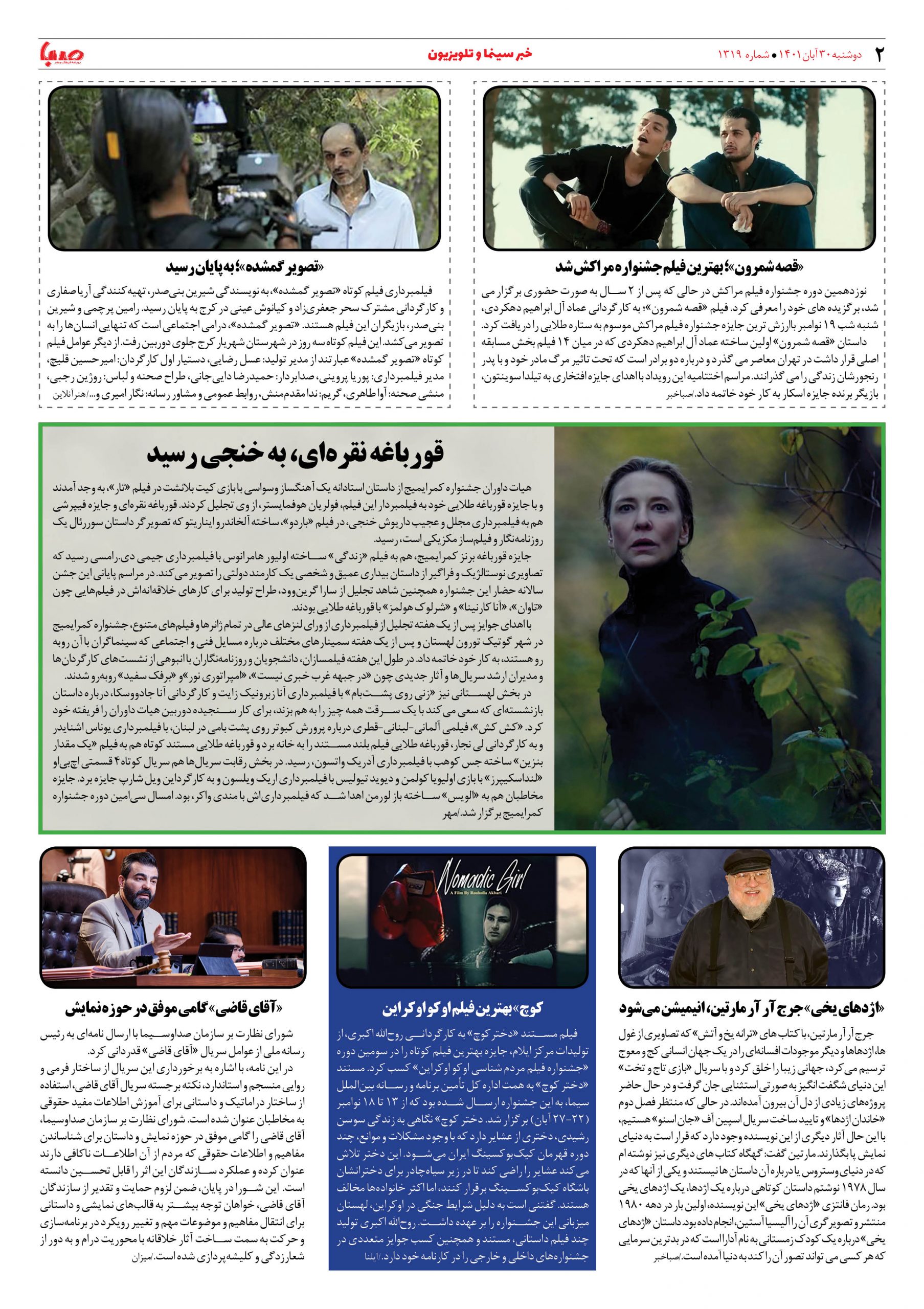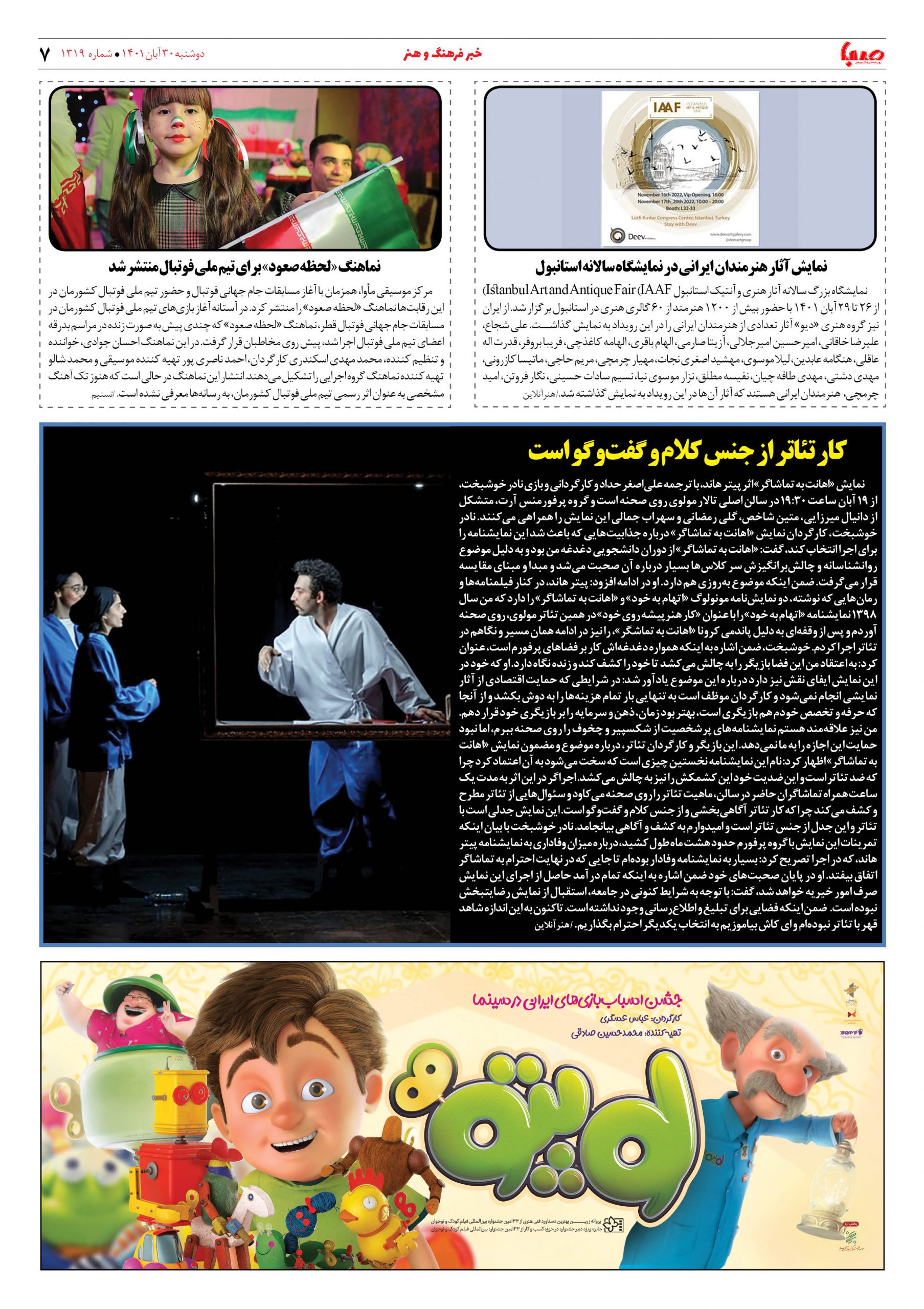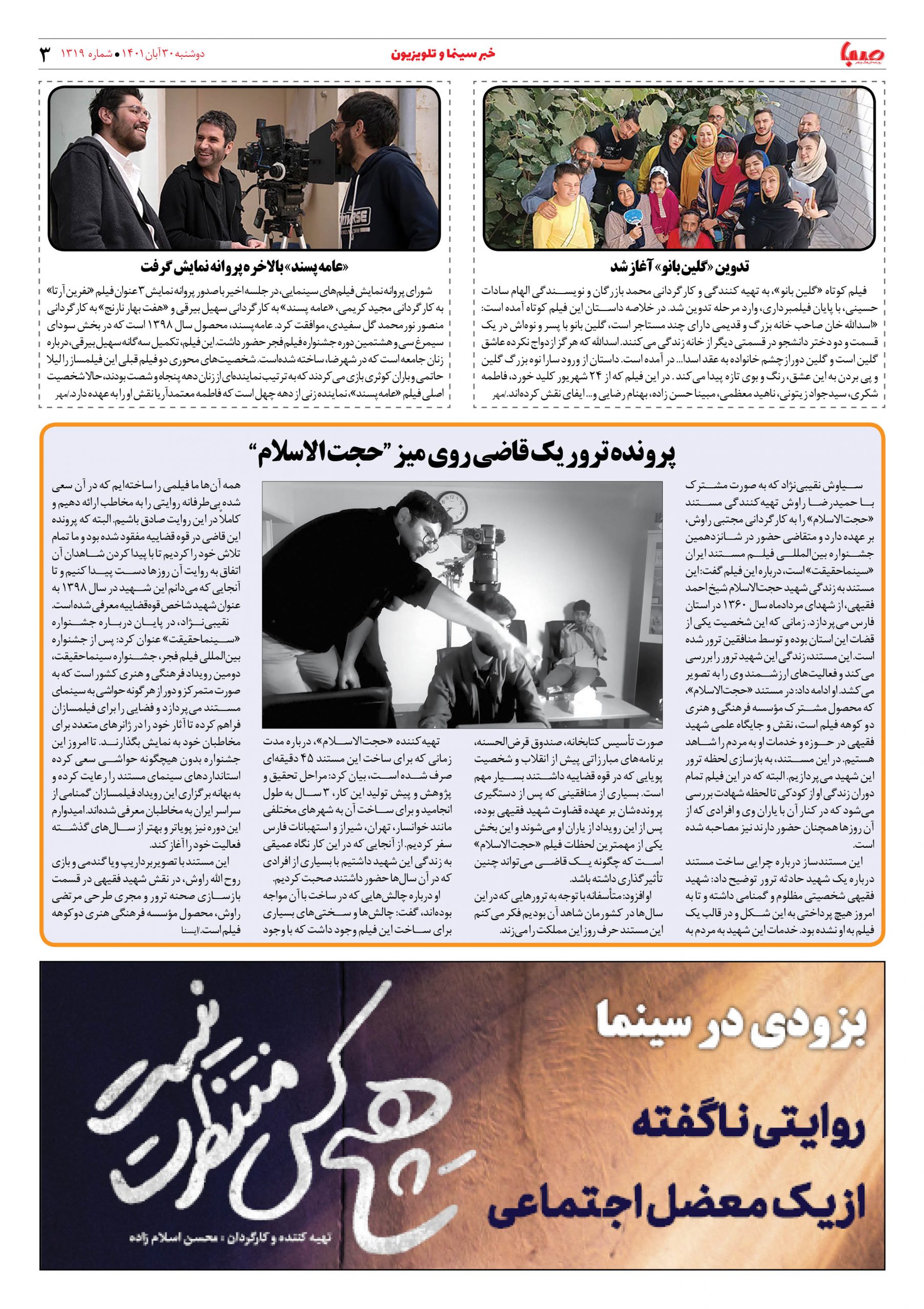 شماره ۱۳۱۹| روزنامه صبا دوشنبه ۳۰ آبان ۱۴۰۱