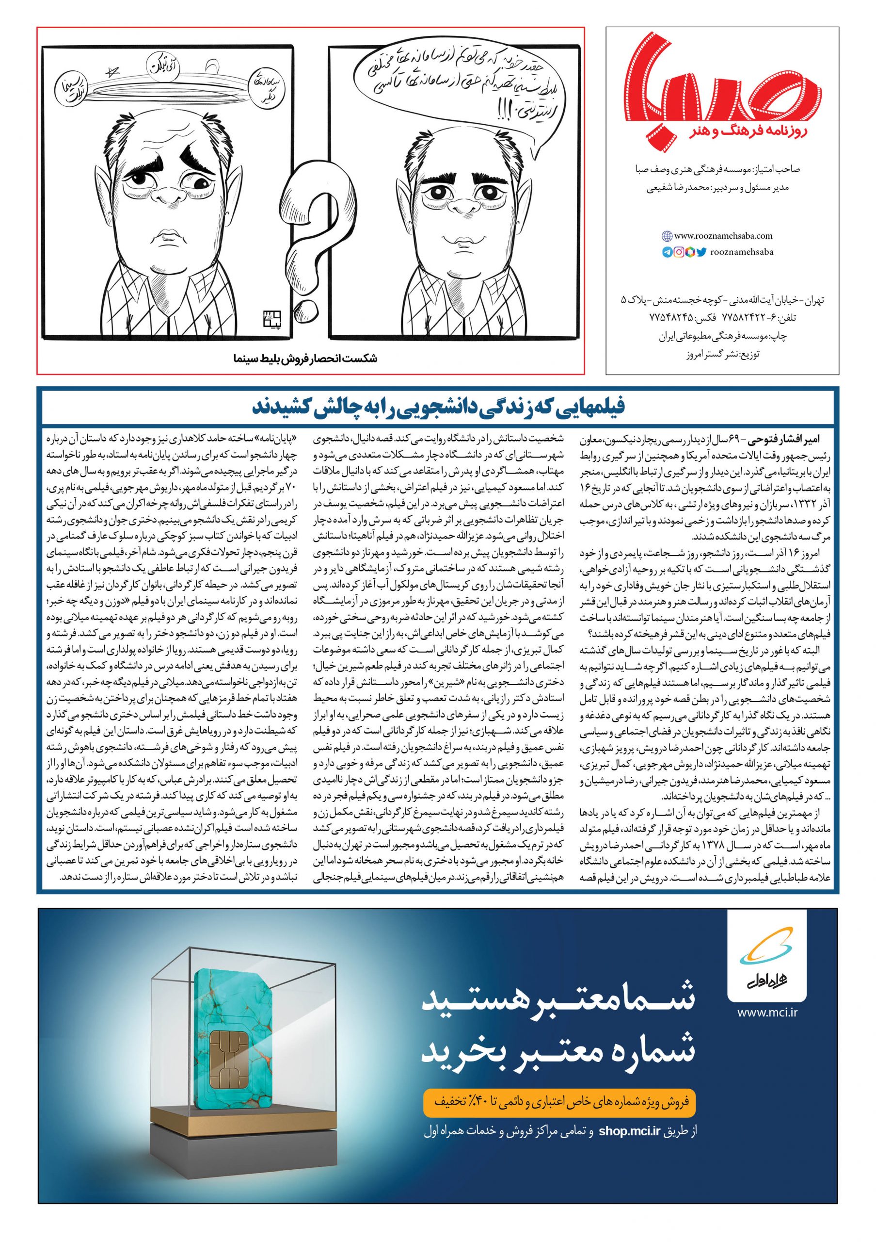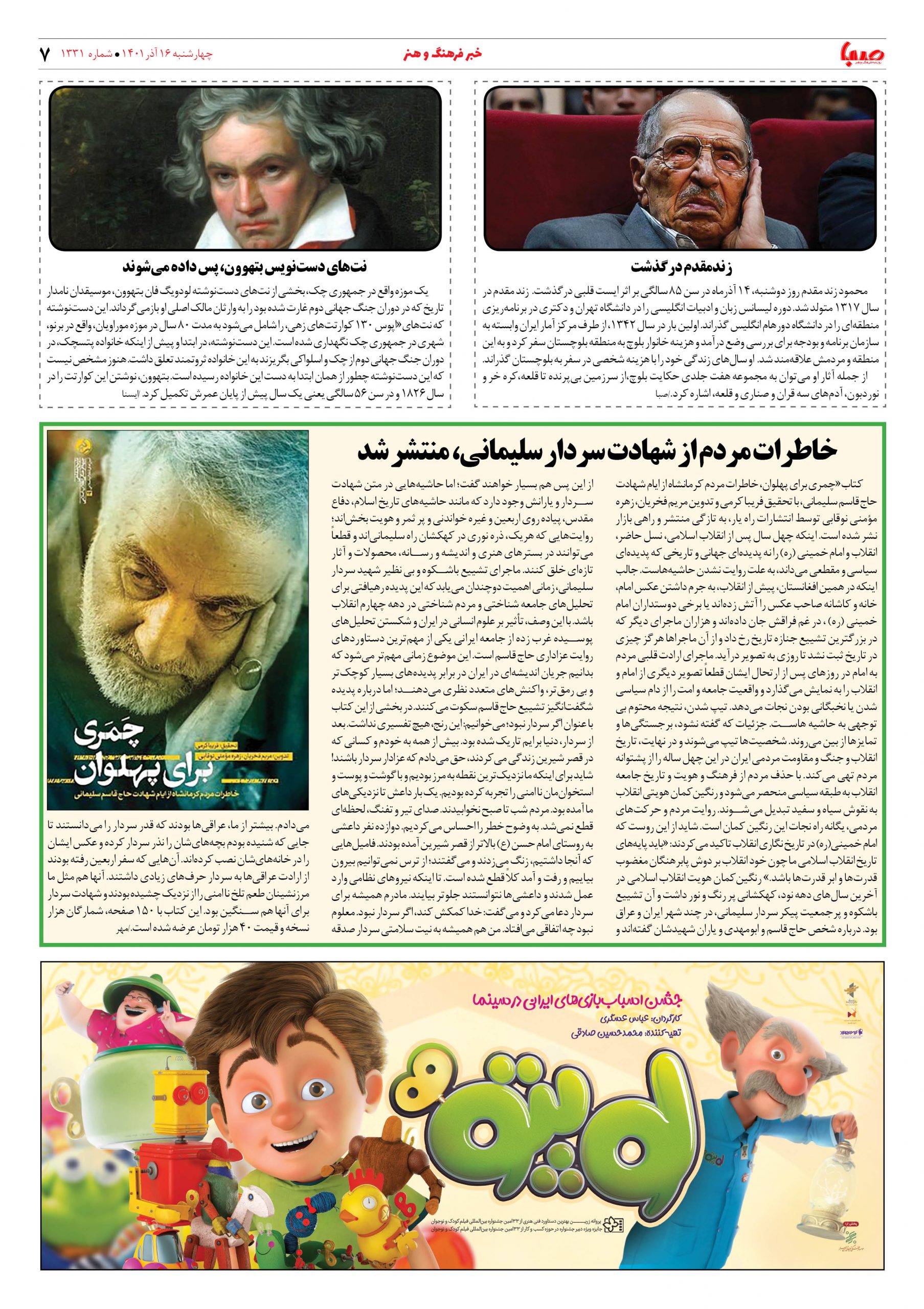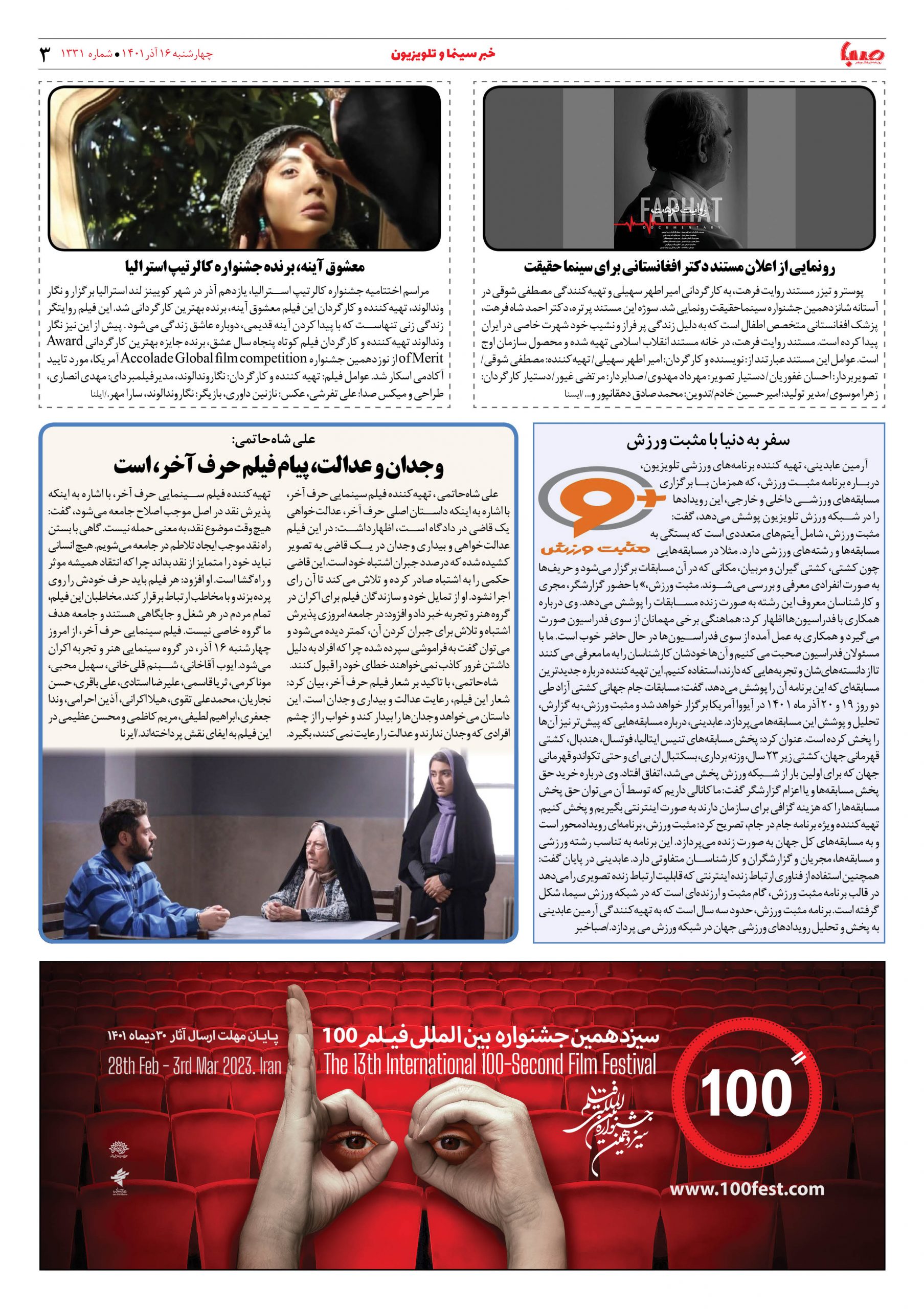 شماره ۱۳۳۱| روزنامه صبا چهارشنبه ۱۶ آذر ۱۴۰۱