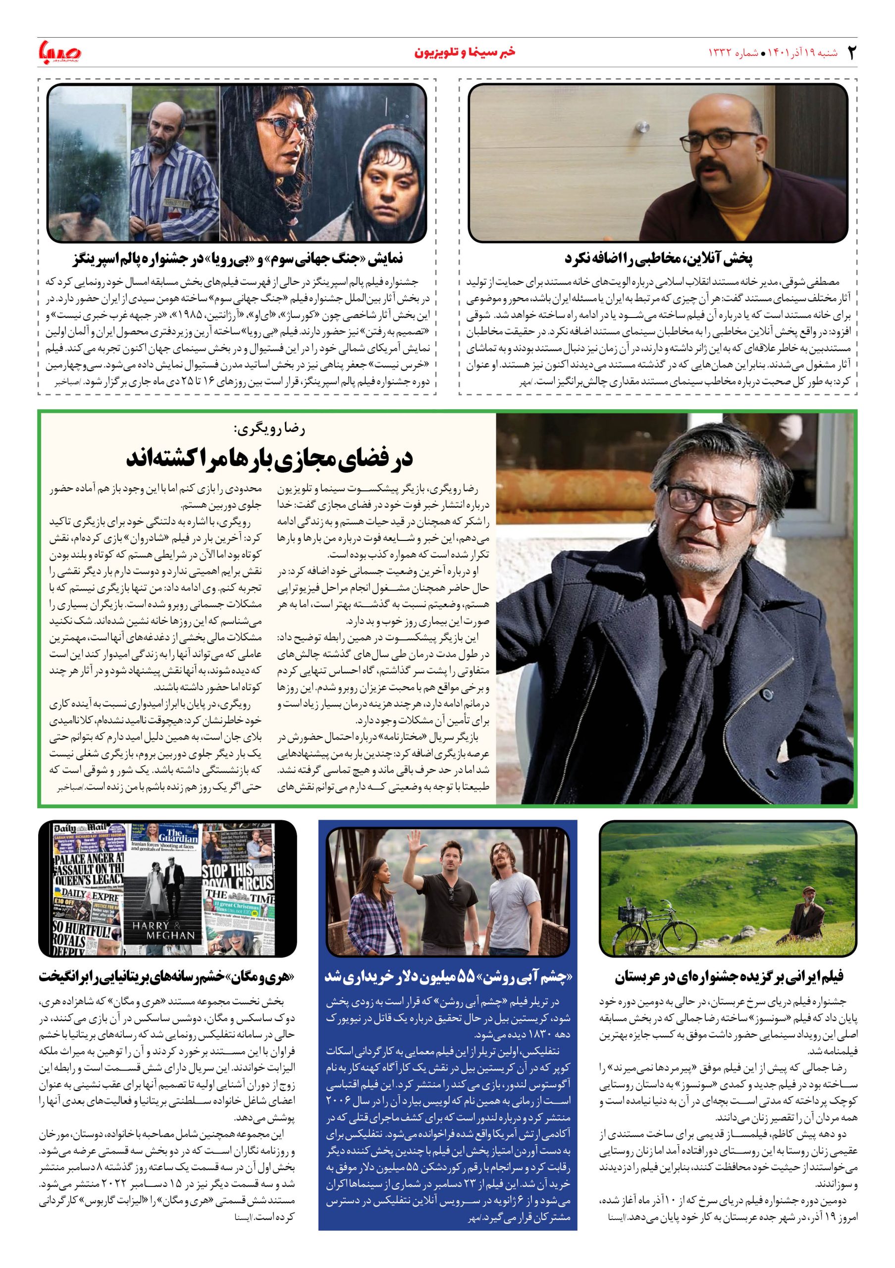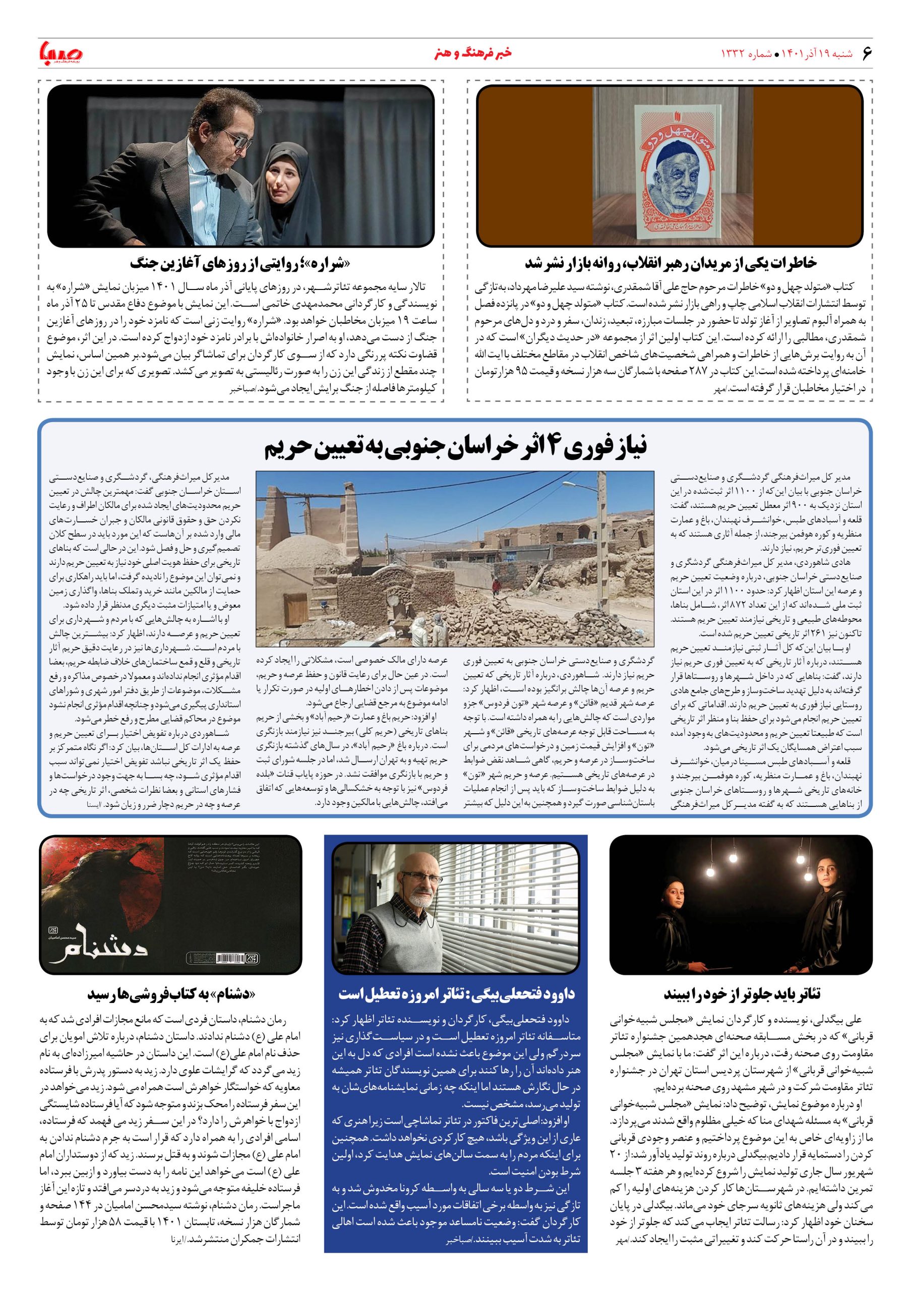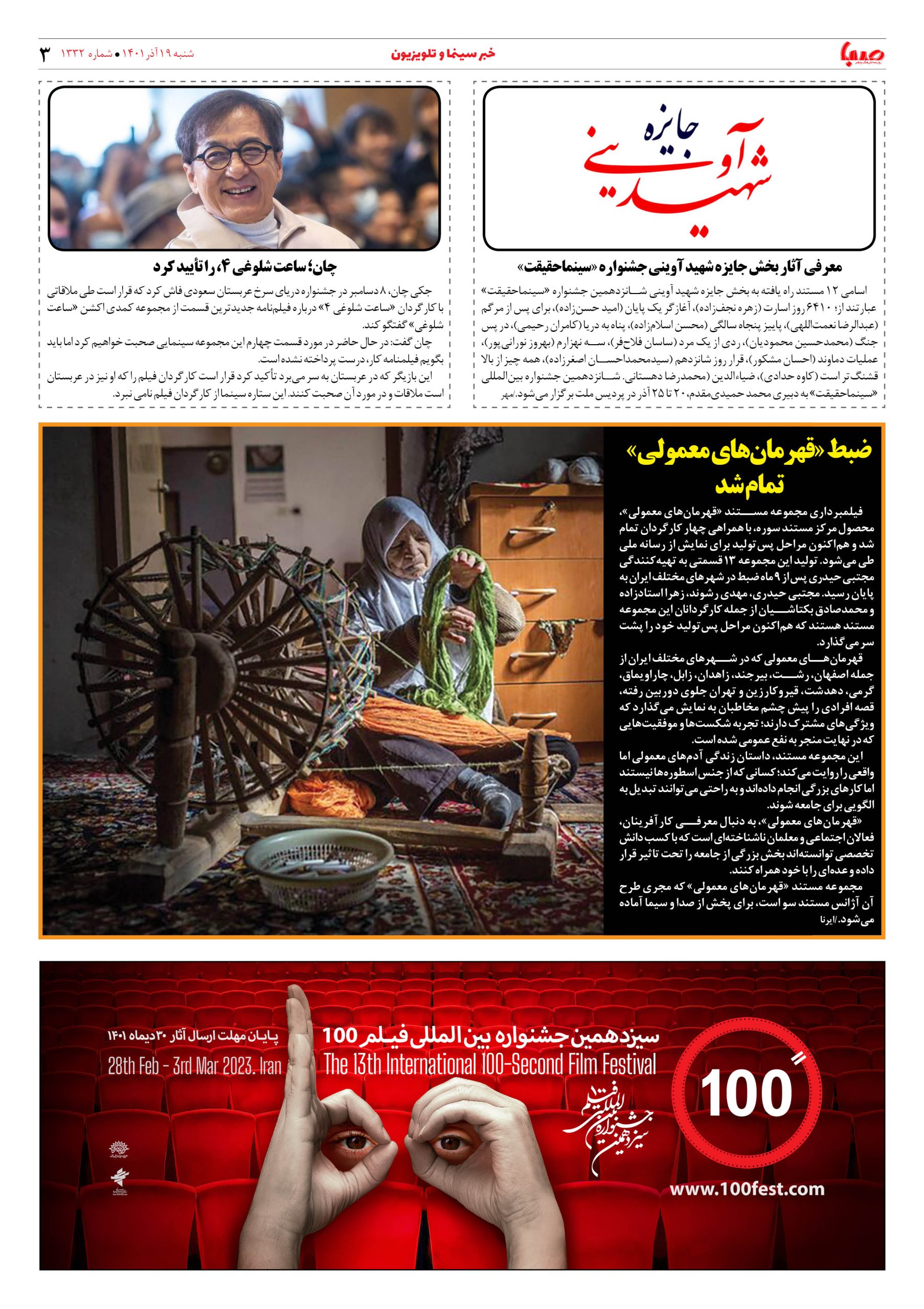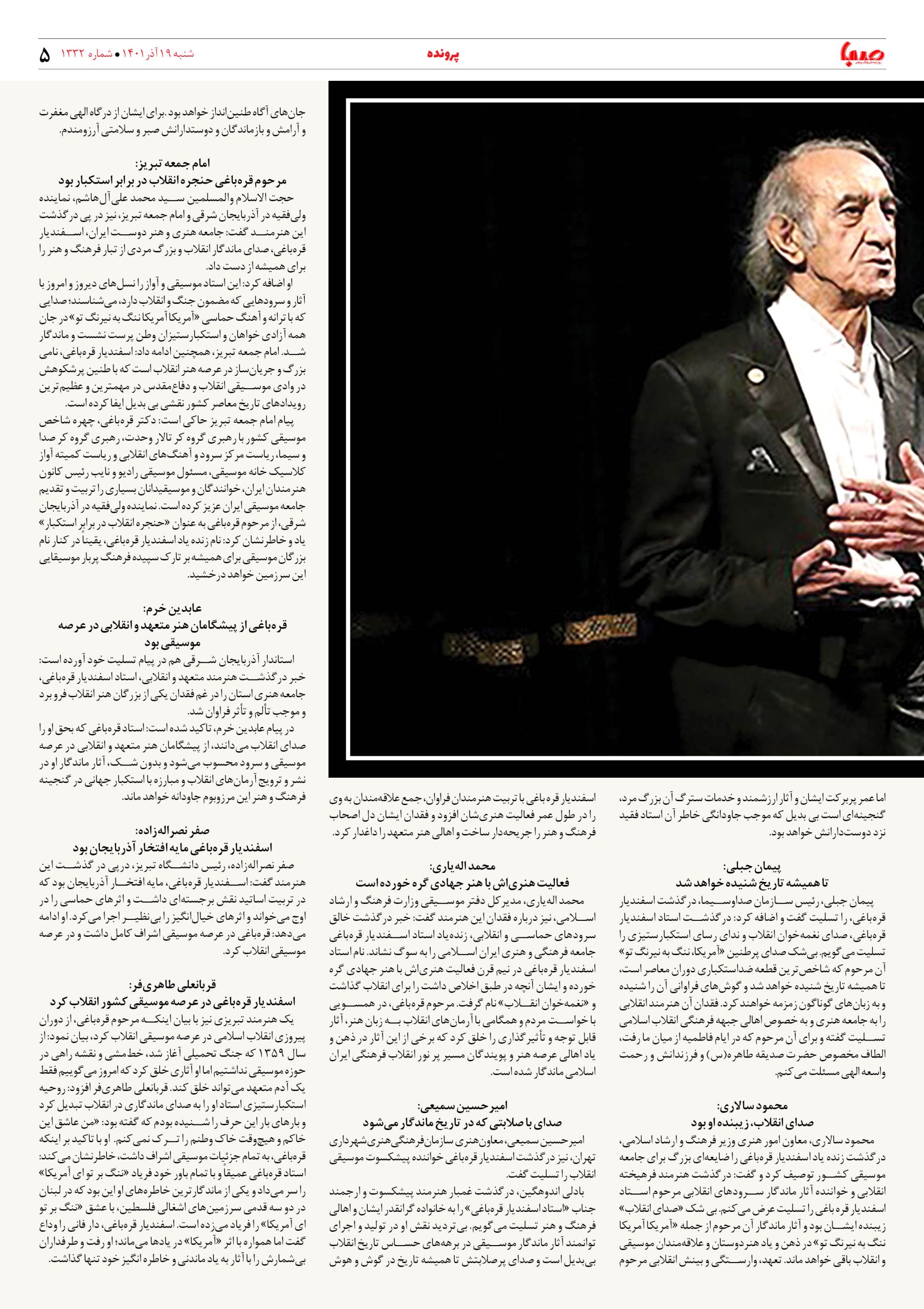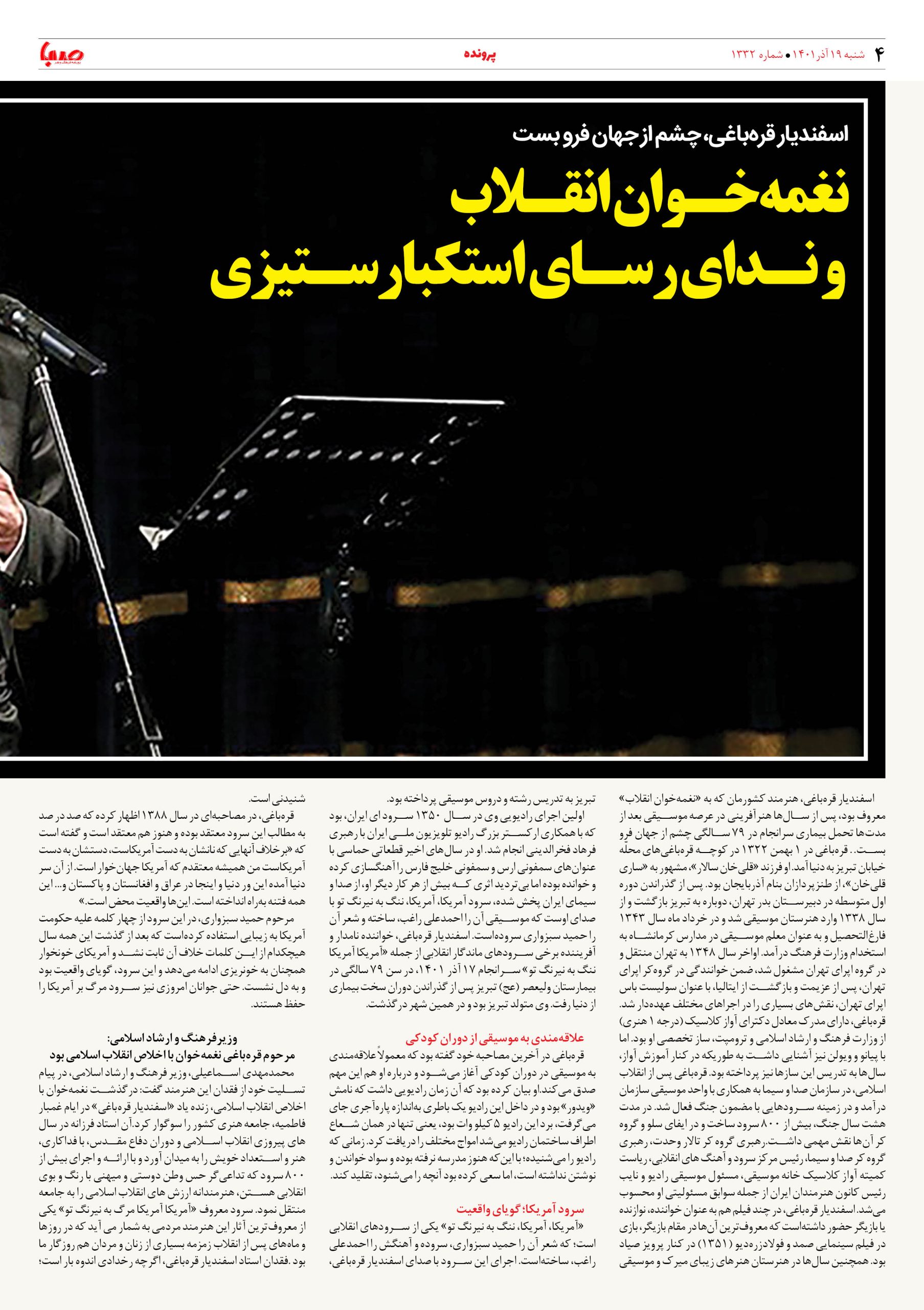 شماره ۱۳۳۲| روزنامه صبا شنبه ۱۹ آذر ۱۴۰۱