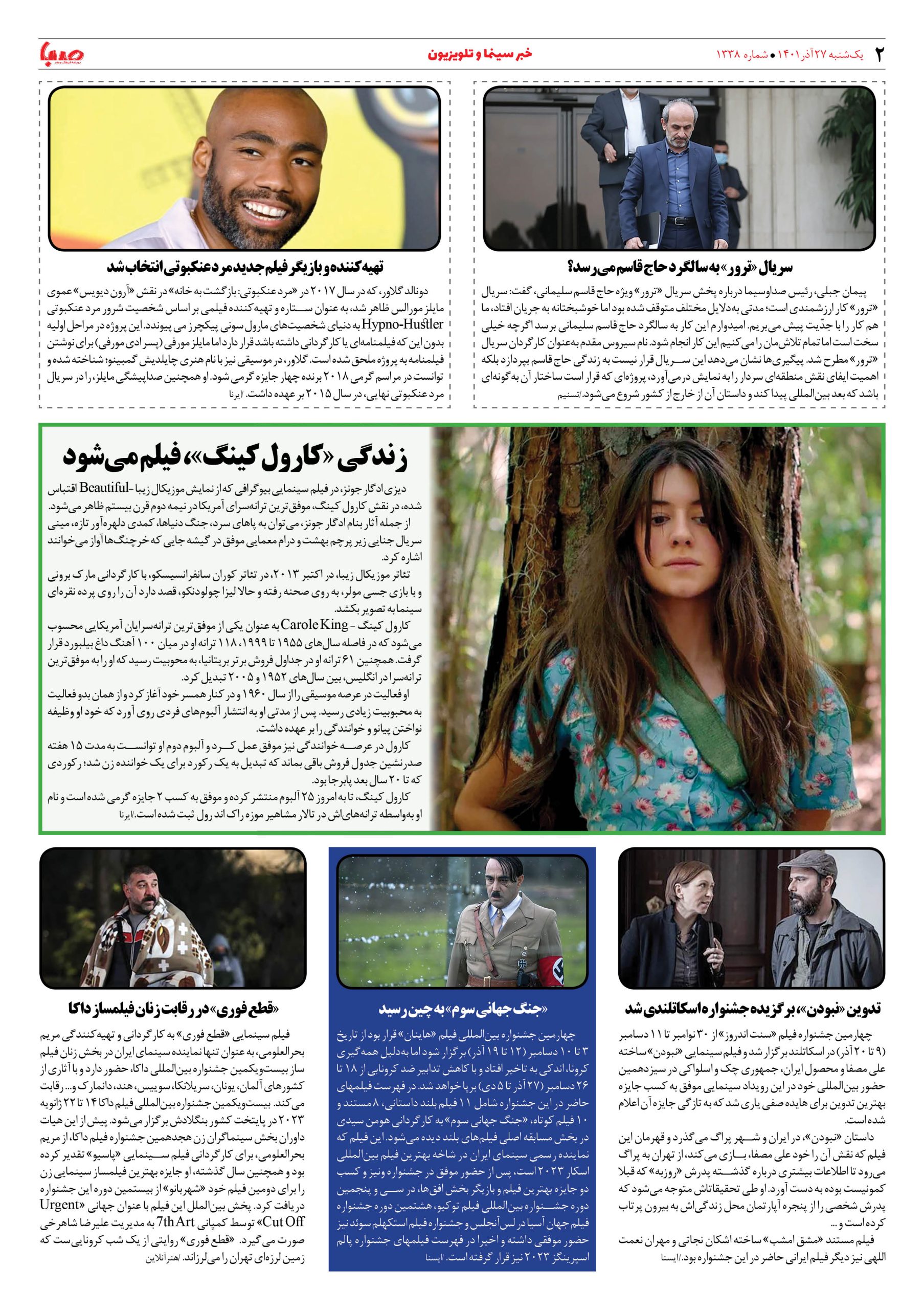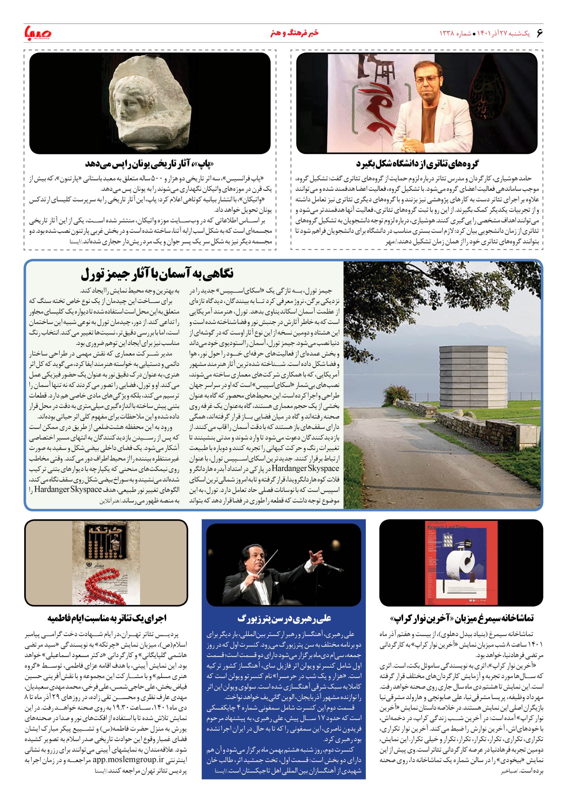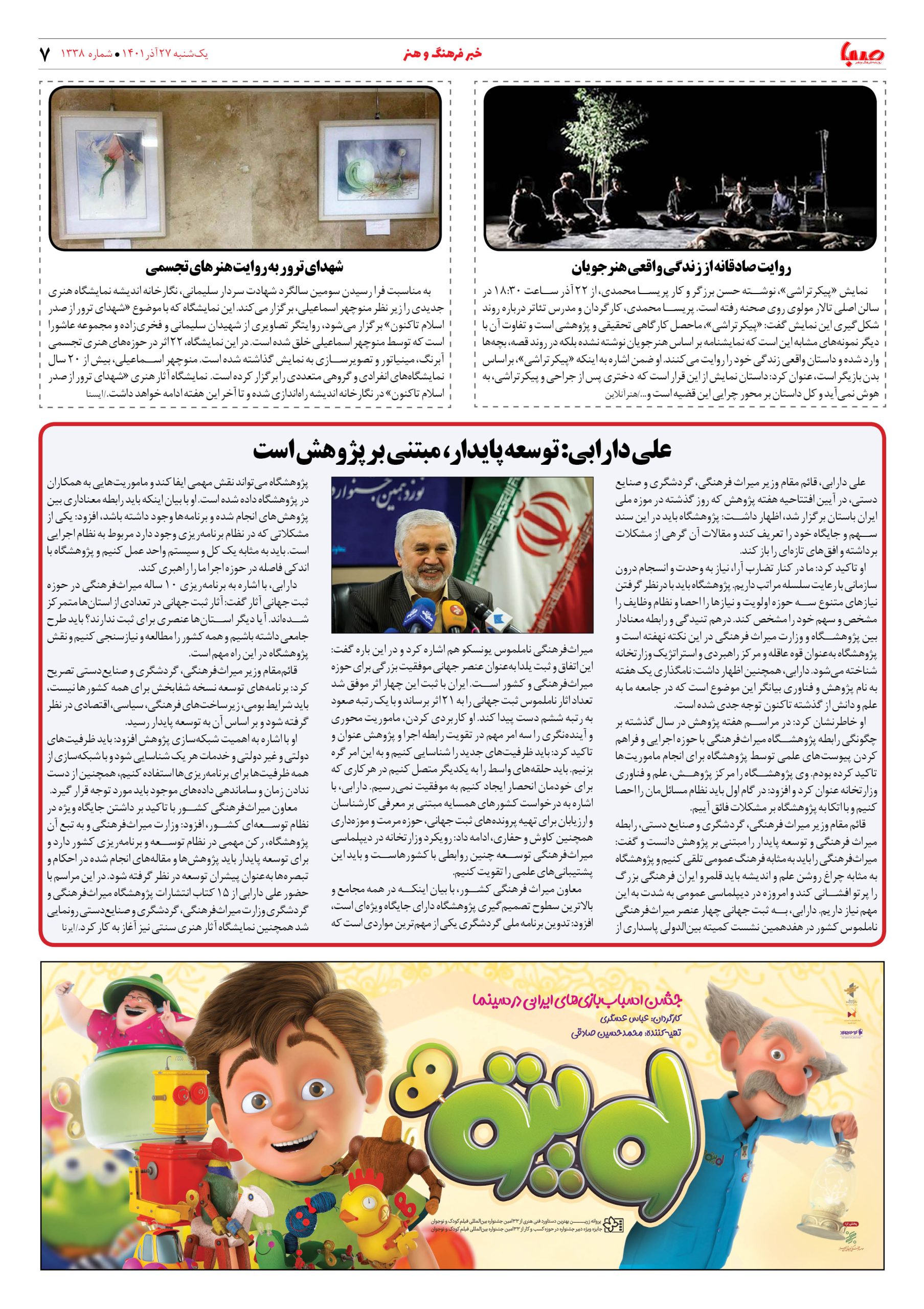شماره ۱۳۳۸| روزنامه صبا یکشنبه ۲۷ آذر ۱۴۰۱