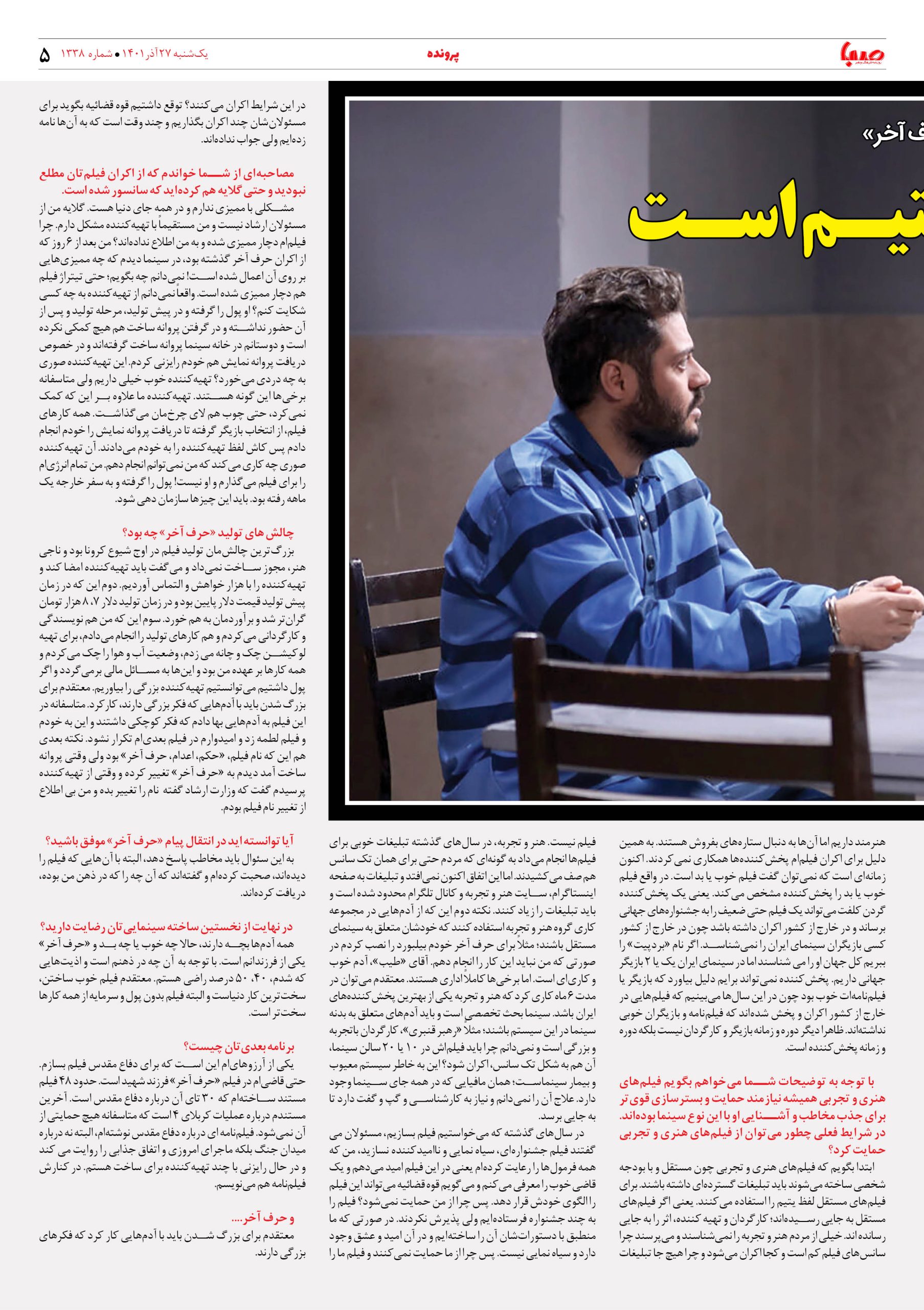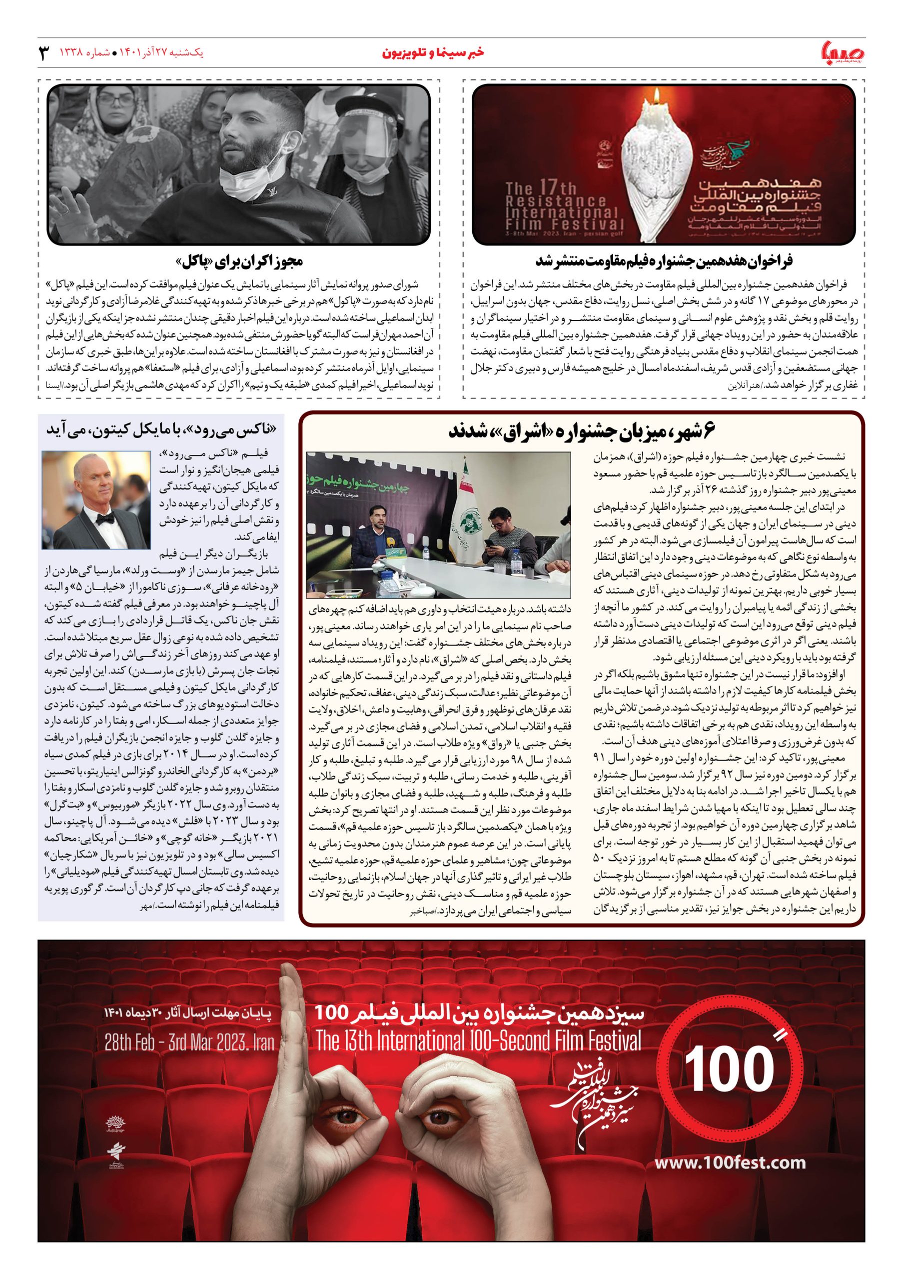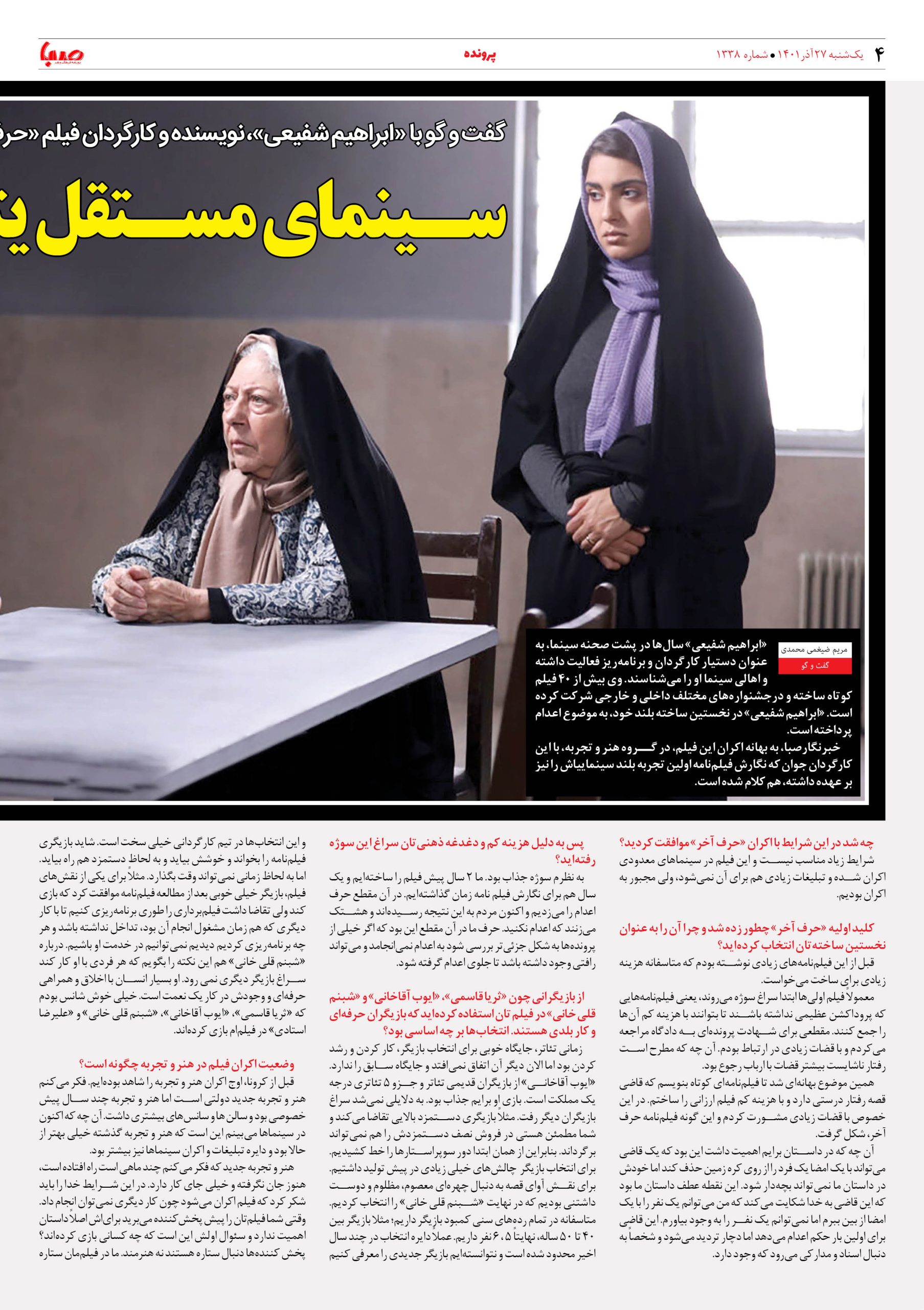 شماره ۱۳۳۸| روزنامه صبا یکشنبه ۲۷ آذر ۱۴۰۱