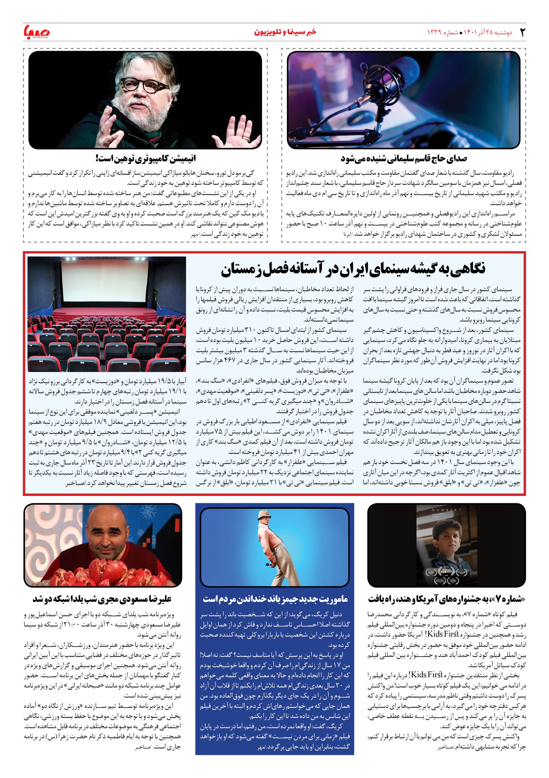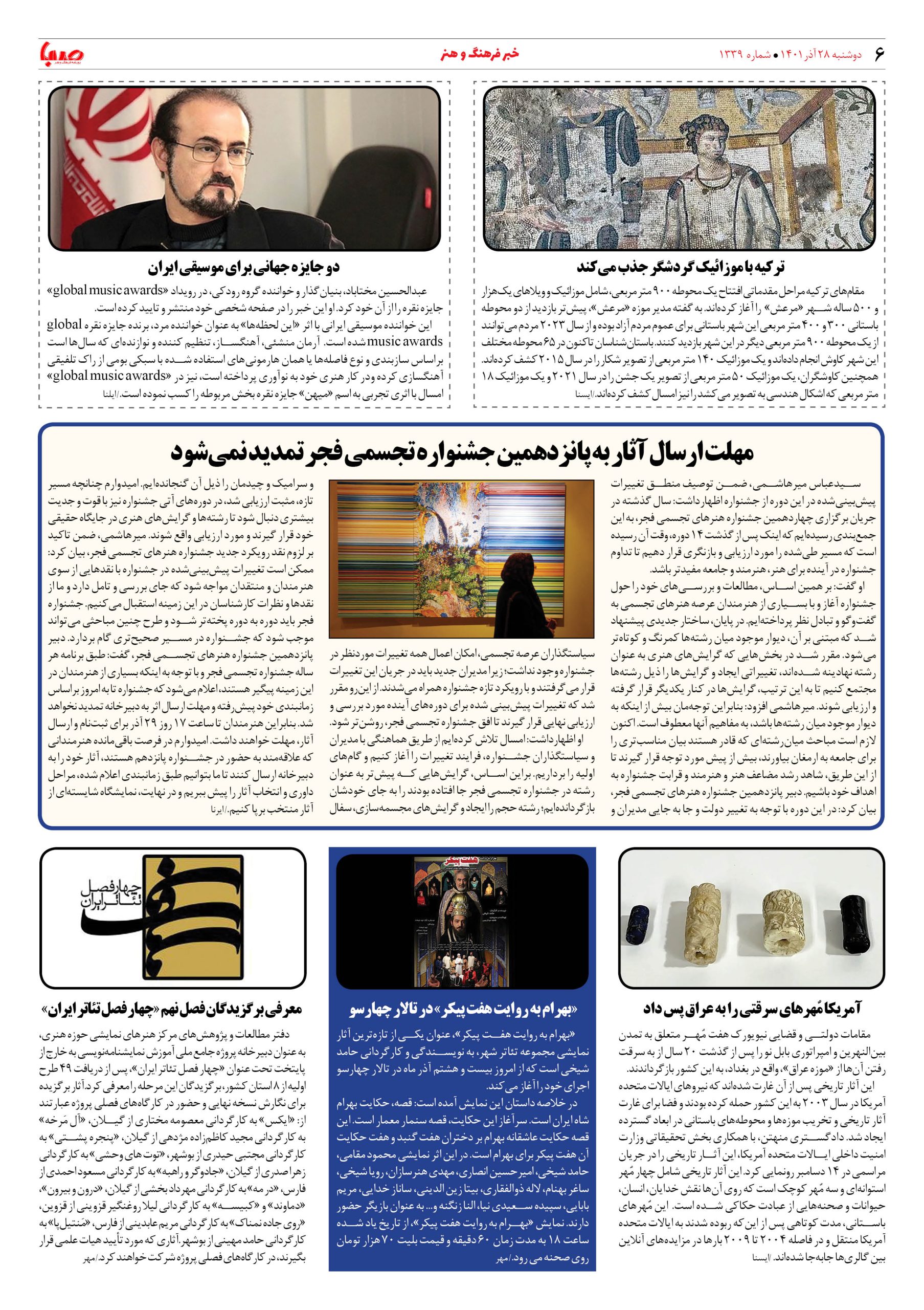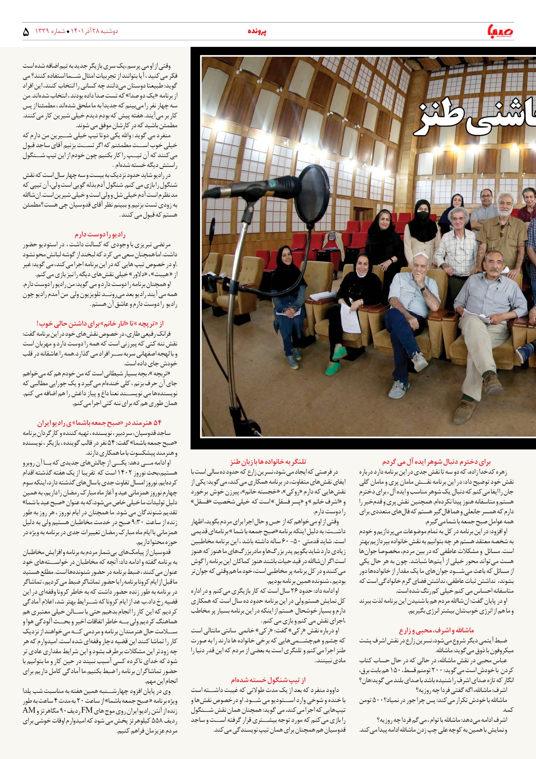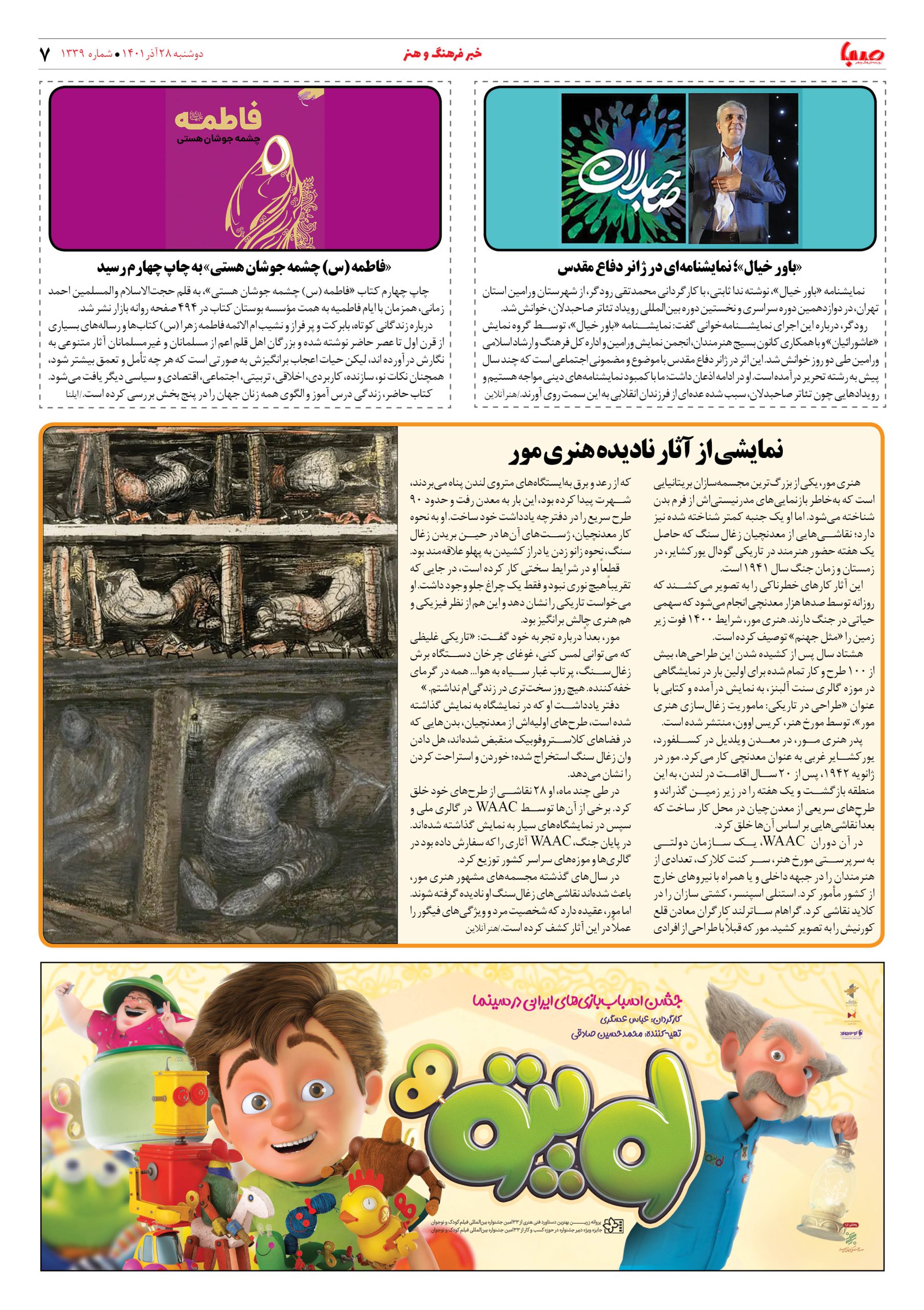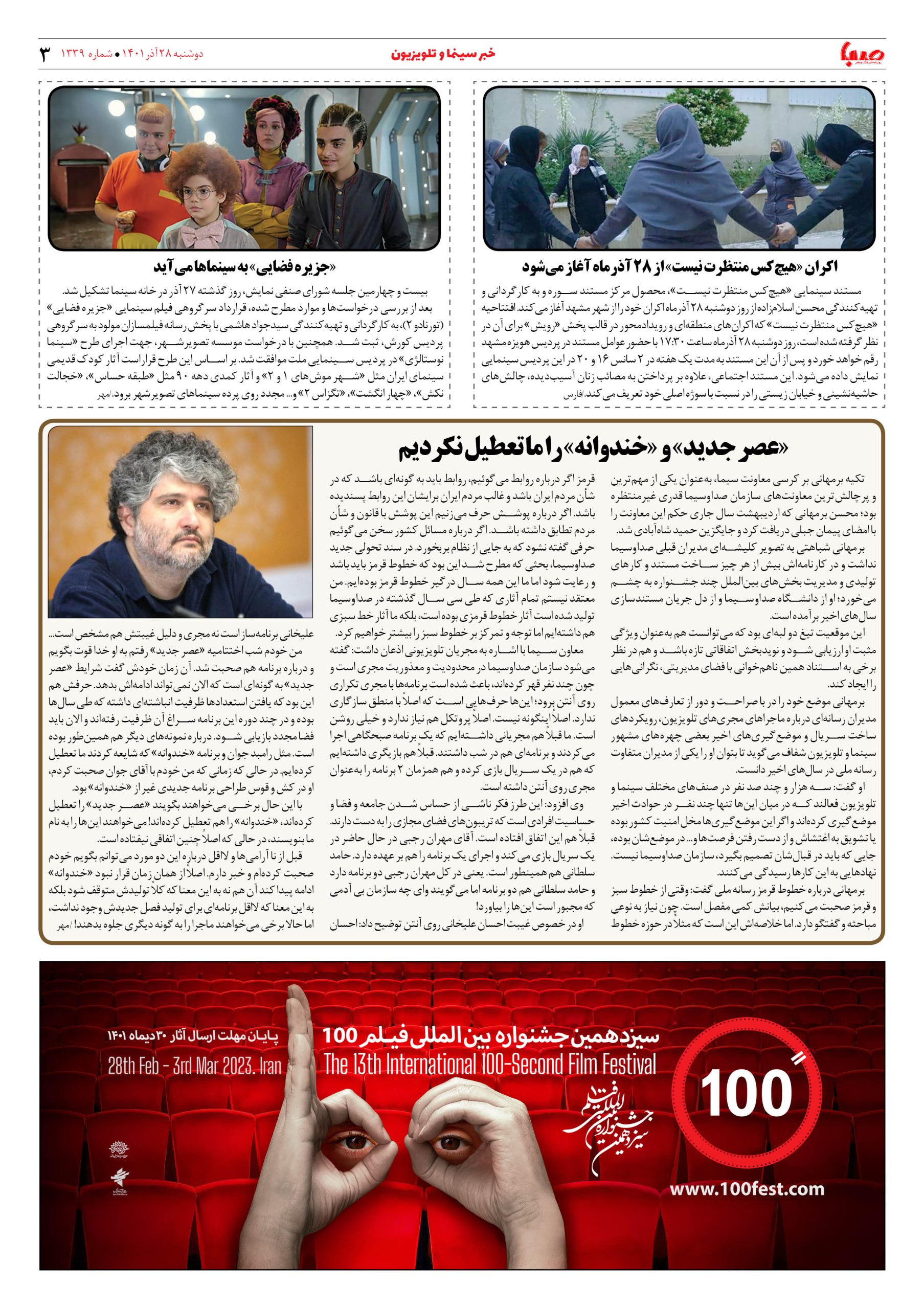 شماره ۱۳۳۹| روزنامه صبا دوشنبه ۲۸ آذر ۱۴۰۱