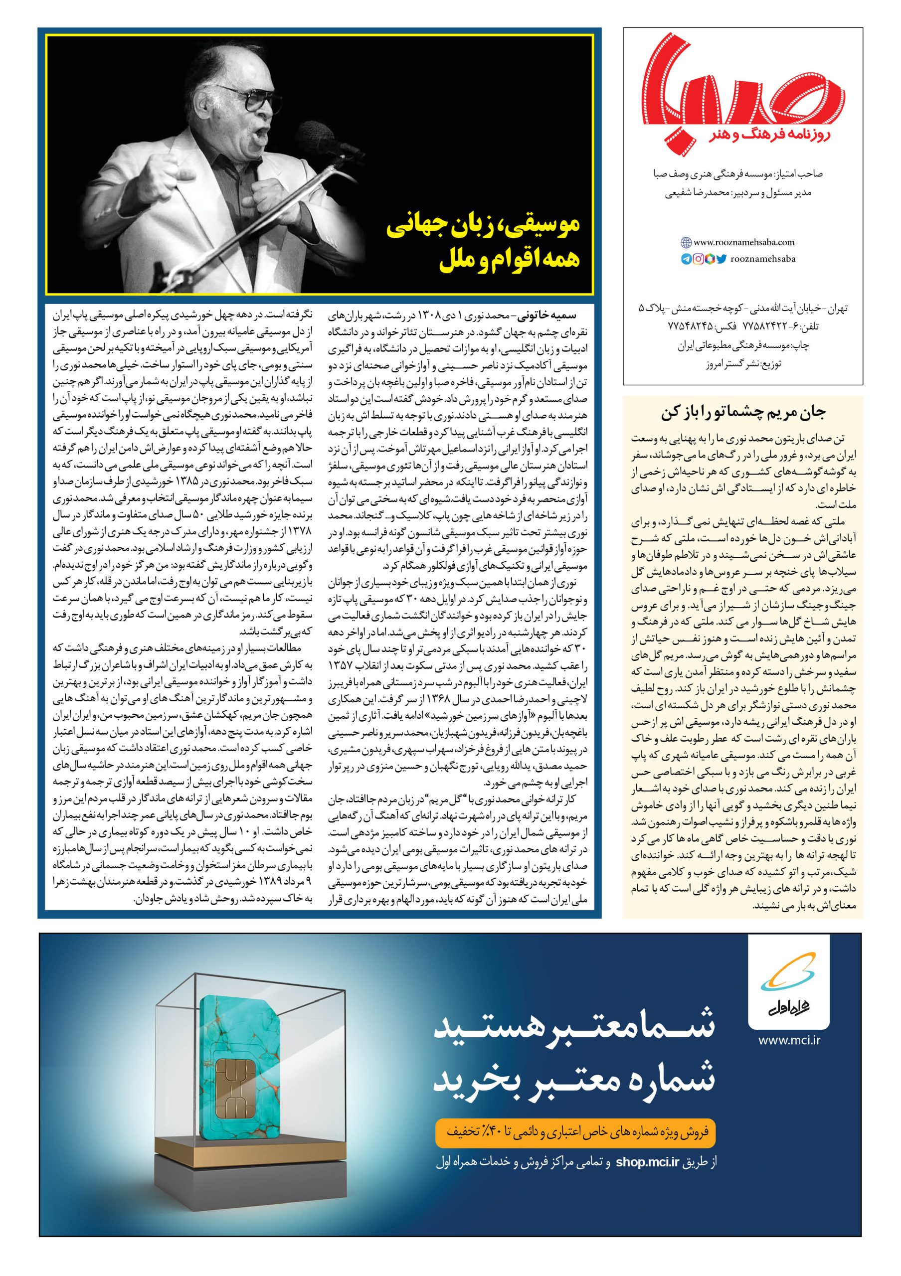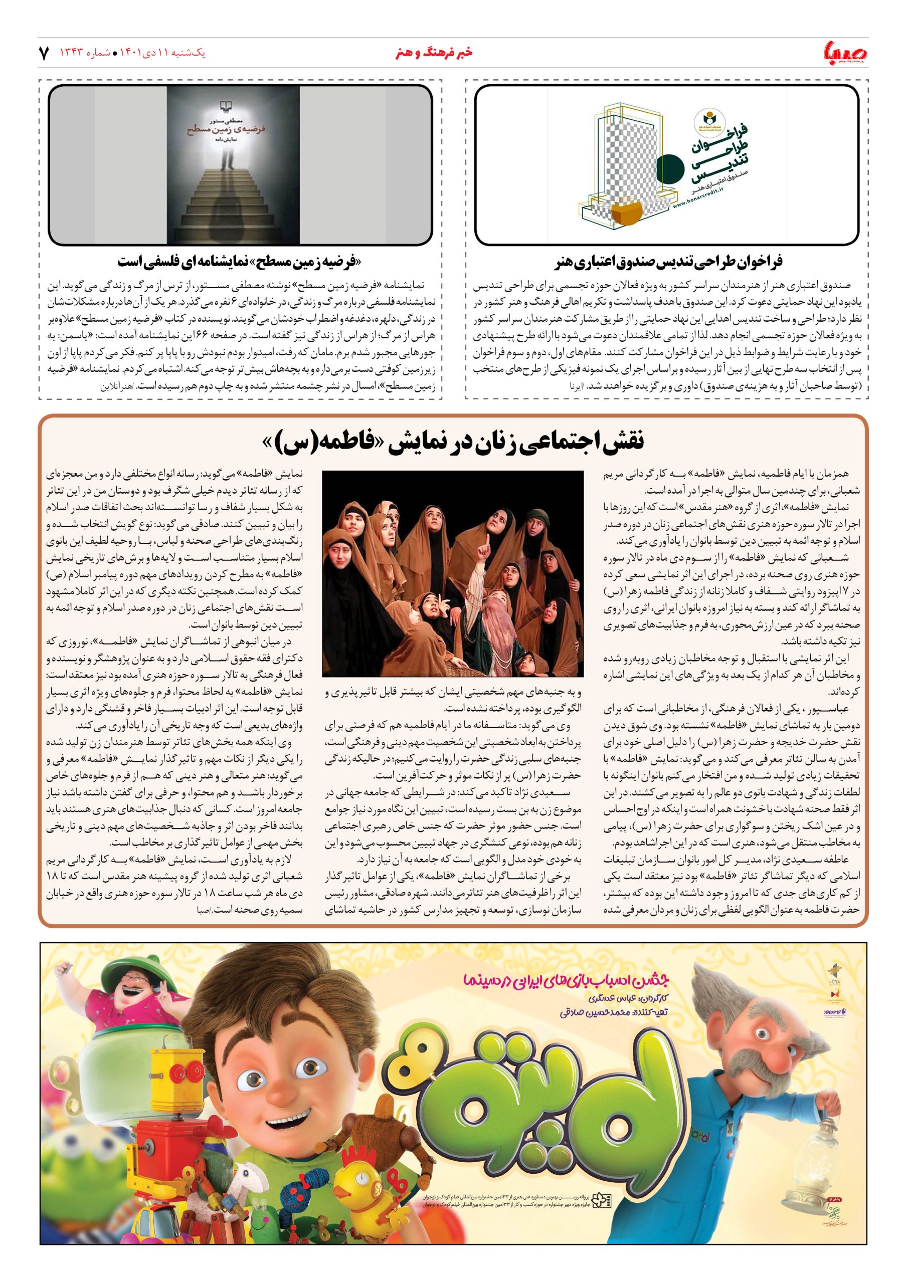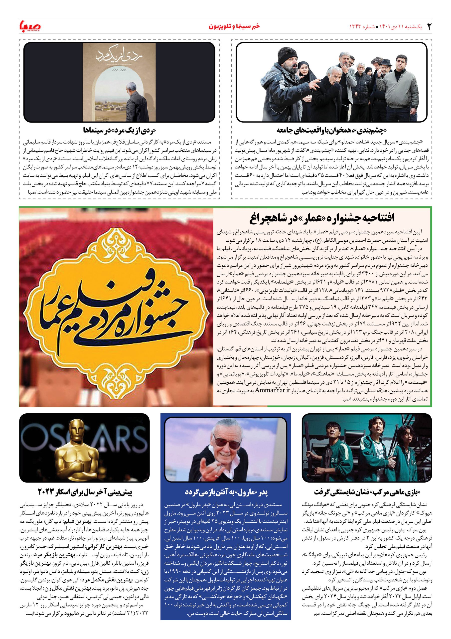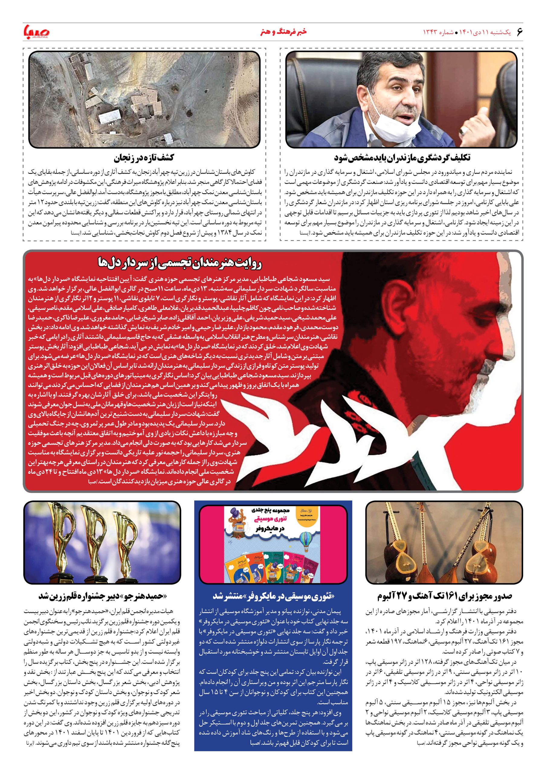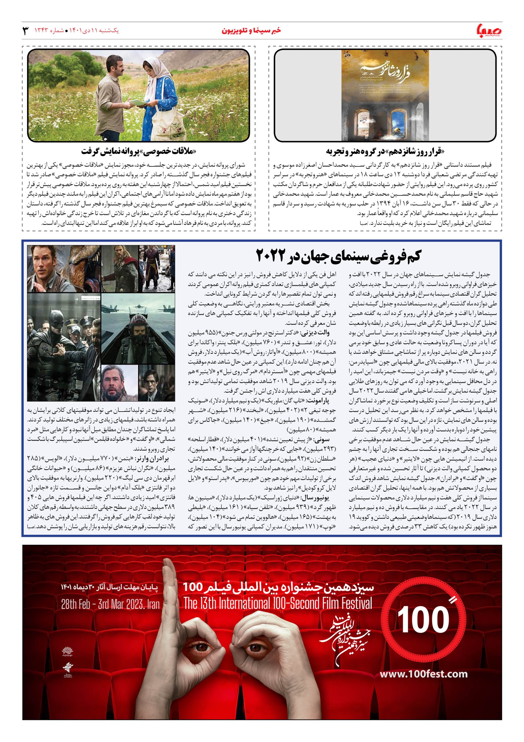 شماره ۱۳۴۳| روزنامه صبا یکشنبه ۱۱ دی ۱۴۰۱