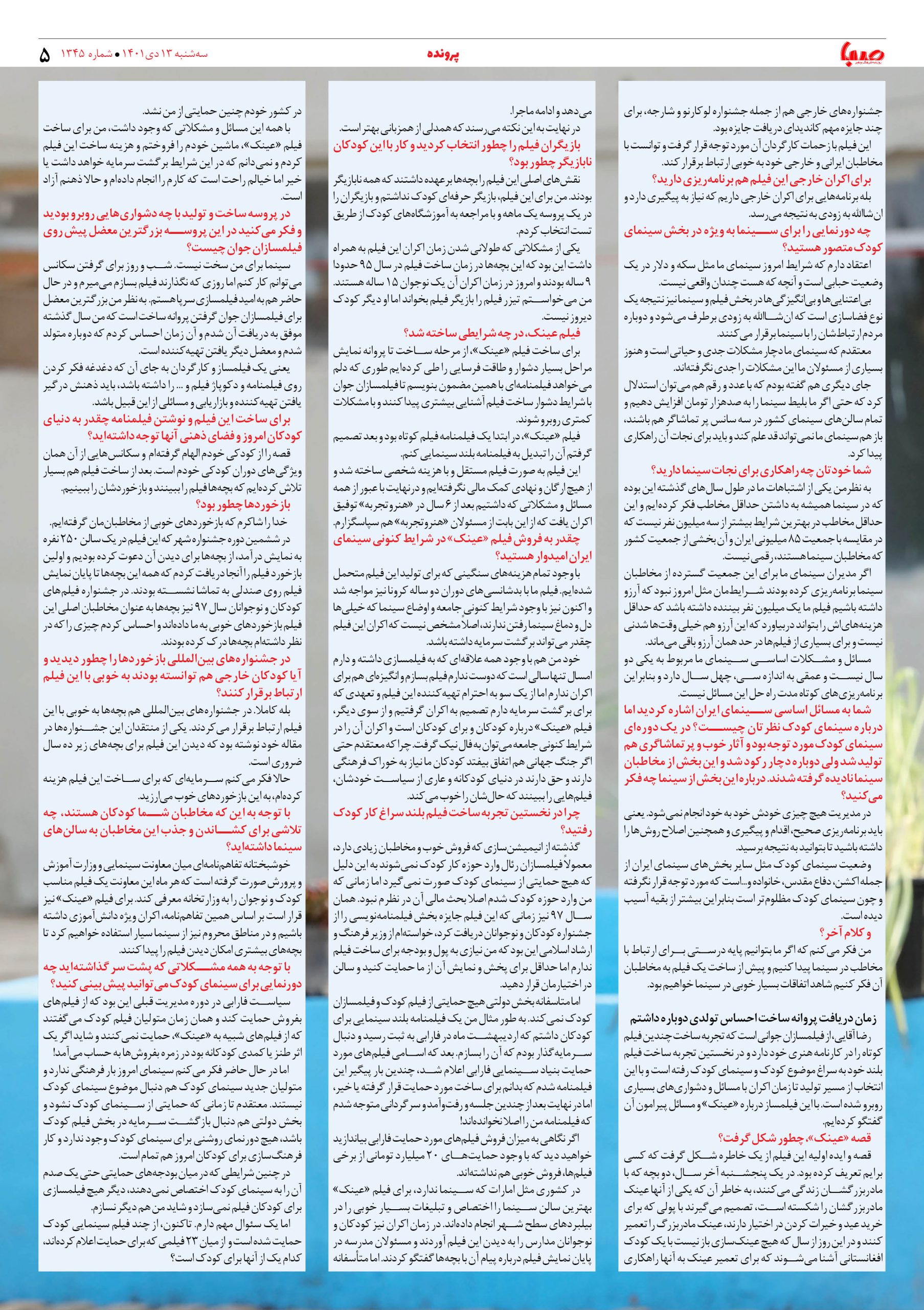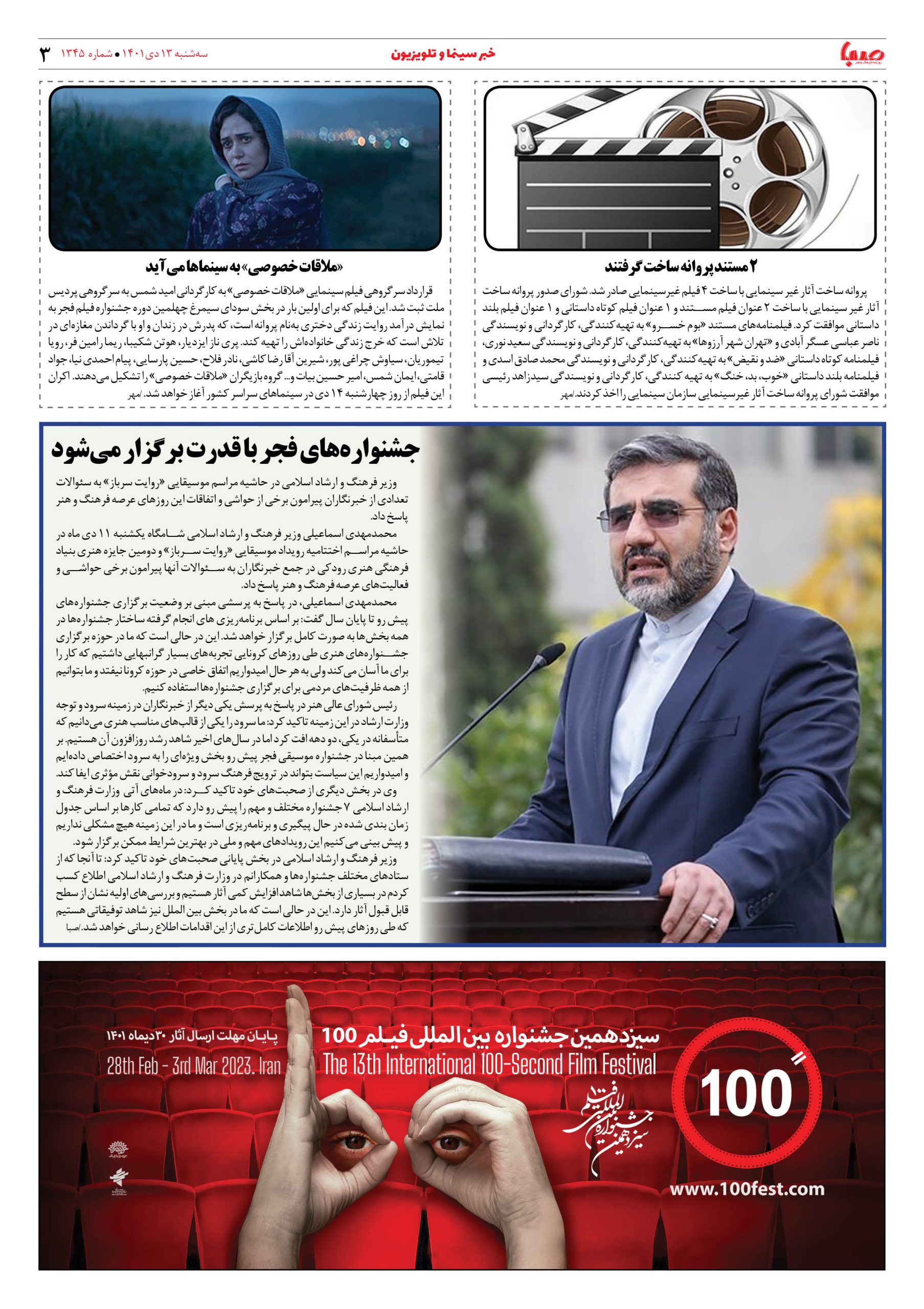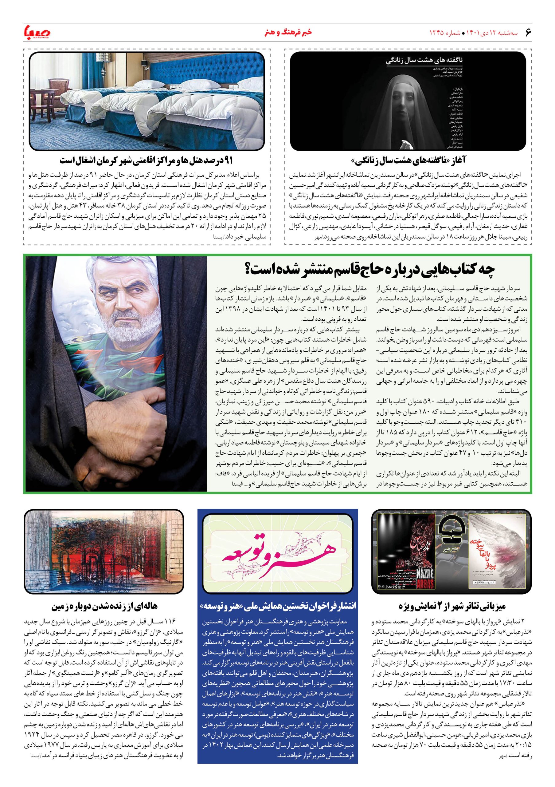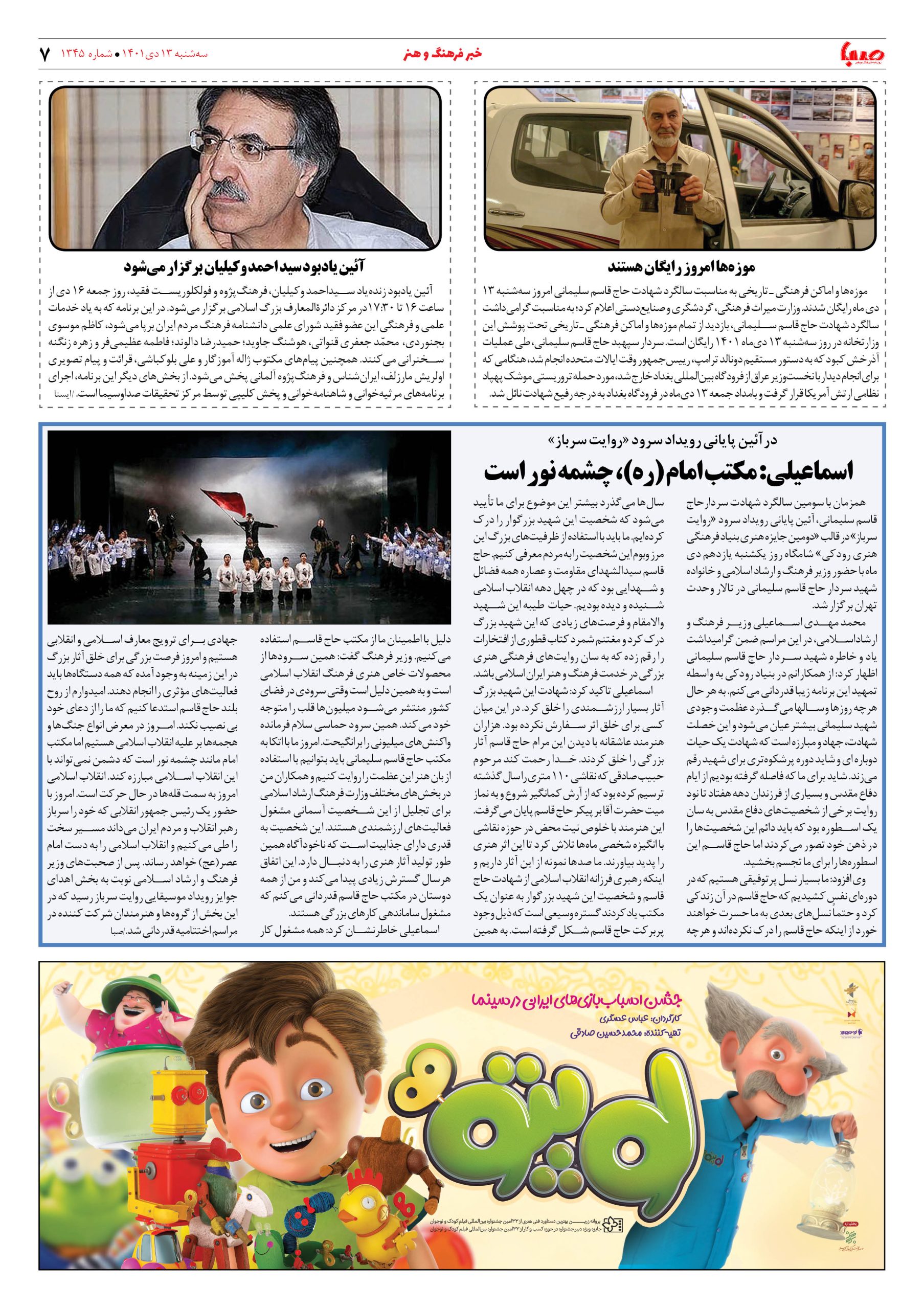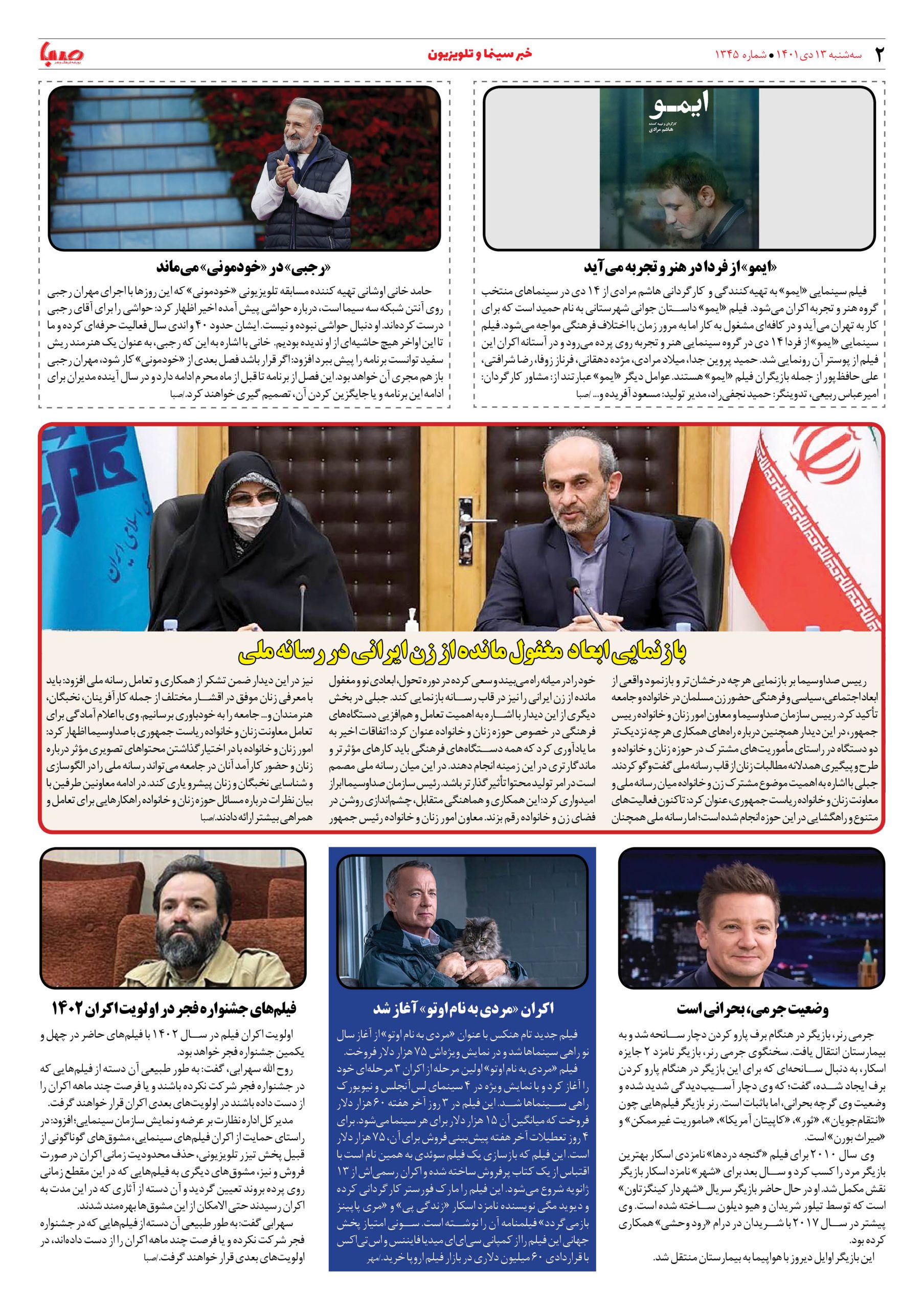 شماره ۱۳۴۵| روزنامه صبا سه شنبه ۱۳ دی ۱۴۰۱