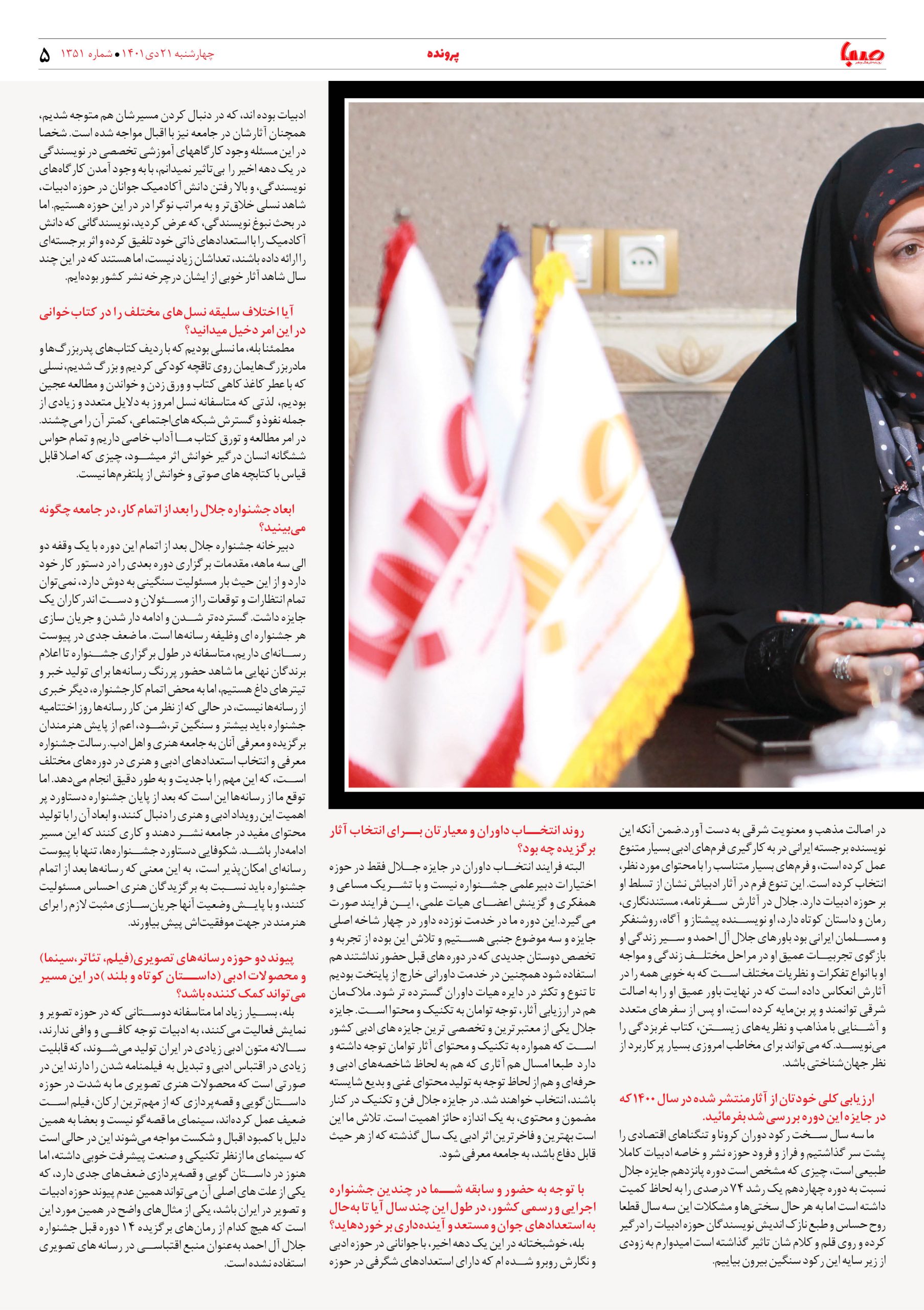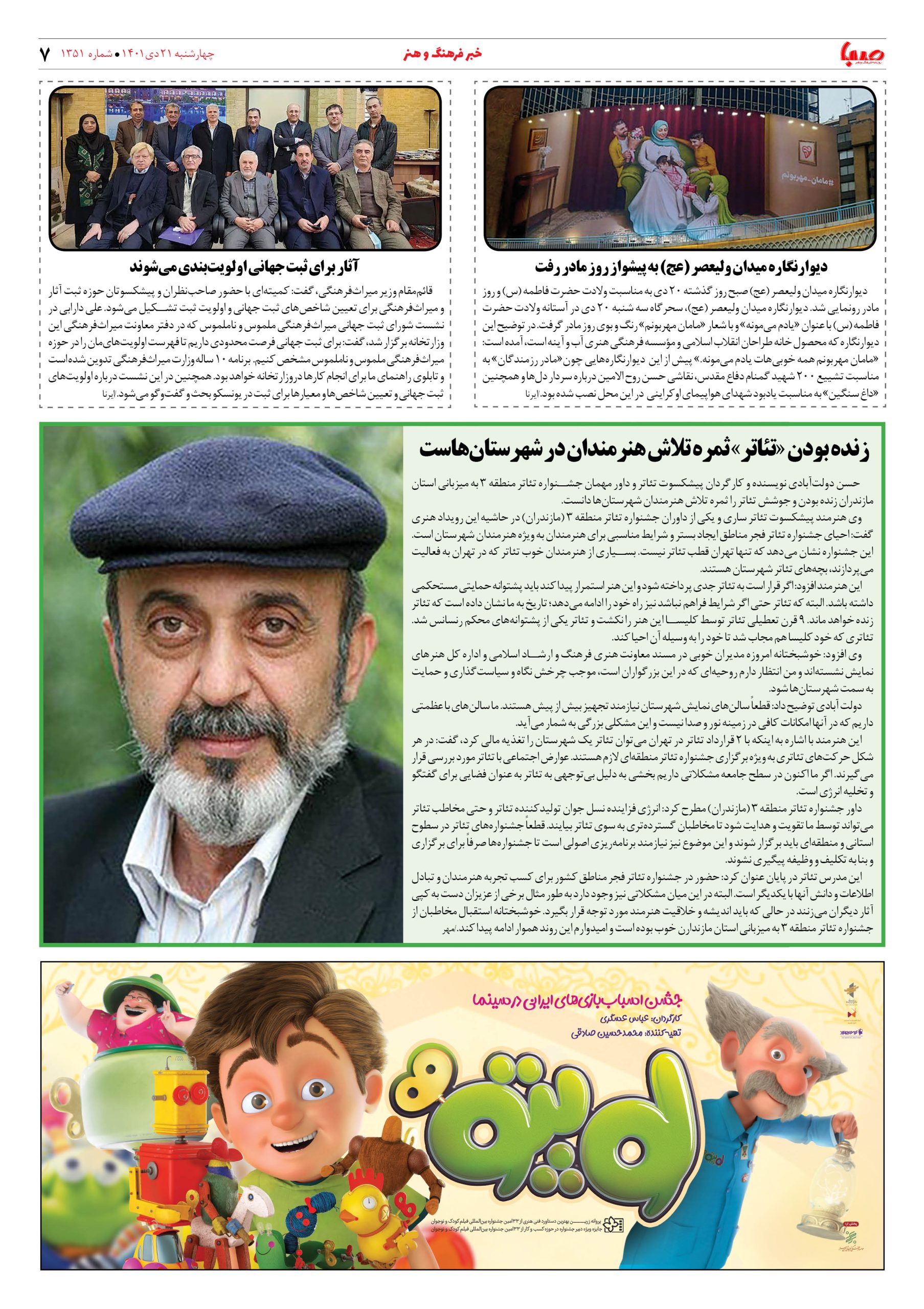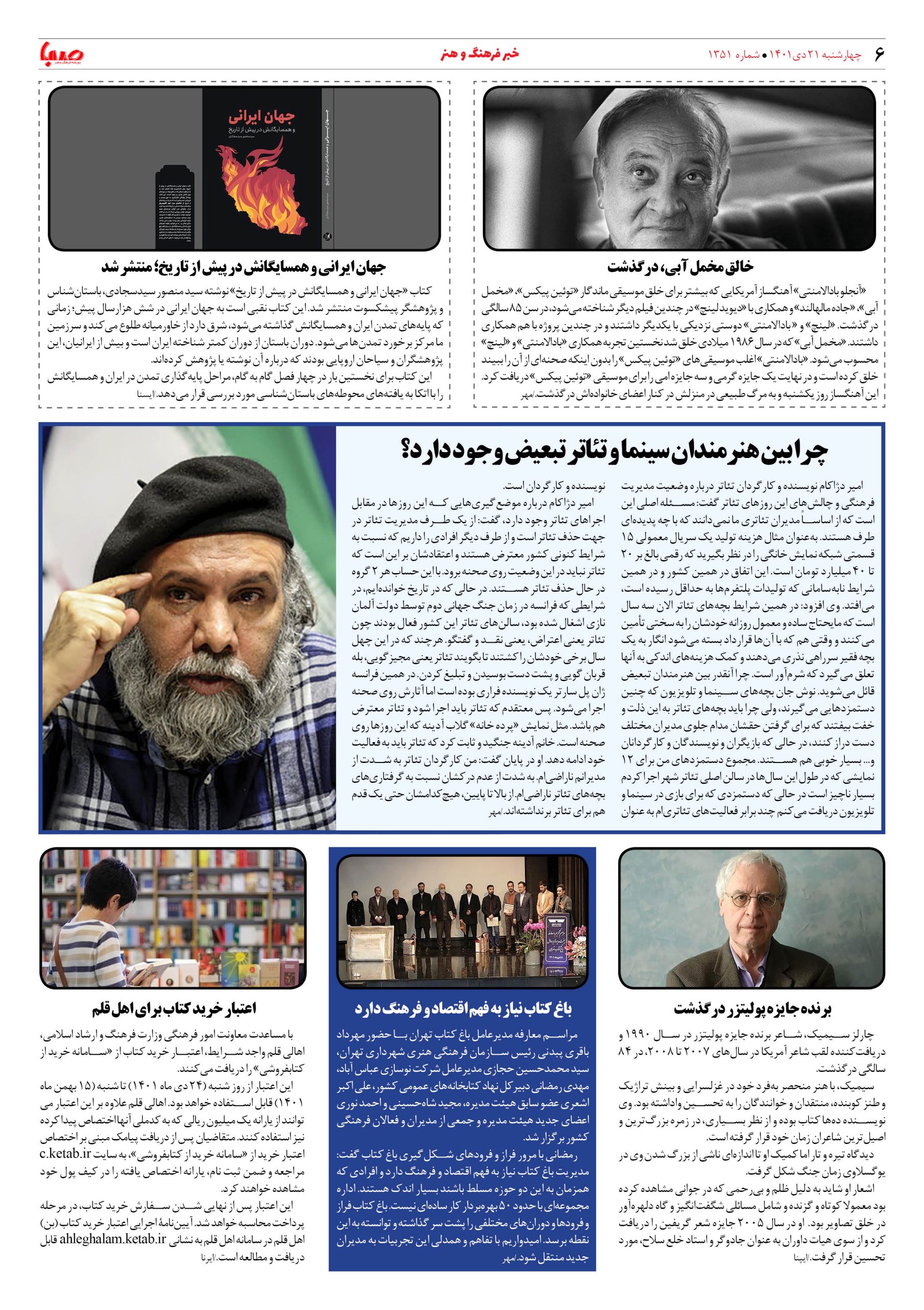 شماره ۱۳۵۱| روزنامه صبا چهارشنبه ۲۱ دی ۱۴۰۱