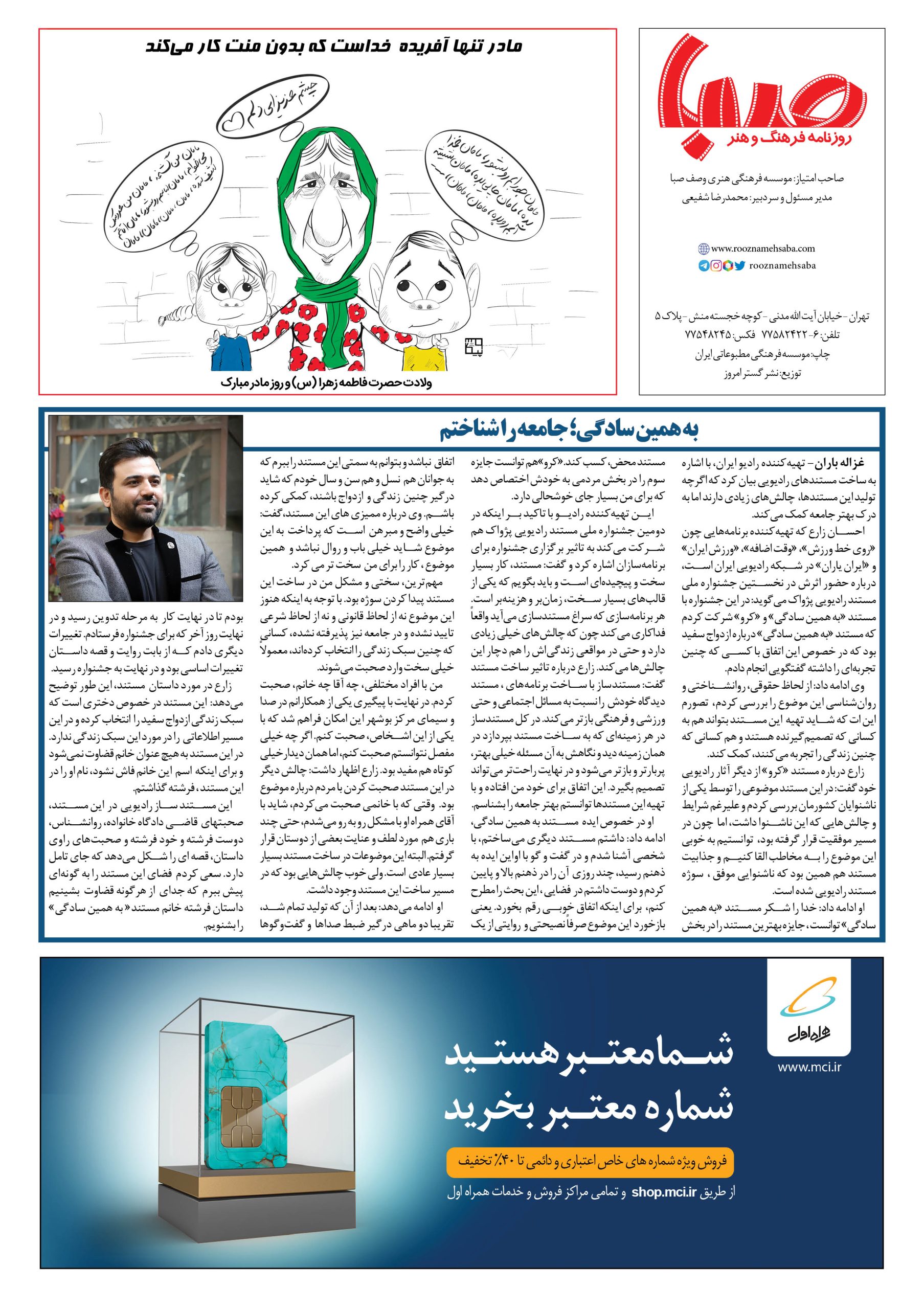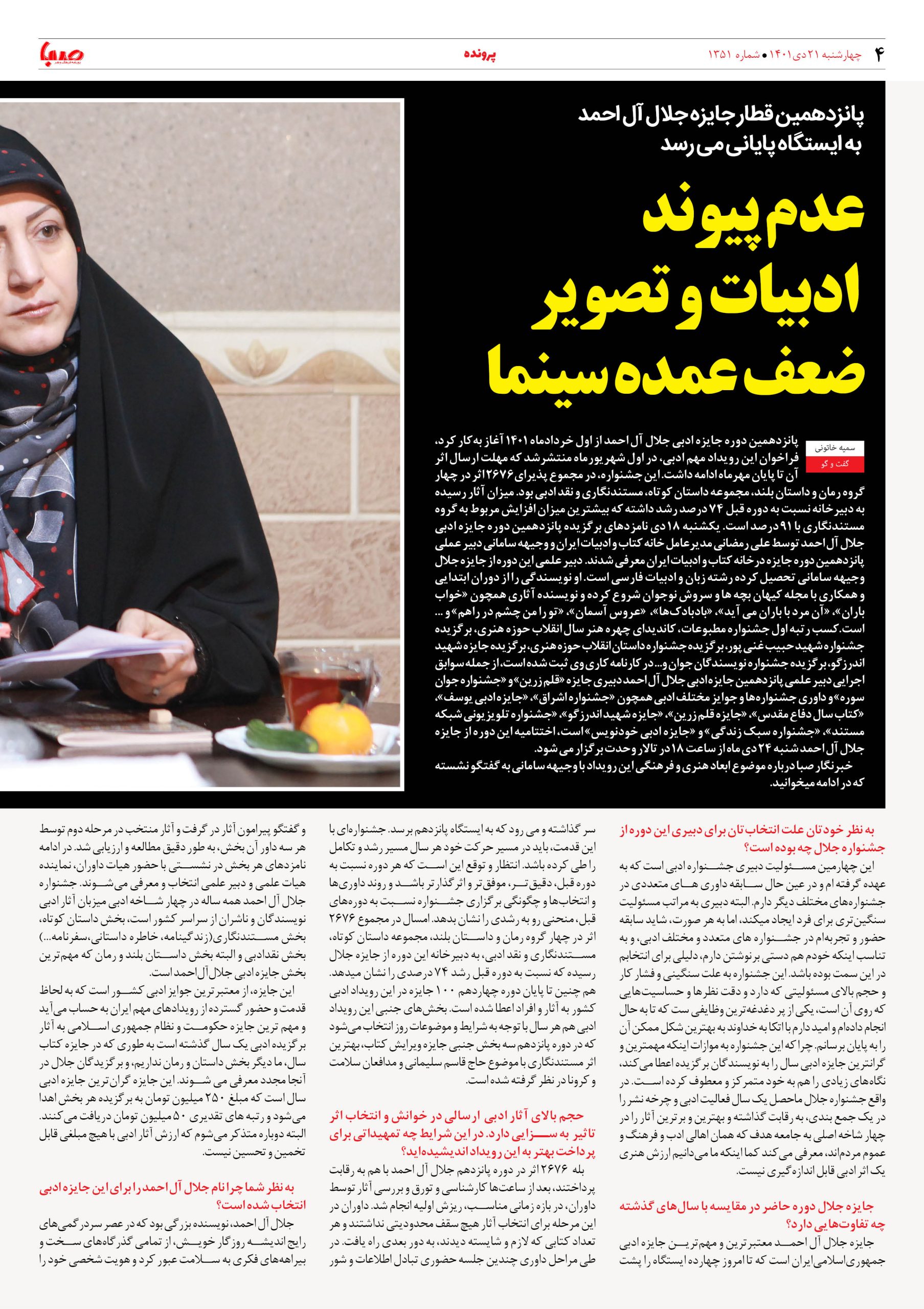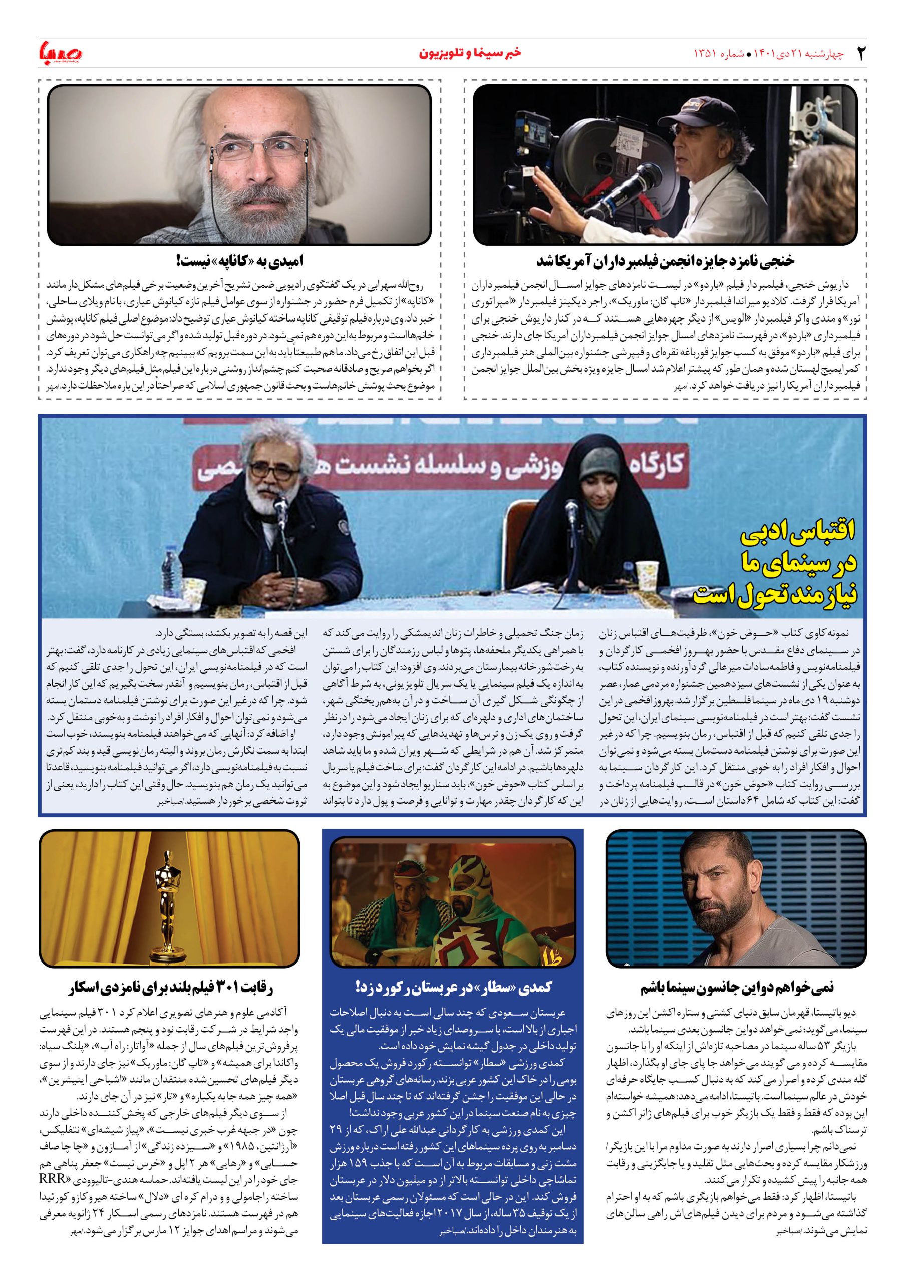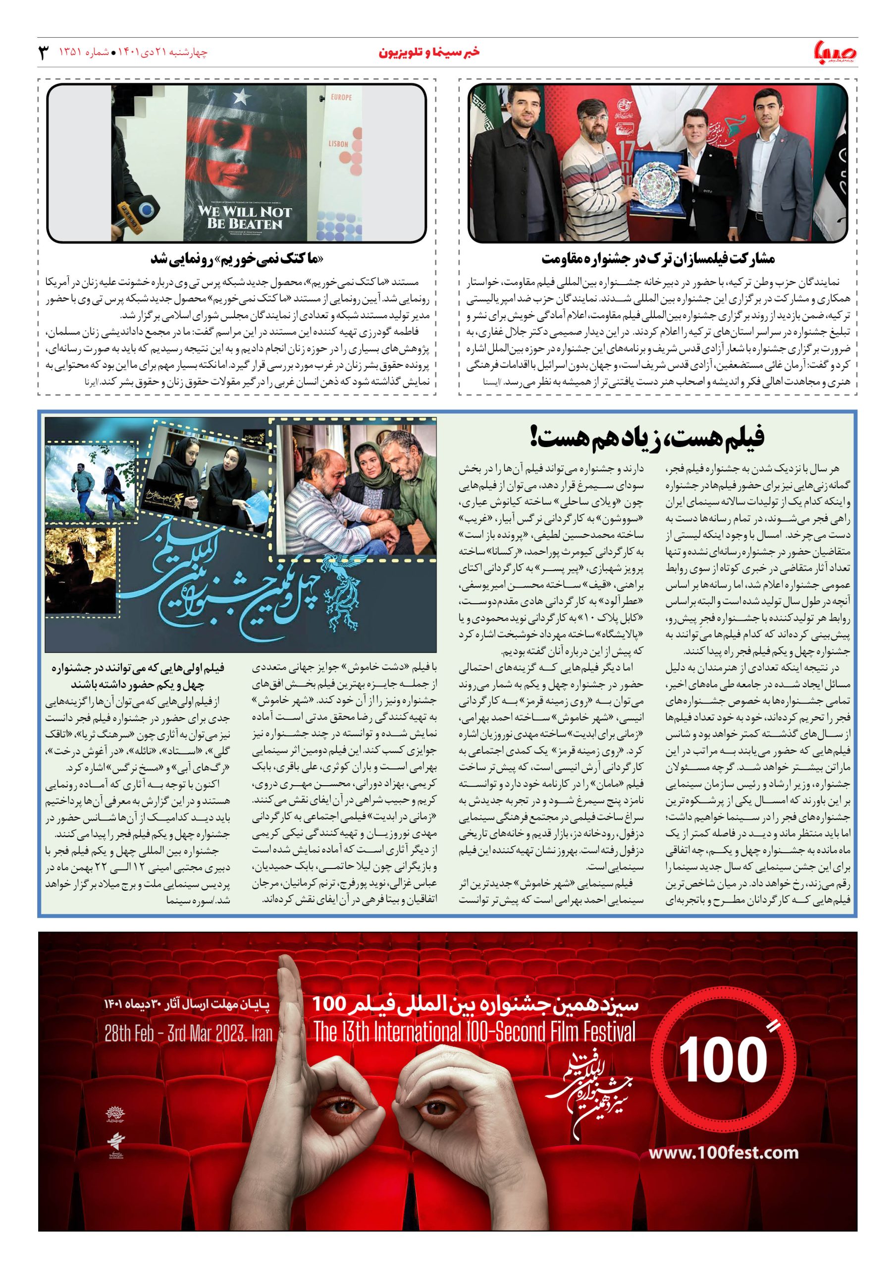 شماره ۱۳۵۱| روزنامه صبا چهارشنبه ۲۱ دی ۱۴۰۱