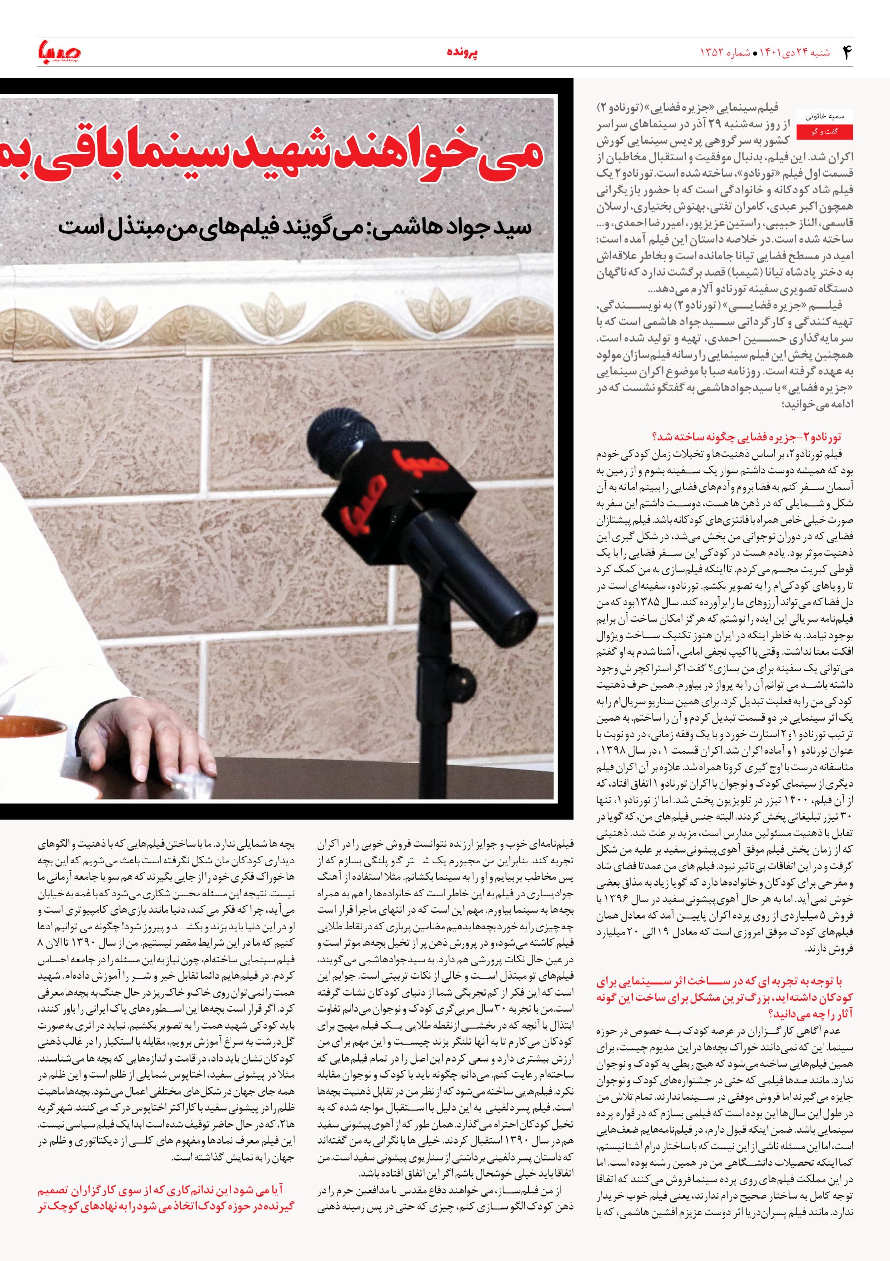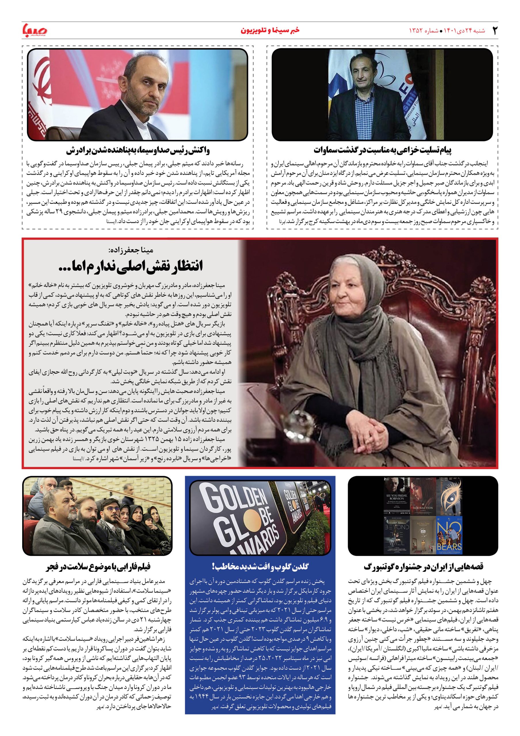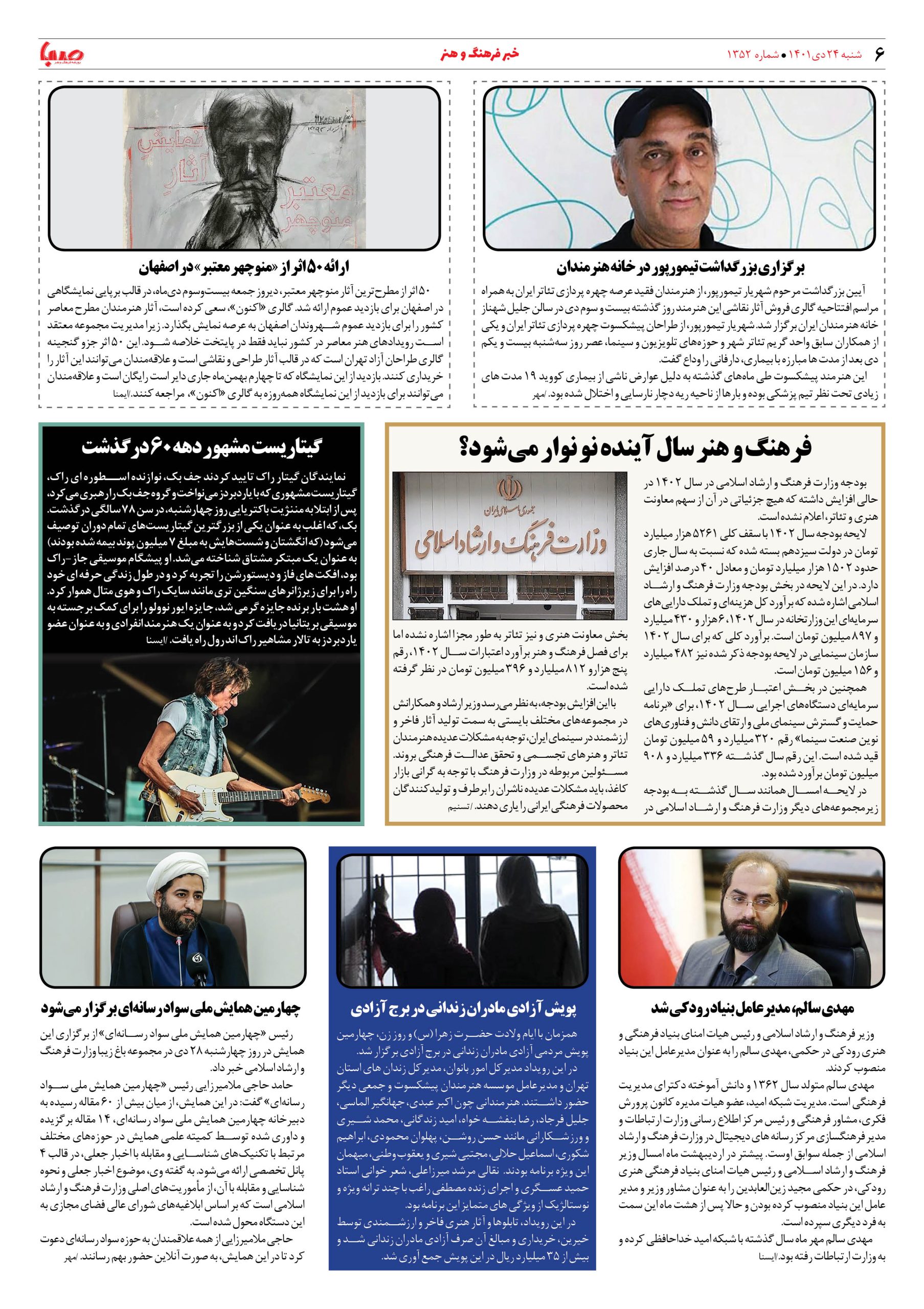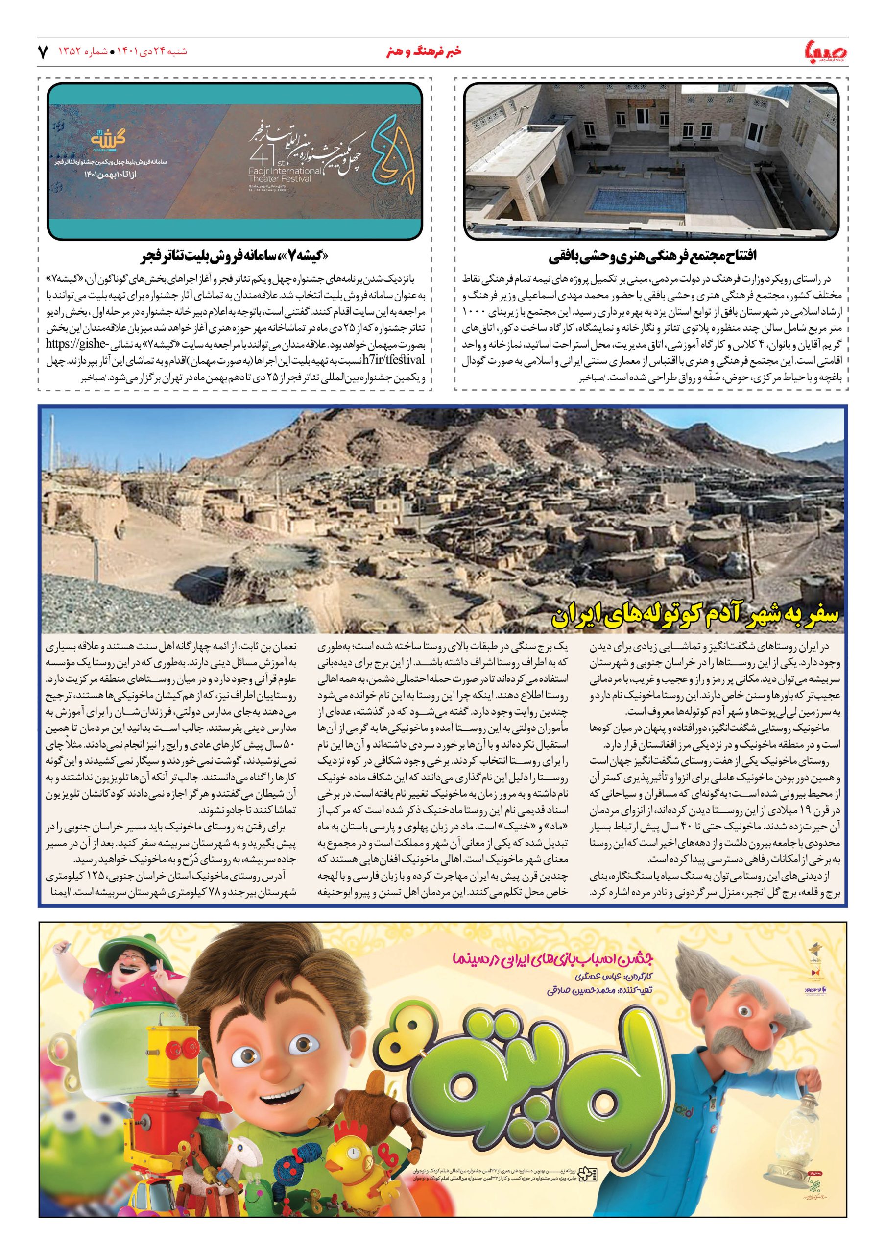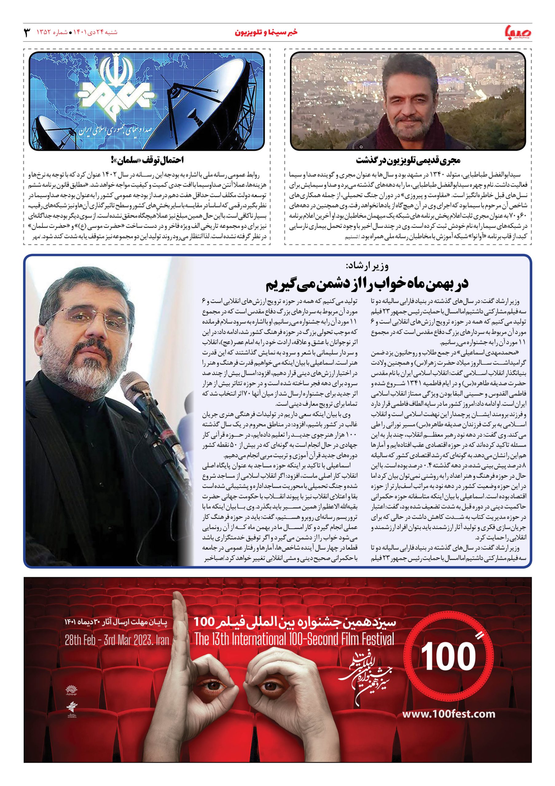 شماره ۱۳۵۲| روزنامه صبا شنبه ۲۴ دی ۱۴۰۱