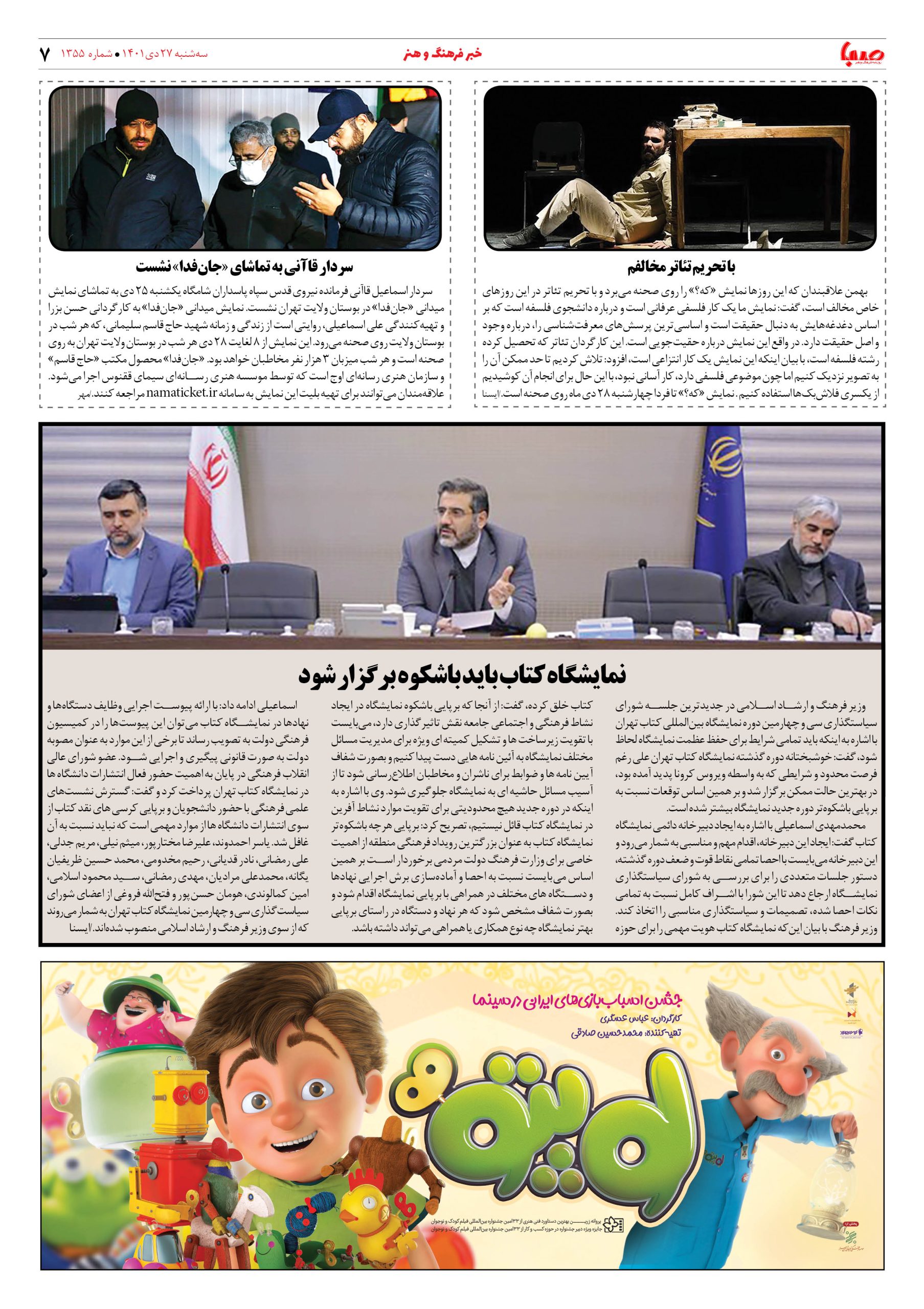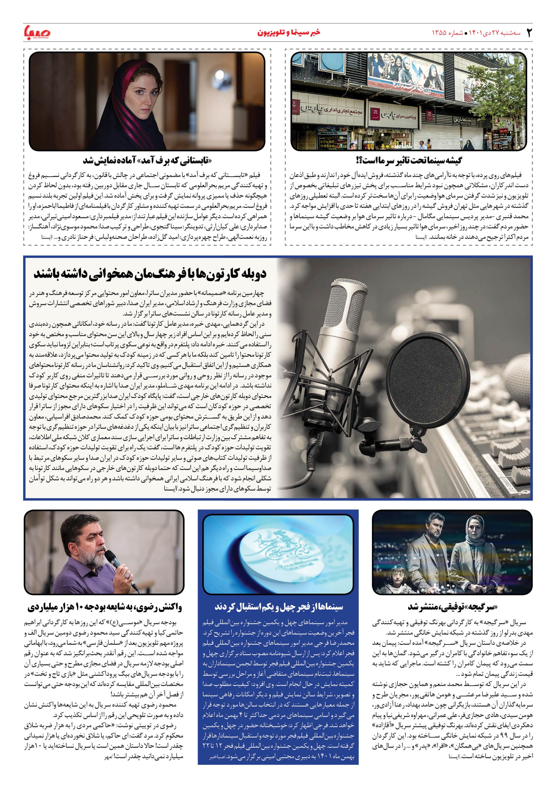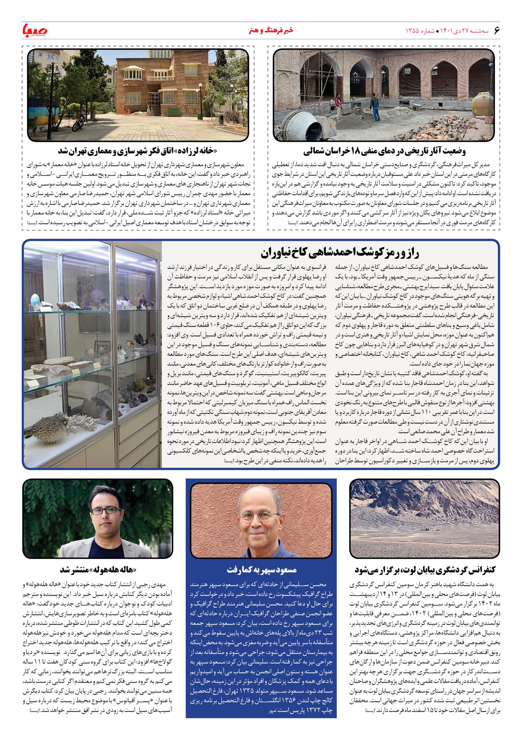 شماره ۱۳۵۵| روزنامه صبا سهشنبه ۲۷ دی ۱۴۰۱