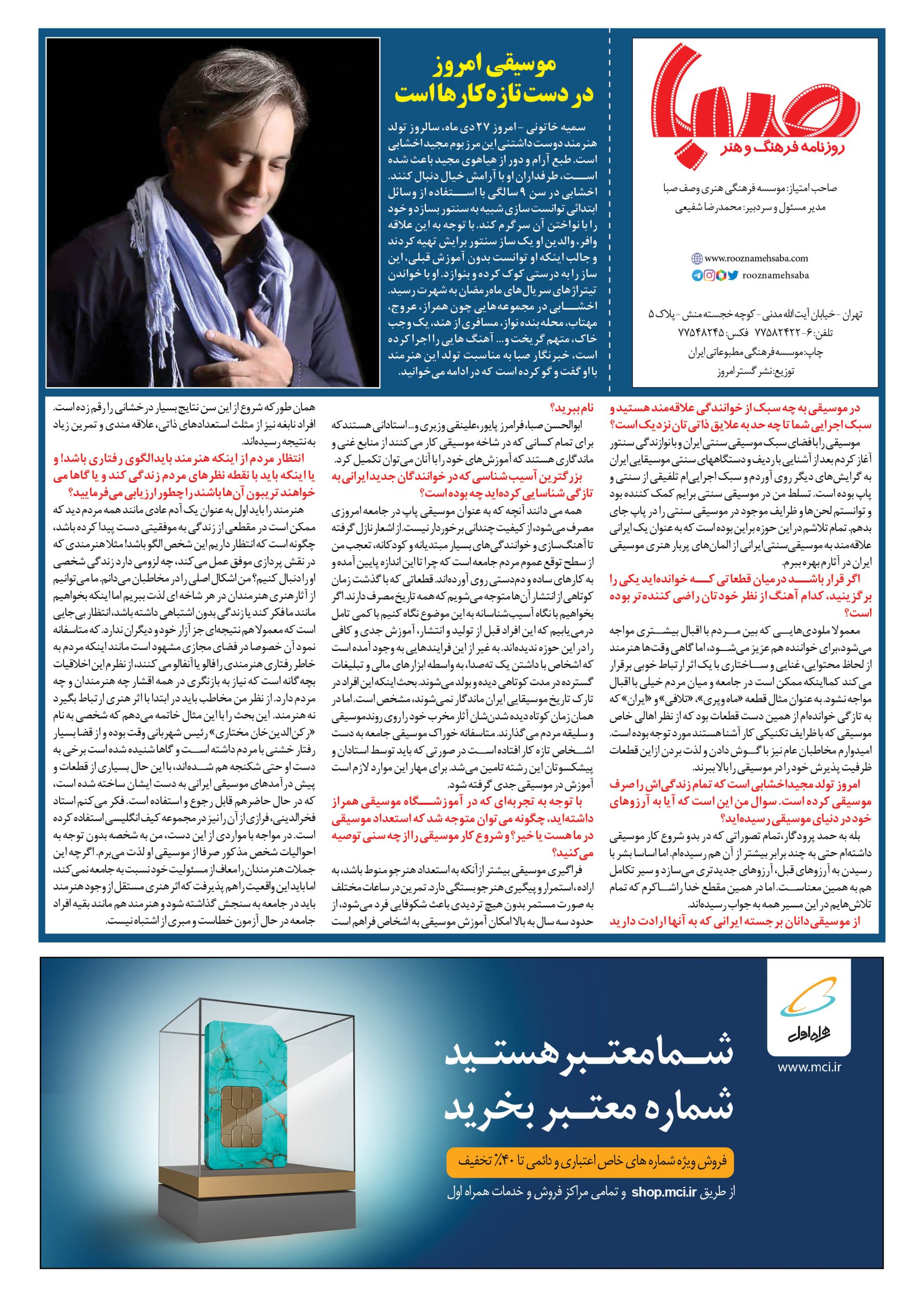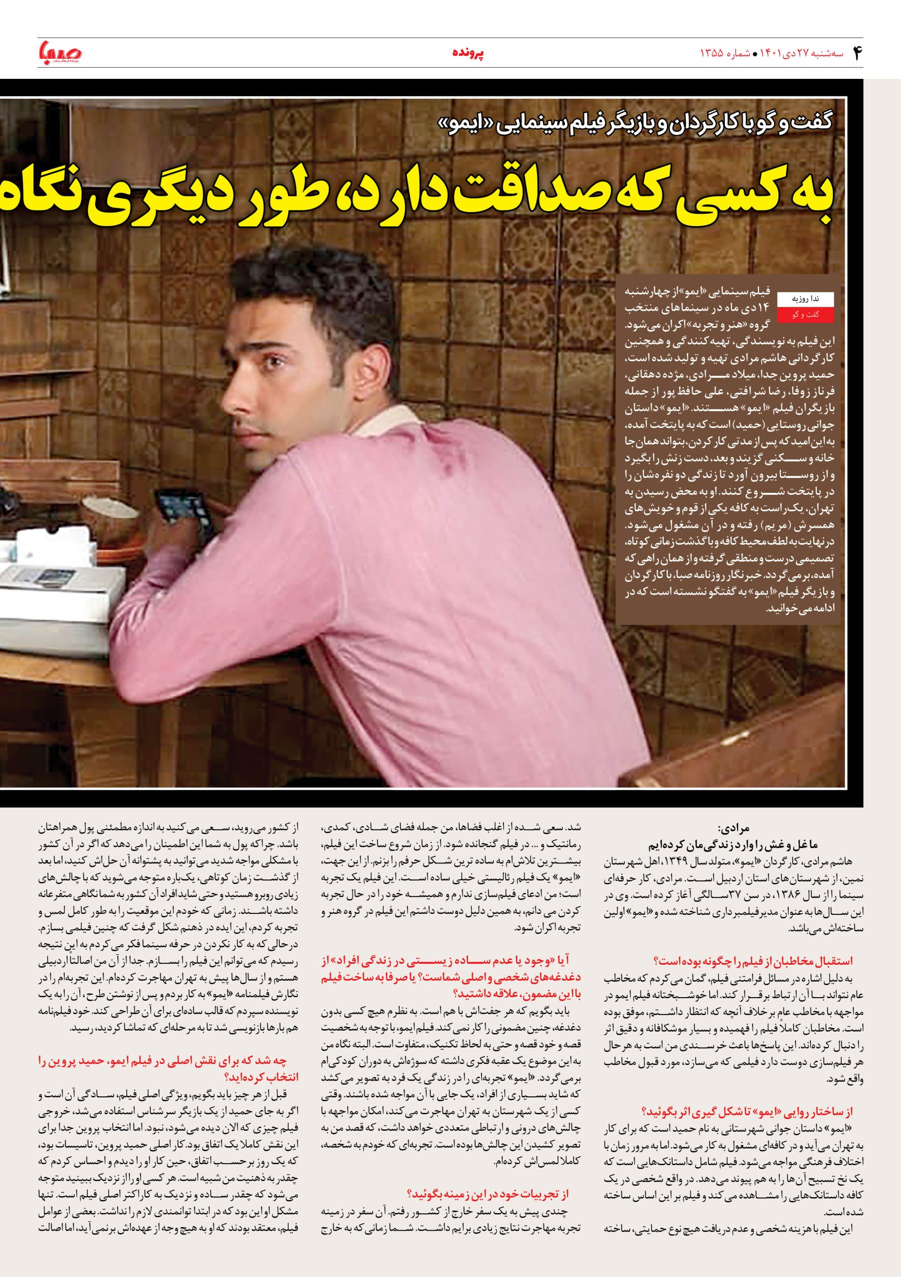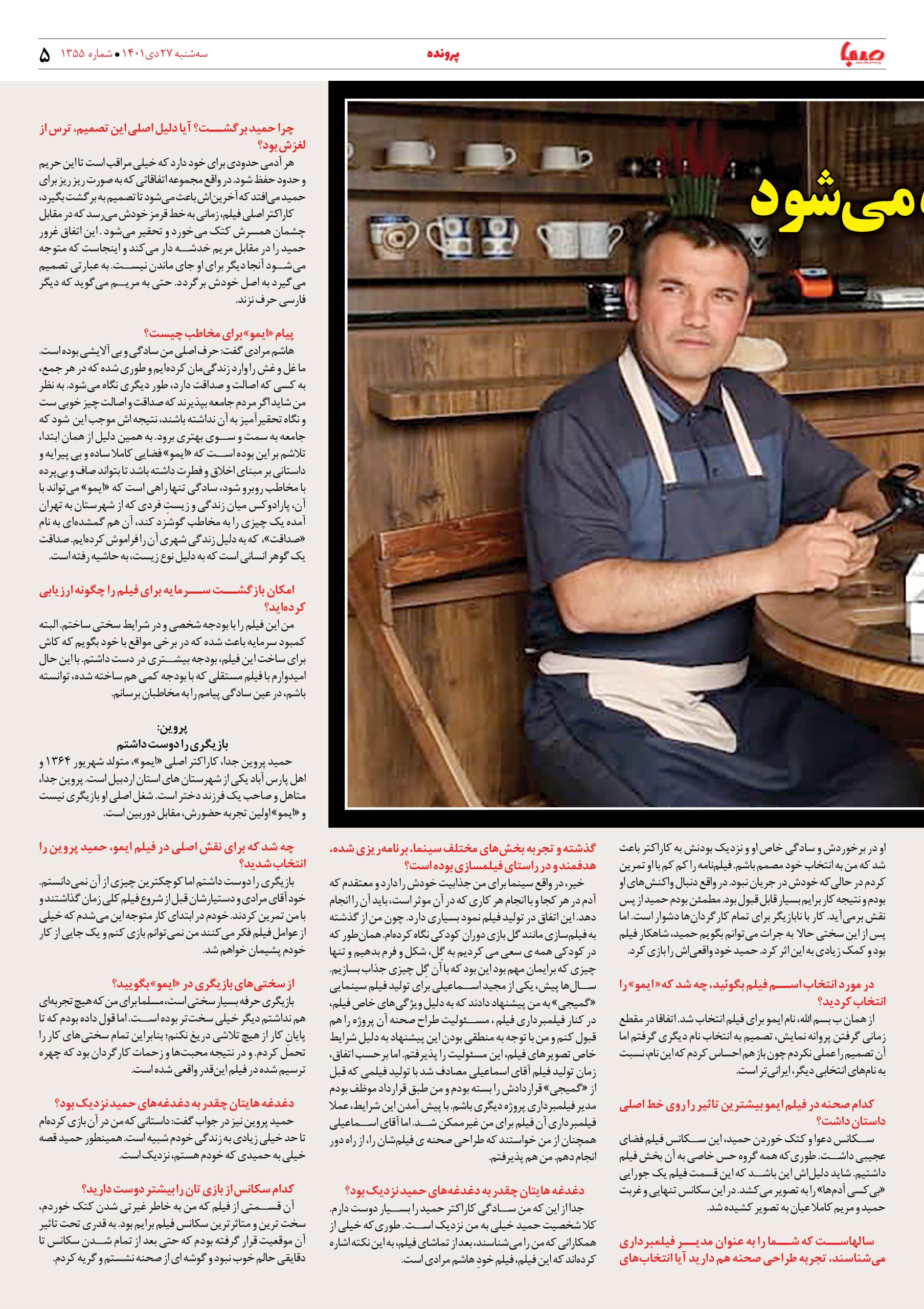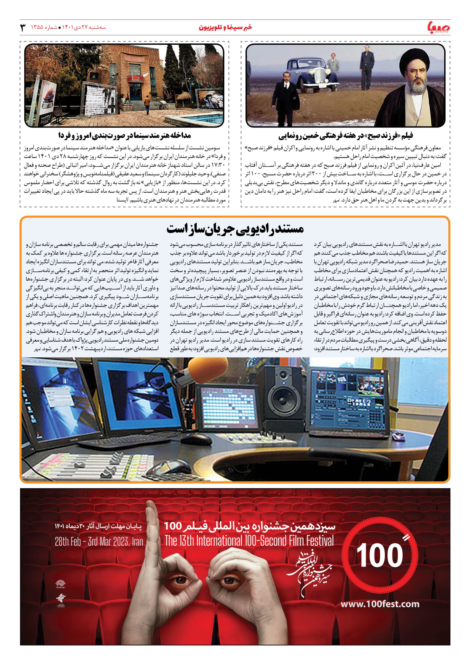 شماره ۱۳۵۵| روزنامه صبا سهشنبه ۲۷ دی ۱۴۰۱