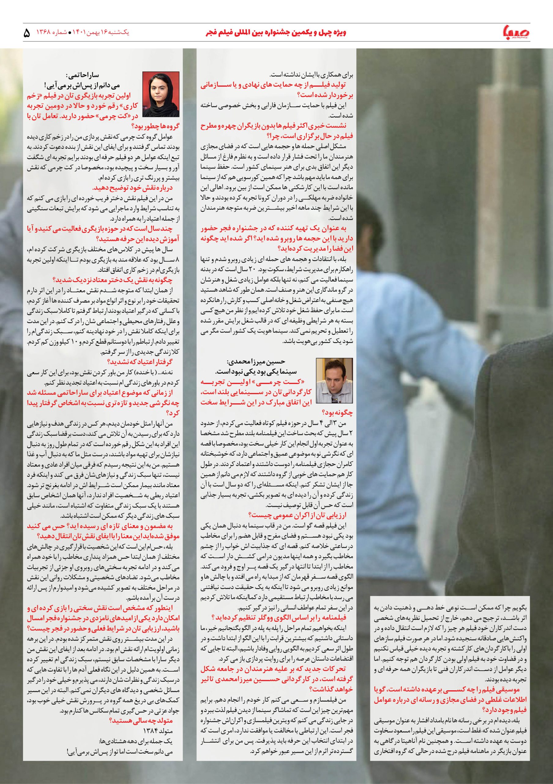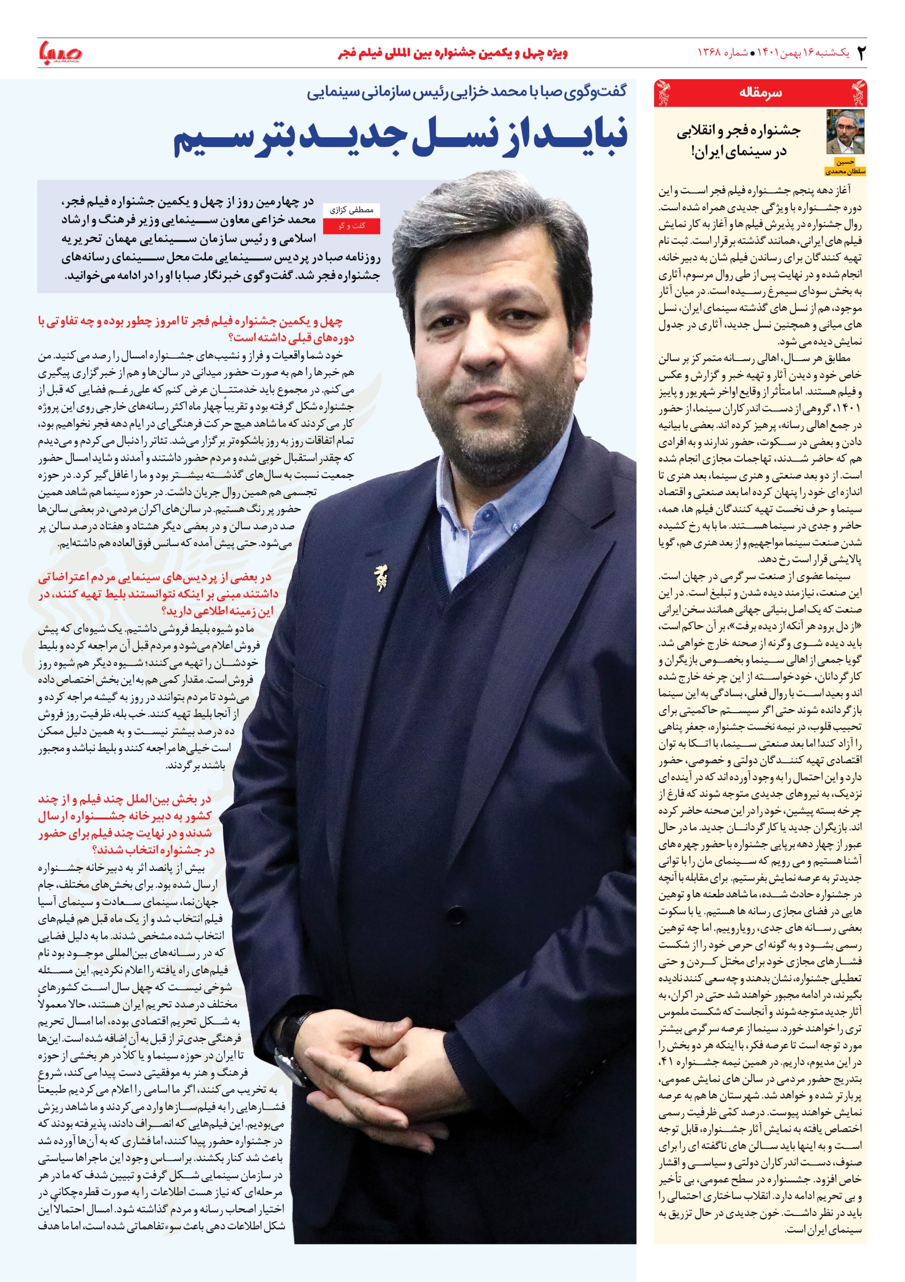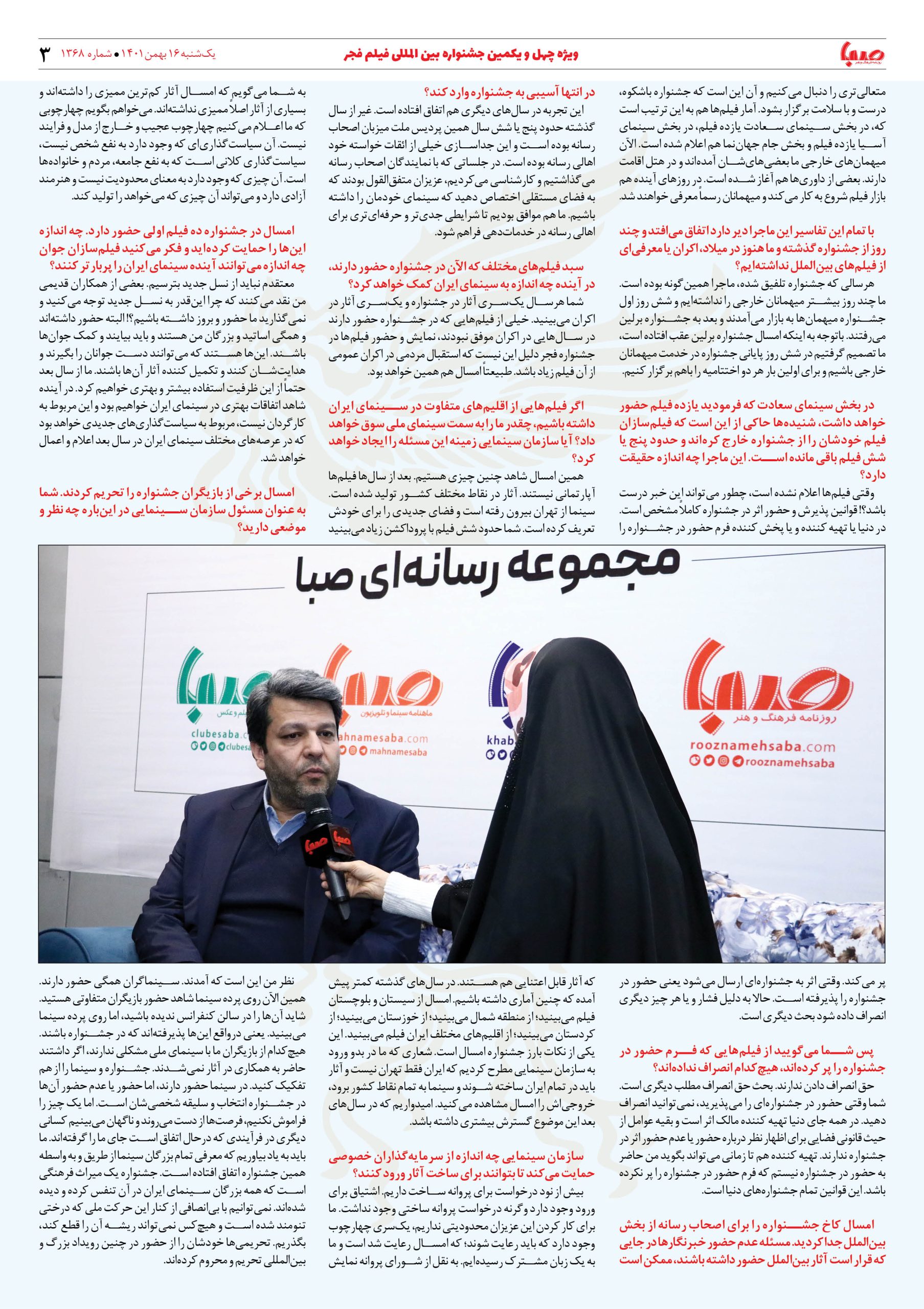 شماره ۱۳۶۸| روزنامه صبا یکشنبه ۱۶ بهمن ۱۴۰۱