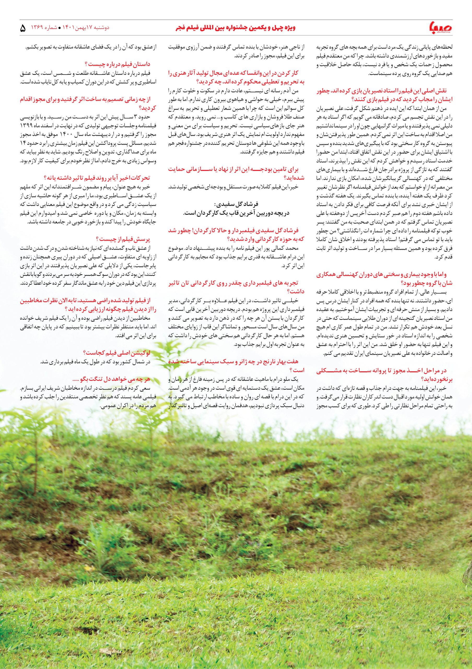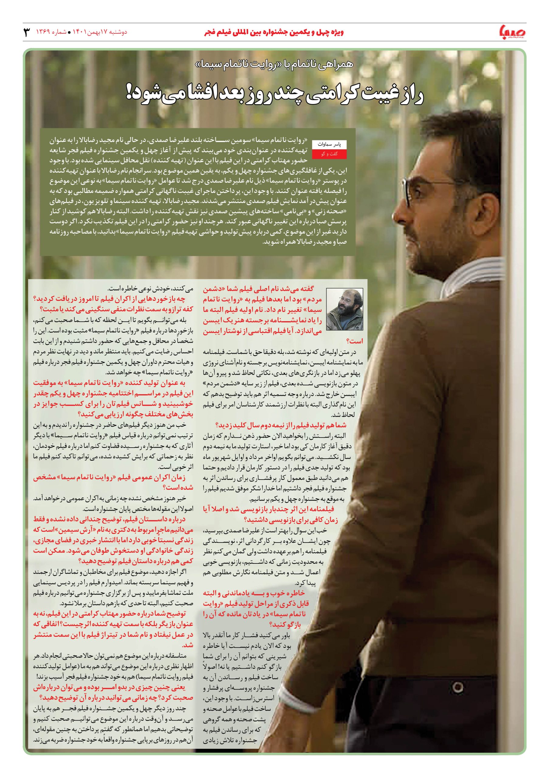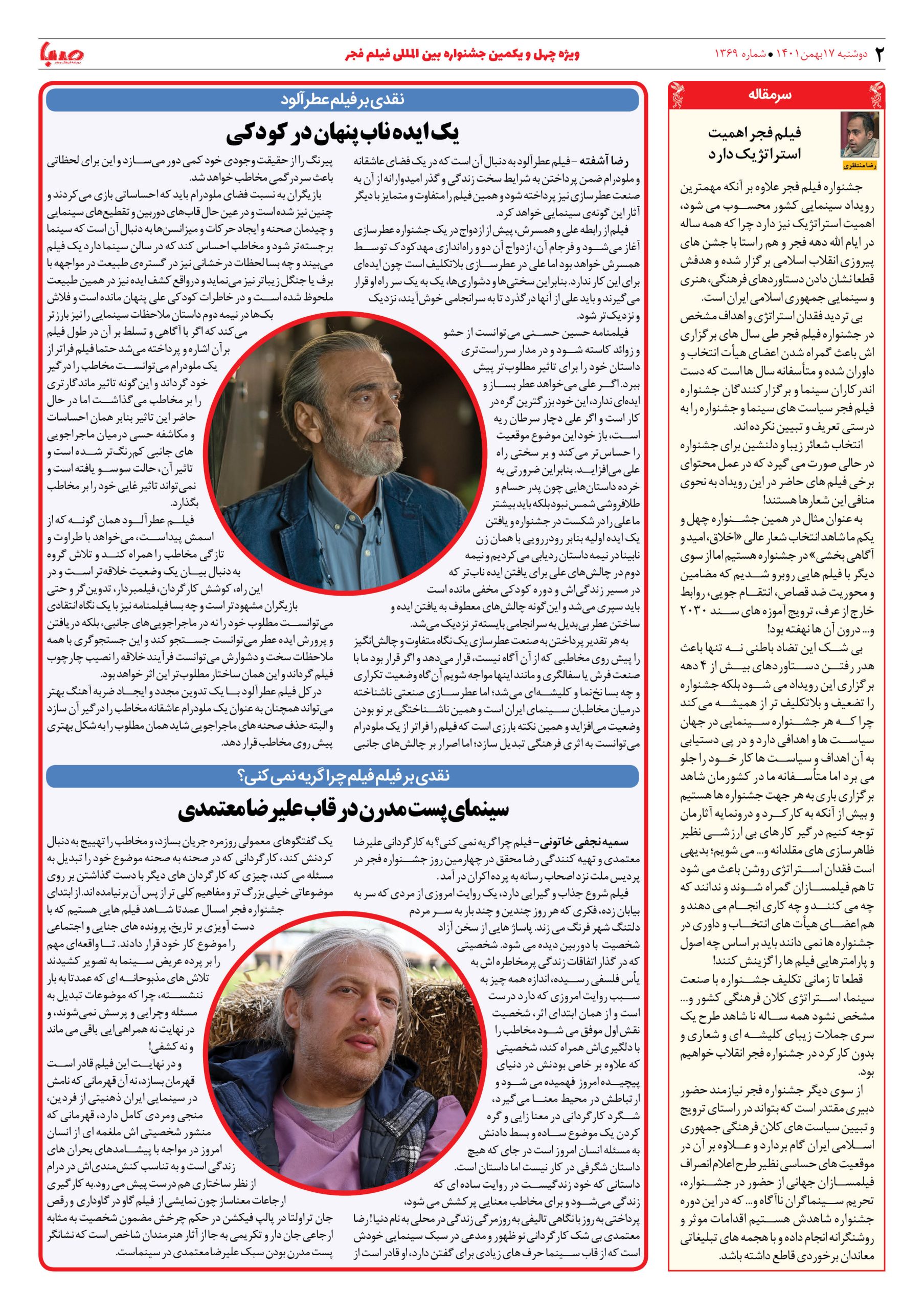 شماره ۱۳۶۹| روزنامه صبا دوشنبه ۱۷ بهمن ۱۴۰۱
