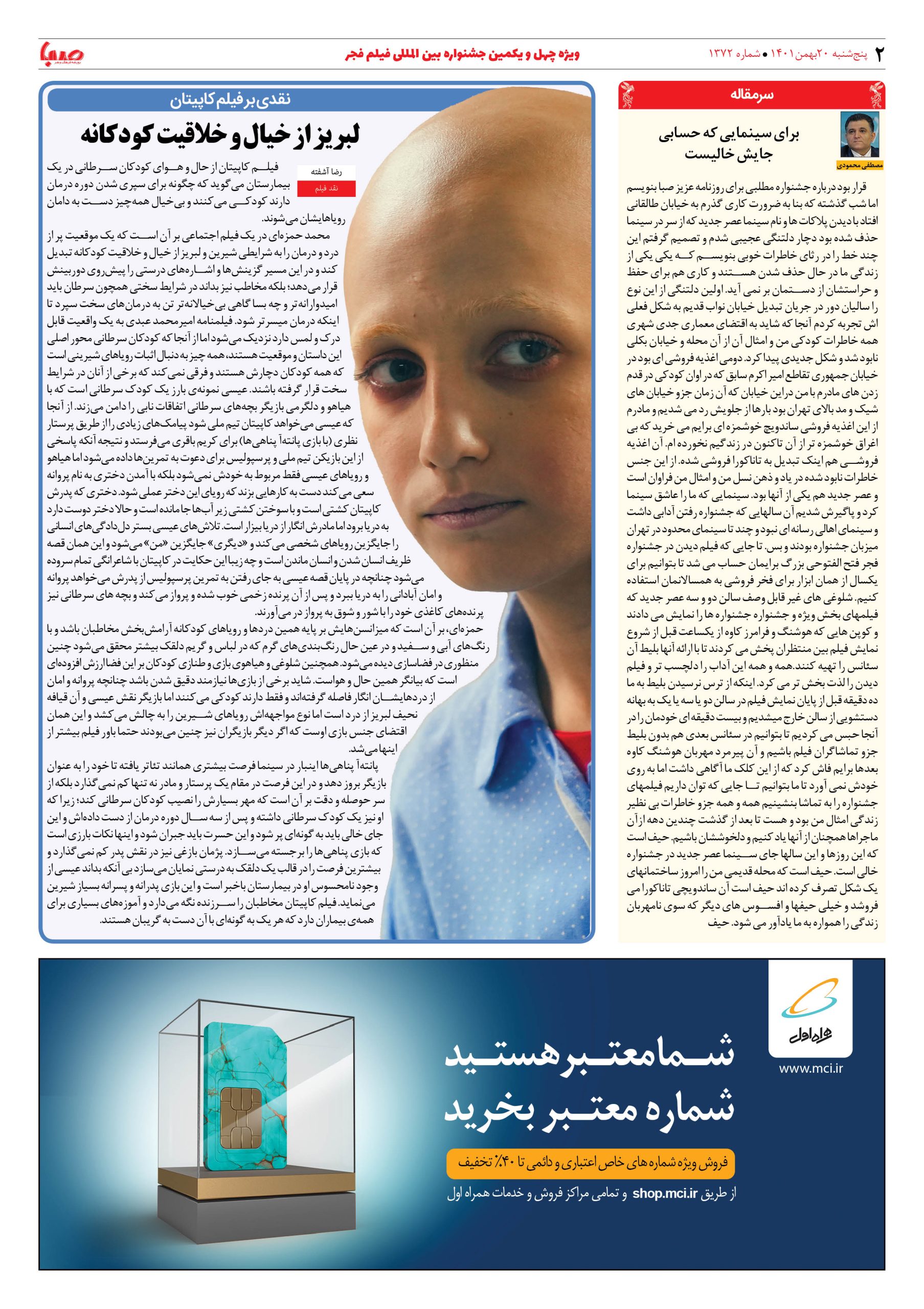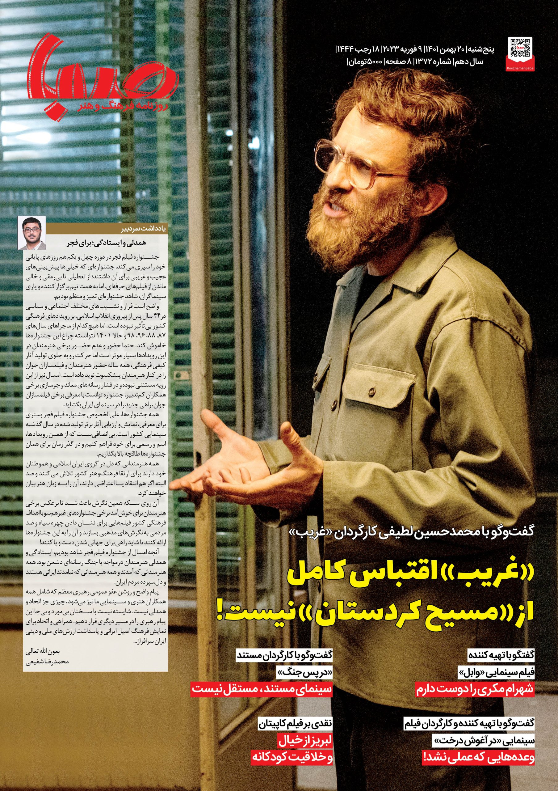 شماره ۱۳۷۲| روزنامه صبا پنجشنبه ۲۰ بهمن ۱۴۰۱